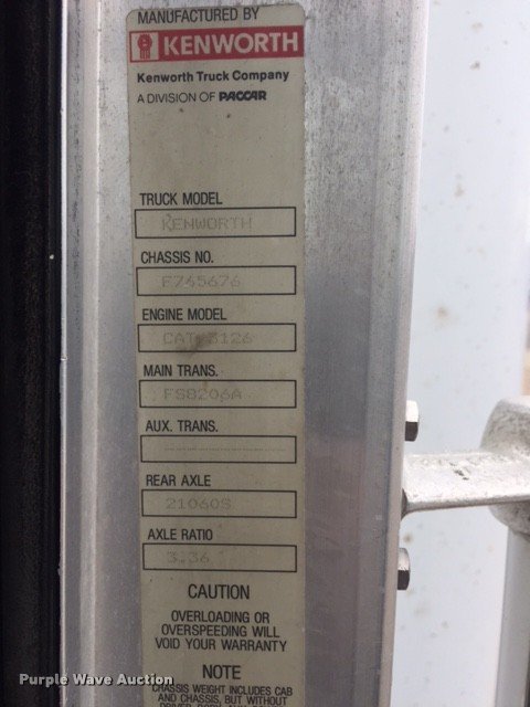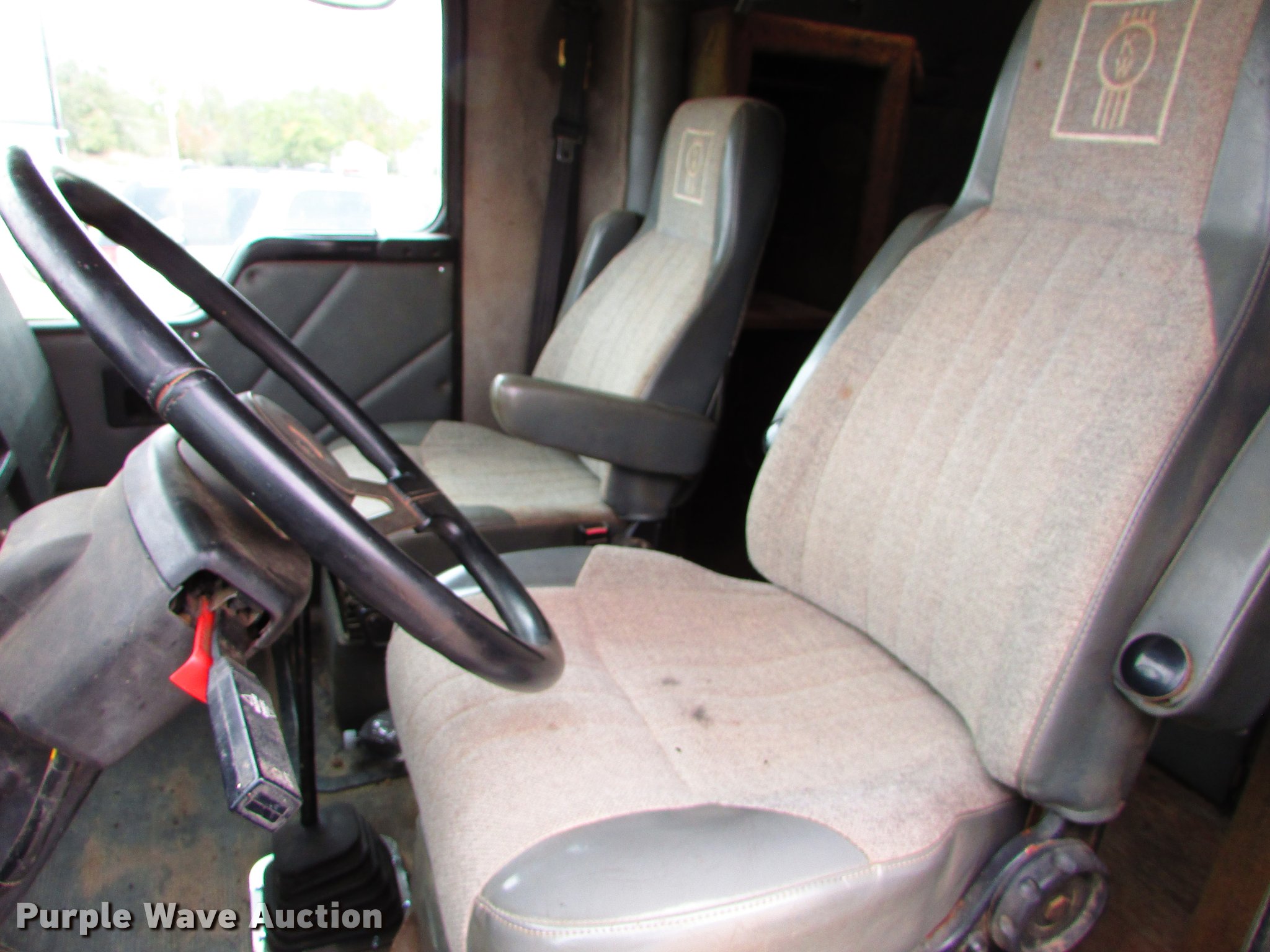 Purple Wave is selling a used Service Truck in North Dakota. This item is a 1998 Kenworth T300 service truck with the following: 719,982 miles on odometer, Caterpillar 3126 7.2L L6 turbo diesel engine, Eaton Fuller FS820UA six speed manual transmission, Single axle, Heat, AM/FM/CD, Power windows, Heated mirrors, Air suspension seat, Sleeper, 70", Storage cabinets, Service bed, (6) compartments, Shelving, Receiver hitch, Manchester P727222 air compressor, No air compressor motor, Nozzles, 12V pump, Dual fuel tanks, 220" wheelbase, Air suspension, Air brakes, GVWR 33,000 lbs