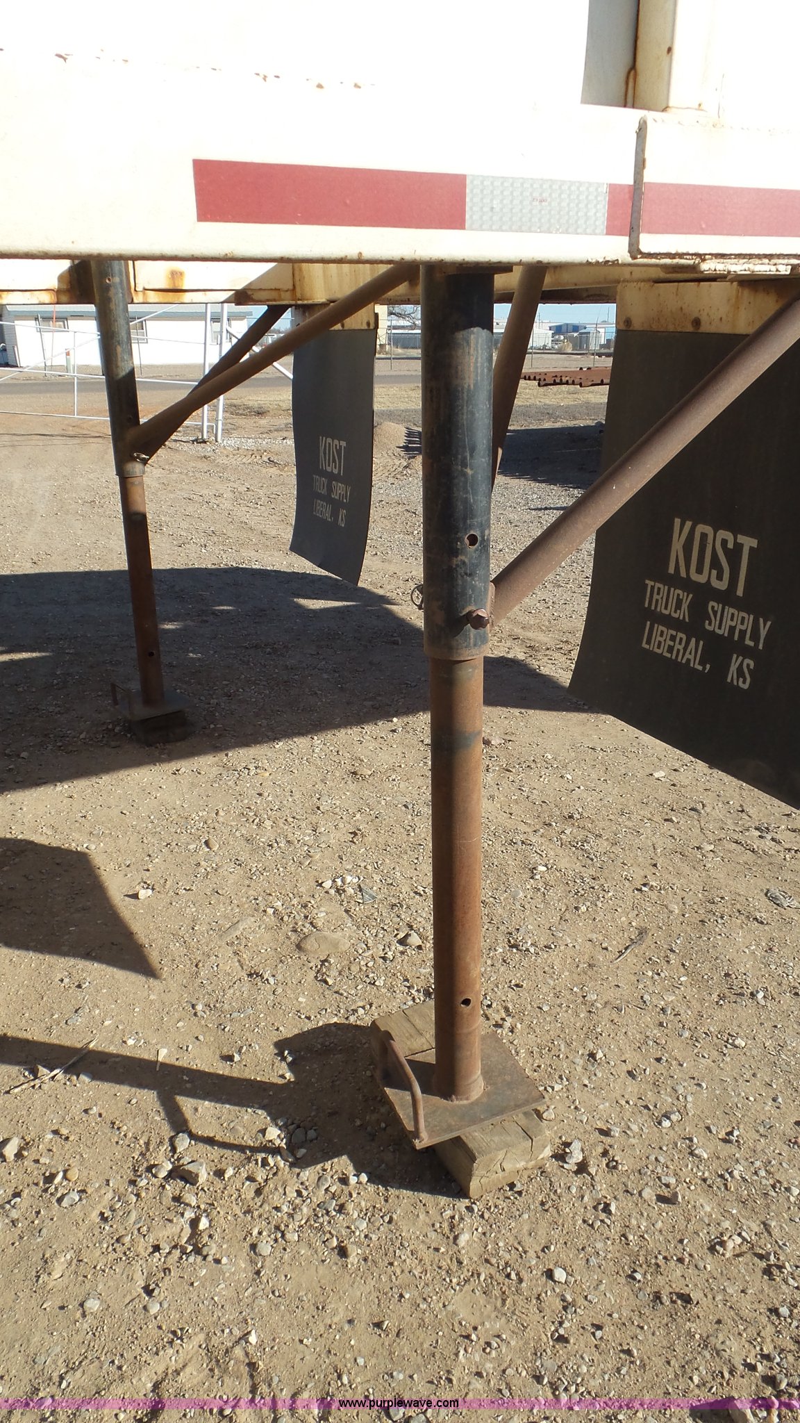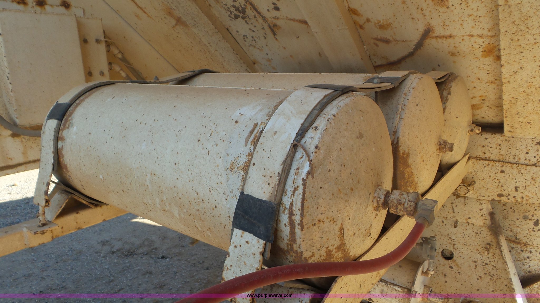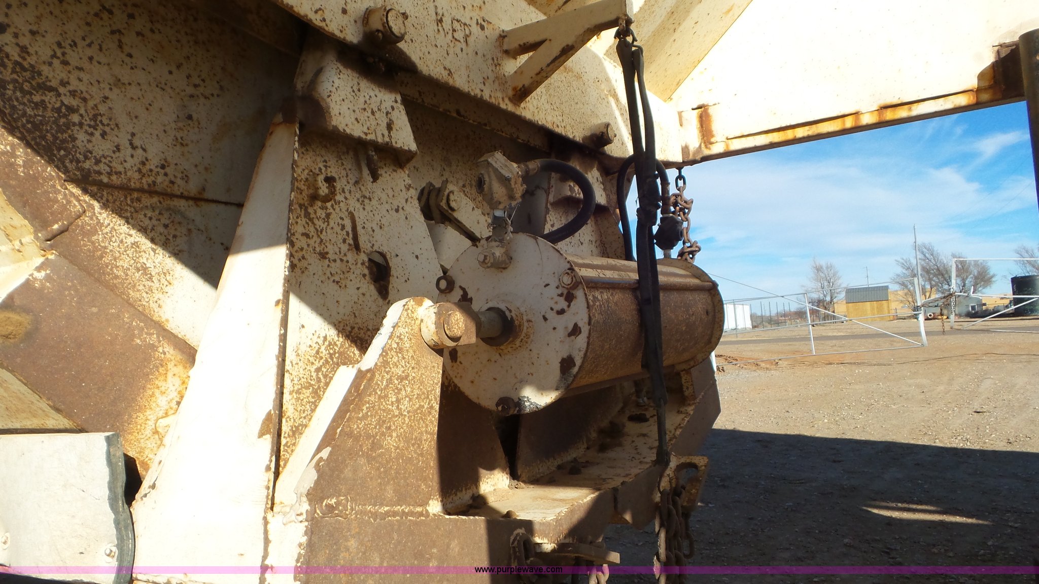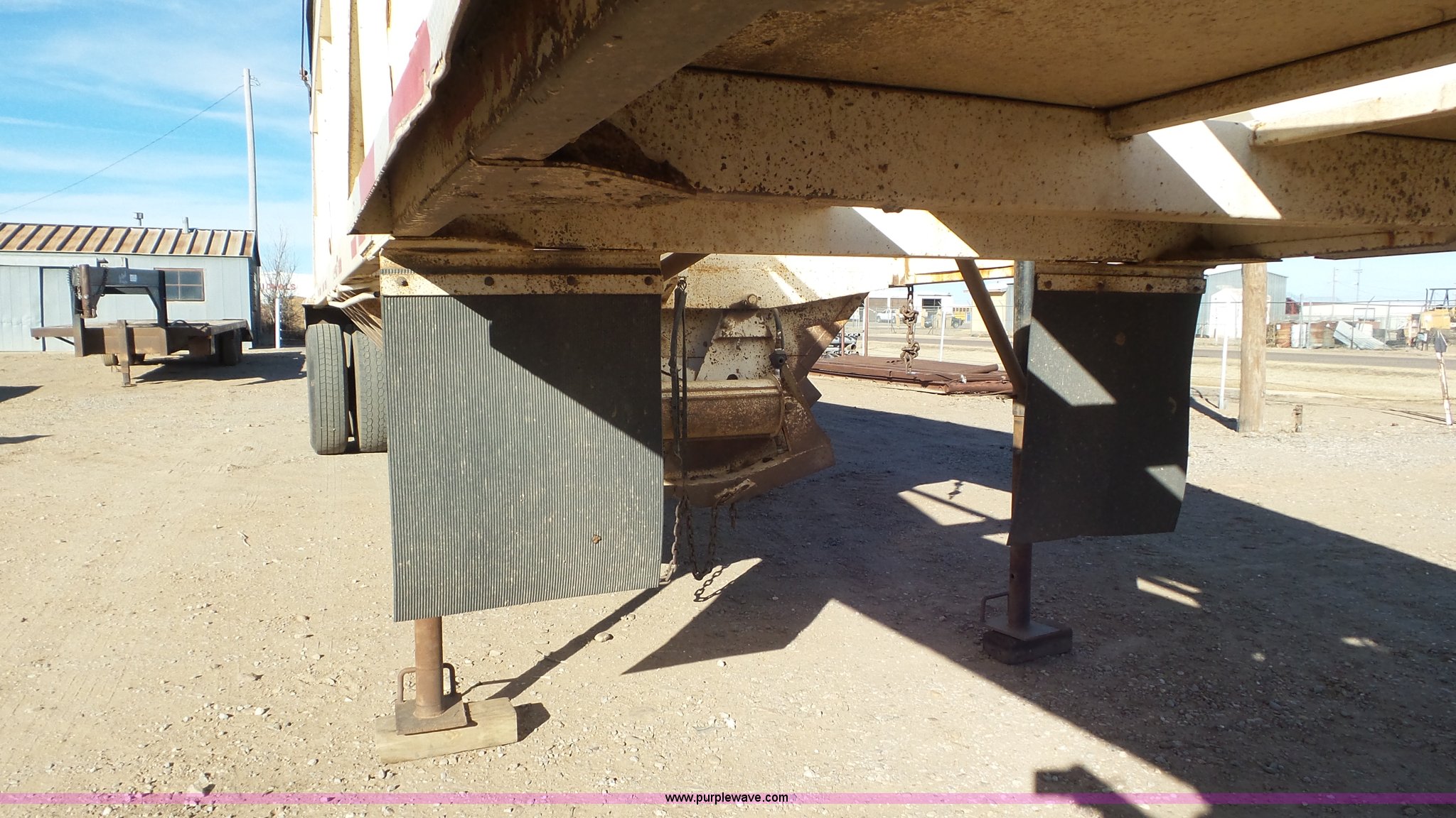 1985 Ranch bottom dump trailer. 38' overall length, 56" side height, Steel construction, Air operated clamshell gate, Trailer controls, Manual tarp, Dual leg landing gear, Fifth wheel plate, Tandem axle, Spring suspension, Air brakes, 11R24.5 tires, GVWR 80,000 lbs, GAWR 20,000 lbs, Unit# 55. Kansas title. Title distribution may be delayed up to 30 days from verification of funds. 1R9BSD503FL008356. Gilmore's Roustabout Service. 1910 W 3rd St. Liberal, KS 67905