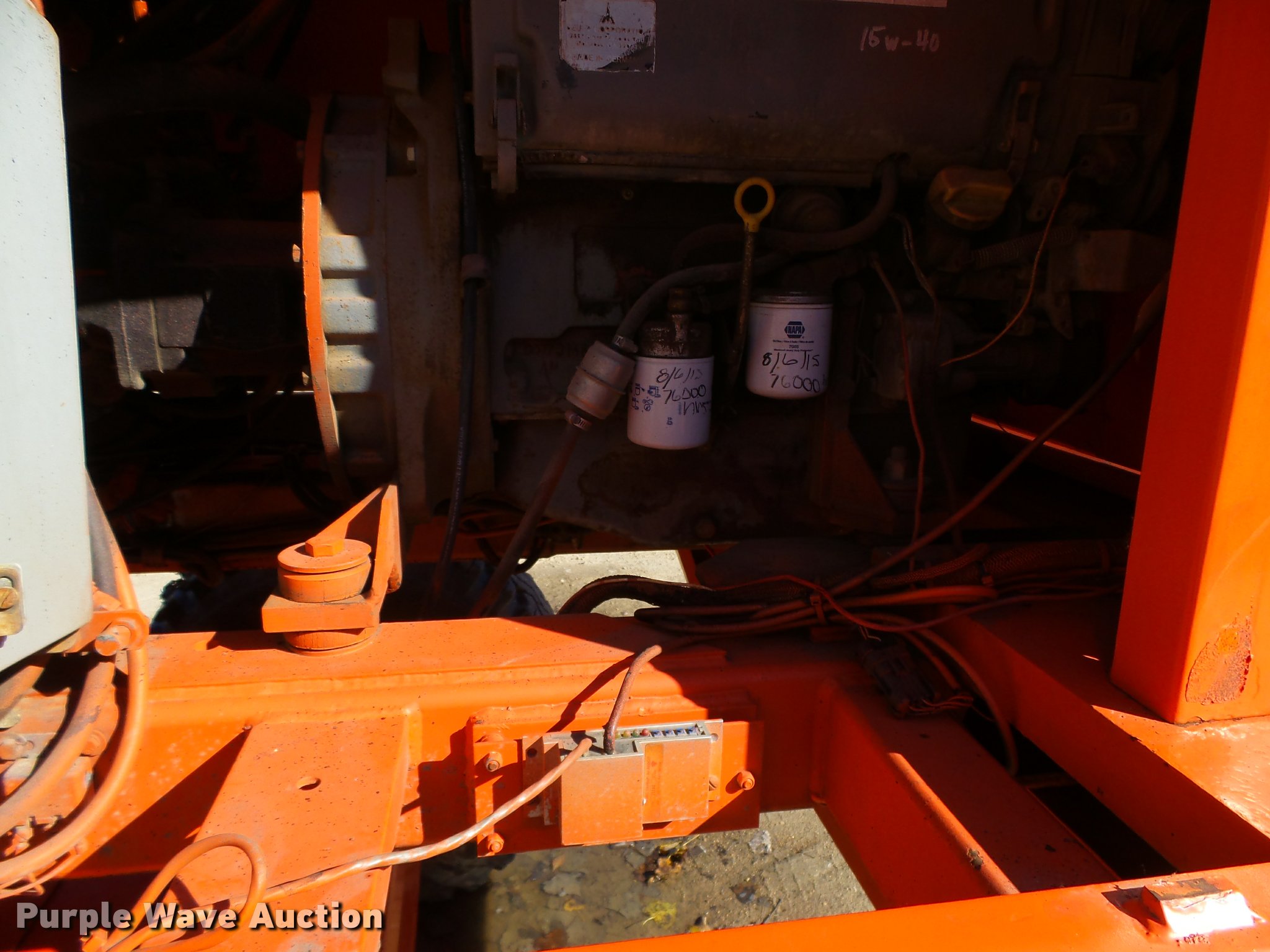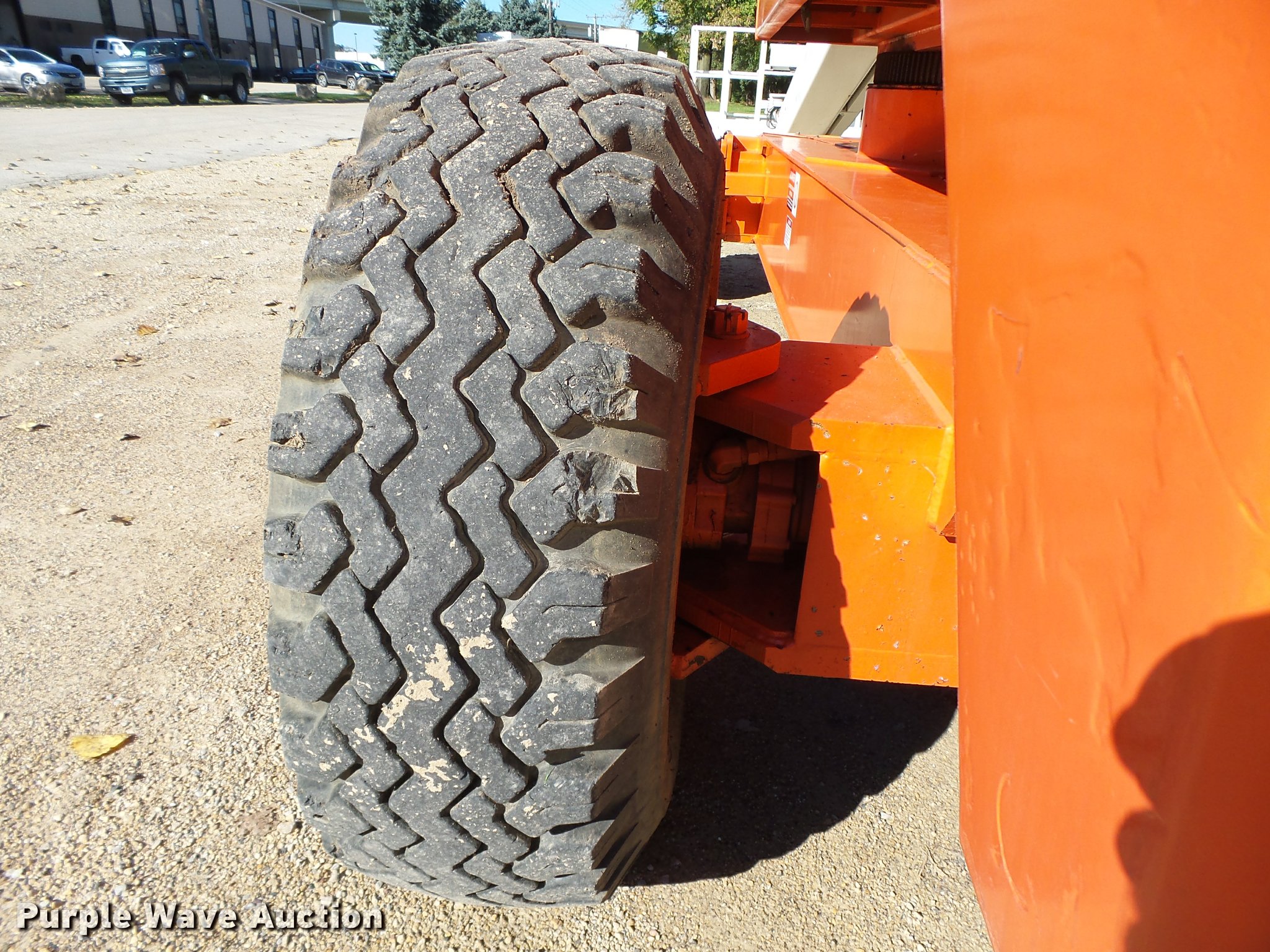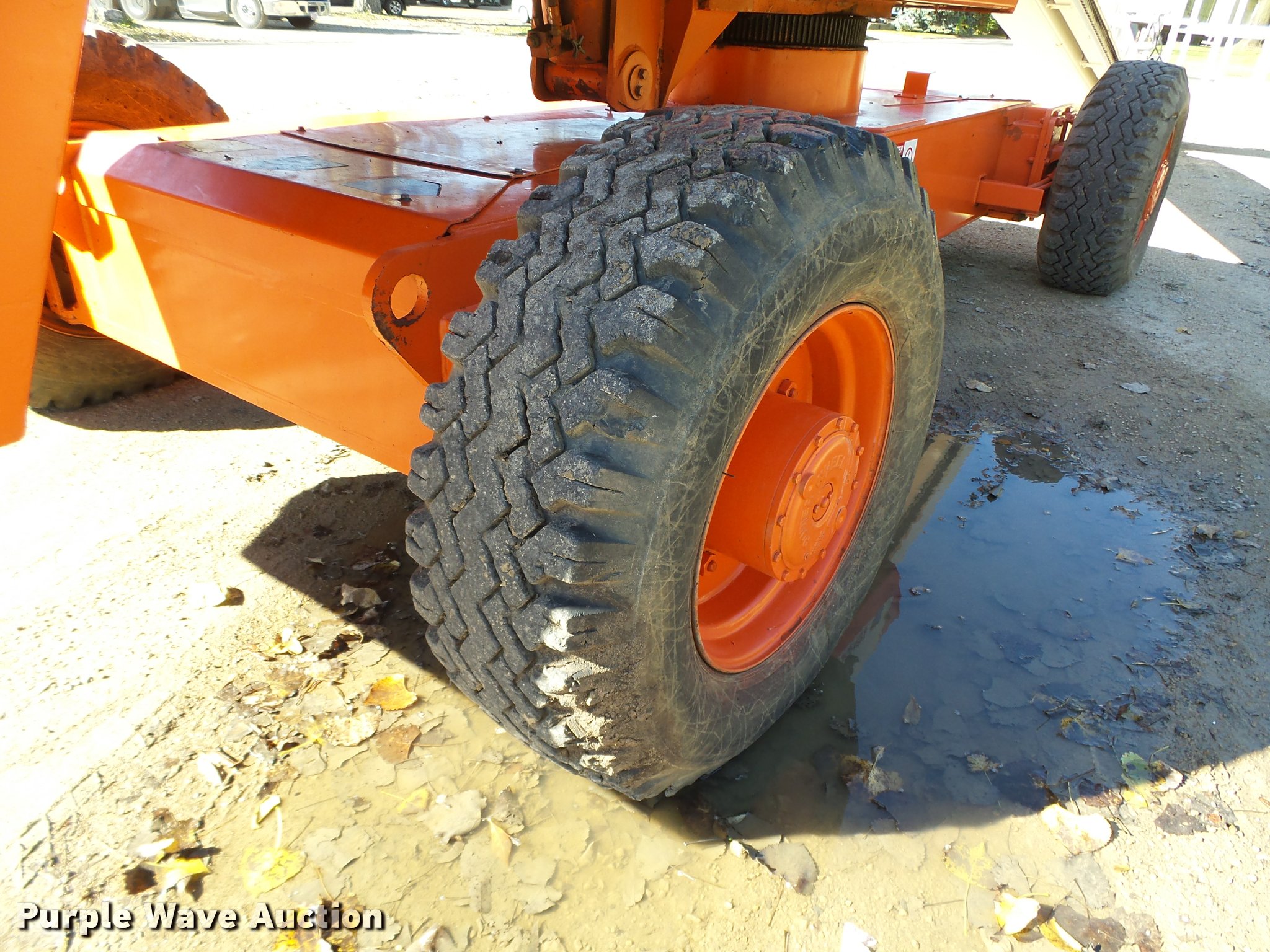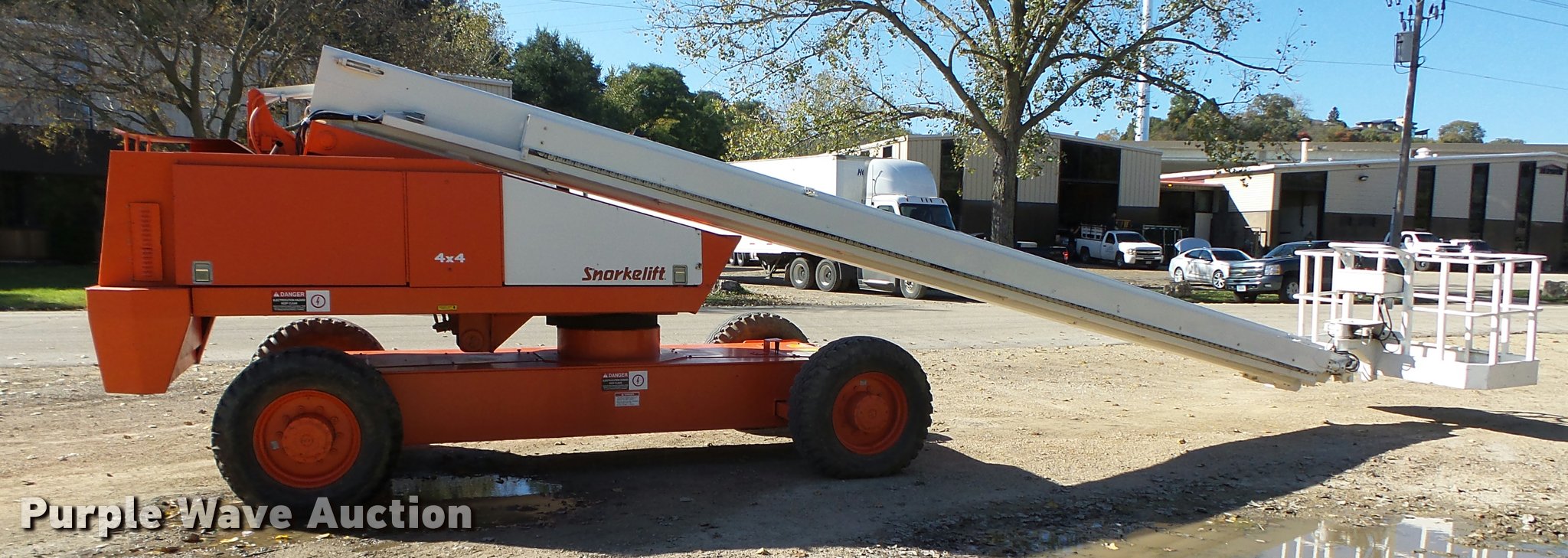 Purple Wave is selling a used Boom Lift in Iowa. This item is a Snorkelift TB-A80RDZ boom lift with the following: 7,646 hours on meter, Deutz F4L1011 four cylinder diesel engine, 40 kW, Hydrostatic transmission, Hi-Lo range, Four wheel drive, 500 lbs maximum lift capacity, 71' maximum reach, 80' maximum lift height, 2.5'L x 7'W platform, AC power outlet, Hydraulic platform rotation, Extendable front axle, 15-22.5 foam filled tires, Sidewall cuts on tires, Serial 9433381194