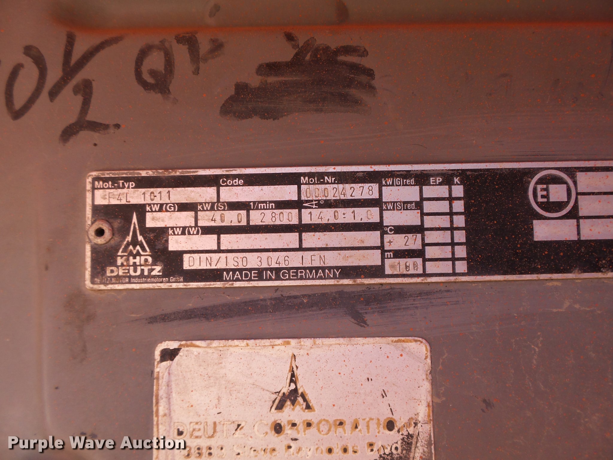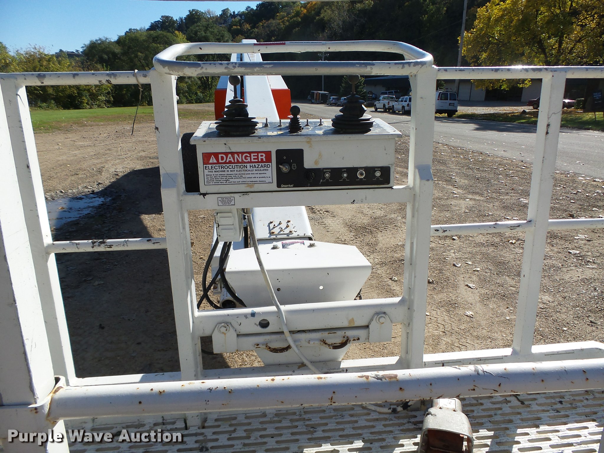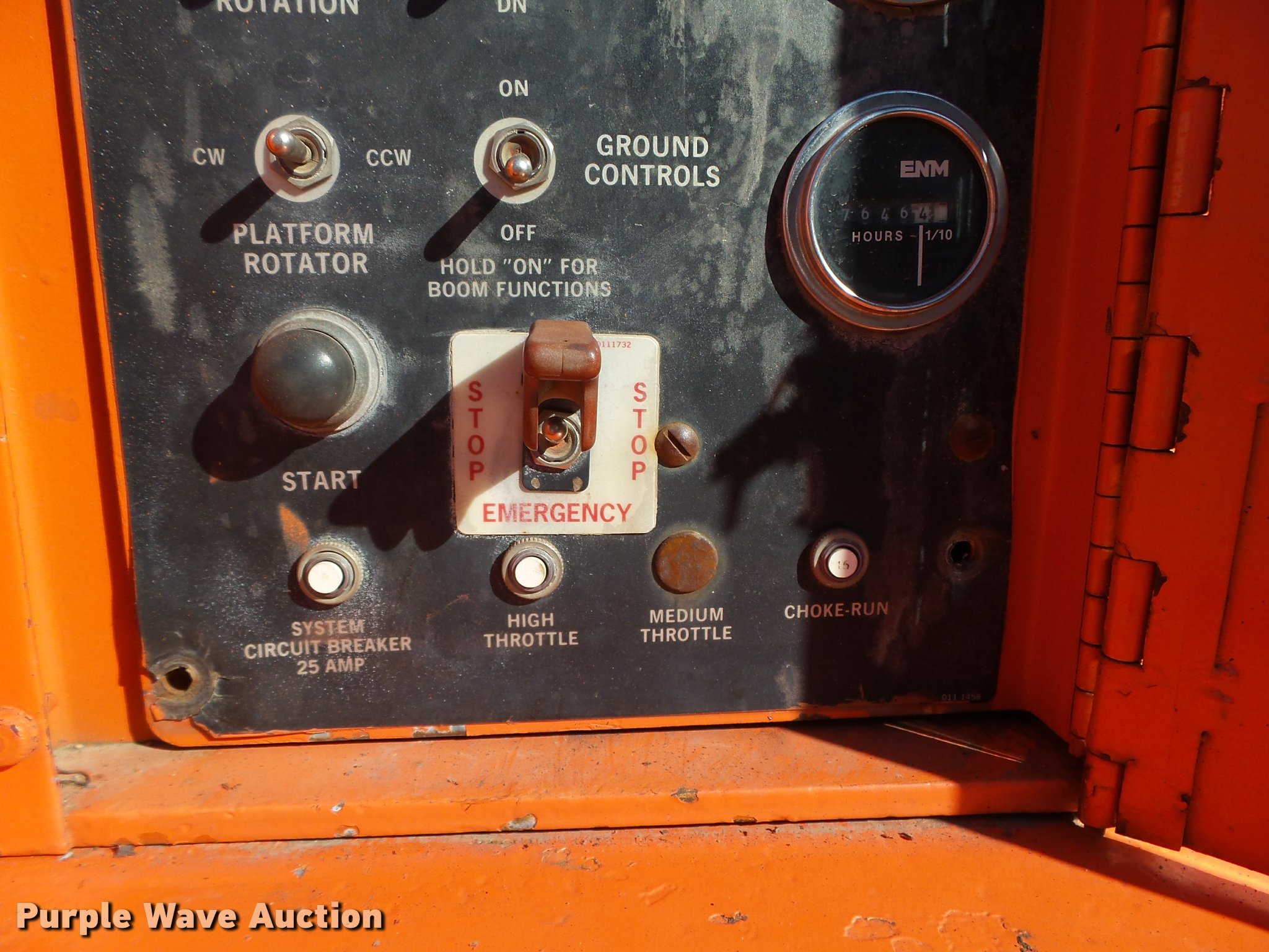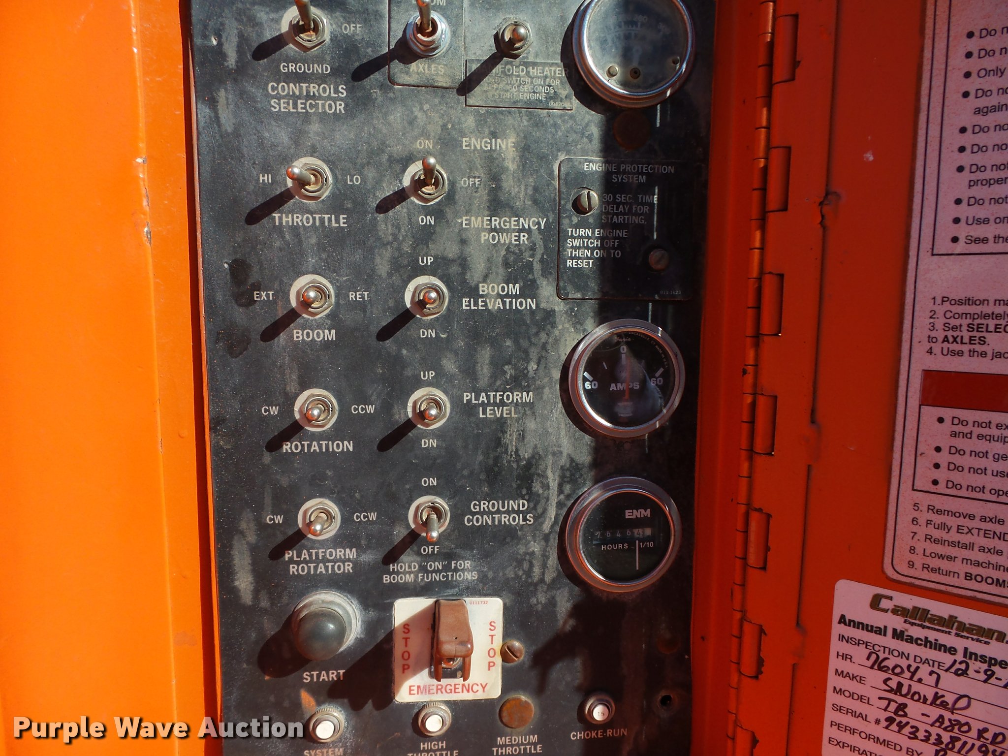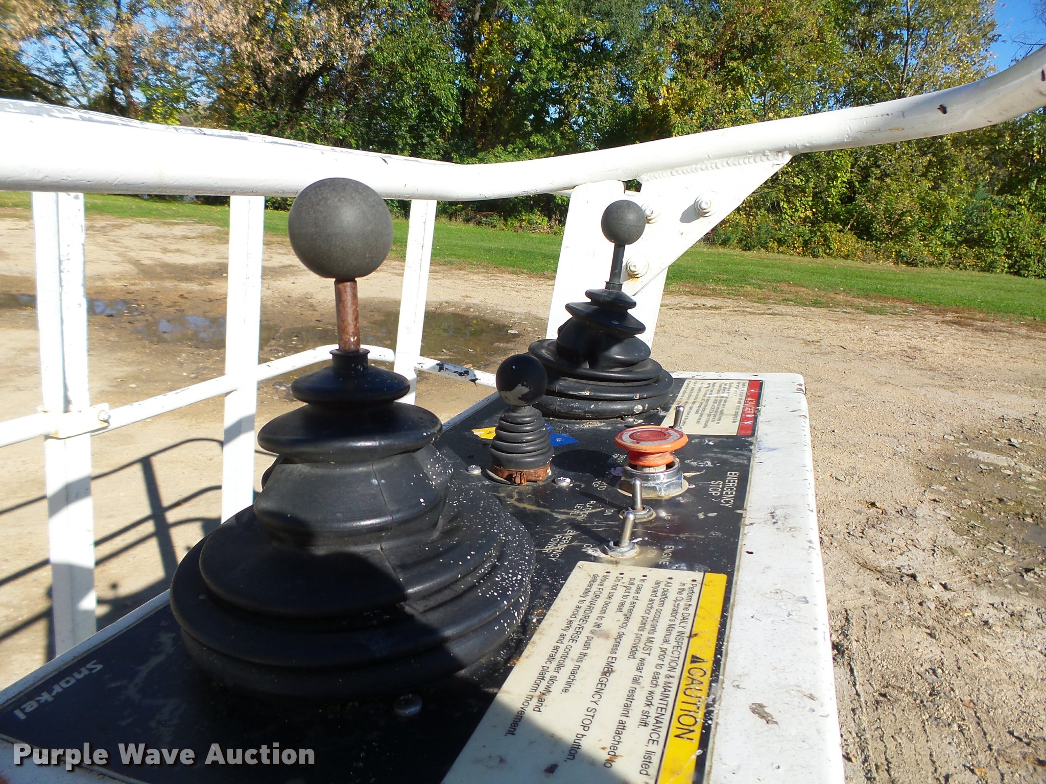 Purple Wave is selling a used Boom Lift in Iowa. This item is a Snorkelift TB-A80RDZ boom lift with the following: 7,646 hours on meter, Deutz F4L1011 four cylinder diesel engine, 40 kW, Hydrostatic transmission, Hi-Lo range, Four wheel drive, 500 lbs maximum lift capacity, 71' maximum reach, 80' maximum lift height, 2.5'L x 7'W platform, AC power outlet, Hydraulic platform rotation, Extendable front axle, 15-22.5 foam filled tires, Sidewall cuts on tires, Serial 9433381194