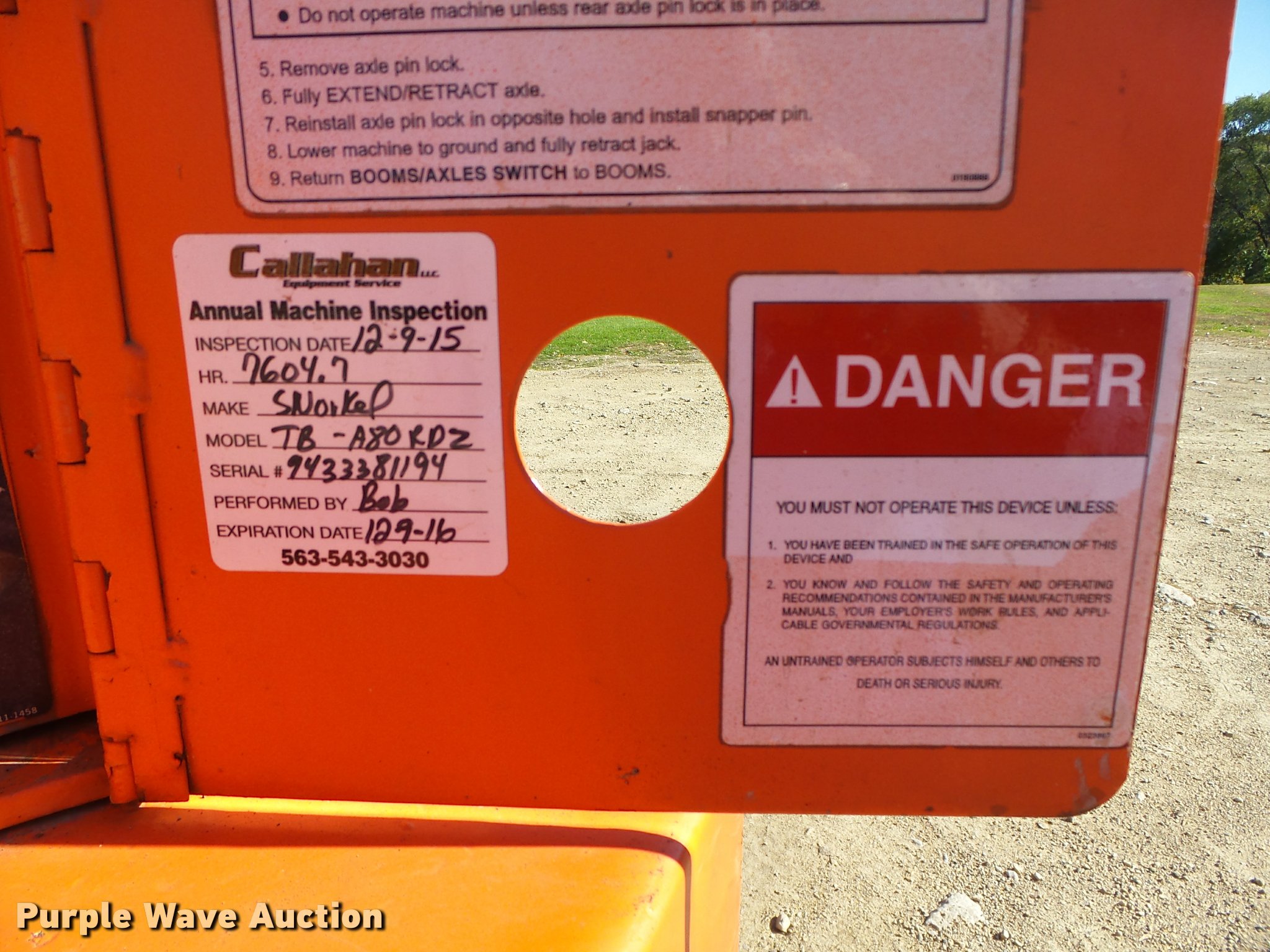 Snorkelift TB-A80RDZ boom lift has sold in Dubuque, Iowa for $14850. Item K1428 sold on November 10th, 2016.