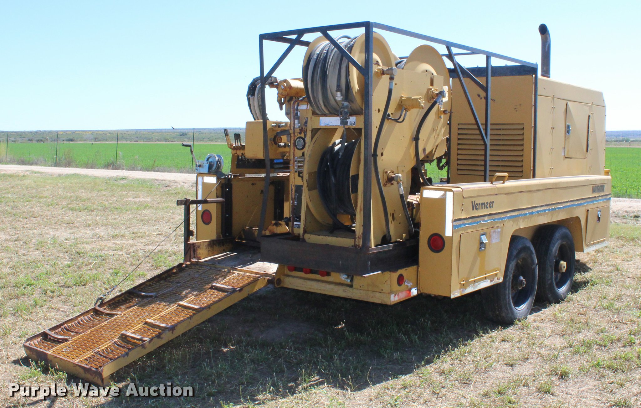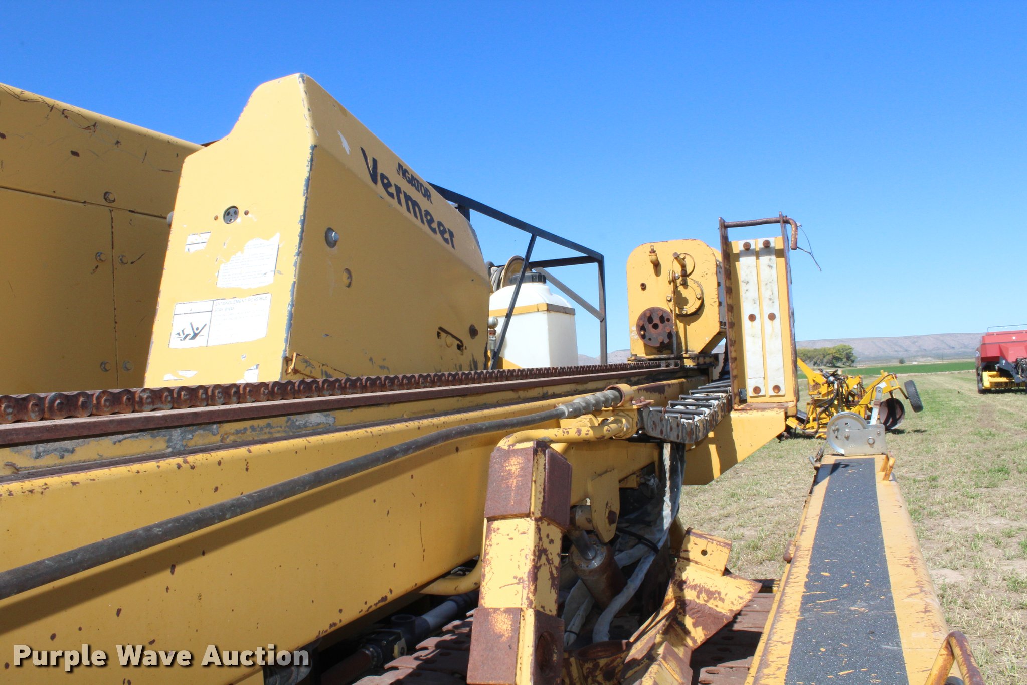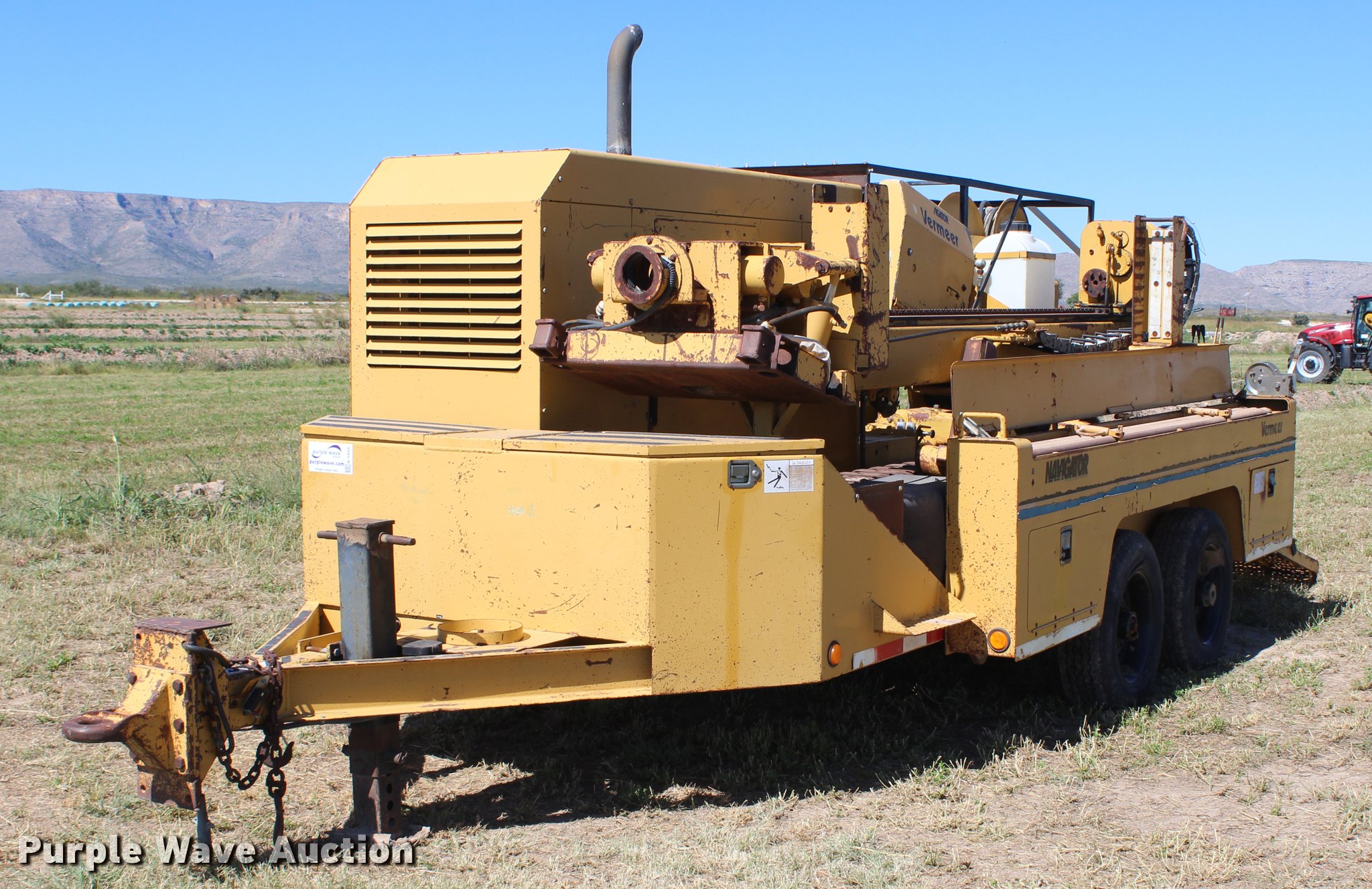 Purple Wave is selling a used Directional Boring Unit in New Mexico. This item is a 1994 Vermeer Navigator D14/24TB directional drill with the following: 4,254 hours on meter, Six cylinder diesel engine, Two speed hydrostatic ground drive, (21) drill stems, 9"W steel track pads, Power pack not connected, Unknown operating condition of boring unit, 22'L x 8'W trailer, Pintle hitch, 215/75R17.5 tires