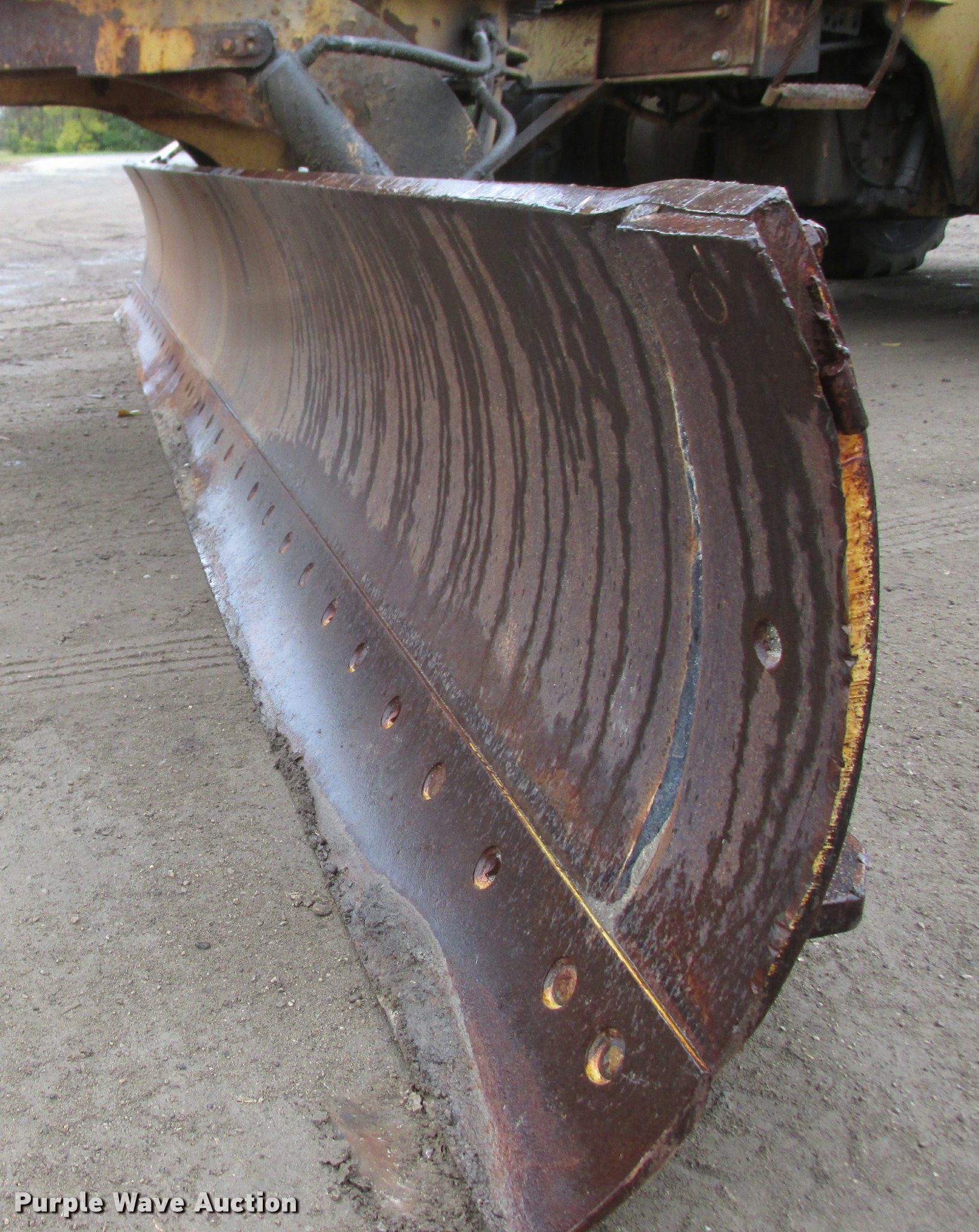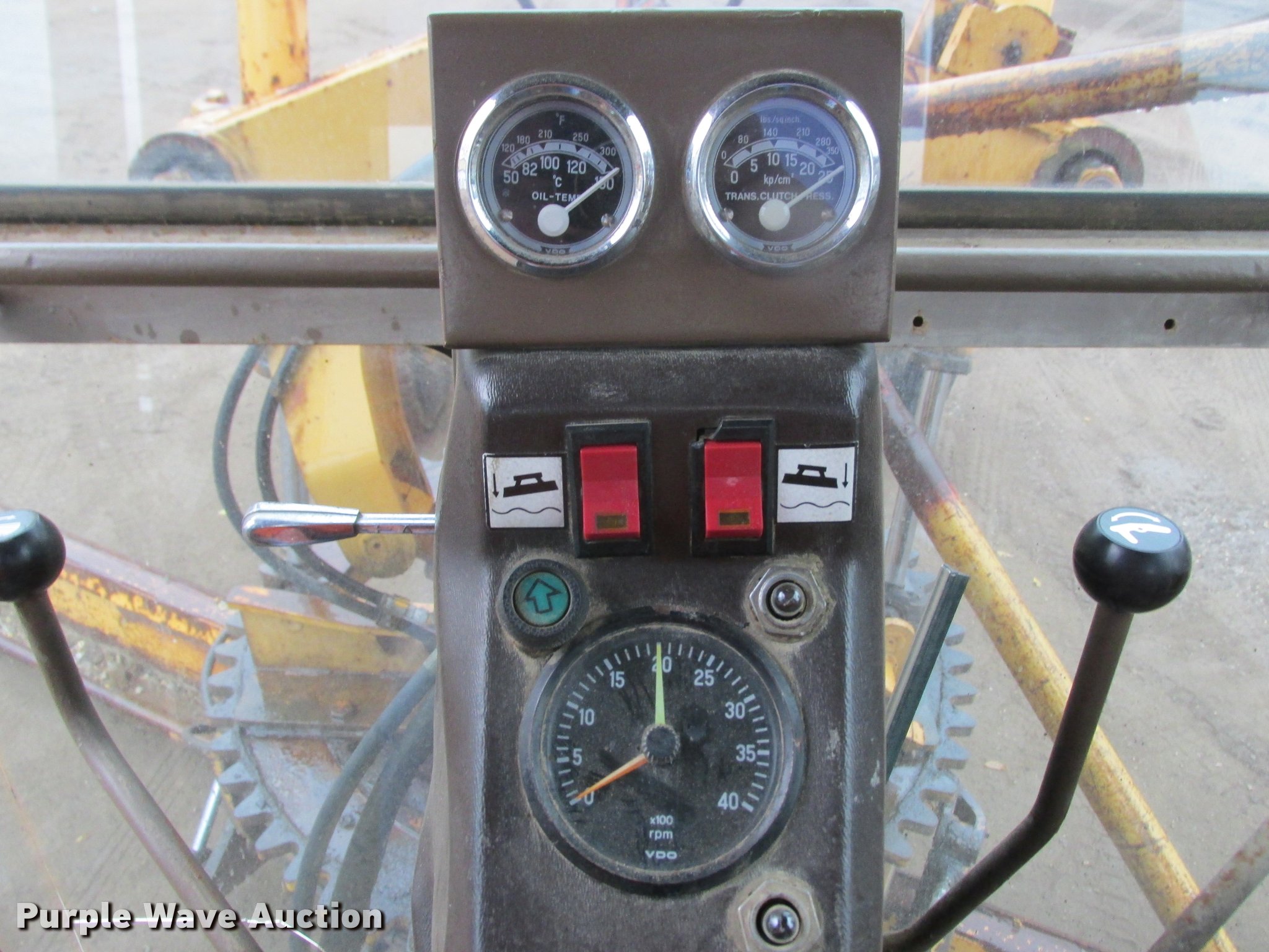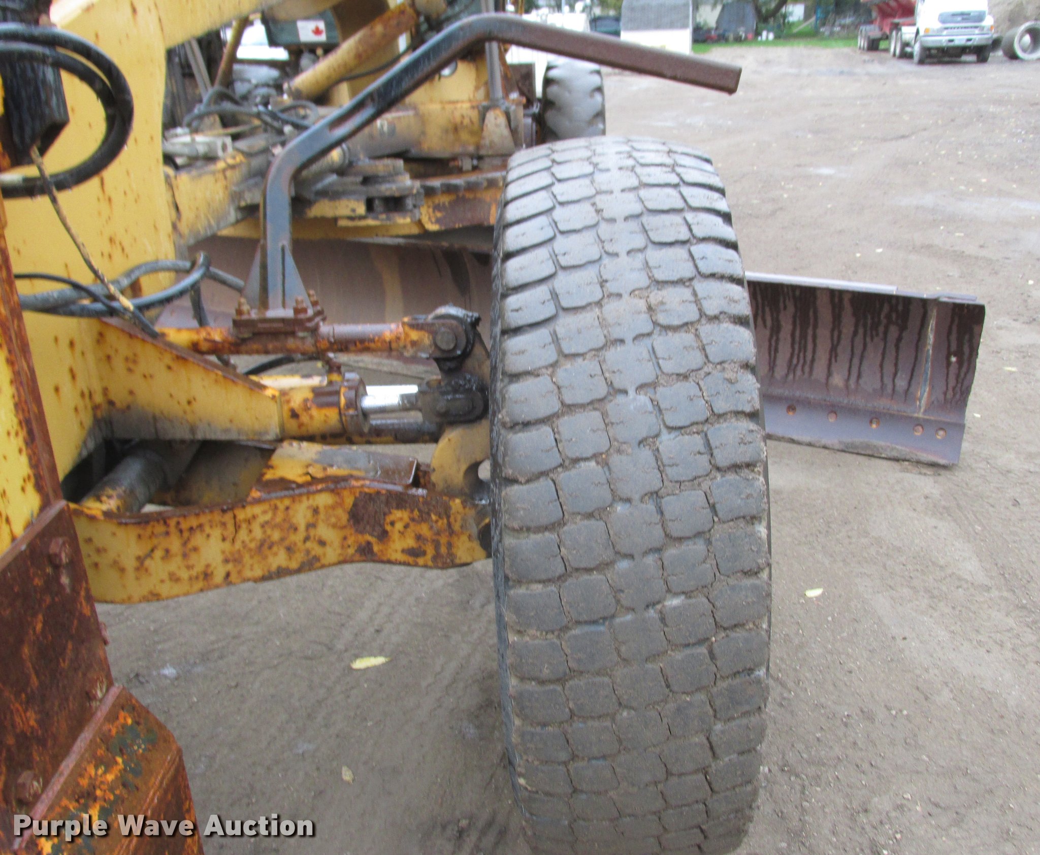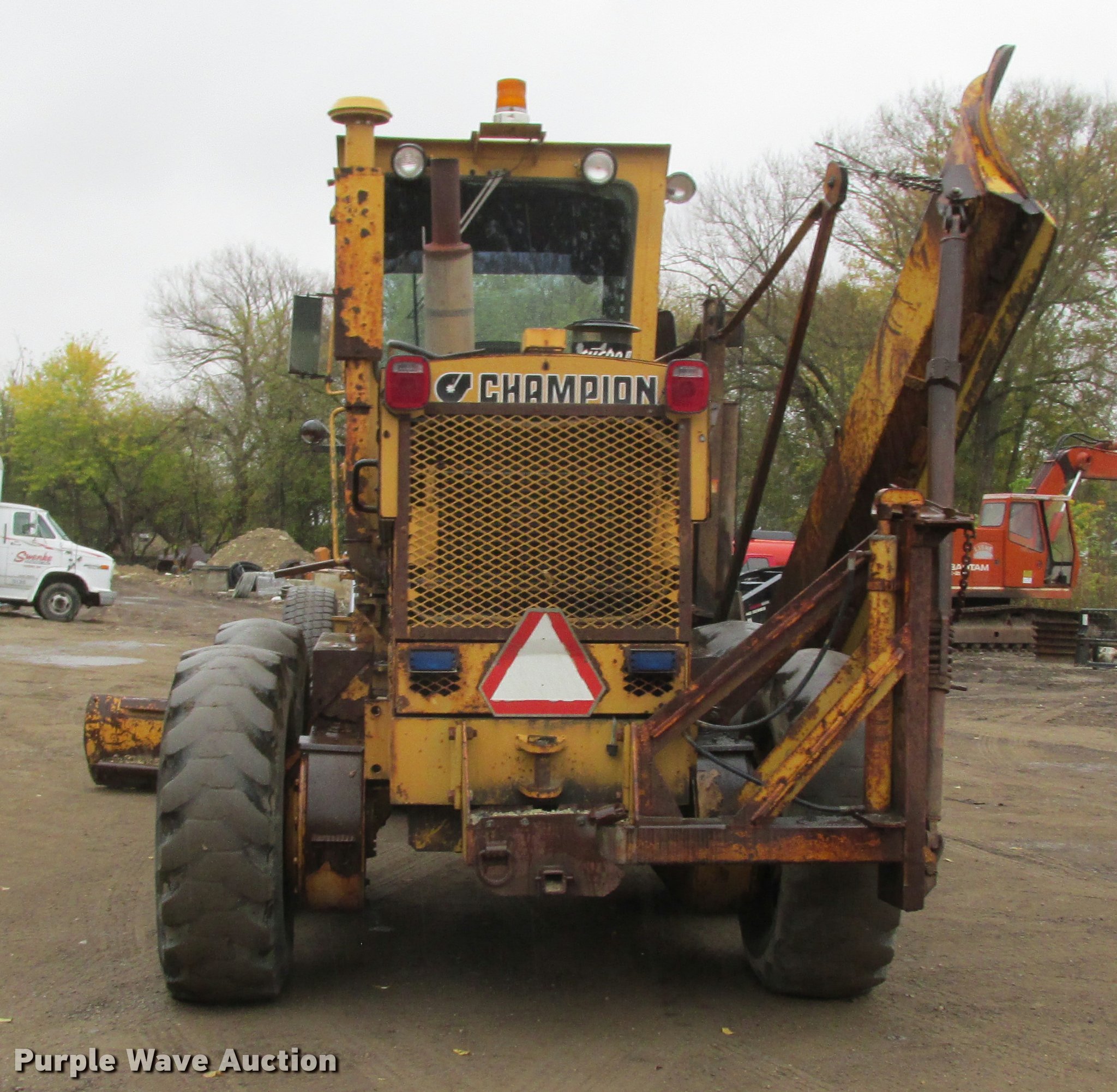 Purple Wave is selling a used Motor Grader in Minnesota. This item is a 1989 Champion 730A motor grader with the following: 986 hours on meter, Cummins six cylinder diesel engine, Powershift transmission, 8F-4R gears, EROPS, AC and heat, Suspension seat, Nine control valves, Front and rear work lights, 16'W moldboard, Right blade extension, Tip control, Side shift, Falls front mounted lift group, 12' snow wing, 14.00-24 tires, Non-operational AC, Glass cracked, Serial 730A-177-474-19828-89