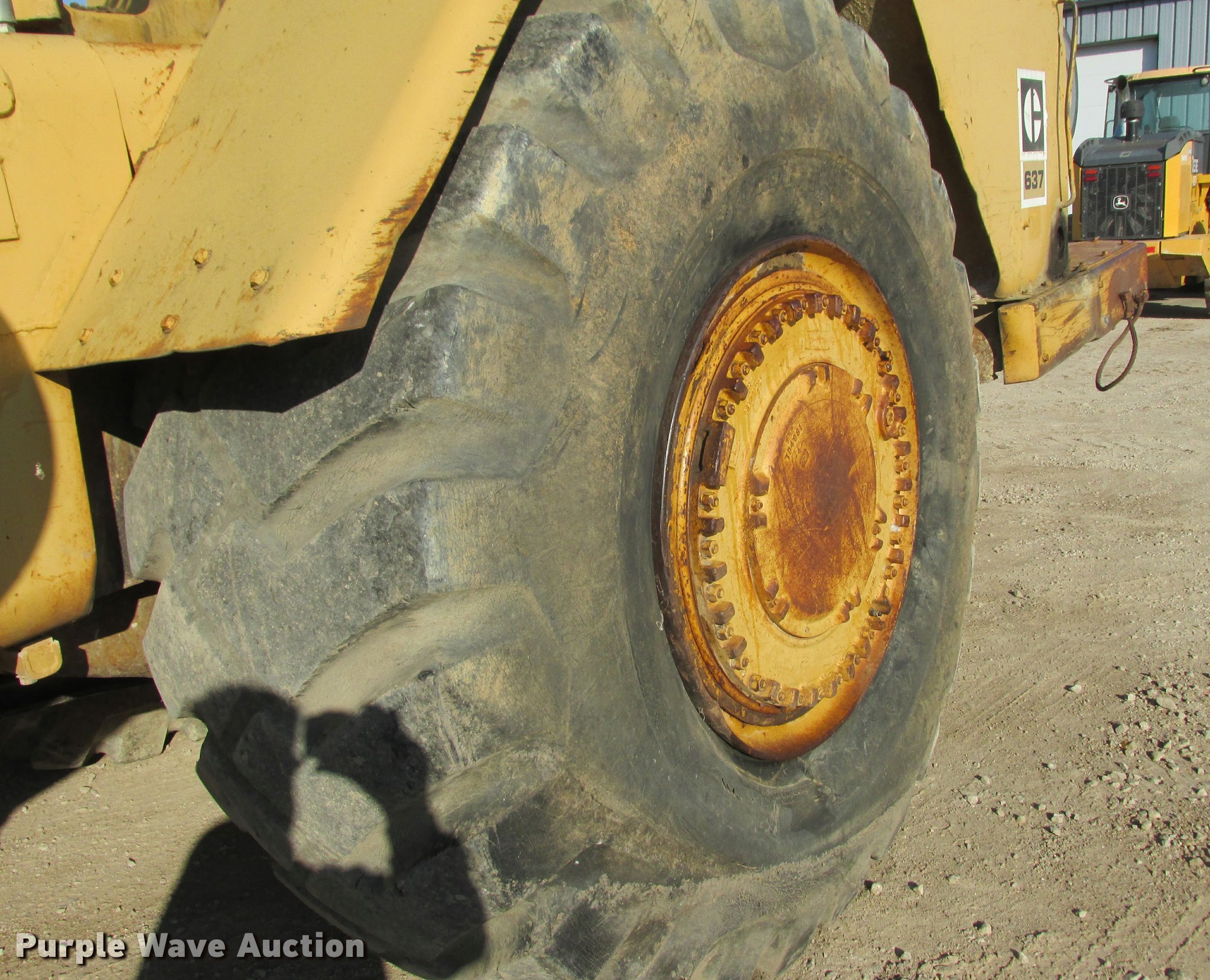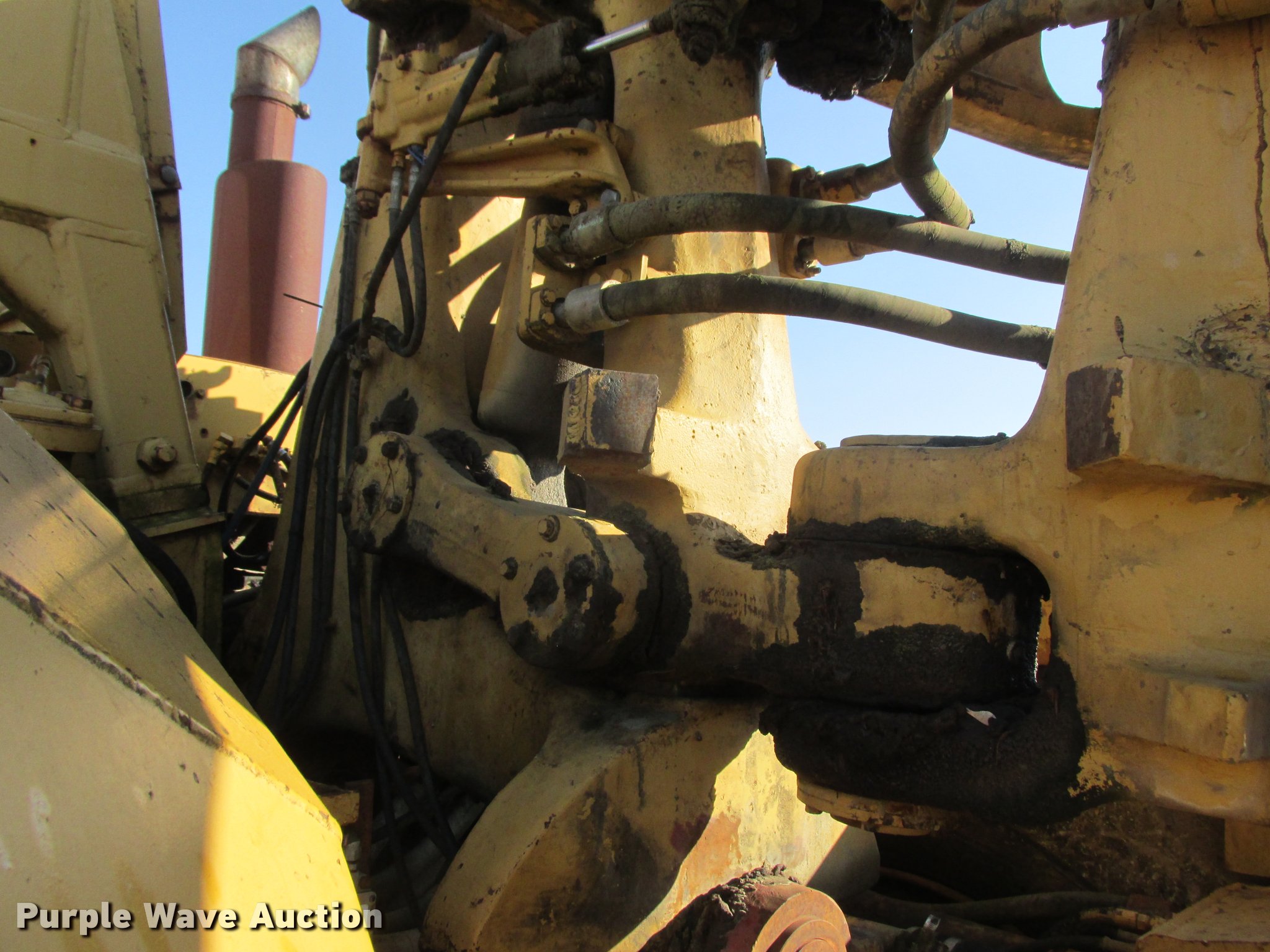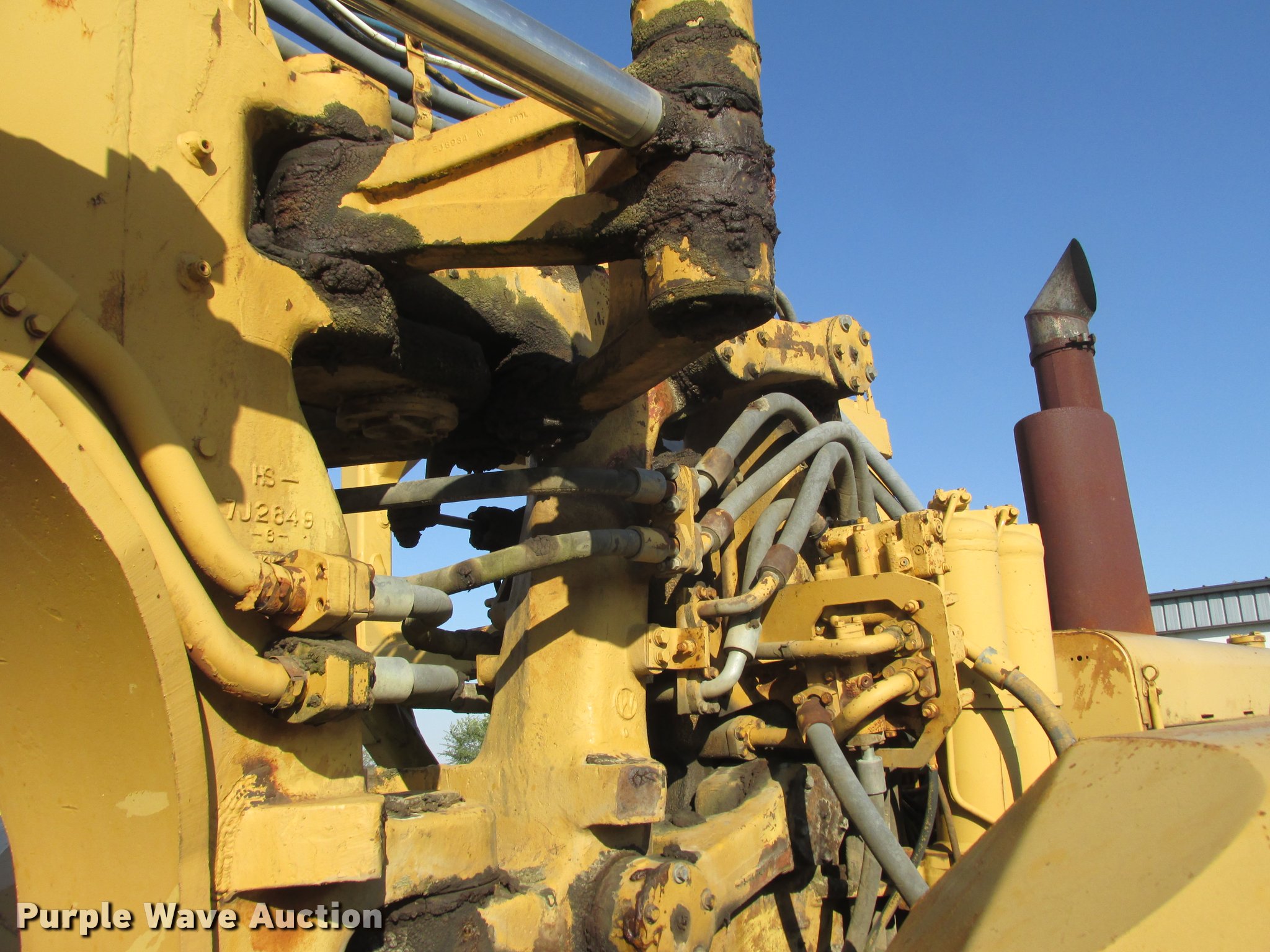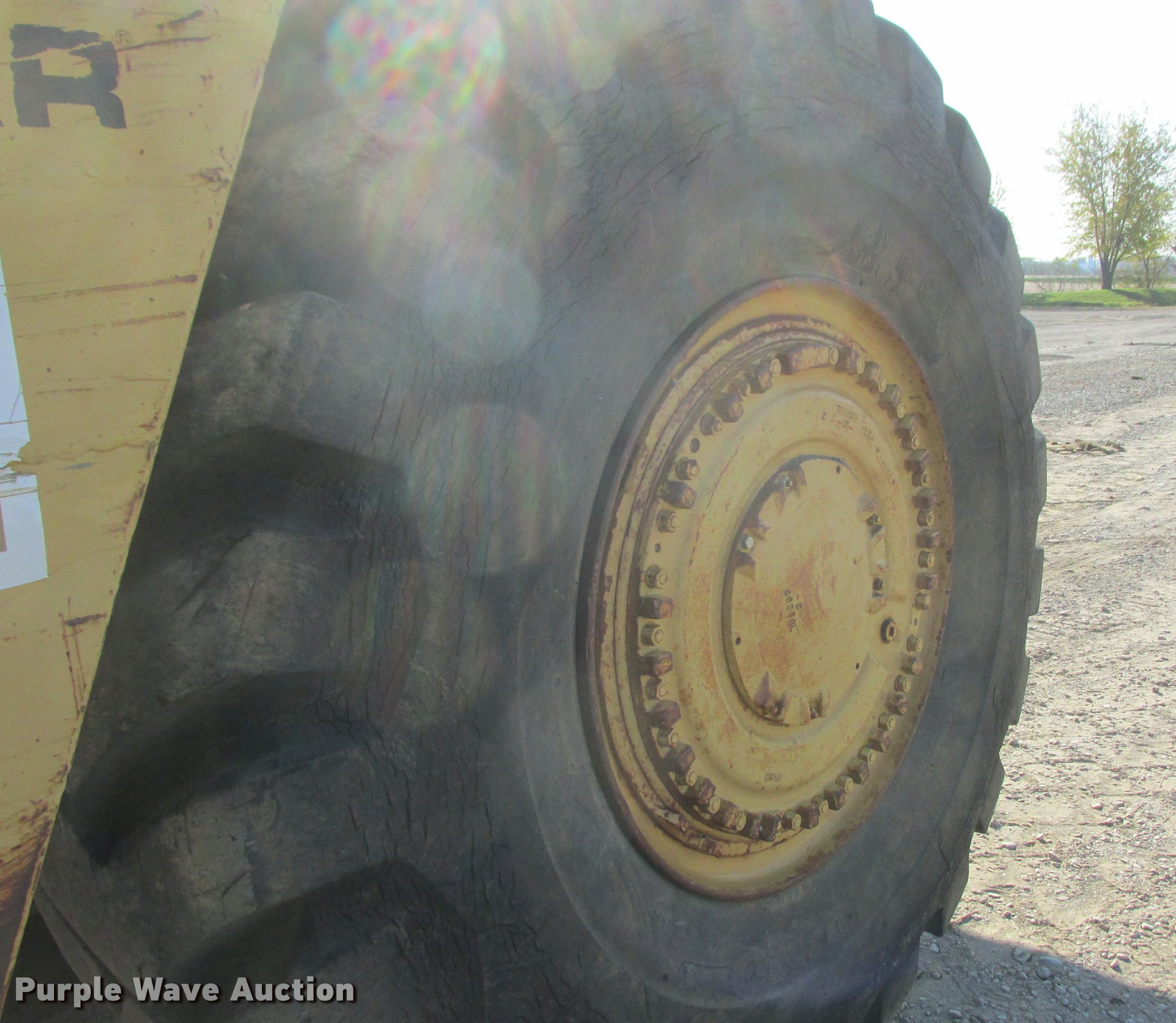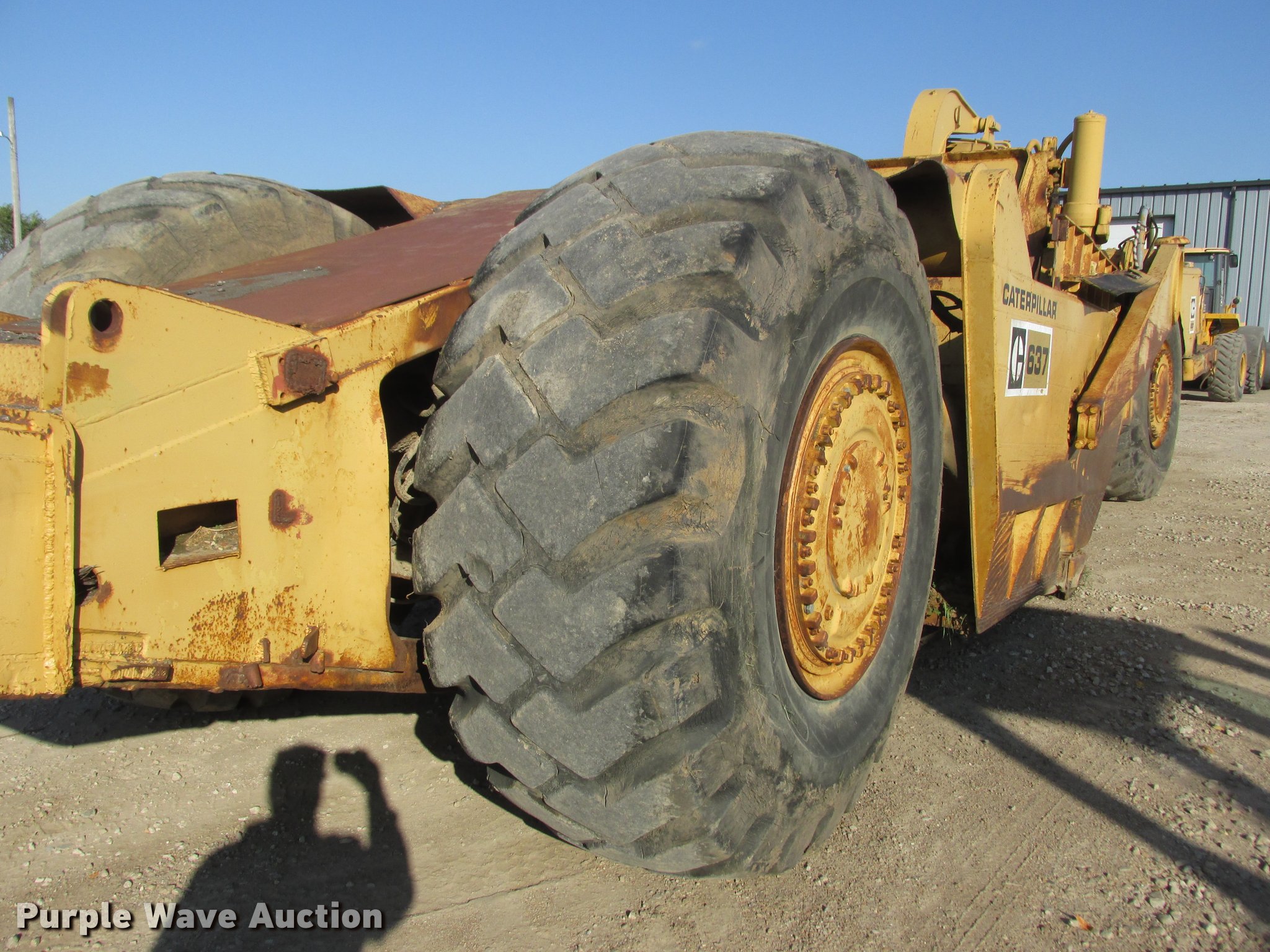 Purple Wave is selling a used Conventional Scraper in Minnesota. This item is a 1973 Caterpillar 637 conventional scraper with the following: 7,371 hours on meter, Caterpillar 3406 six cylinder turbo diesel engine, Powershift transmission, 8F-1R gears, OROPS, Suspension seat, Backup alarm, 31 cu.yd. bowl capacity, Three lever controls, Reversible cutting edge, Hydraulic lift, Rear push block, Cushion hitch, Front work lights, Air brakes, Firestone E-3 33.25-35 tires, Converted machine, Rear engine and transmission removed, Serial 79P526, Unit# R67
