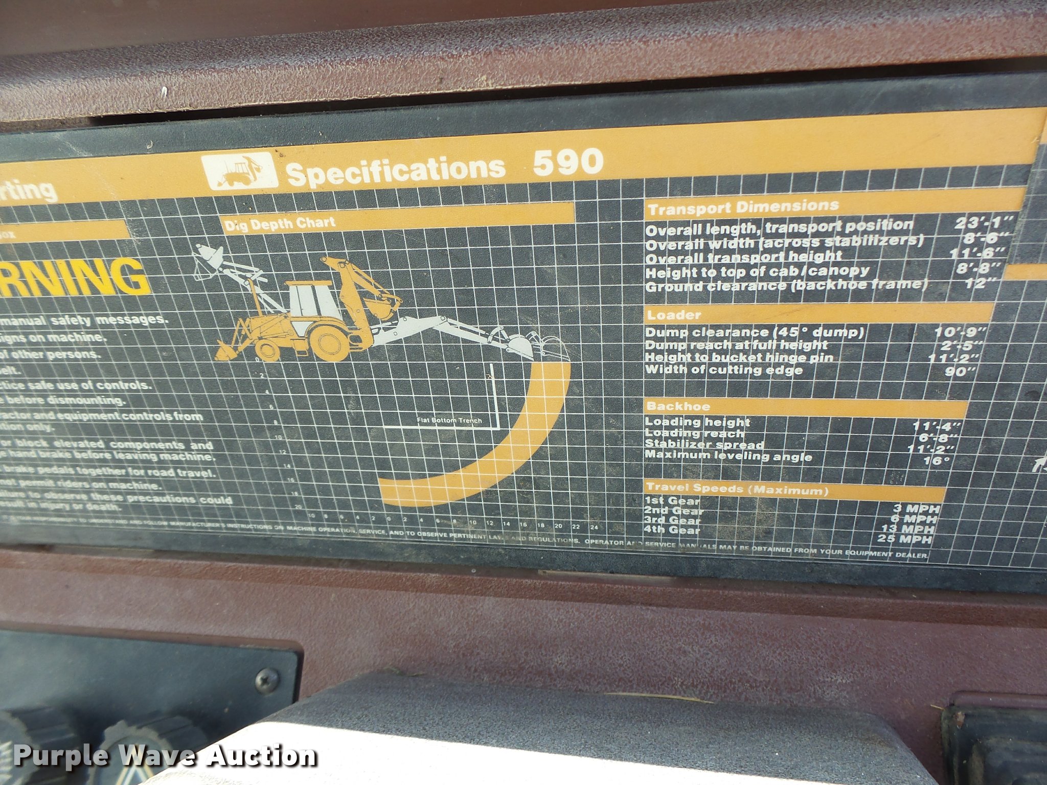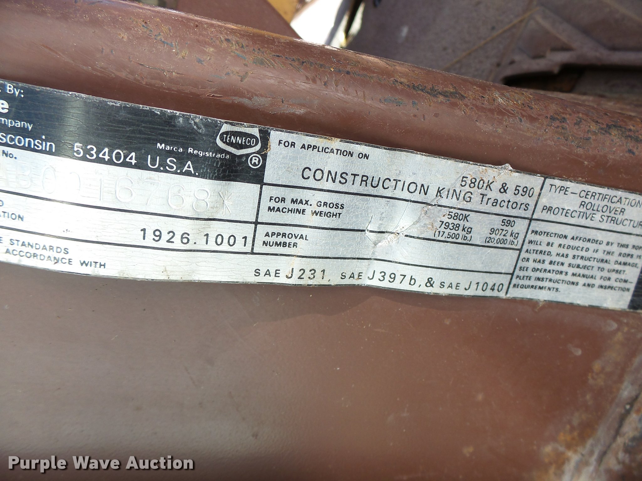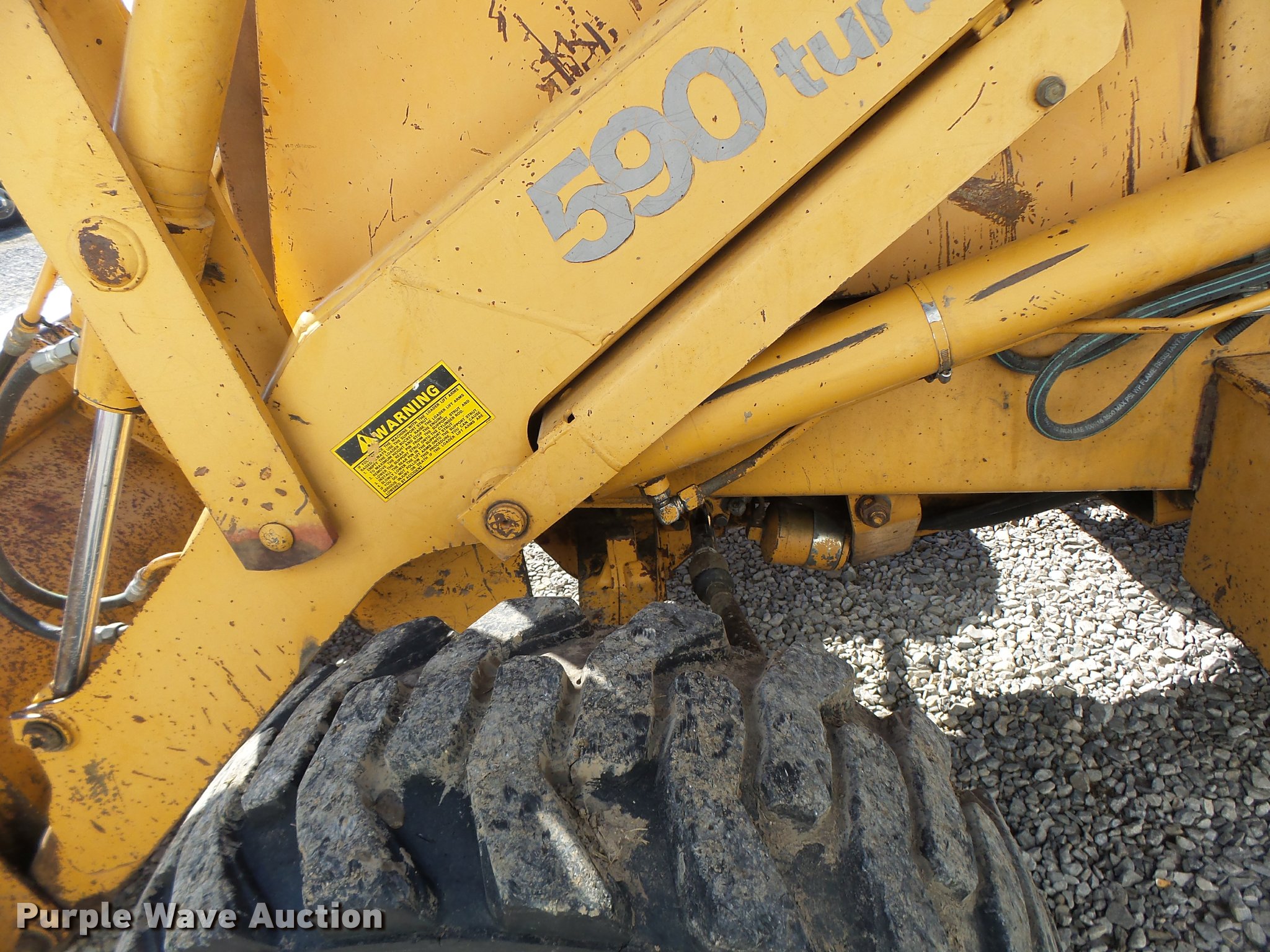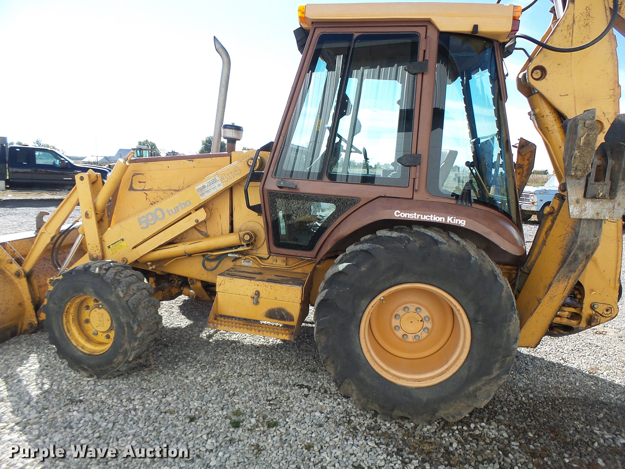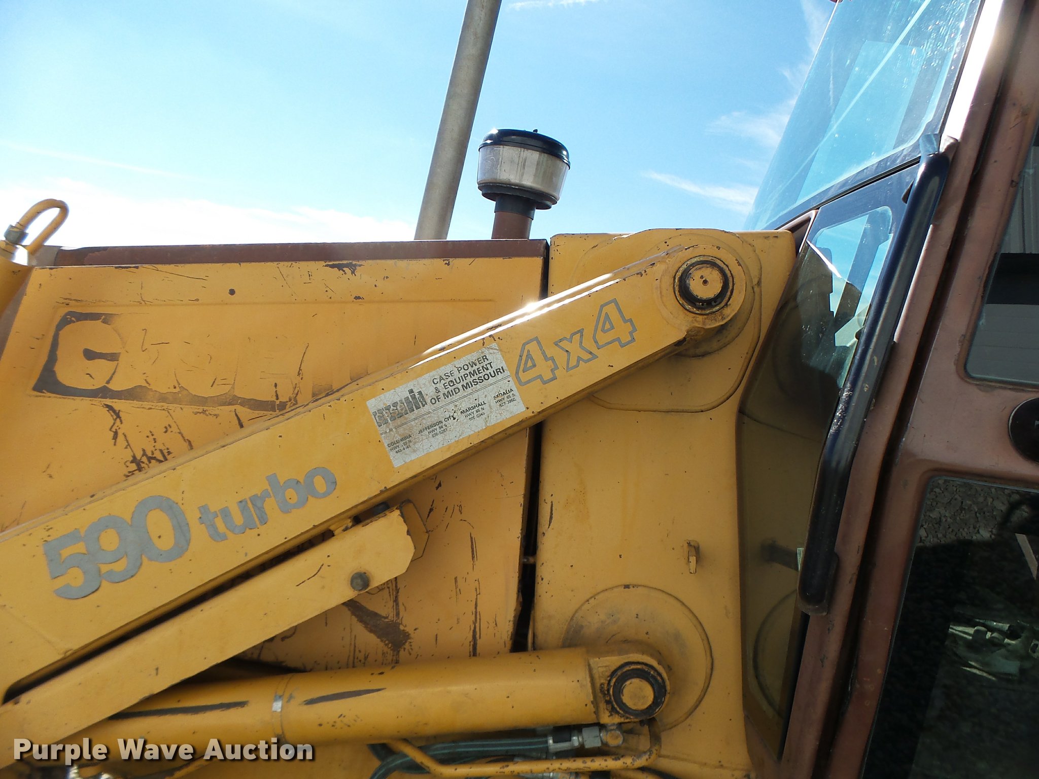 Purple Wave is selling a used Tractor Loader Backhoe in Missouri. This item is a 1991 Case 590 backhoe with the following: 7,434 hours on meter, 2010 Cummins 4BT92-2100 four cylinder turbo diesel engine, Serial 60126168, Shuttle shift transmission, 4F-4R gears, Four wheel drive, EROPS, Suspension seat, Wipers, Front and rear work lights, 90"W loader bucket, E-stick, 30"W backhoe bucket, Bolt-on cutting edge, (5) teeth, 12-16.5 front tires, 19.5-24 rear tires, Re-manufactured engine installed at 6,648 hours, Serial JJG0205516