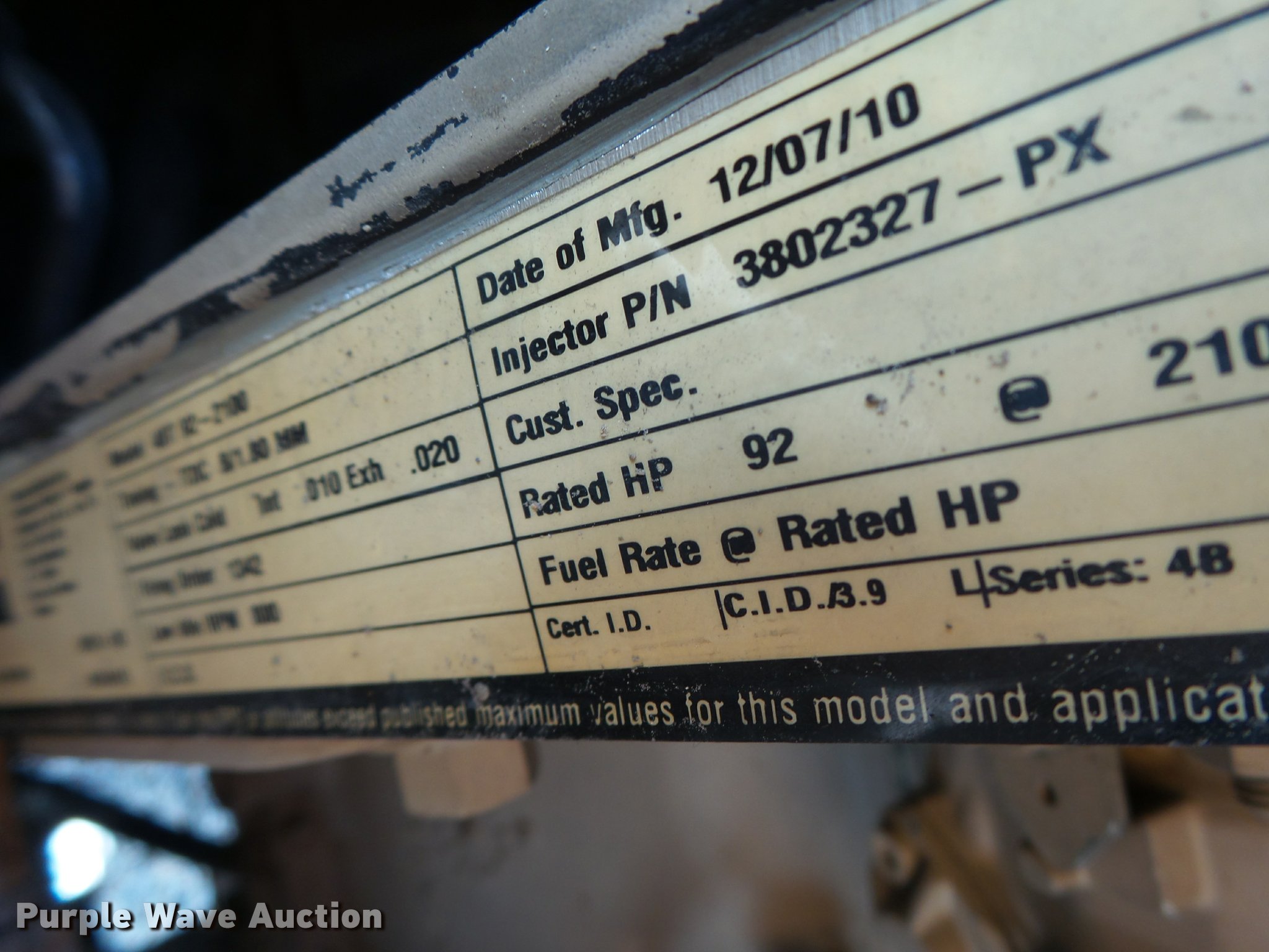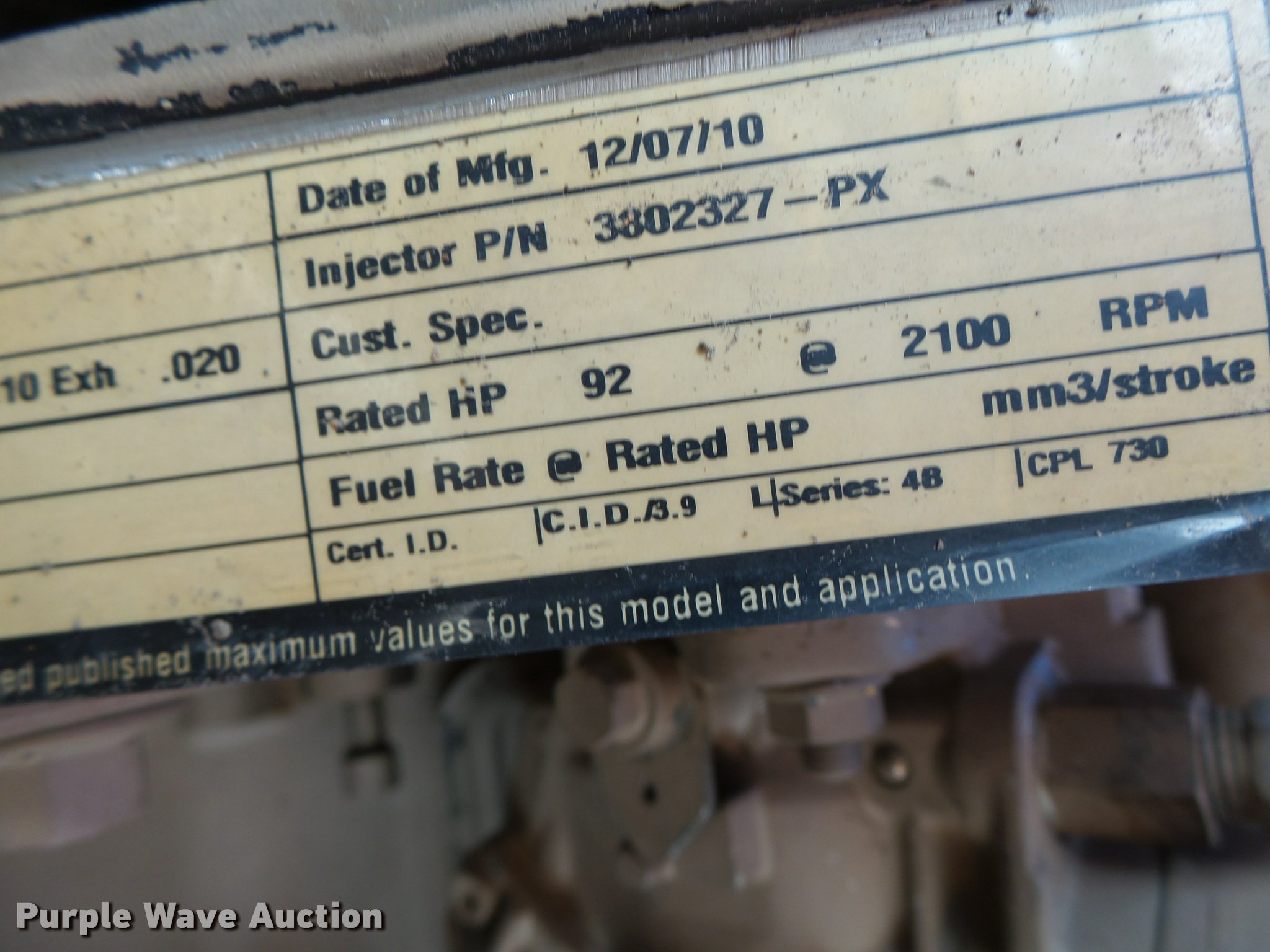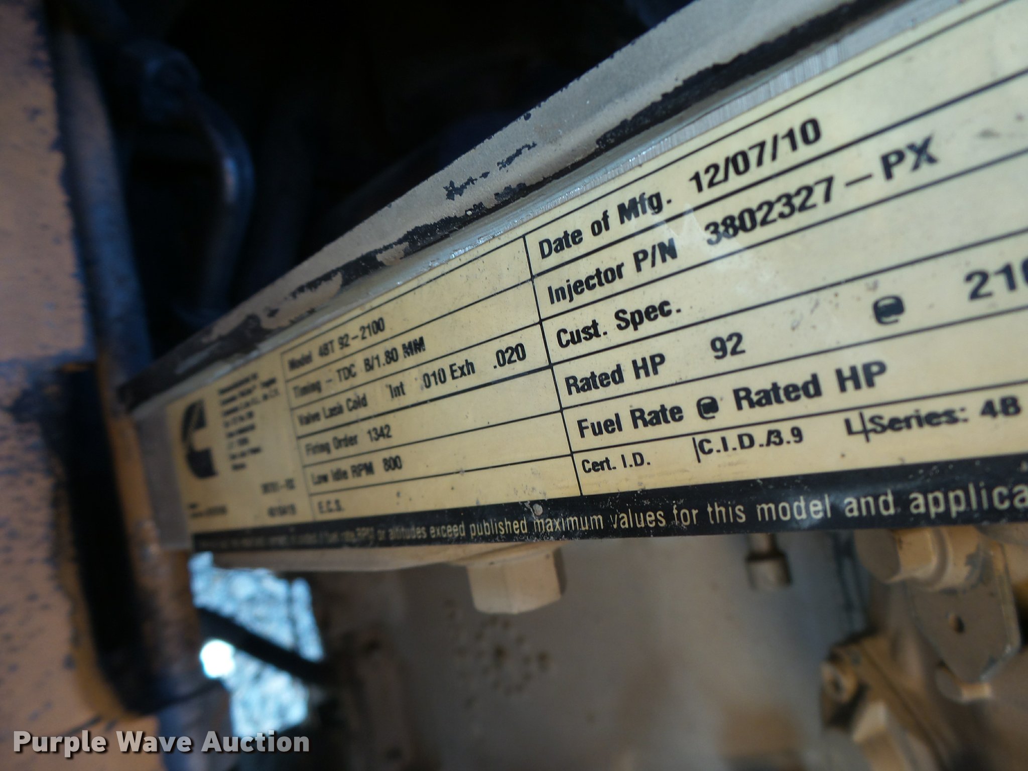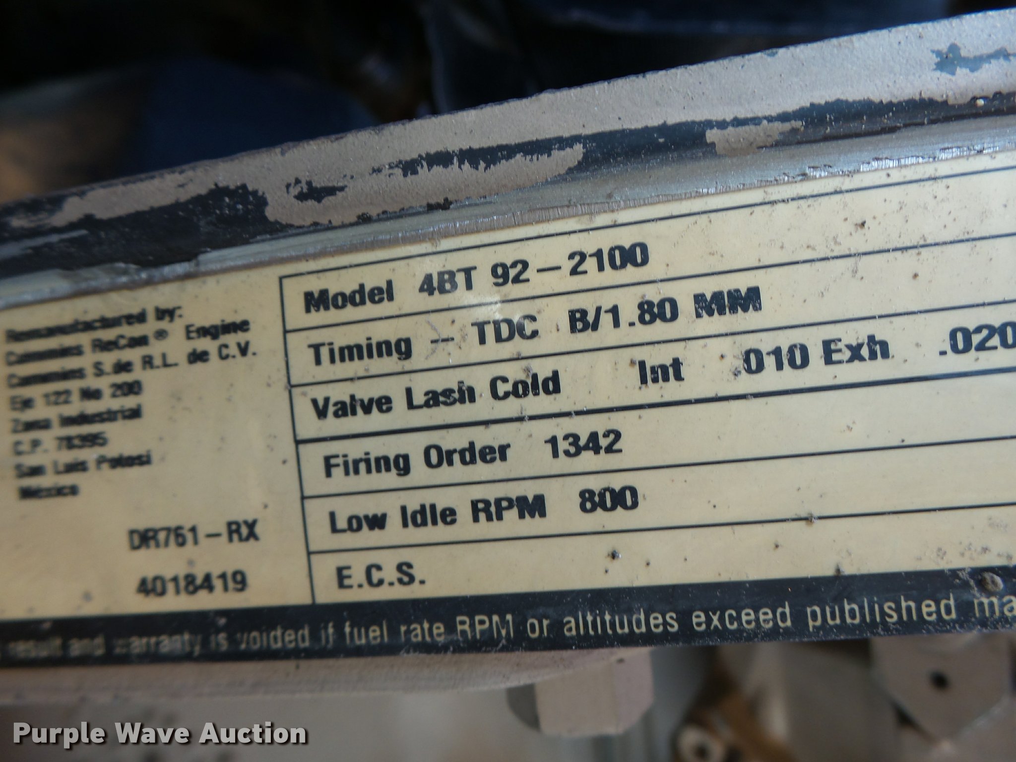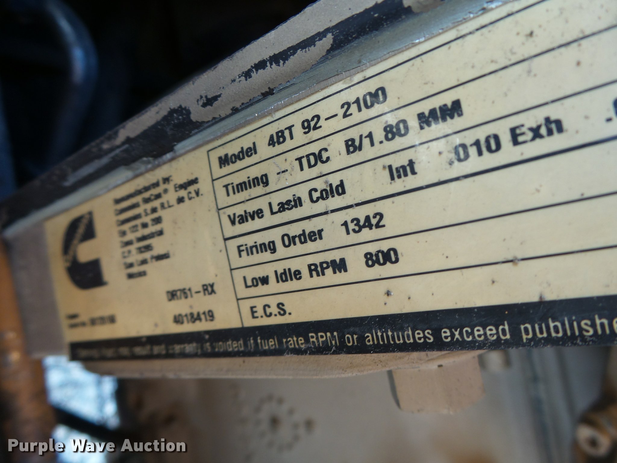 - 2010 Cummins 4BT92-2100 four cylinder turbo diesel engine