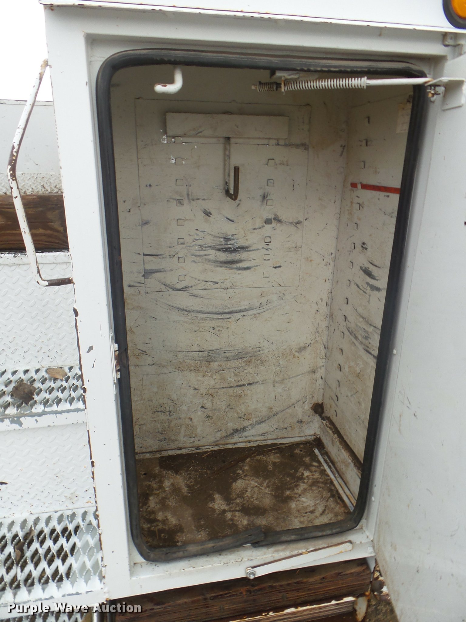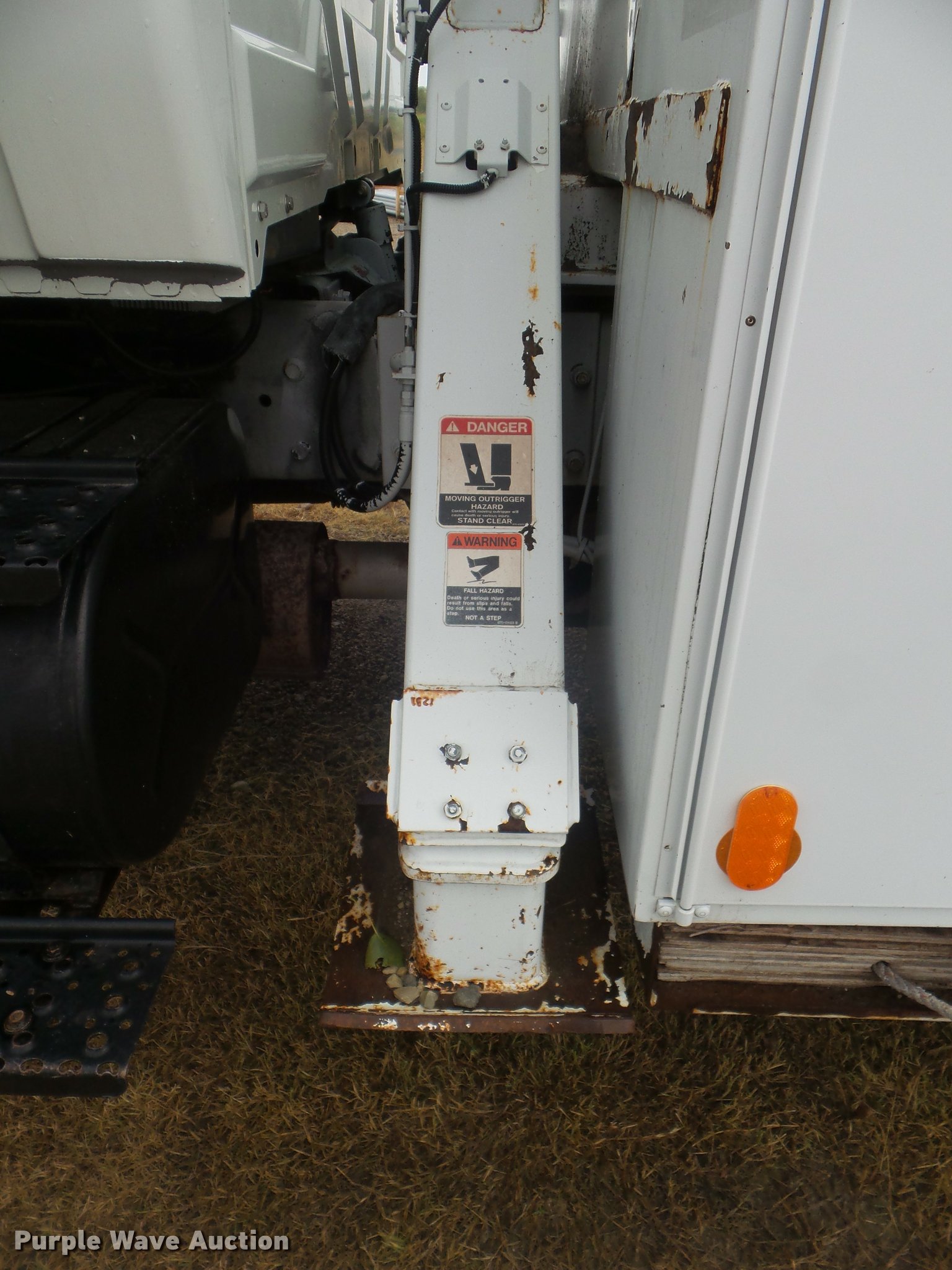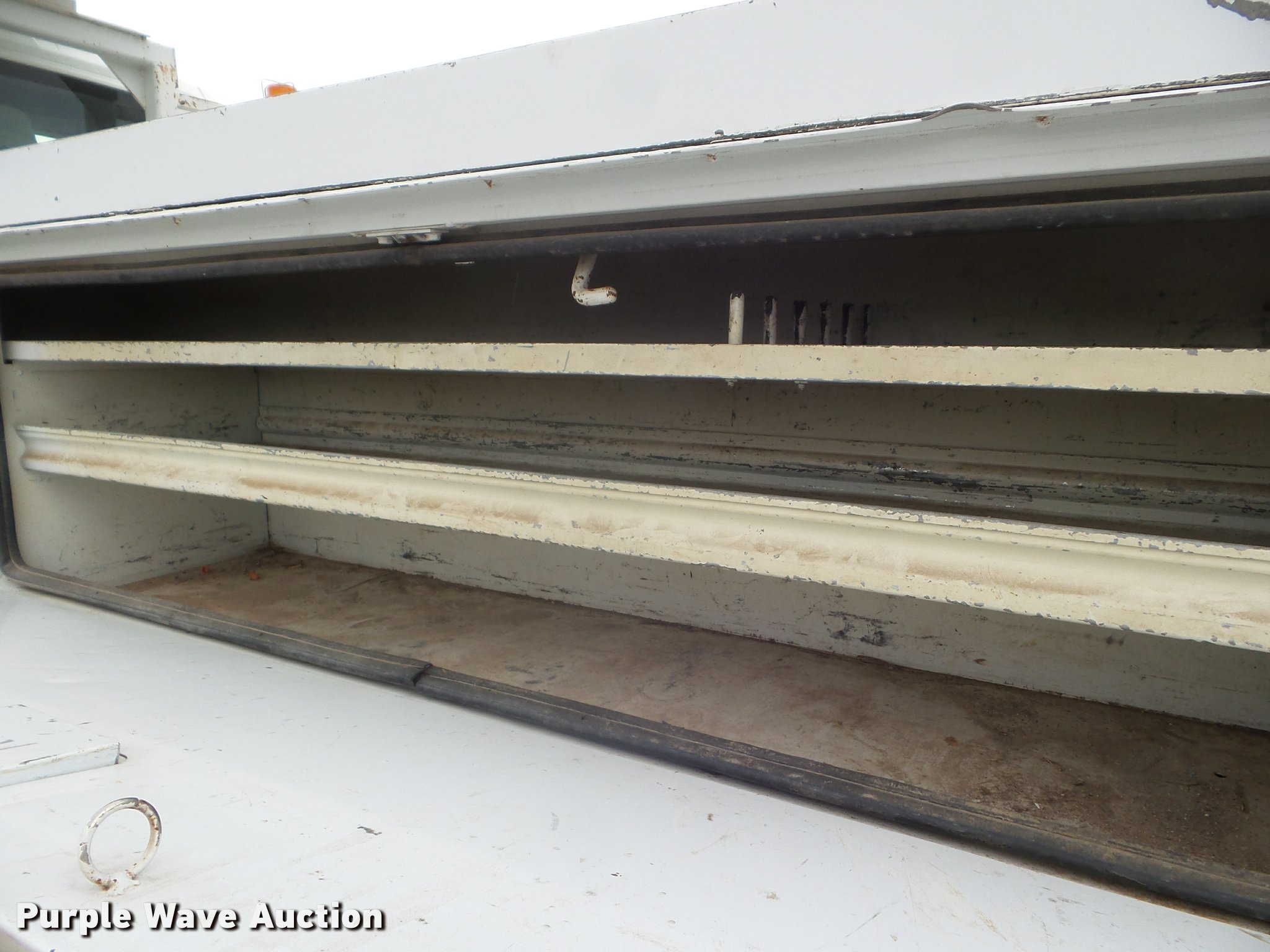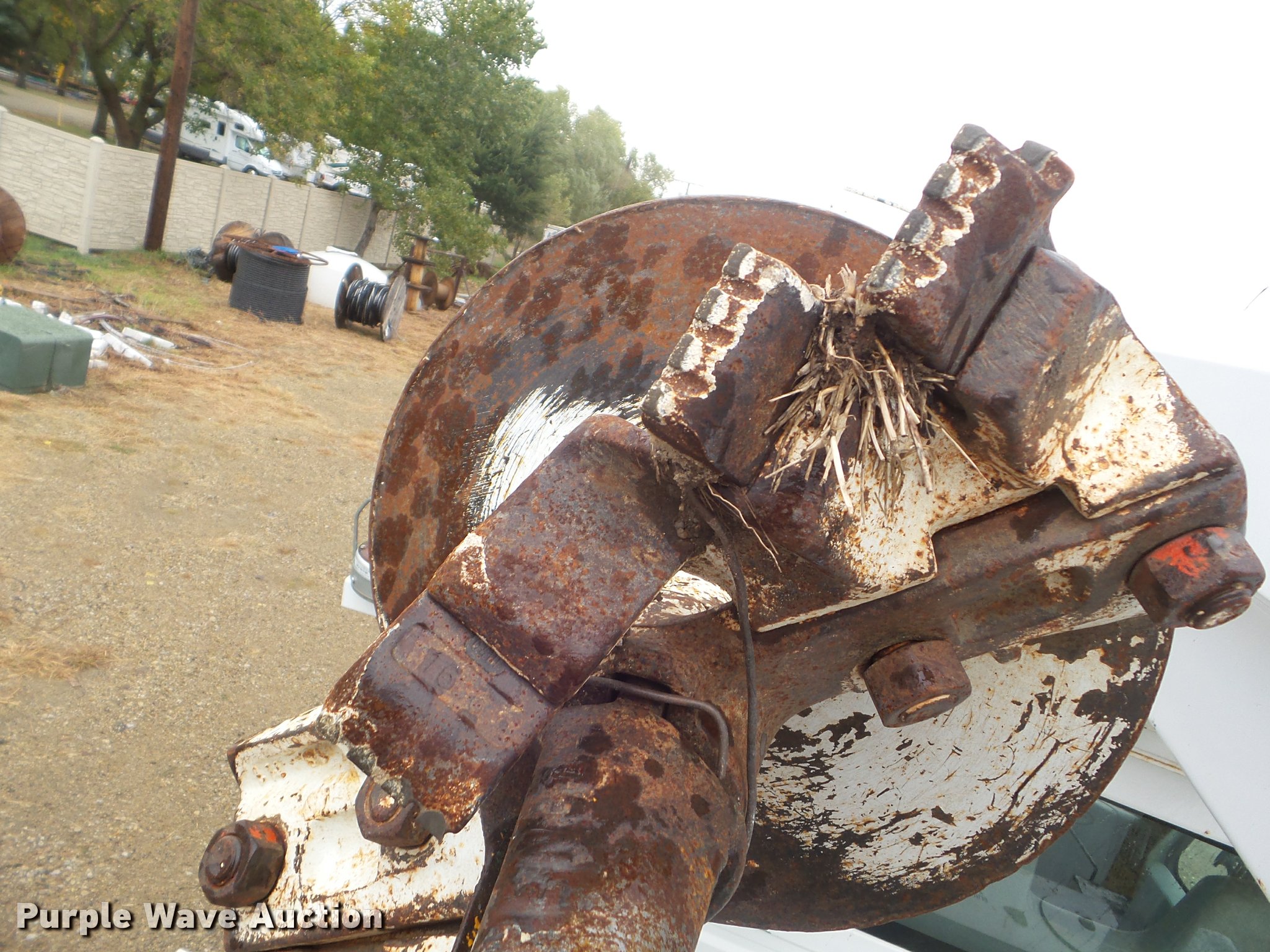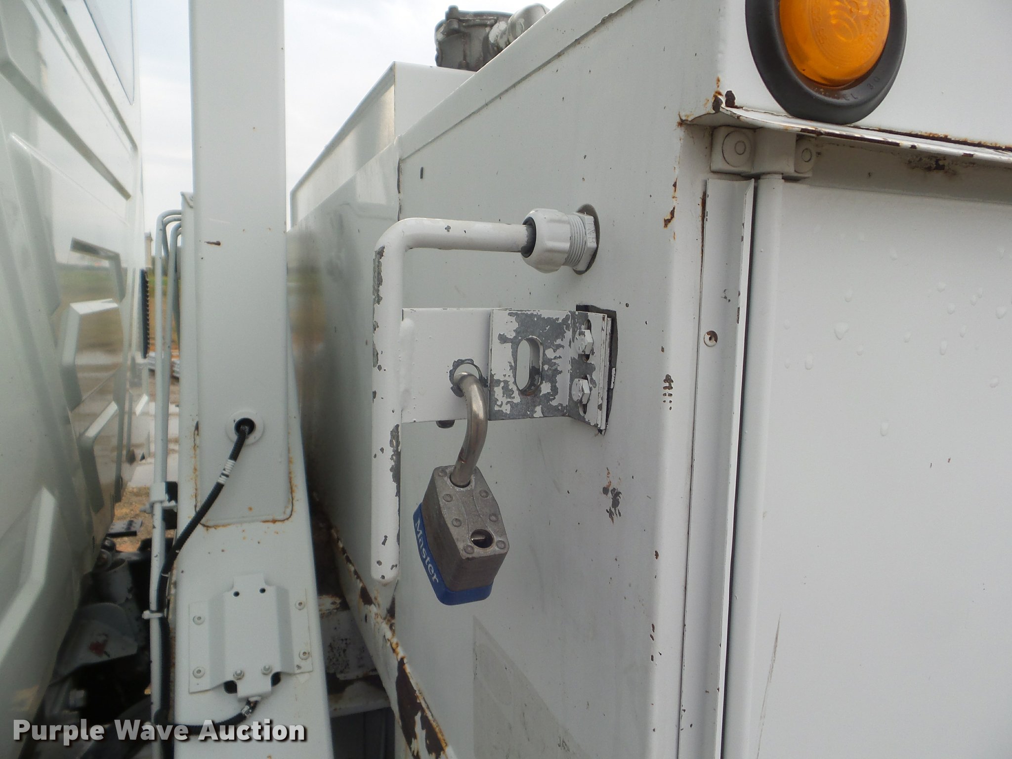 Purple Wave is selling a used Digger Derrick Truck in Kansas. This item is a 2005 International 7300 digger derrick truck with the following: 59,578 miles on odometer, 5,831 hours on meter, International DT466 7.6L L6 turbo diesel engine, Eaton Fuller six speed manual transmission, Four wheel drive, Single axle, AC and heat, Non-operational AC, possible condenser issues, Cruise, AM/FM, Suspensions eat, Brake controller, Backup alarm, Block heater, Front tow hooks, Beacon light, PTO, 2009 Altec service bed, 15'L, Shelving, Air hose reel, Glad hand connectors, Serial 37-3725412, 2005 Altec DM47TR digger derrick, 47' boom length, 23,790 lbs max lift capacity, Ground and platform controls, Boom rotation, Material handler, Pole guide, Insulated telescopic boom, 18" diameter auger, Removable teeth, 12,000 lbs winch line rating, (4) outriggers, Serial 0205DV1038, Pintle hitch, Trailer wiring, Single fuel tank, Spring suspension, Air brakes, 195" wheelbase, 11R22.5 tires