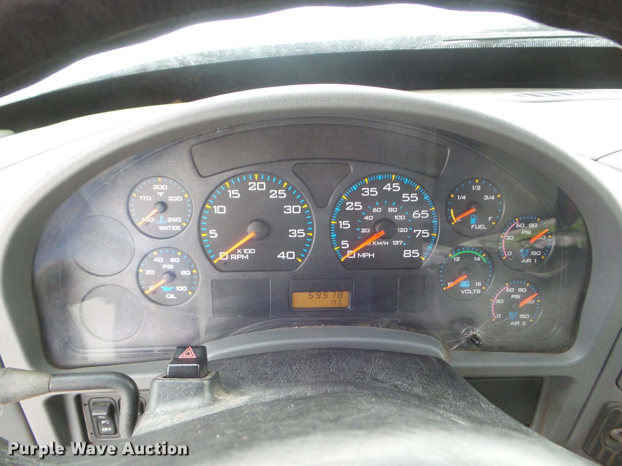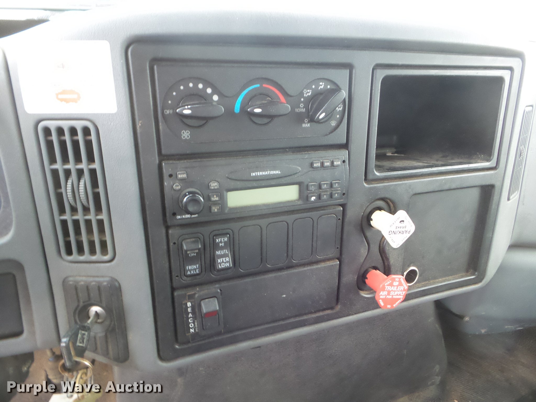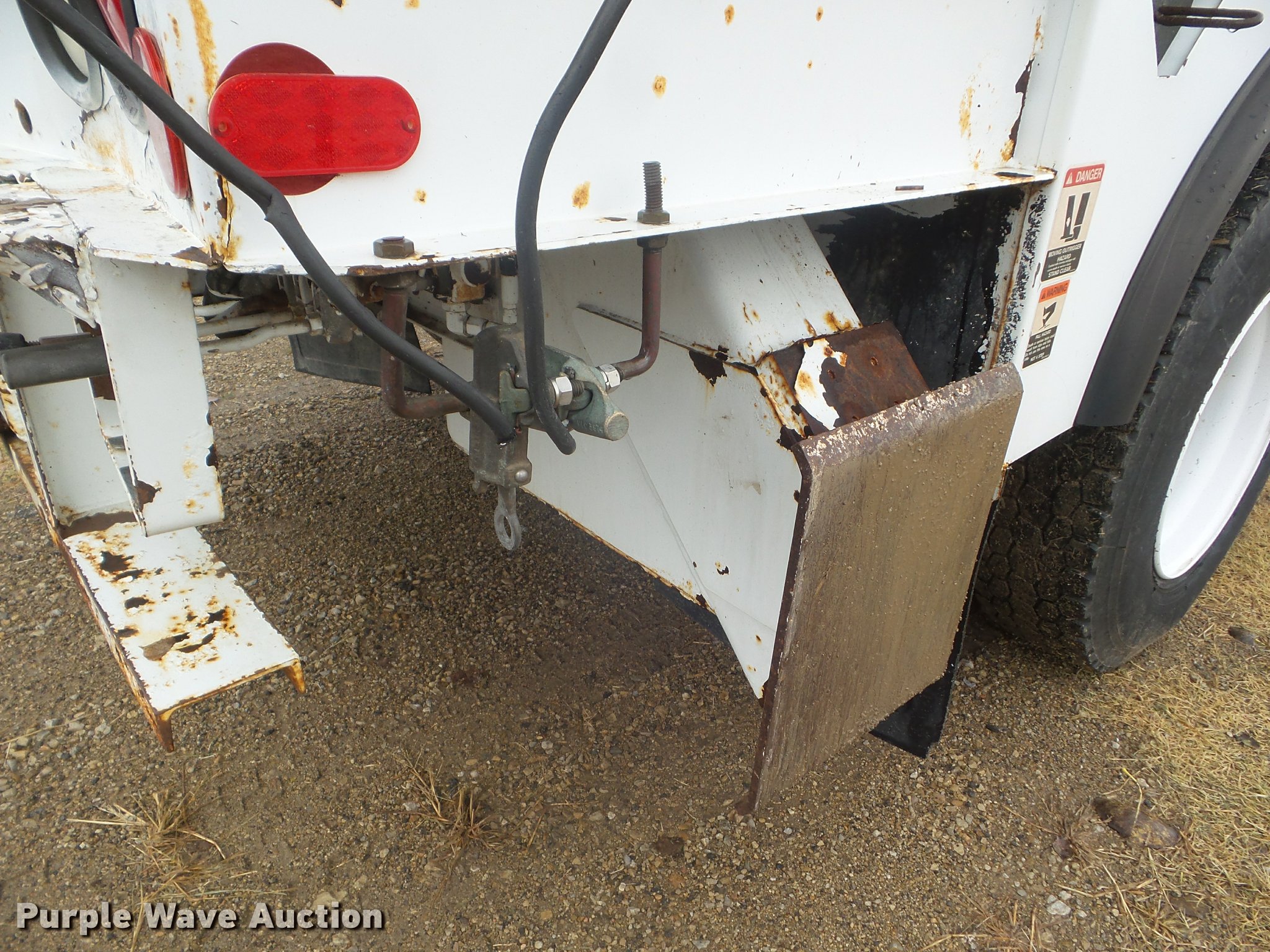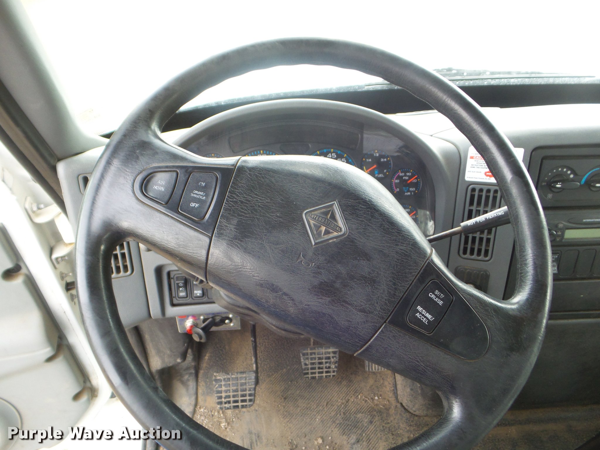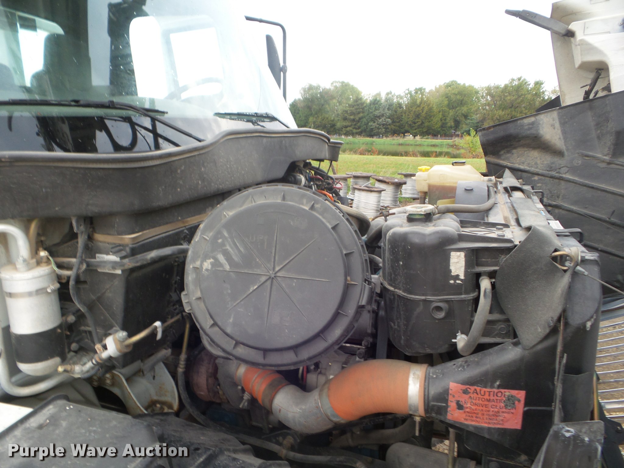 Purple Wave is selling a used Digger Derrick Truck in Kansas. This item is a 2005 International 7300 digger derrick truck with the following: 59,578 miles on odometer, 5,831 hours on meter, International DT466 7.6L L6 turbo diesel engine, Eaton Fuller six speed manual transmission, Four wheel drive, Single axle, AC and heat, Non-operational AC, possible condenser issues, Cruise, AM/FM, Suspensions eat, Brake controller, Backup alarm, Block heater, Front tow hooks, Beacon light, PTO, 2009 Altec service bed, 15'L, Shelving, Air hose reel, Glad hand connectors, Serial 37-3725412, 2005 Altec DM47TR digger derrick, 47' boom length, 23,790 lbs max lift capacity, Ground and platform controls, Boom rotation, Material handler, Pole guide, Insulated telescopic boom, 18" diameter auger, Removable teeth, 12,000 lbs winch line rating, (4) outriggers, Serial 0205DV1038, Pintle hitch, Trailer wiring, Single fuel tank, Spring suspension, Air brakes, 195" wheelbase, 11R22.5 tires