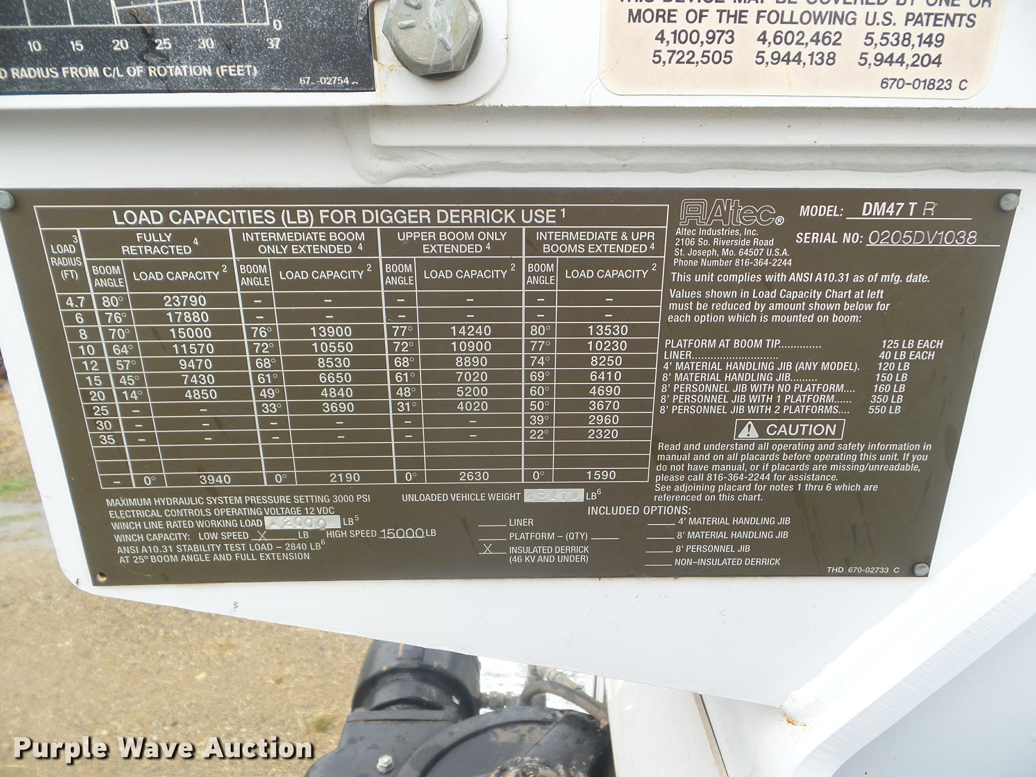 - 2005 Altec DM47TR digger derrick