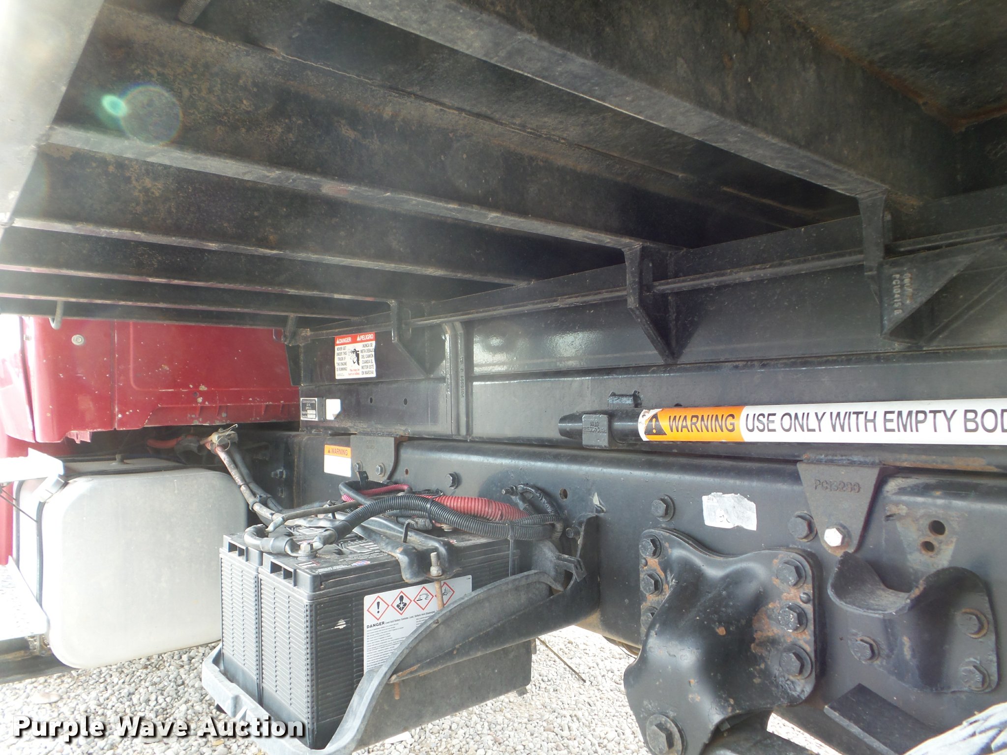 2007 Sterling Acterra dump truck. 193,305 miles on odometer, Caterpillar C7 Acert 7.2L L6 turbo diesel engine 300 HP, Eaton Fuller 10 speed manual transmission, Single axle, Inter-axle differential lock, AC and heat, Tilt, Cruise, AM/FM/CD, Heated mirrors, Air suspension seat, PTO, Godwin 300U steel dump bed 10'L x 8'W, 32" side height, 12" side board height, Single ram hoist, Manual operated end gate, Dual fuel tanks, Spring suspension, Air brakes, Engine brake, 295/75R22.5 tires, GVWR 33,000 lbs, FAWR 12,000 lbs, RAWR 21,000 lbs. Kansas title. 2FZACGDC27AY51226. Franks Plumbing. 23903 12 Road. Montezuma, KS 67867