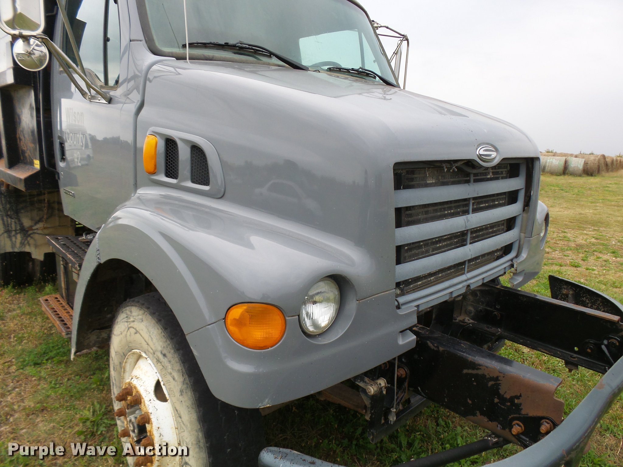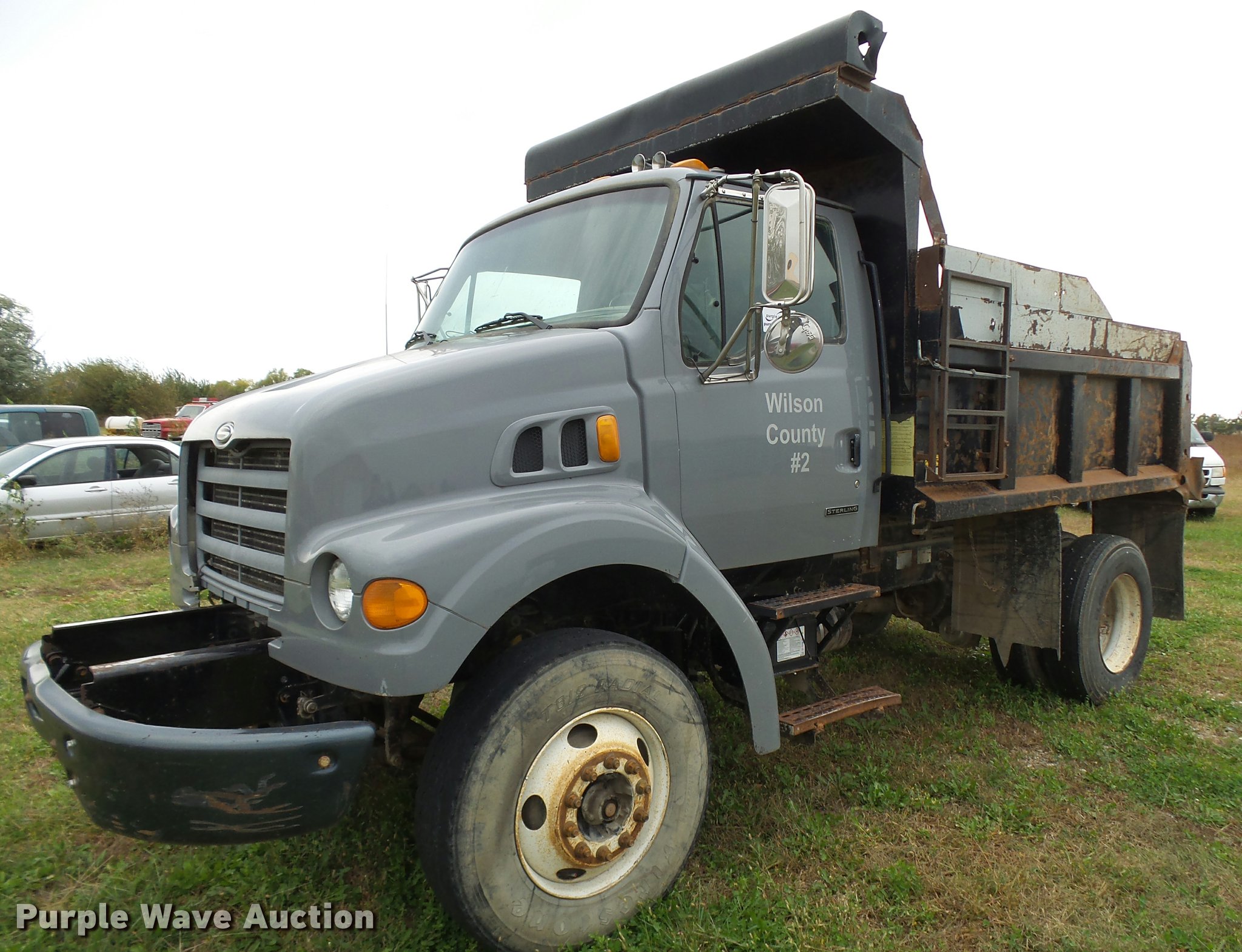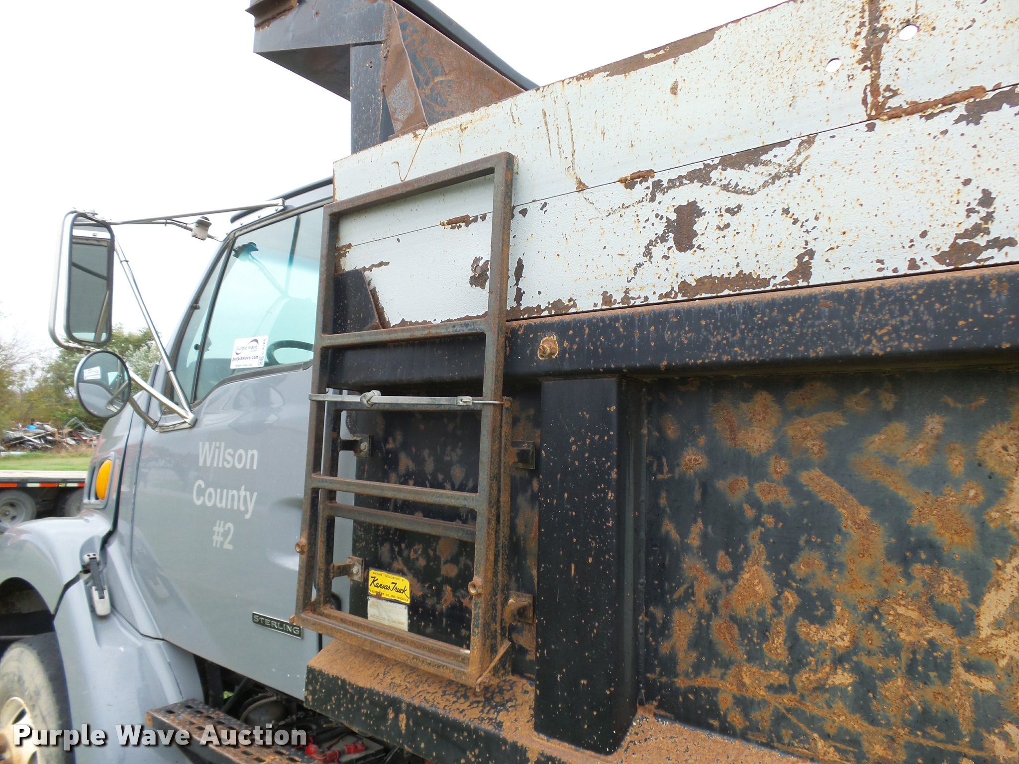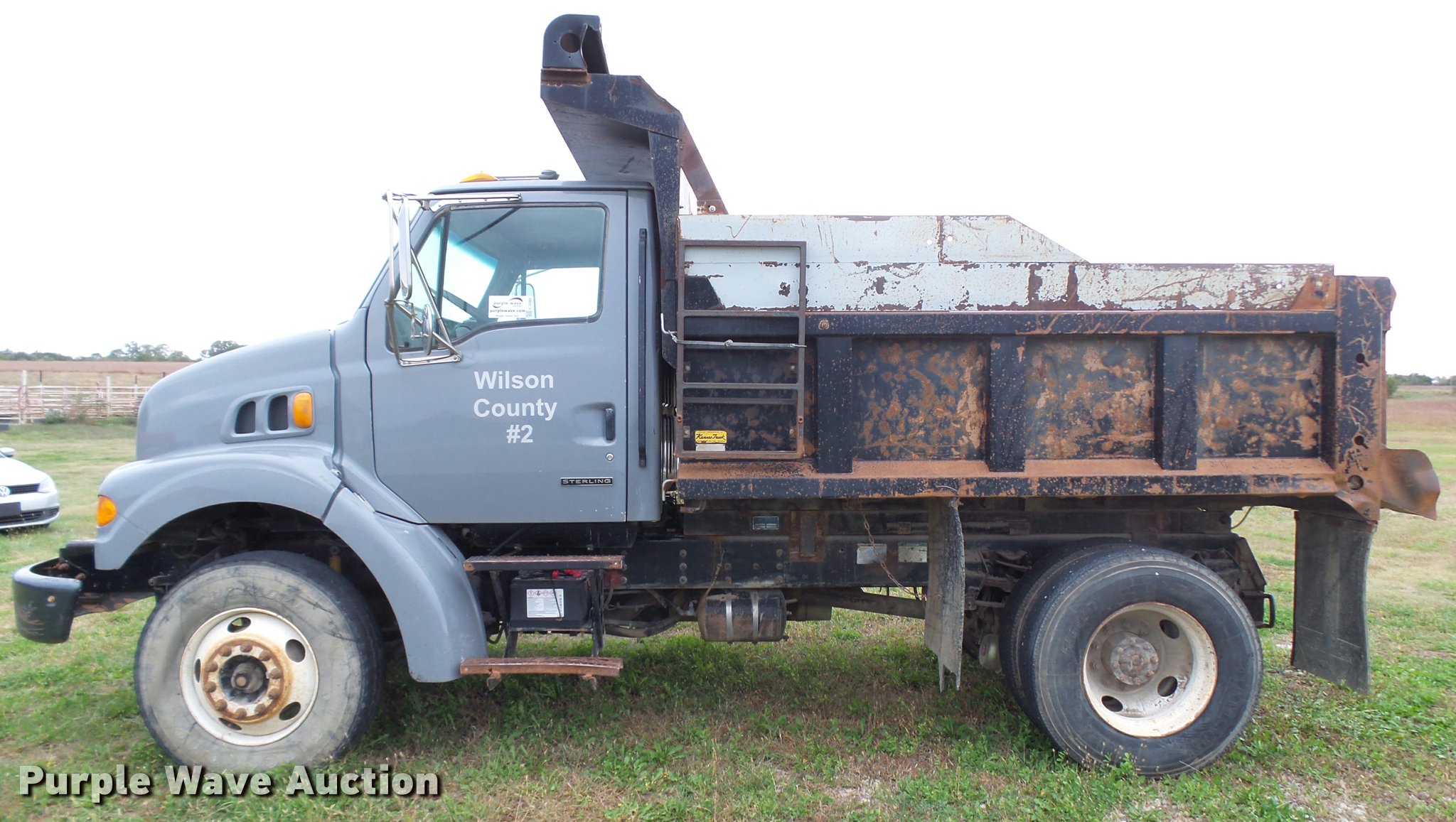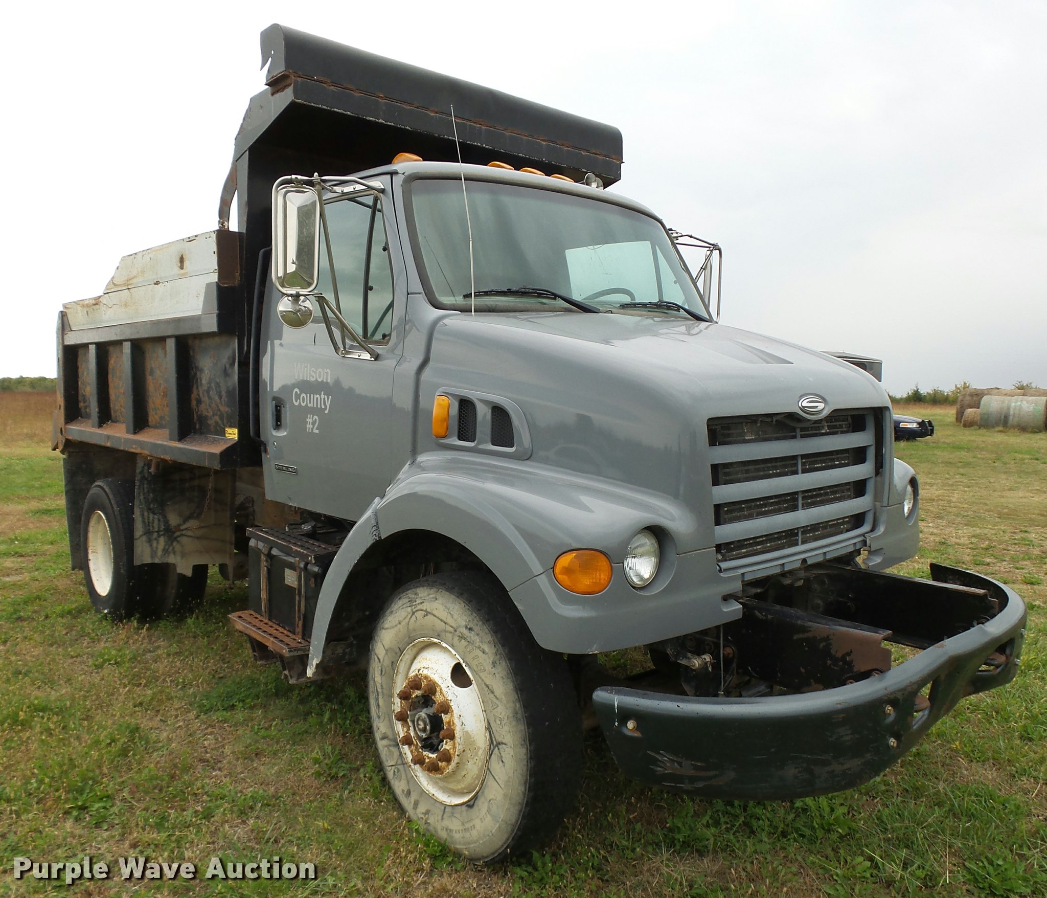 Purple Wave is selling a used Construction Dump Truck in Kansas. This item is a 2000 Sterling L7500 dump truck with the following: 364,471 miles on odometer, 14,830 hours on meter, Caterpillar 3126 7.2L L6 diesel engine, Eaton Fuller Road Ranger nine speed manual transmission, Single axle, AC and heat, Cruise, AM/FM, Air suspension seat, Front mounted PTO, Warren 451-10 steel dump bed, 10'L x 96"W, 36" side height, Single ram hoist, Single fuel tank, Trailer wiring, Spring suspension, Air brakes, 11R22.5 front tires