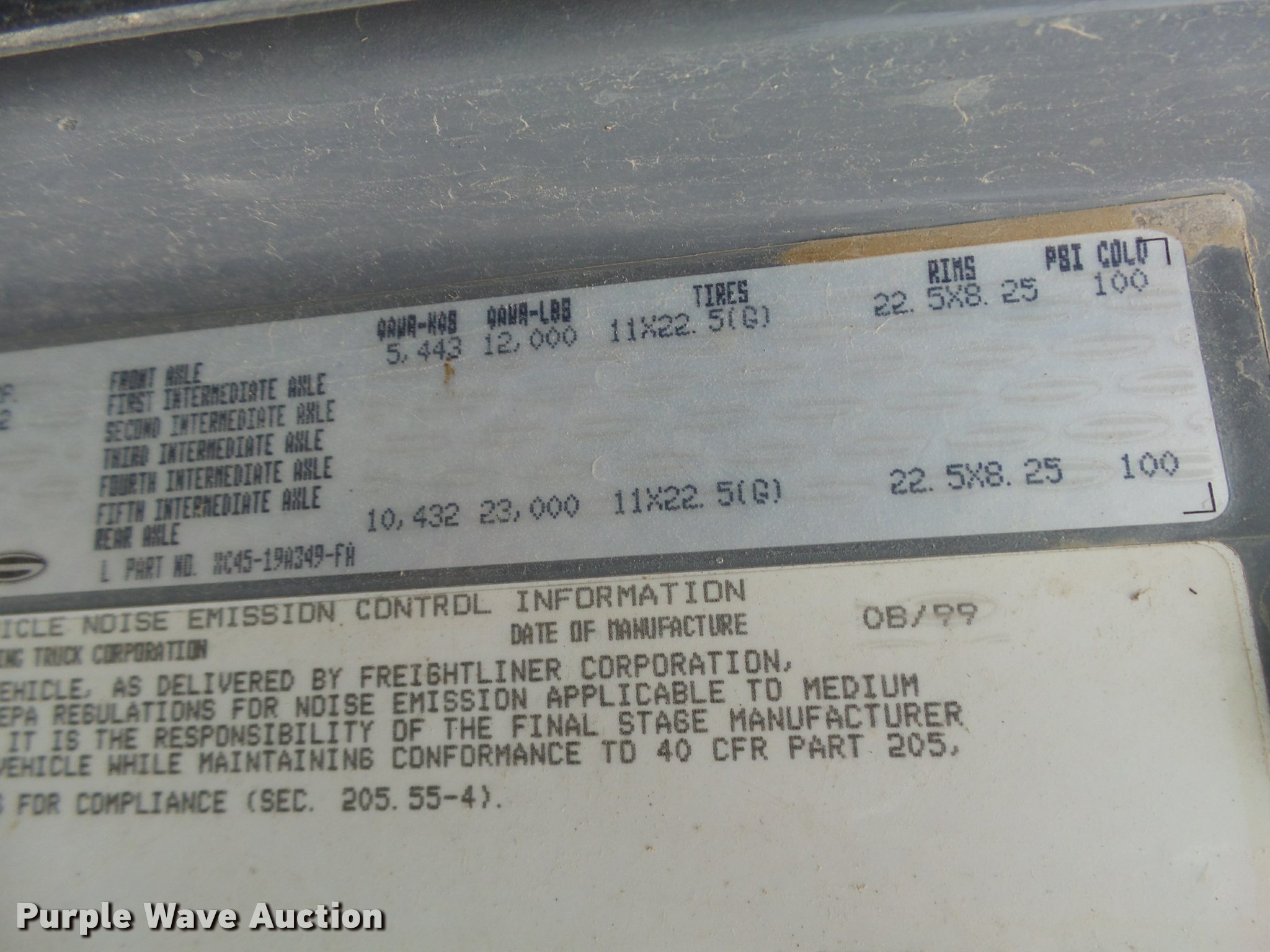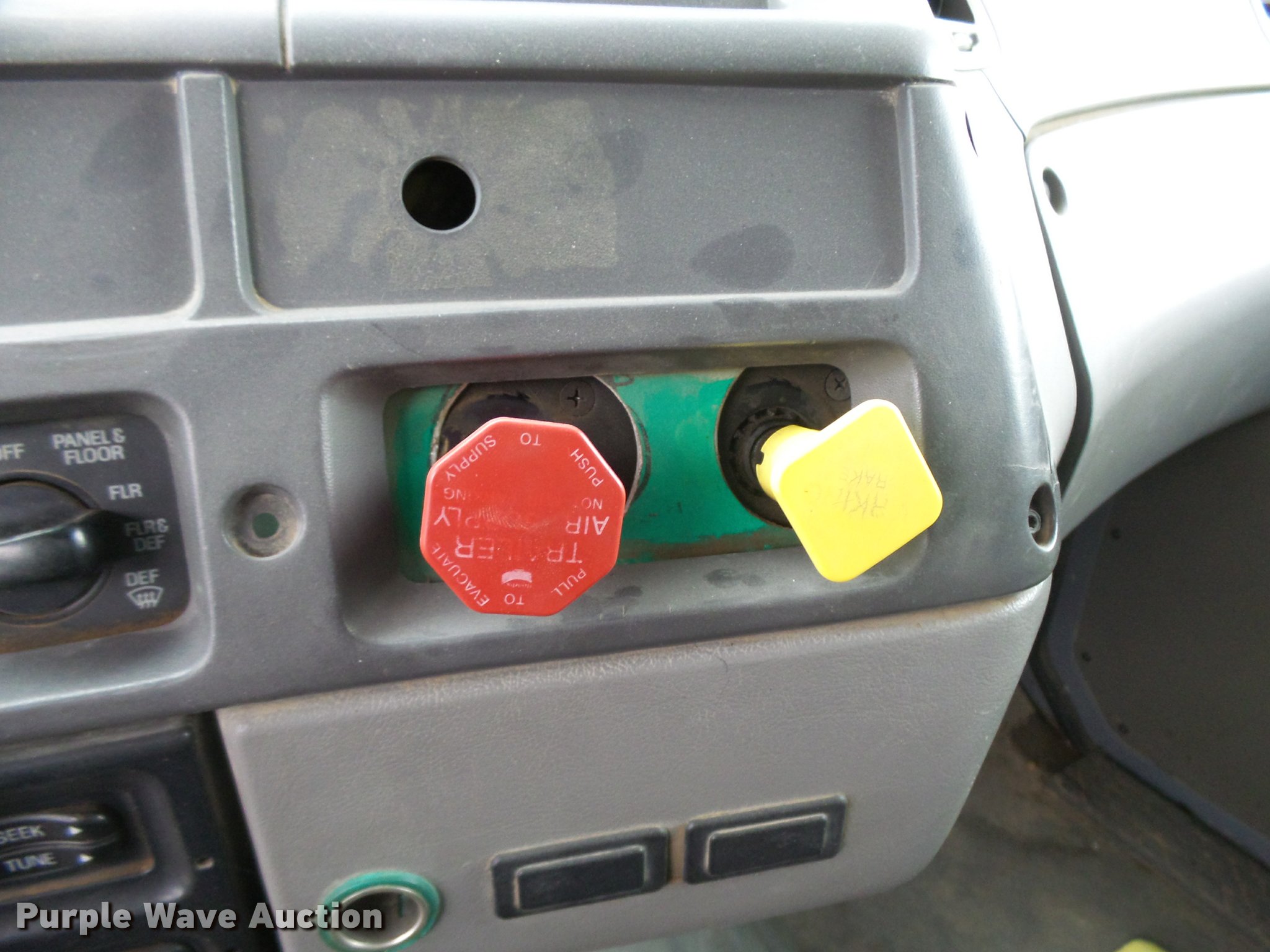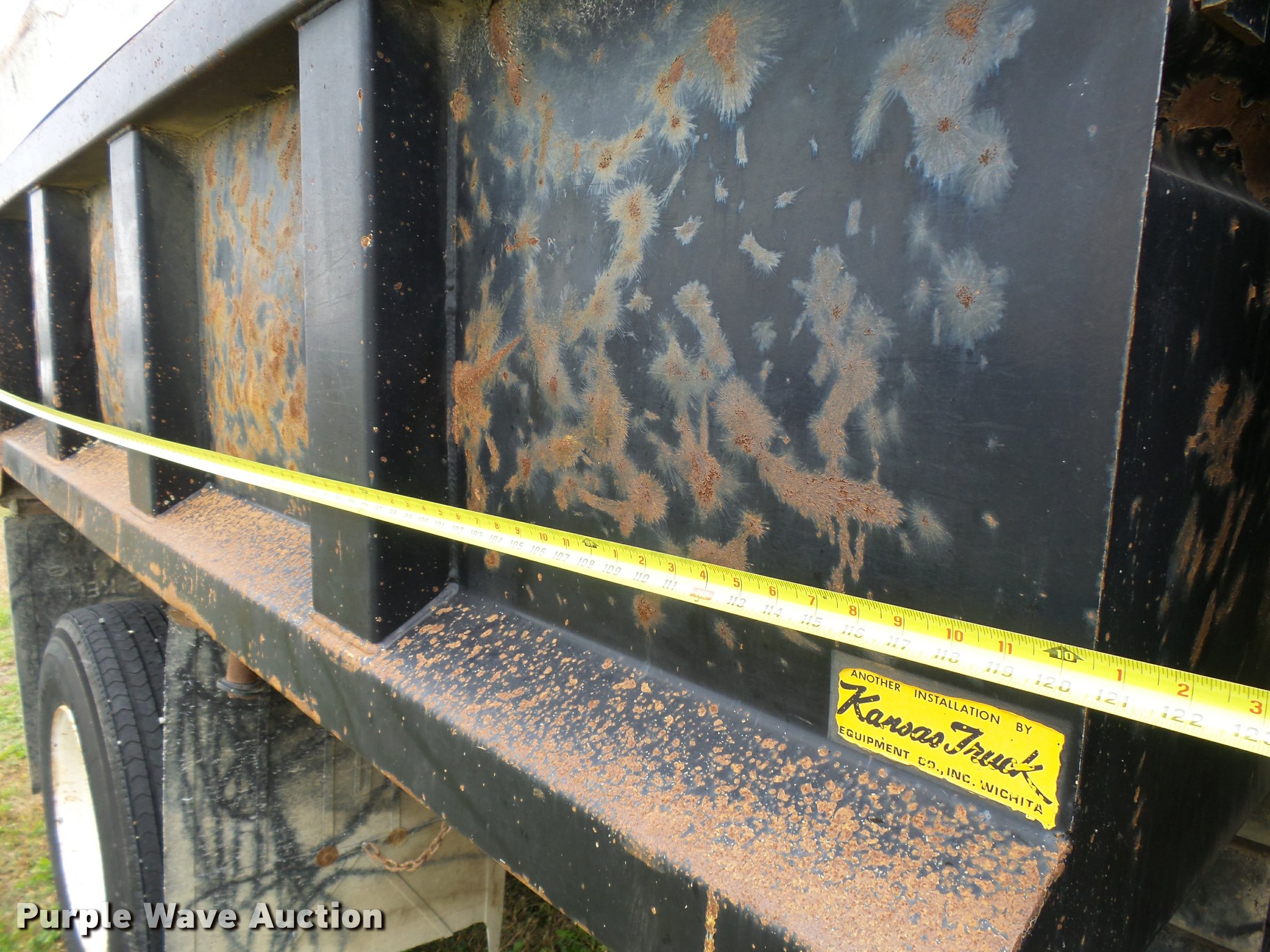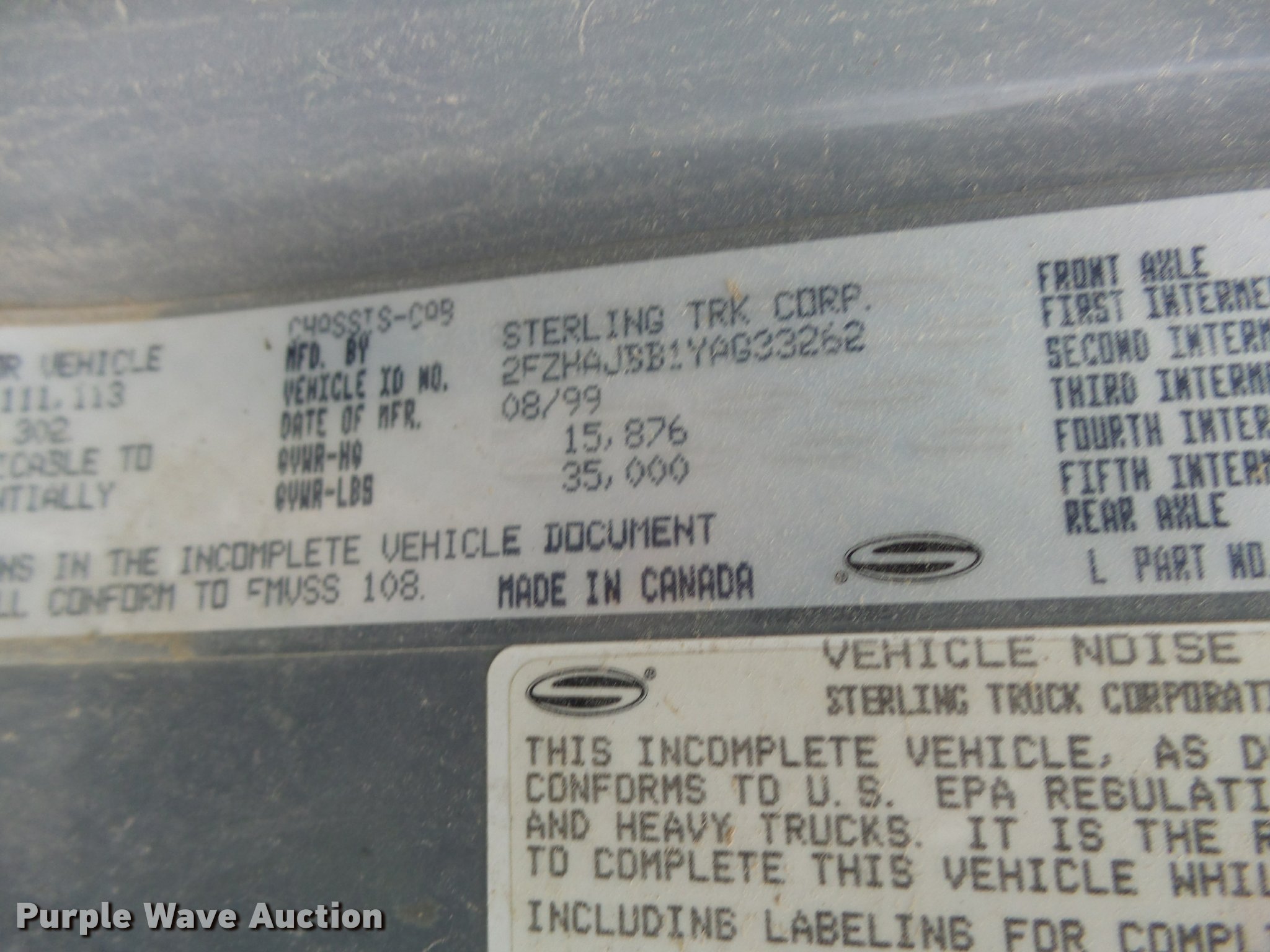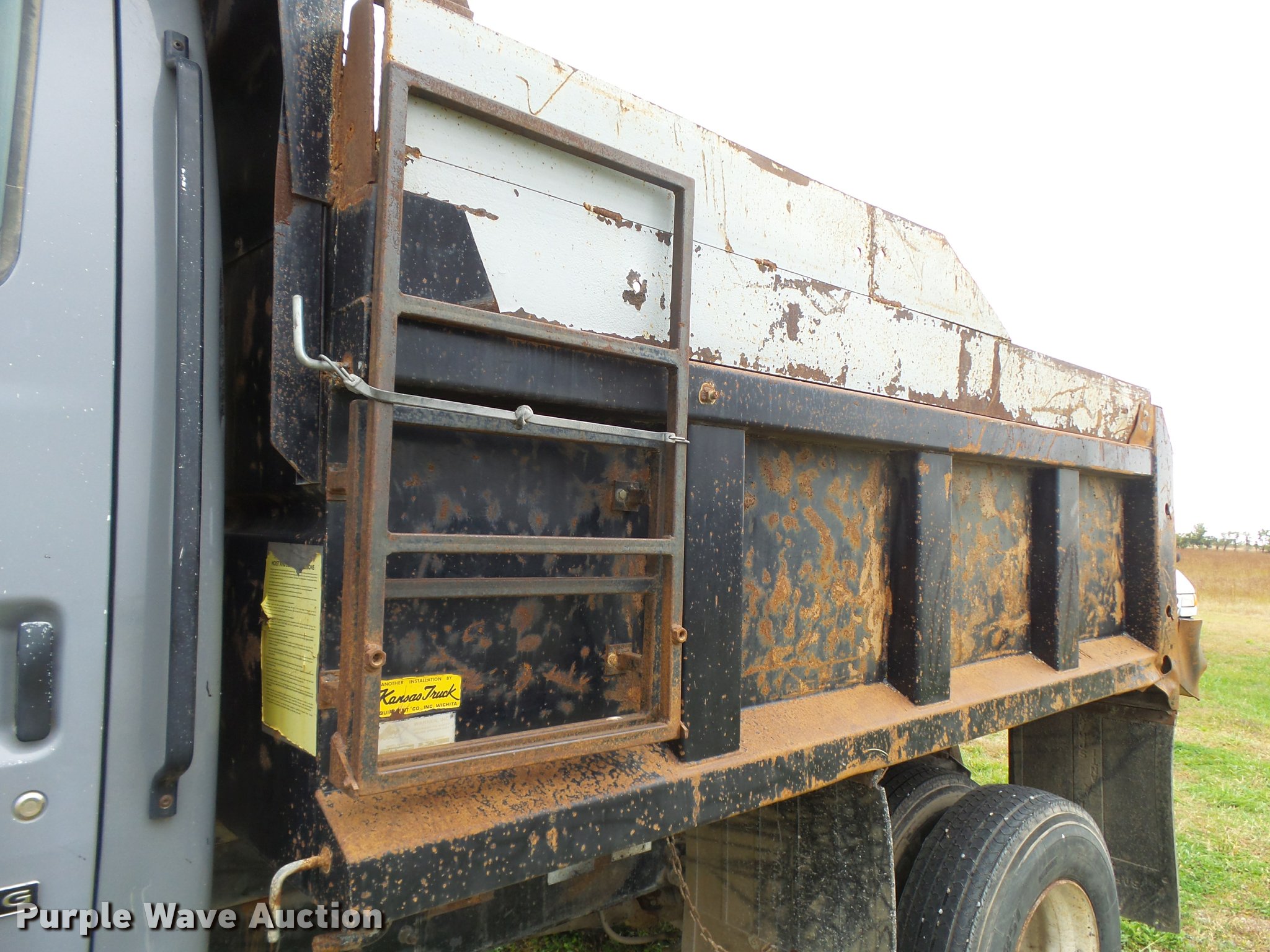 Purple Wave is selling a used Construction Dump Truck in Kansas. This item is a 2000 Sterling L7500 dump truck with the following: 364,471 miles on odometer, 14,830 hours on meter, Caterpillar 3126 7.2L L6 diesel engine, Eaton Fuller Road Ranger nine speed manual transmission, Single axle, AC and heat, Cruise, AM/FM, Air suspension seat, Front mounted PTO, Warren 451-10 steel dump bed, 10'L x 96"W, 36" side height, Single ram hoist, Single fuel tank, Trailer wiring, Spring suspension, Air brakes, 11R22.5 front tires