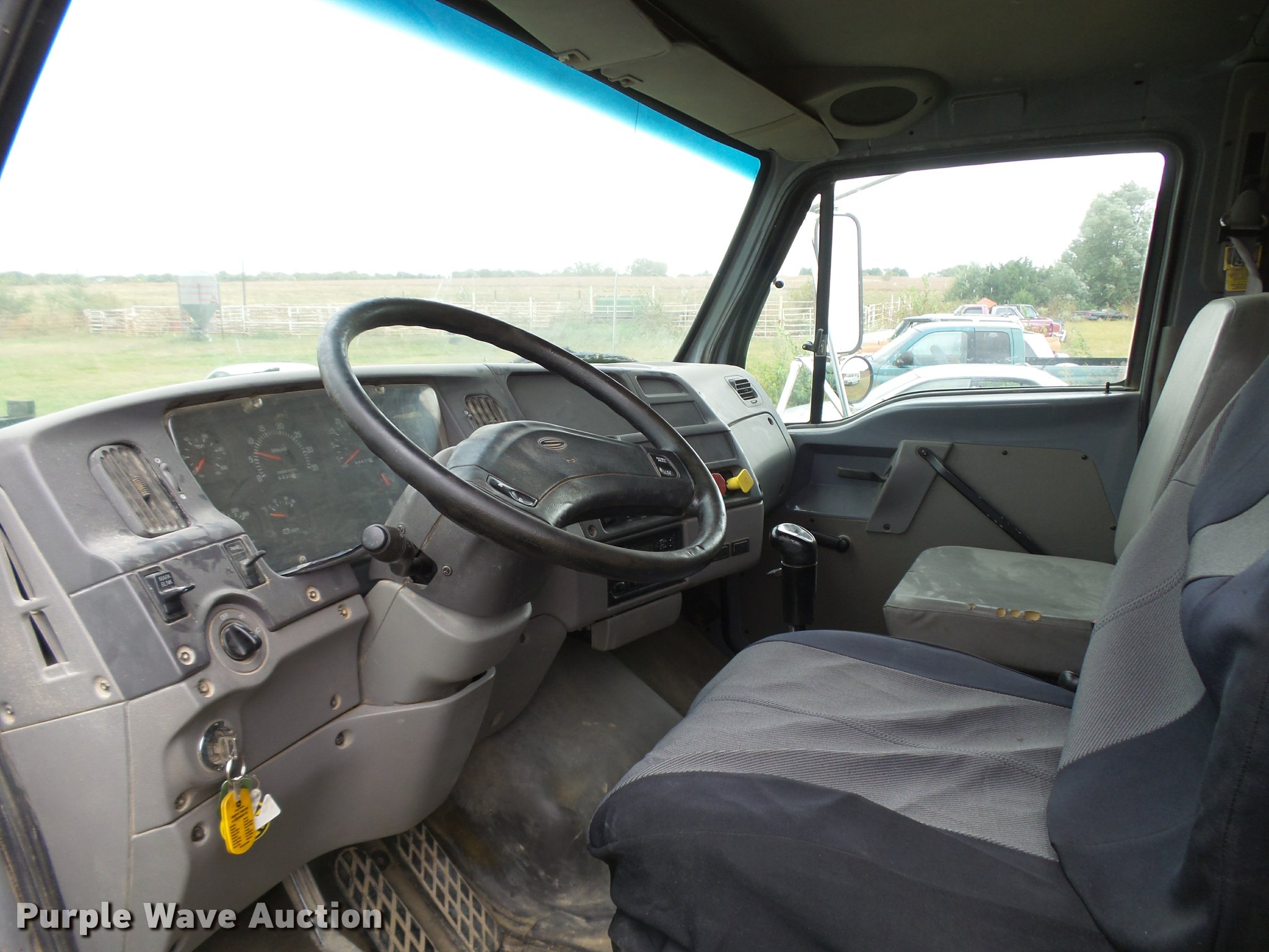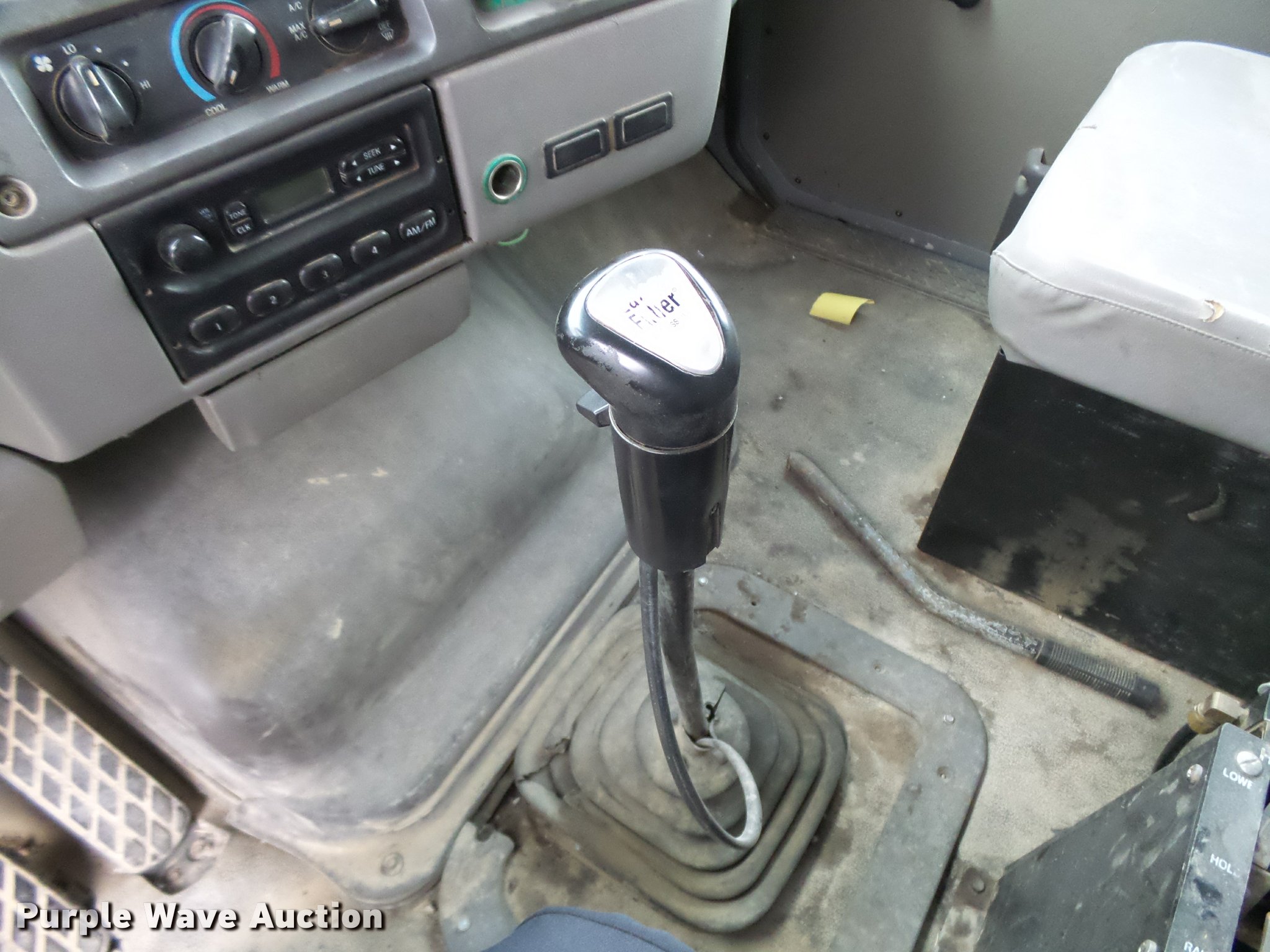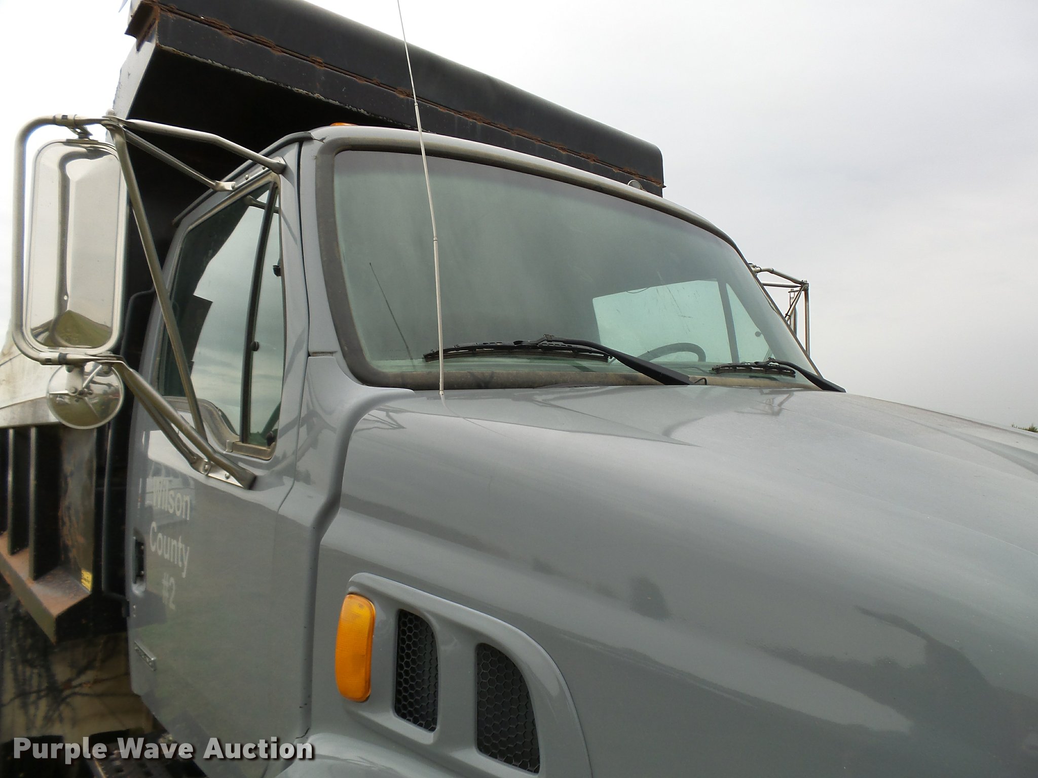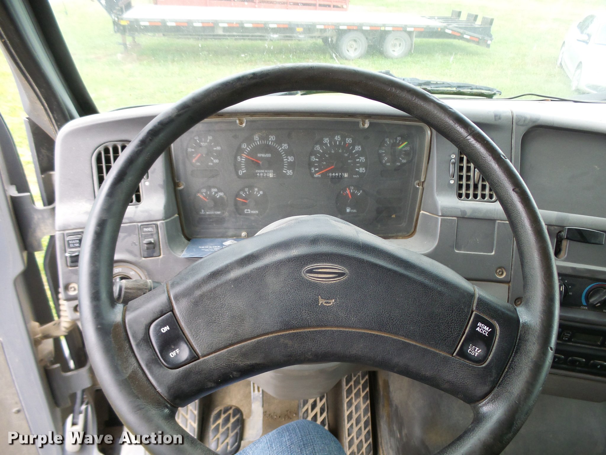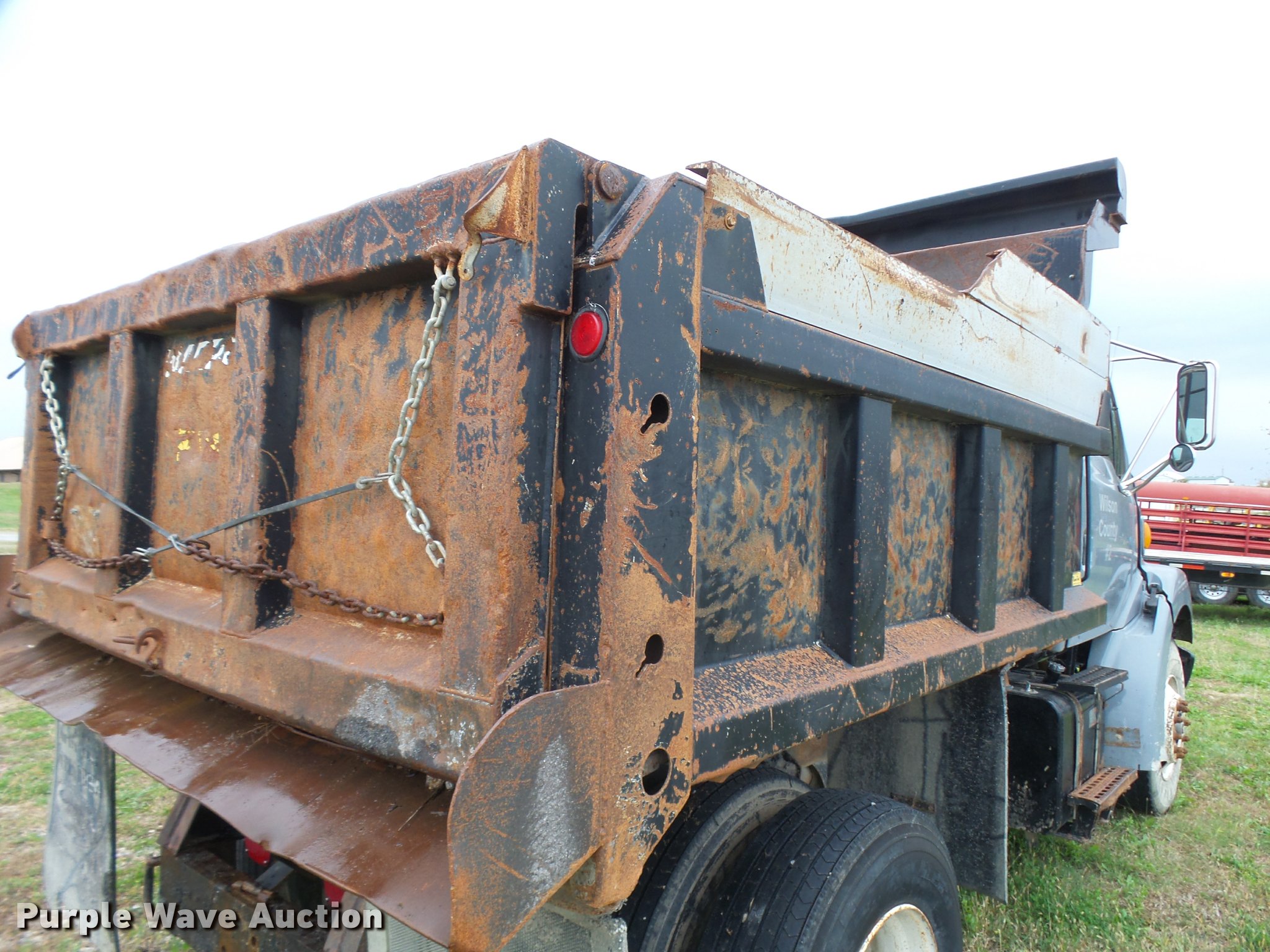 2000 Sterling L7500 dump truck. 364,471 miles on odometer, 14,830 hours on meter, Caterpillar 3126 7.2L L6 diesel engine, Eaton Fuller Road Ranger nine speed manual transmission, Single axle, AC and heat, Cruise, AM/FM, Air suspension seat, Front mounted PTO, Warren 451-10 steel dump bed 10'L x 96"W, 36" side height, Single ram hoist, Single fuel tank, Trailer wiring, Spring suspension, Air brakes, 11R22.5 front tires. Kansas title. 2FZHAJBB1YAG33262. Rose Hill, KS 67133