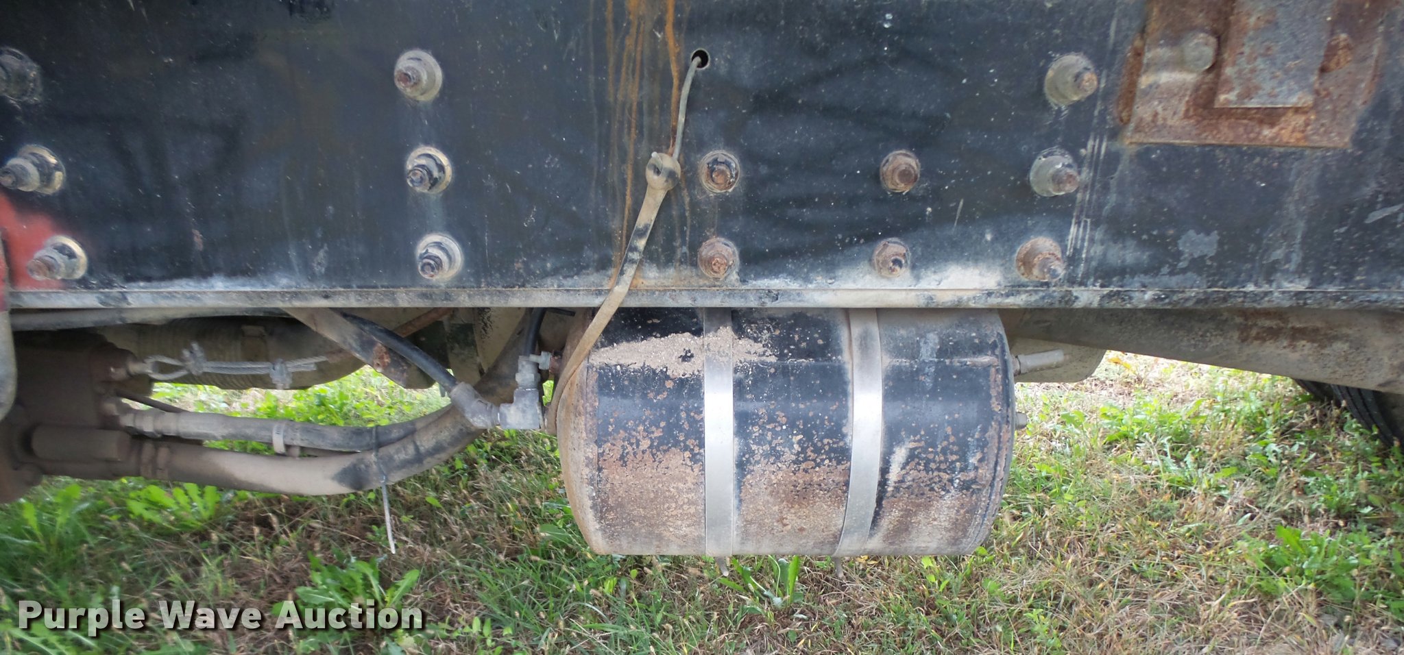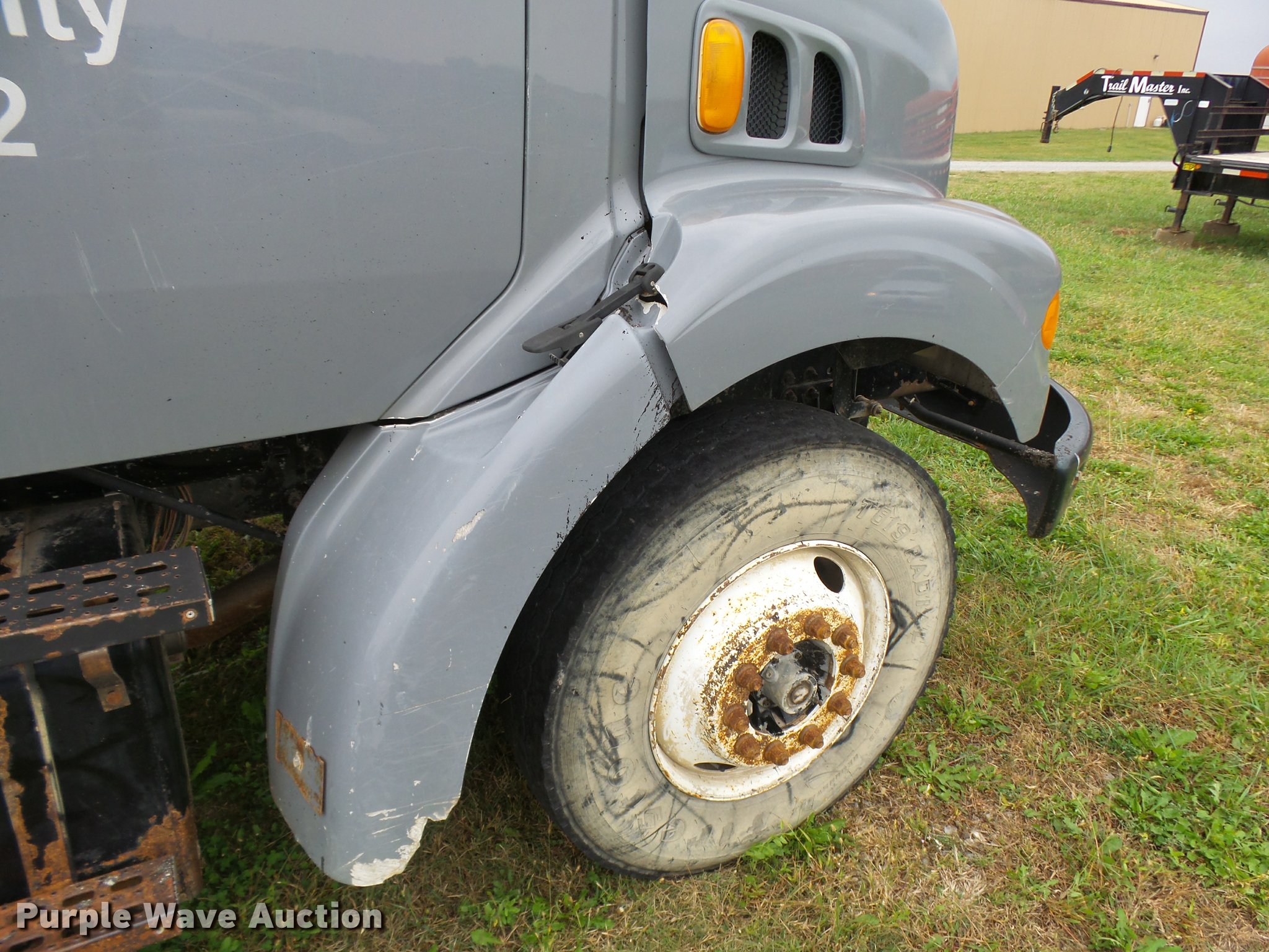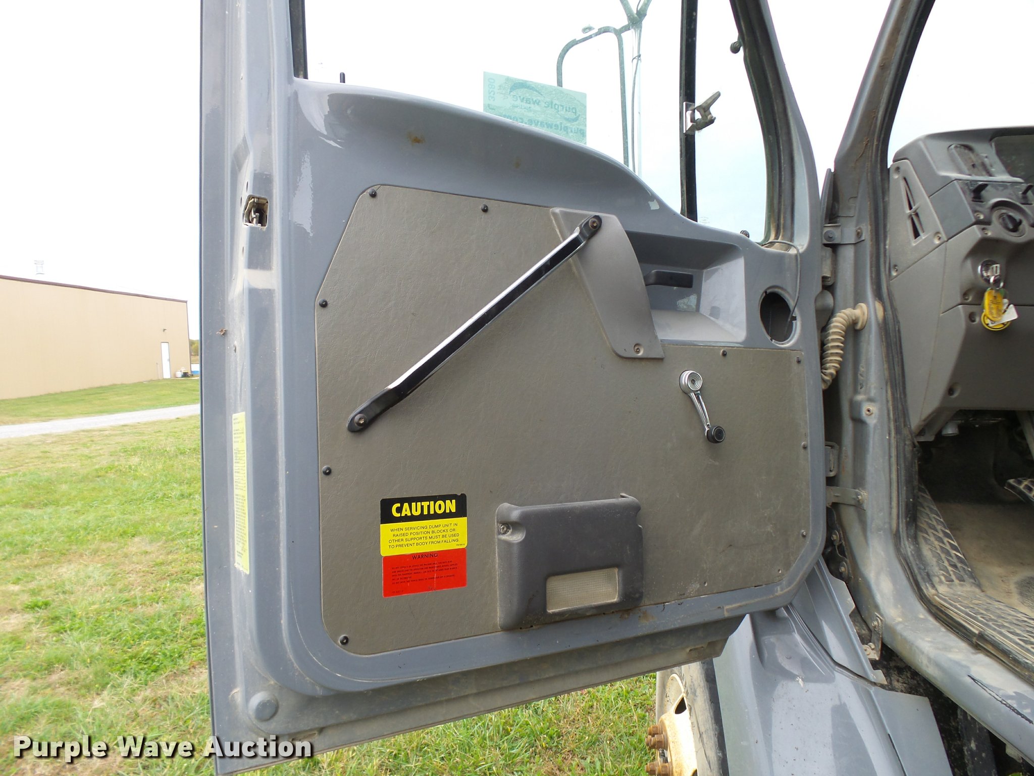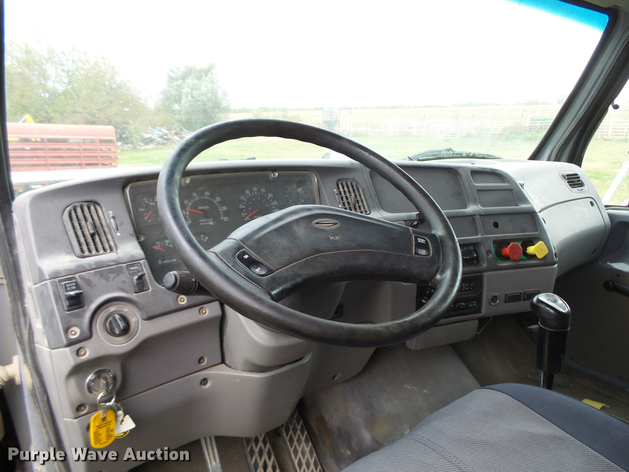 2000 Sterling L7500 dump truck. 364,471 miles on odometer, 14,830 hours on meter, Caterpillar 3126 7.2L L6 diesel engine, Eaton Fuller Road Ranger nine speed manual transmission, Single axle, AC and heat, Cruise, AM/FM, Air suspension seat, Front mounted PTO, Warren 451-10 steel dump bed 10'L x 96"W, 36" side height, Single ram hoist, Single fuel tank, Trailer wiring, Spring suspension, Air brakes, 11R22.5 front tires. Kansas title. 2FZHAJBB1YAG33262. Rose Hill, KS 67133