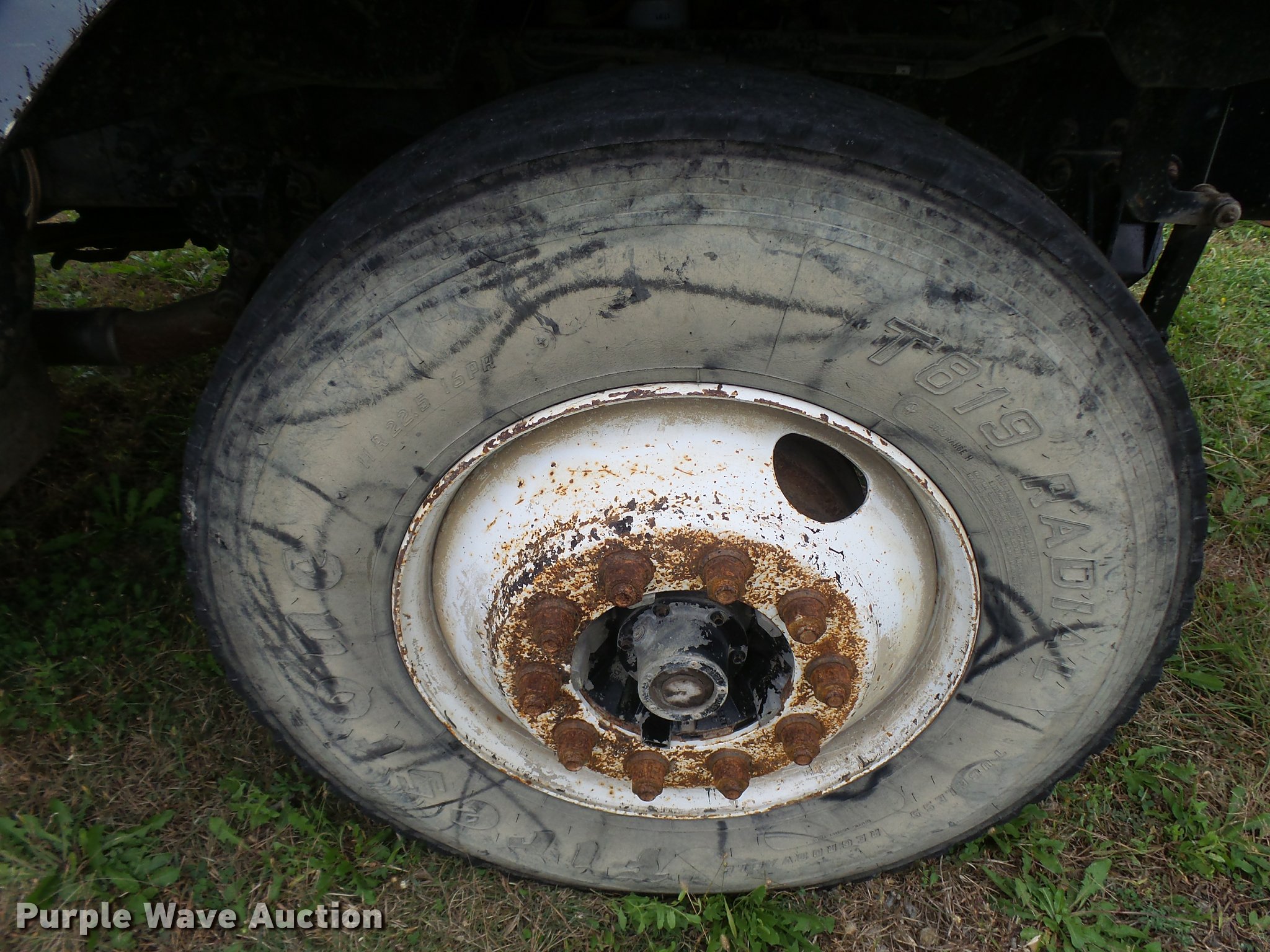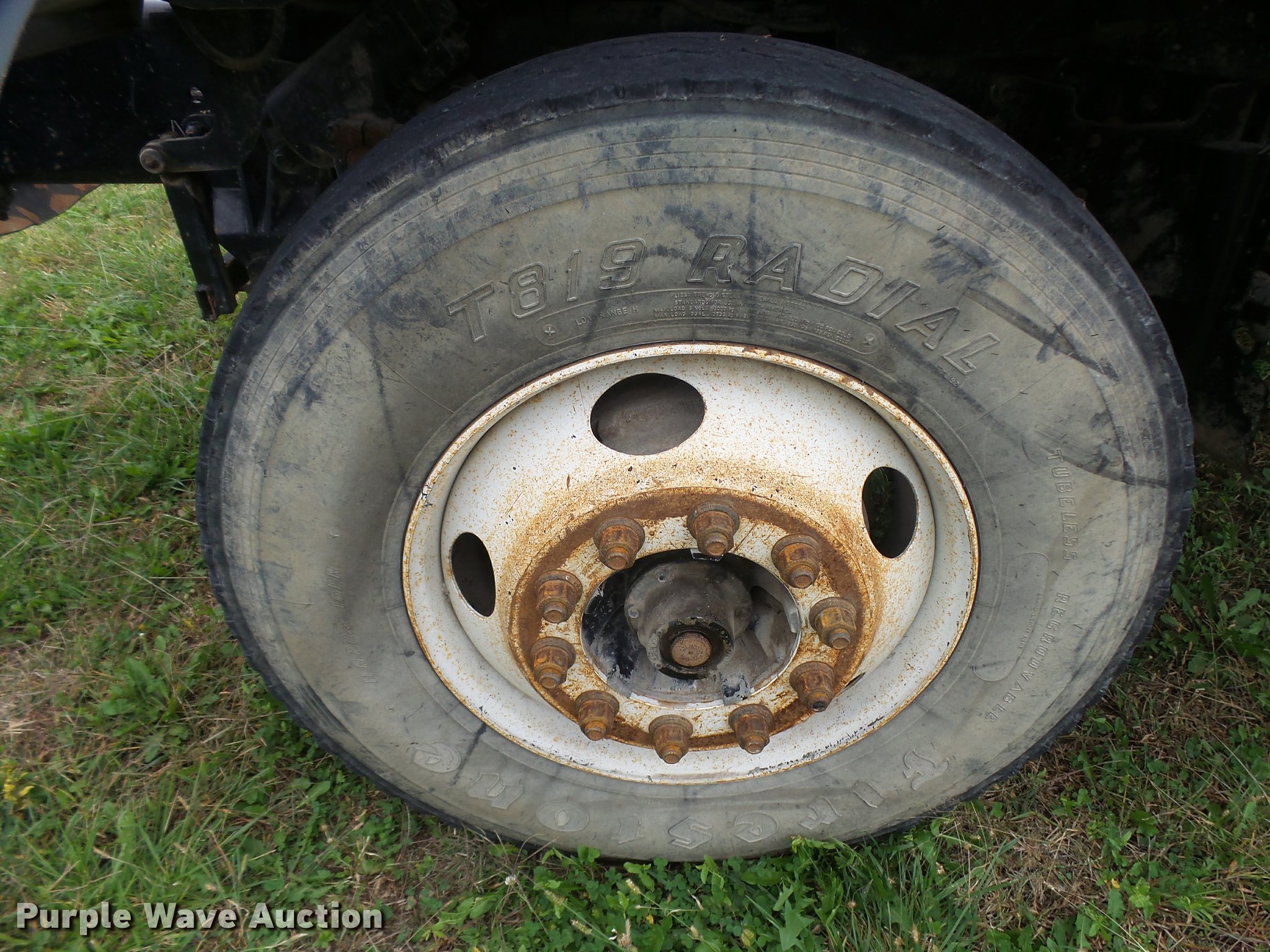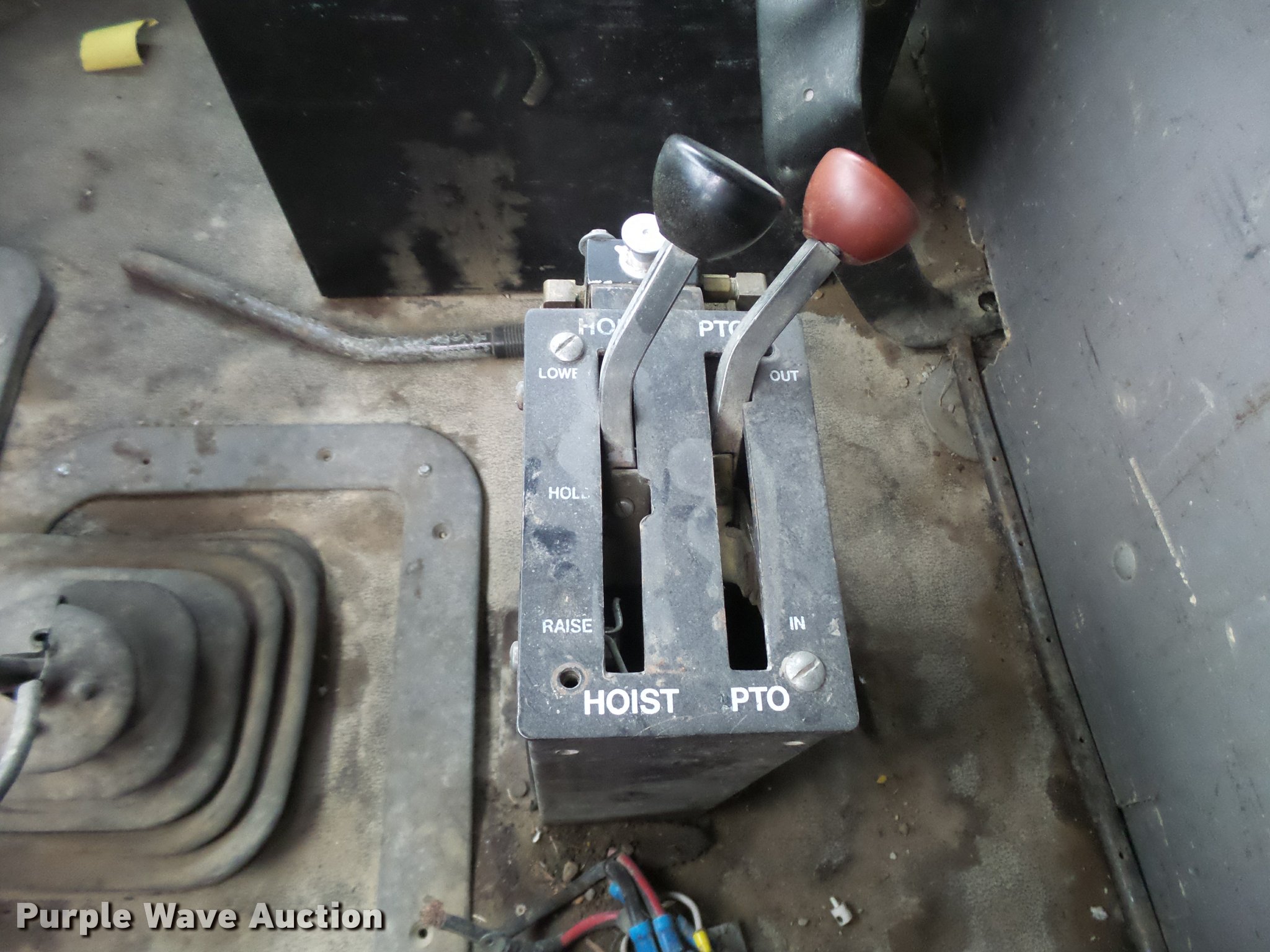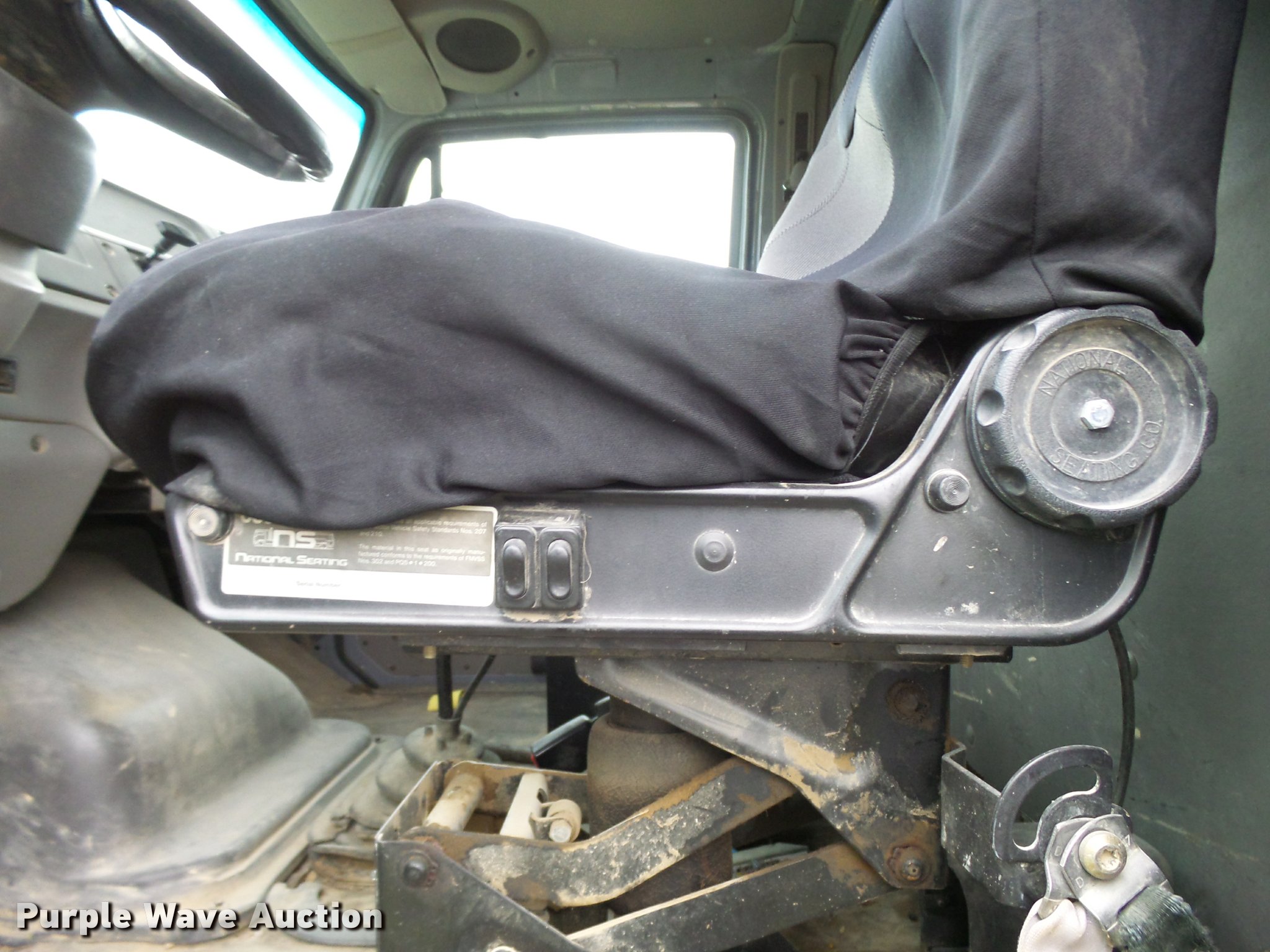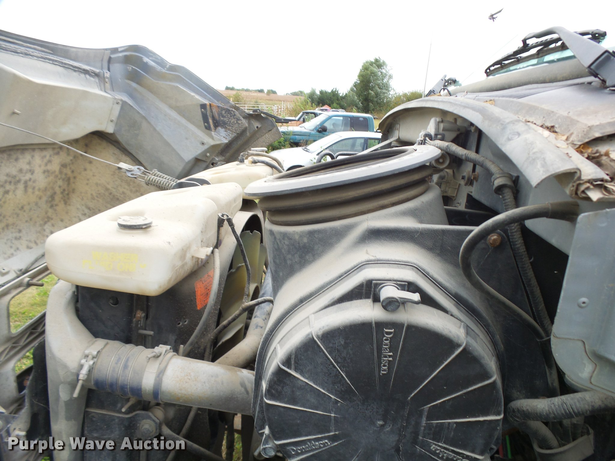 2000 Sterling L7500 dump truck. 364,471 miles on odometer, 14,830 hours on meter, Caterpillar 3126 7.2L L6 diesel engine, Eaton Fuller Road Ranger nine speed manual transmission, Single axle, AC and heat, Cruise, AM/FM, Air suspension seat, Front mounted PTO, Warren 451-10 steel dump bed 10'L x 96"W, 36" side height, Single ram hoist, Single fuel tank, Trailer wiring, Spring suspension, Air brakes, 11R22.5 front tires. Kansas title. 2FZHAJBB1YAG33262. Rose Hill, KS 67133