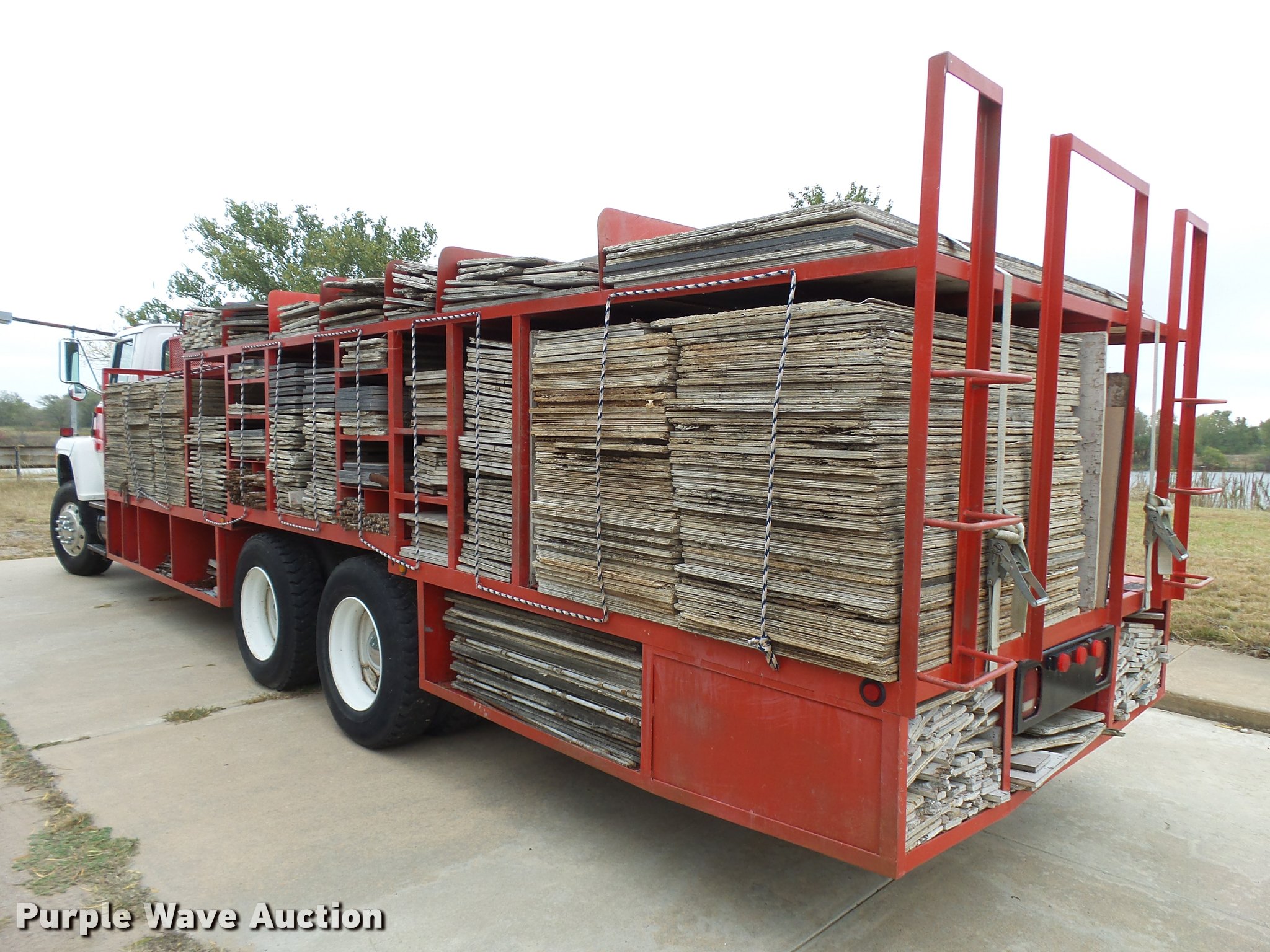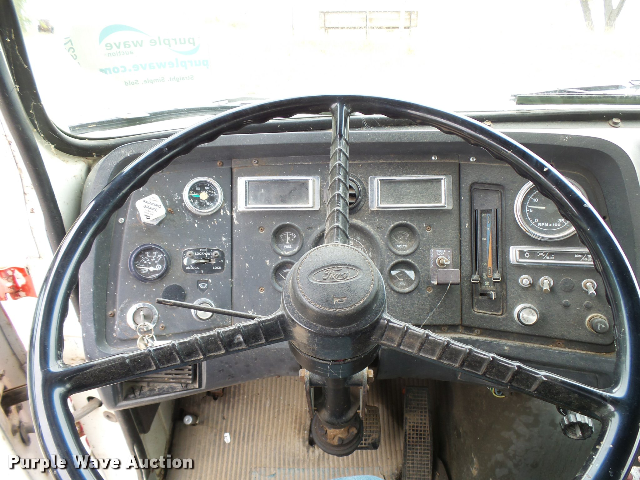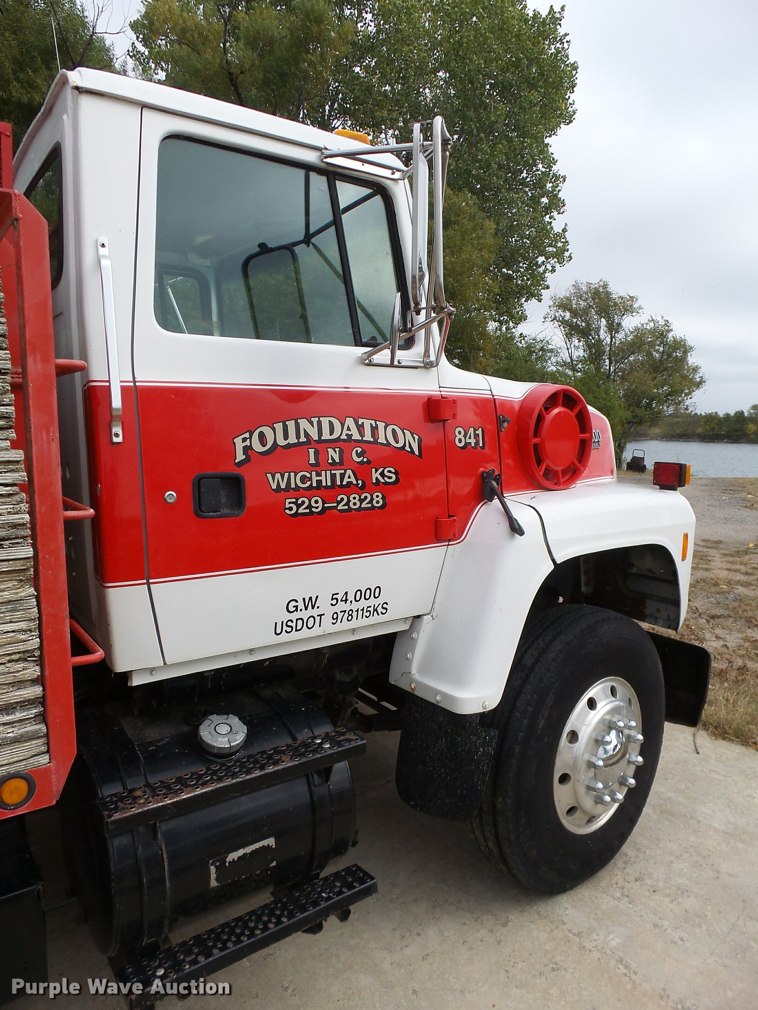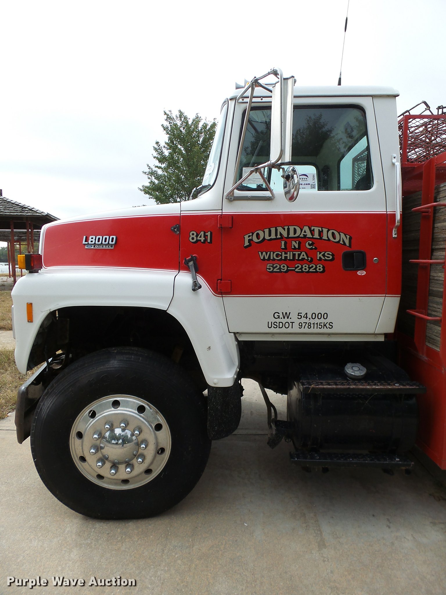Purple Wave is selling a used Flat Bed Truck in Kansas. This item is a 1992 Ford LNT8000 flatbed truck with concrete forms with the following: 352,222 miles on odometer, 7.8L L6 diesel engine, 240 HP, Serial 793188, Automatic transmission, Tandem axle, Inter-axle differential lock, Heat, AM/FM/cassette, Talladega air suspension seat, Chelsea PTO, 27'L x 8'W form bed, Dual fuel tanks, 246" wheelbase, Spring suspension, Air brakes, 12R22.5 front tires, 275/80R22.5 rear tires, 295/75R22.5 rear tires, GVWR 52,000 lbs, Assorted concrete forms and accessories included, View inventory for details