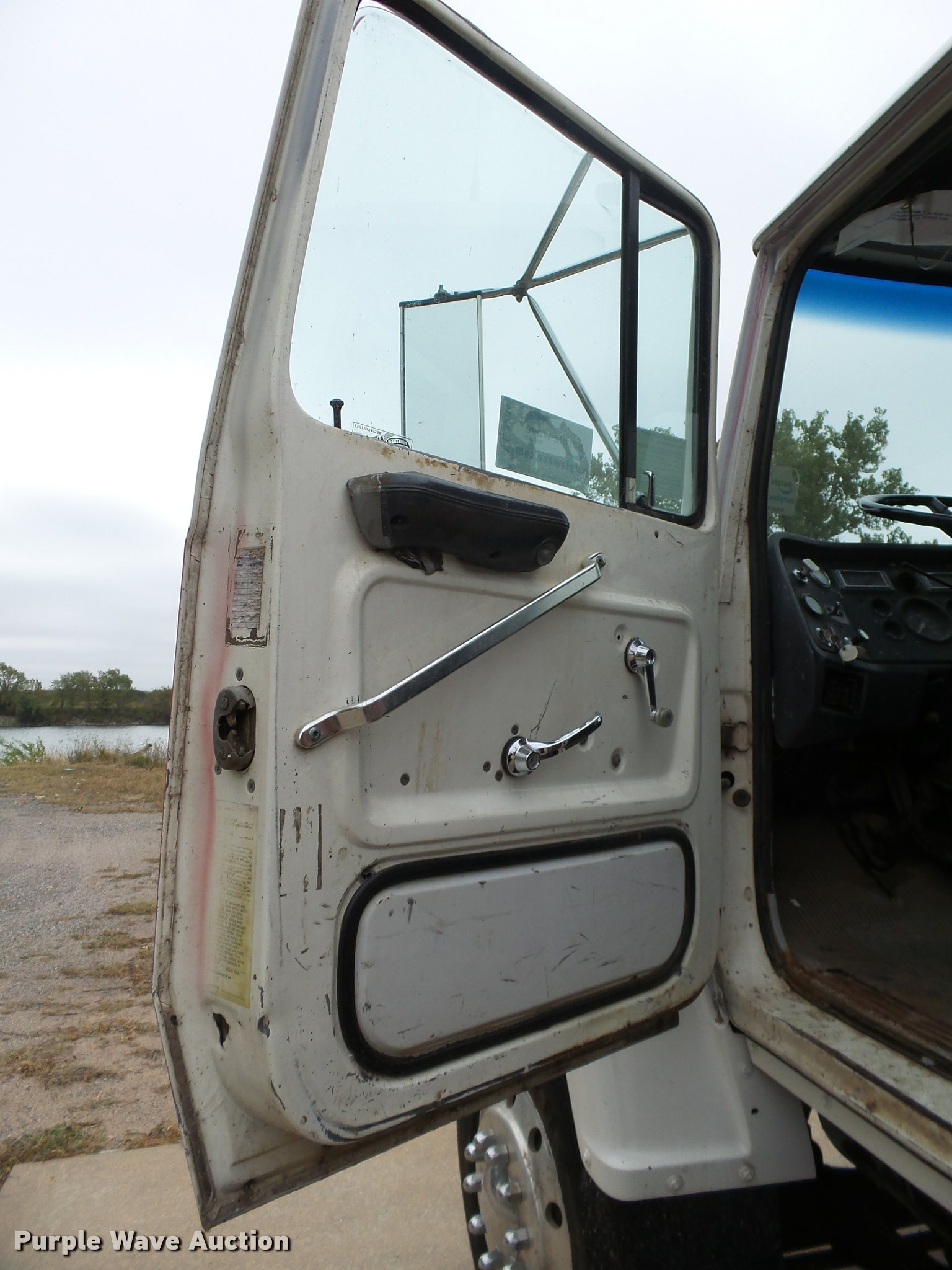 1992 Ford LNT8000 flatbed truck with concrete forms. 352,222 miles on odometer, 7.8L L6 diesel engine 240 HP, Serial 793188, Automatic transmission, Tandem axle, Inter-axle differential lock, Heat, AM/FM/cassette, Talladega air suspension seat, Chelsea PTO, 27'L x 8'W form bed, Dual fuel tanks, 246" wheelbase, Spring suspension, Air brakes, 12R22.5 front tires, 275/80R22.5 rear tires, 295/75R22.5 rear tires, GVWR 52,000 lbs, Assorted concrete forms and accessories included View inventory for details. Kansas title. 1FDYW82A6NVA25156. Wichita, KS 67205