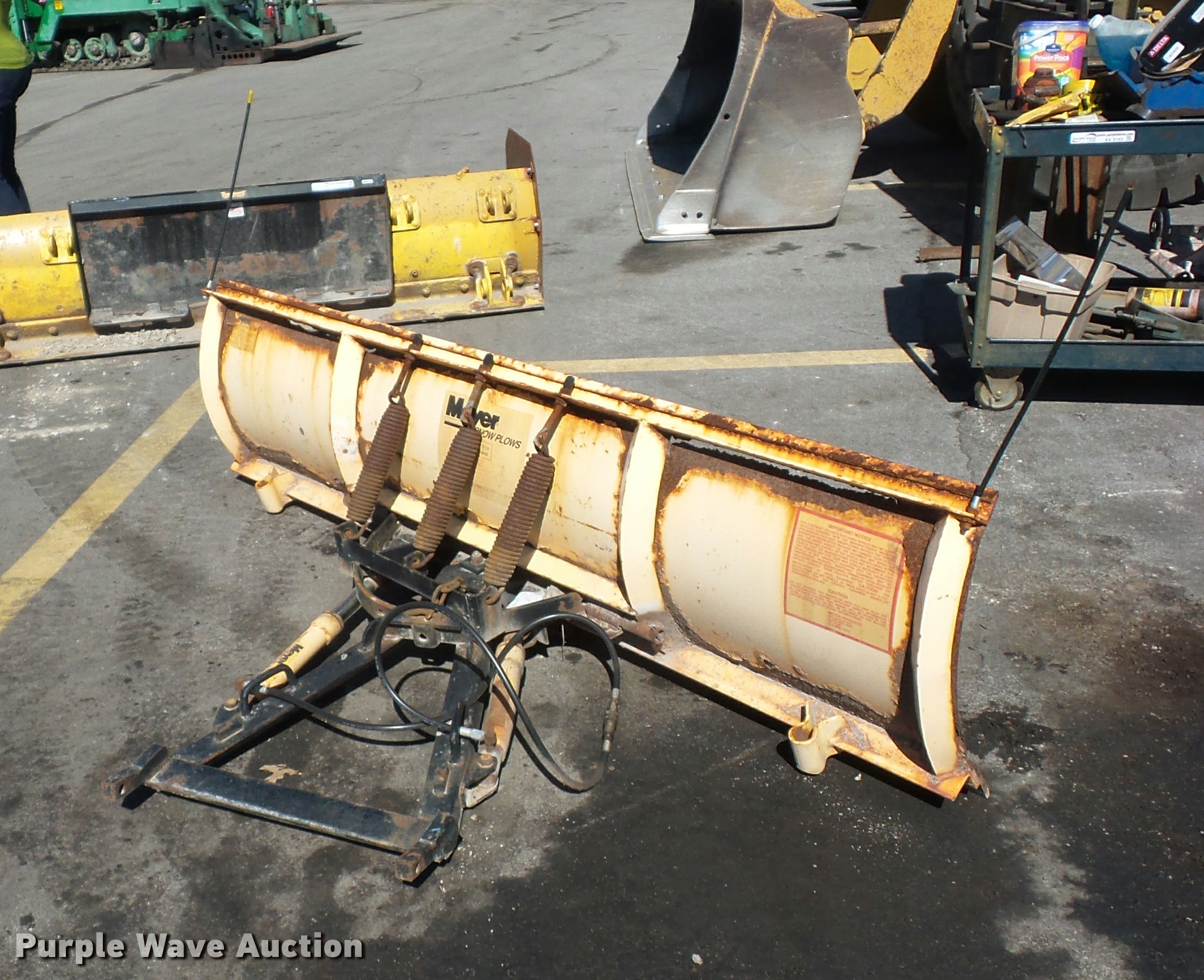 Meyers snow plow. 90"W, (3) break-away springs. Special Construction Services - Open inspection Friday, November 4. 2133 Creve Coeur Mill Rd. Maryland Heights, MO 63043