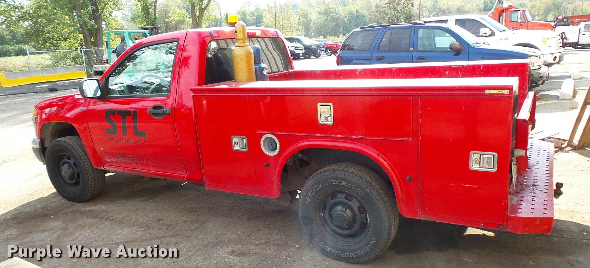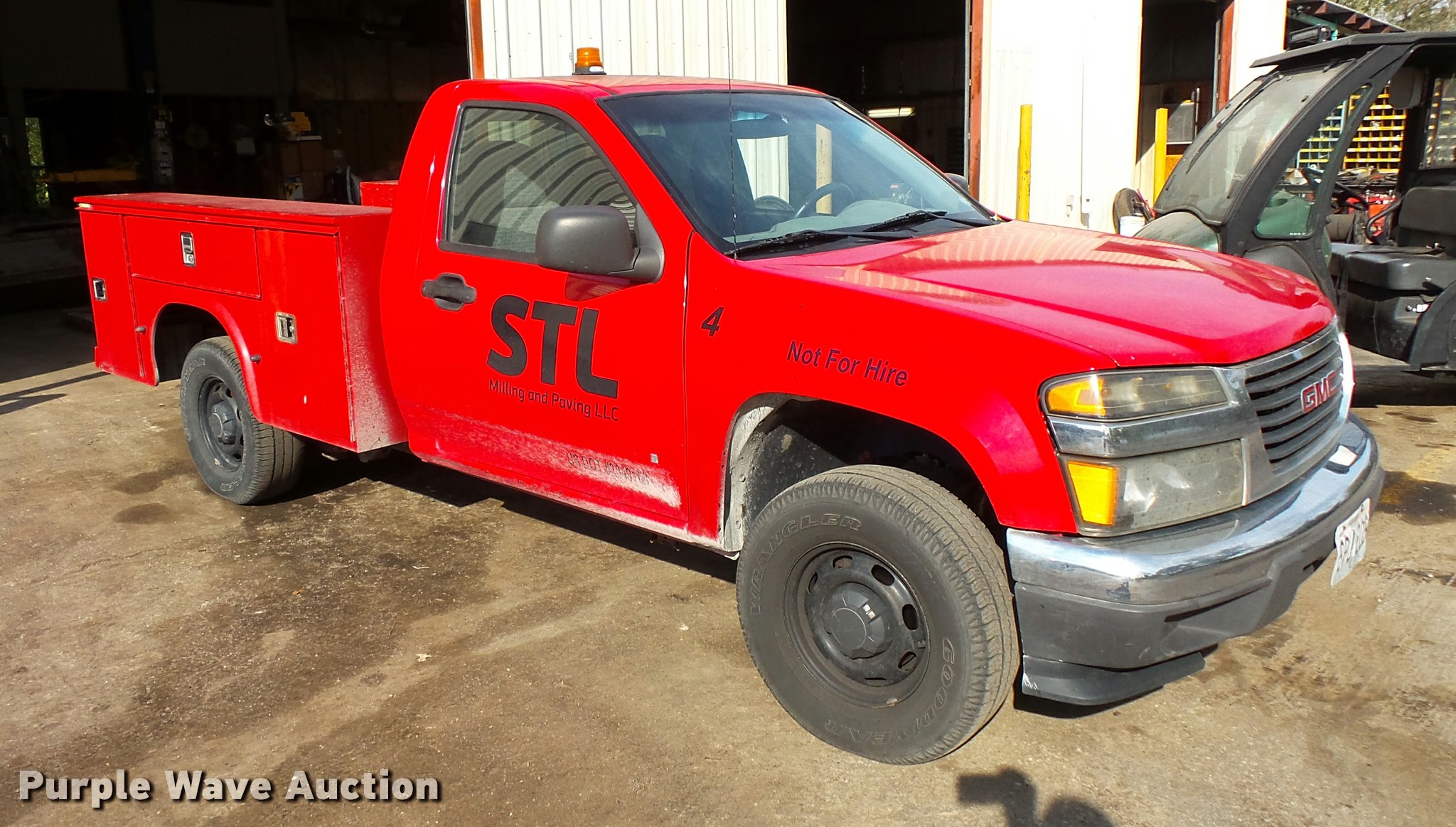 Purple Wave is selling a used Compact Pickup or Van in Missouri. This item is a 2008 GMC Canyon utility truck with the following: 167,133 miles on odometer, 3.7L L5 DOHC 20V gas engine, Automatic transmission, AC and heat, AM/FM, Manual windows and locks, Cloth interior, Knapheide EC885 service bed, 7'3"L, Serial 20071108-0094778, Receiver hitch, Goodyear Wrangler 285/75R15 tires, Cracked exhaust manifold, Tire sensor issues, Air bag light on