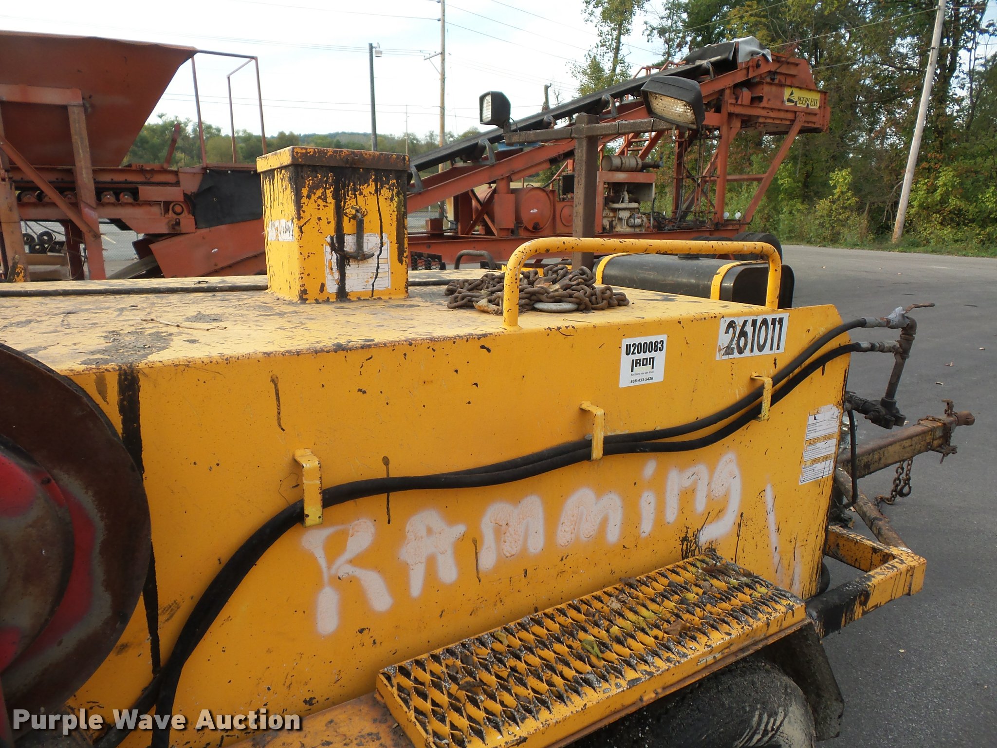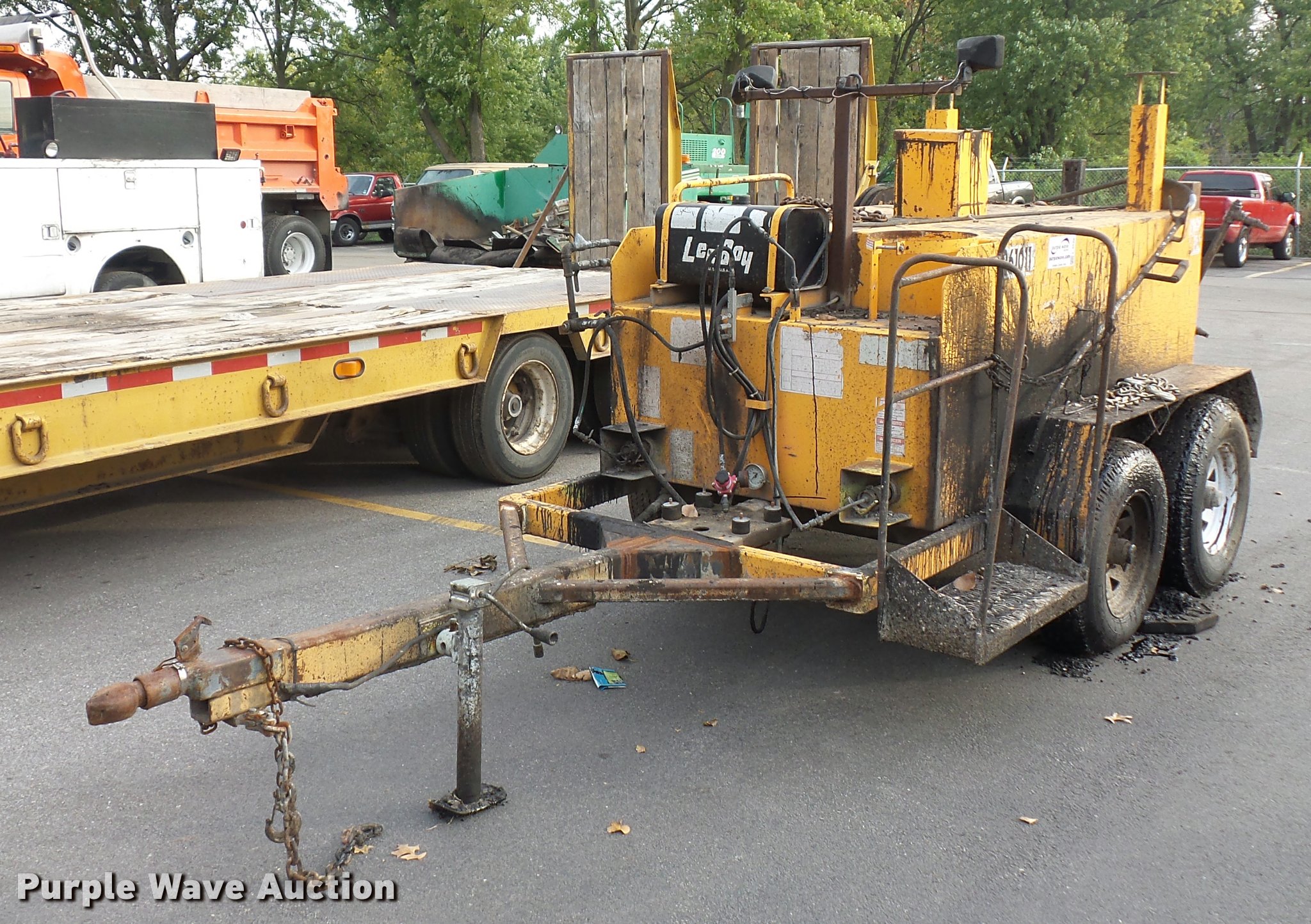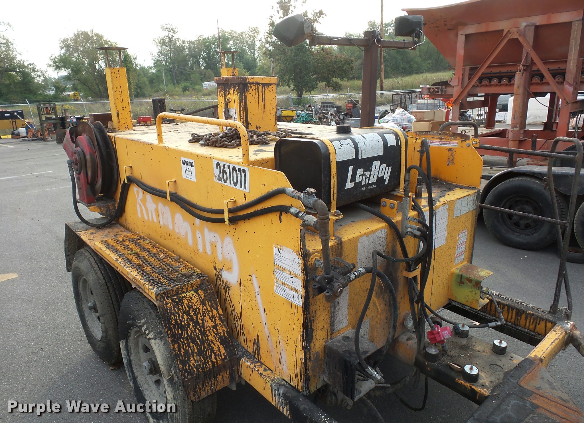 Purple Wave is selling a used Pot Hole Patcher in Missouri. This item is a LeeBoy crack seal pot with the following: 6'W rear spray boom, Hose reel, 2 5/16" ball hitch, Manual jack, 205/90R15 tires