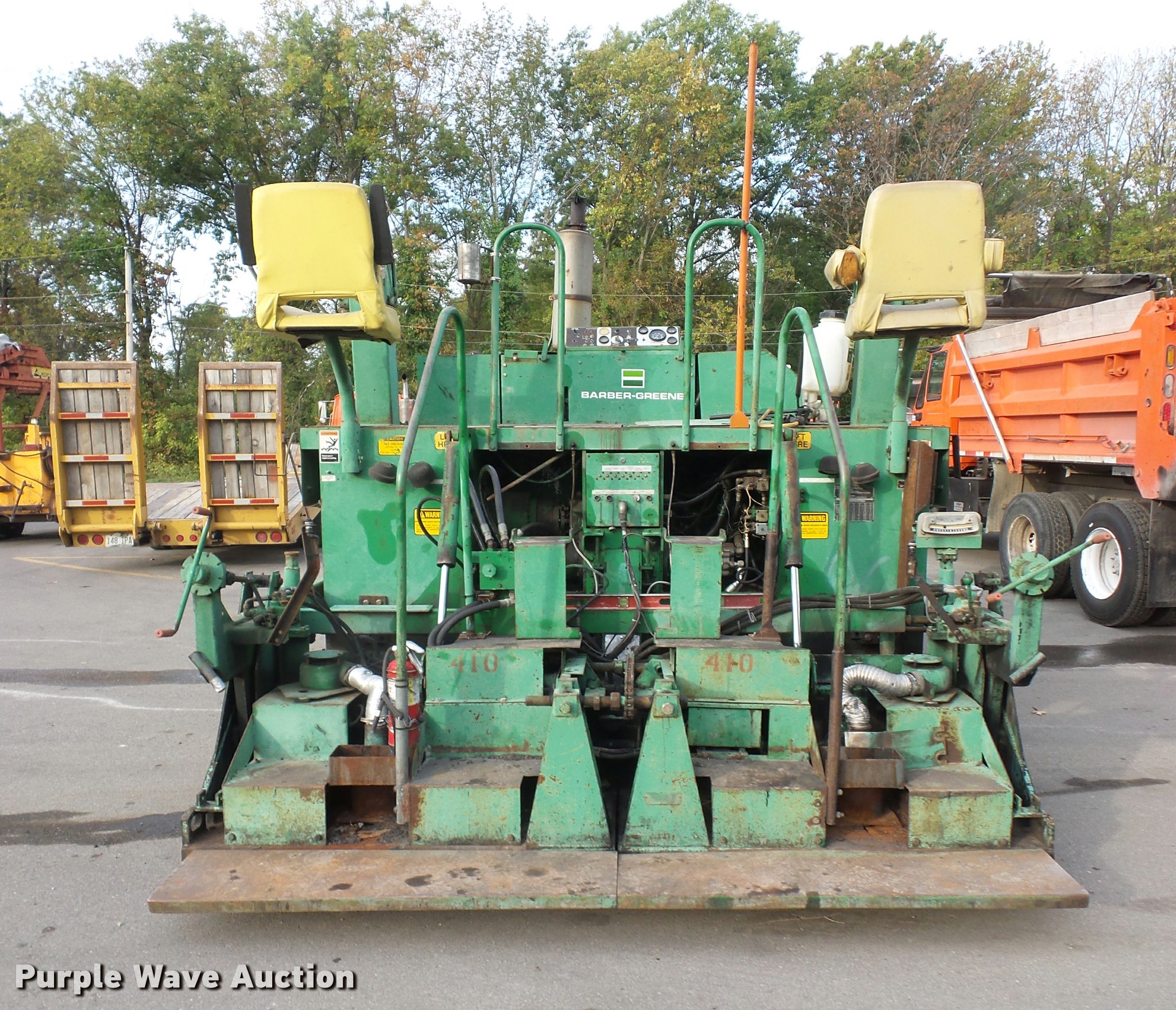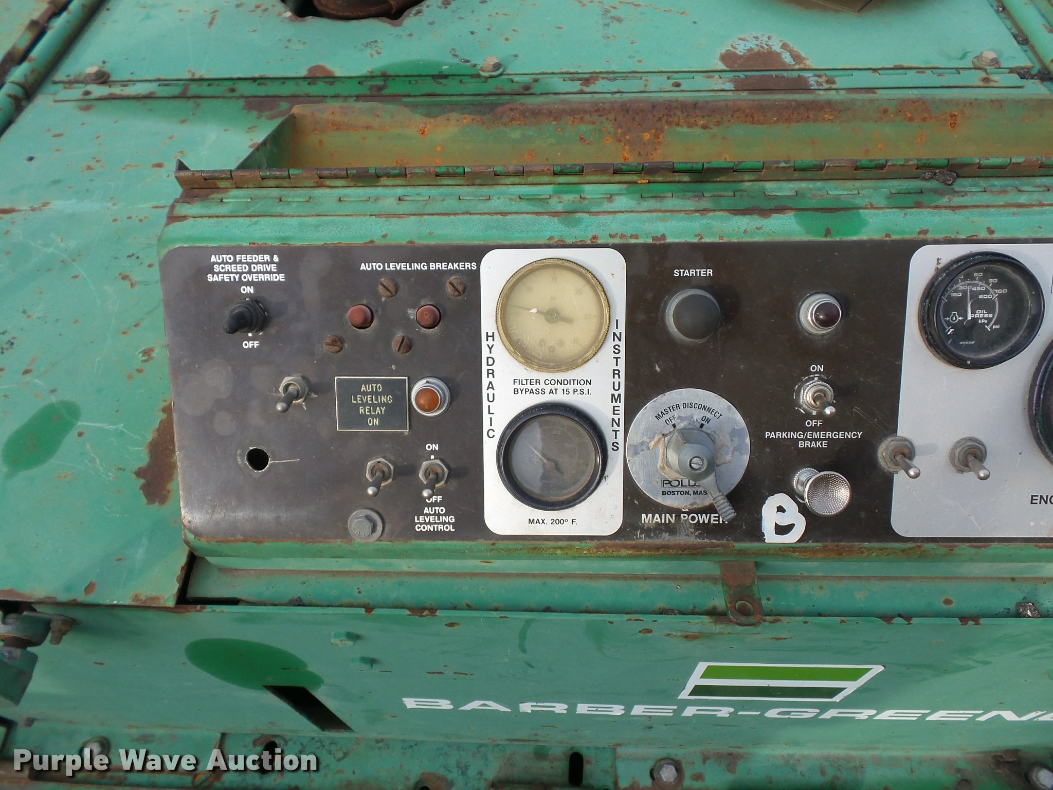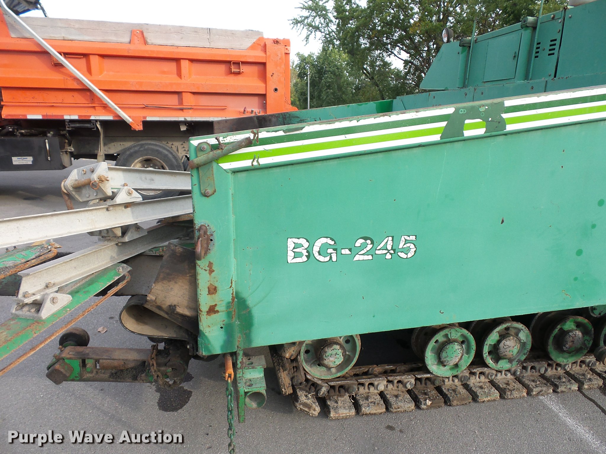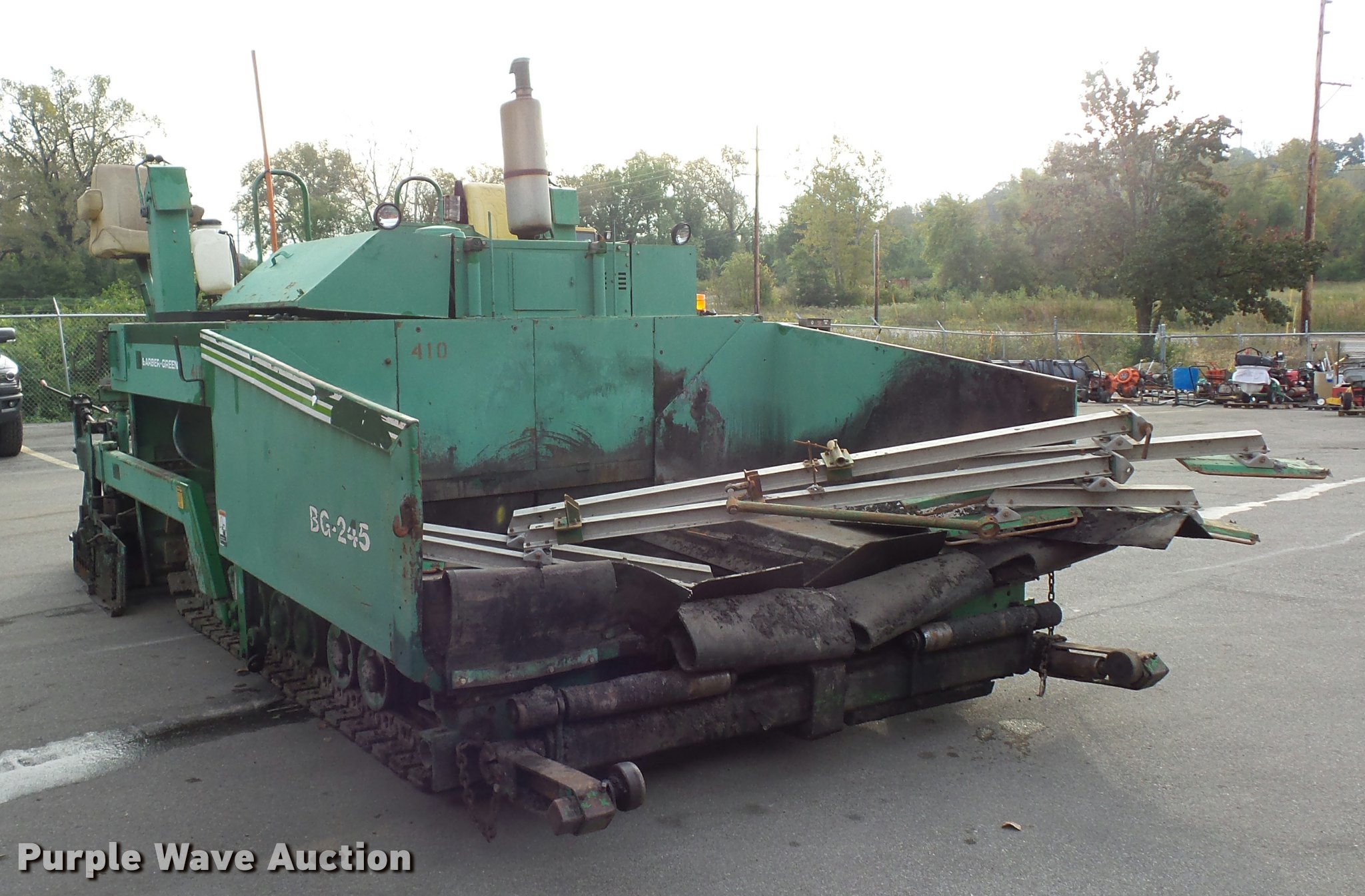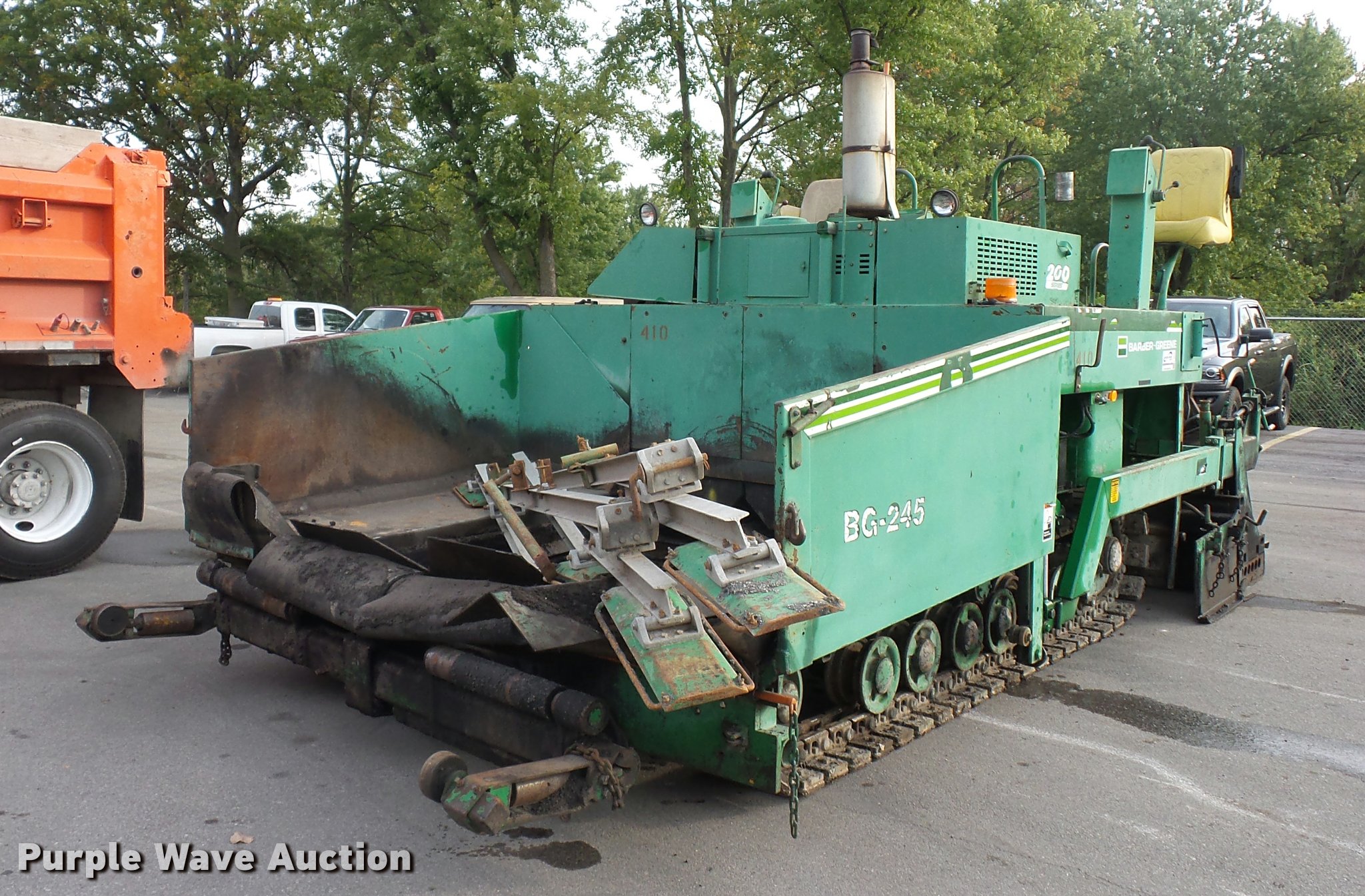 Purple Wave is selling a used Paver or Screed in Missouri. This item is a Barber Greene BG-245 200 Series paver with the following: 3,231 hours on meter, John Deere six cylinder diesel engine, Hydrostatic transmission, Dual side controls, 13.5"W side rubber track pads, Serial BG245X412