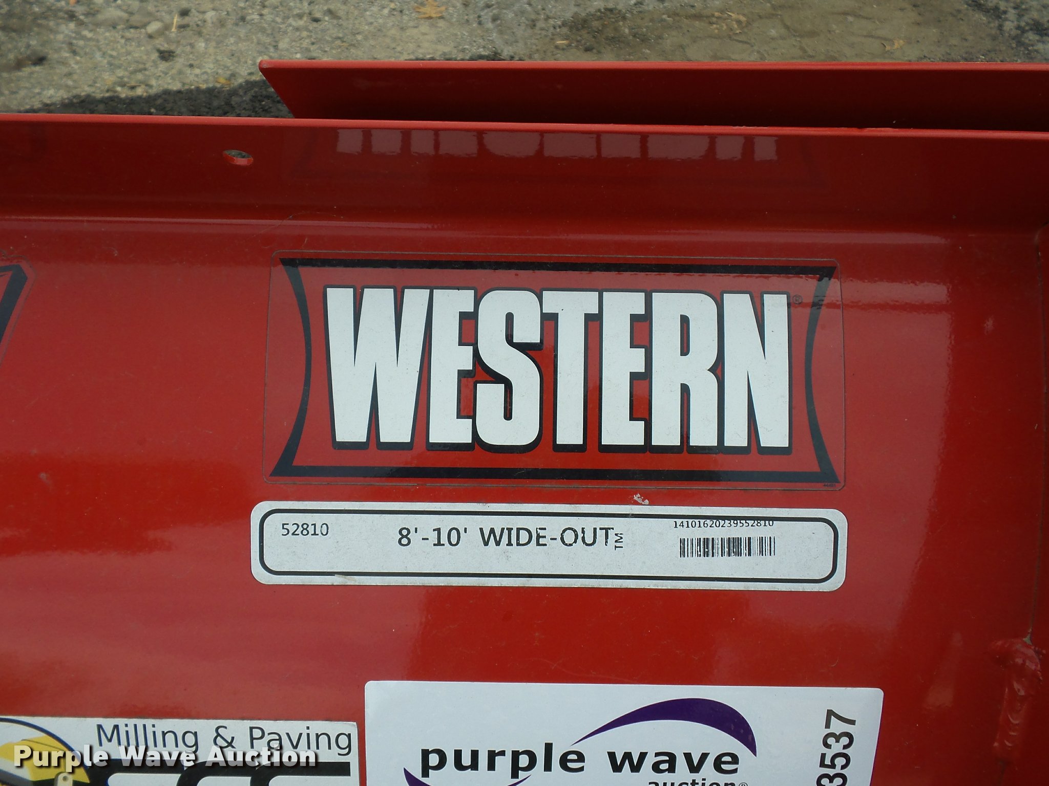 Purple Wave is selling a used Truck Part and Attach. in Missouri. This item is a Western Wide-Out snow plow with the following: 8'W to 10'W, Rubber cutting edges, (4) break-away springs, Plow lights, Side markers, Cab controls, Plow mount, Unused
