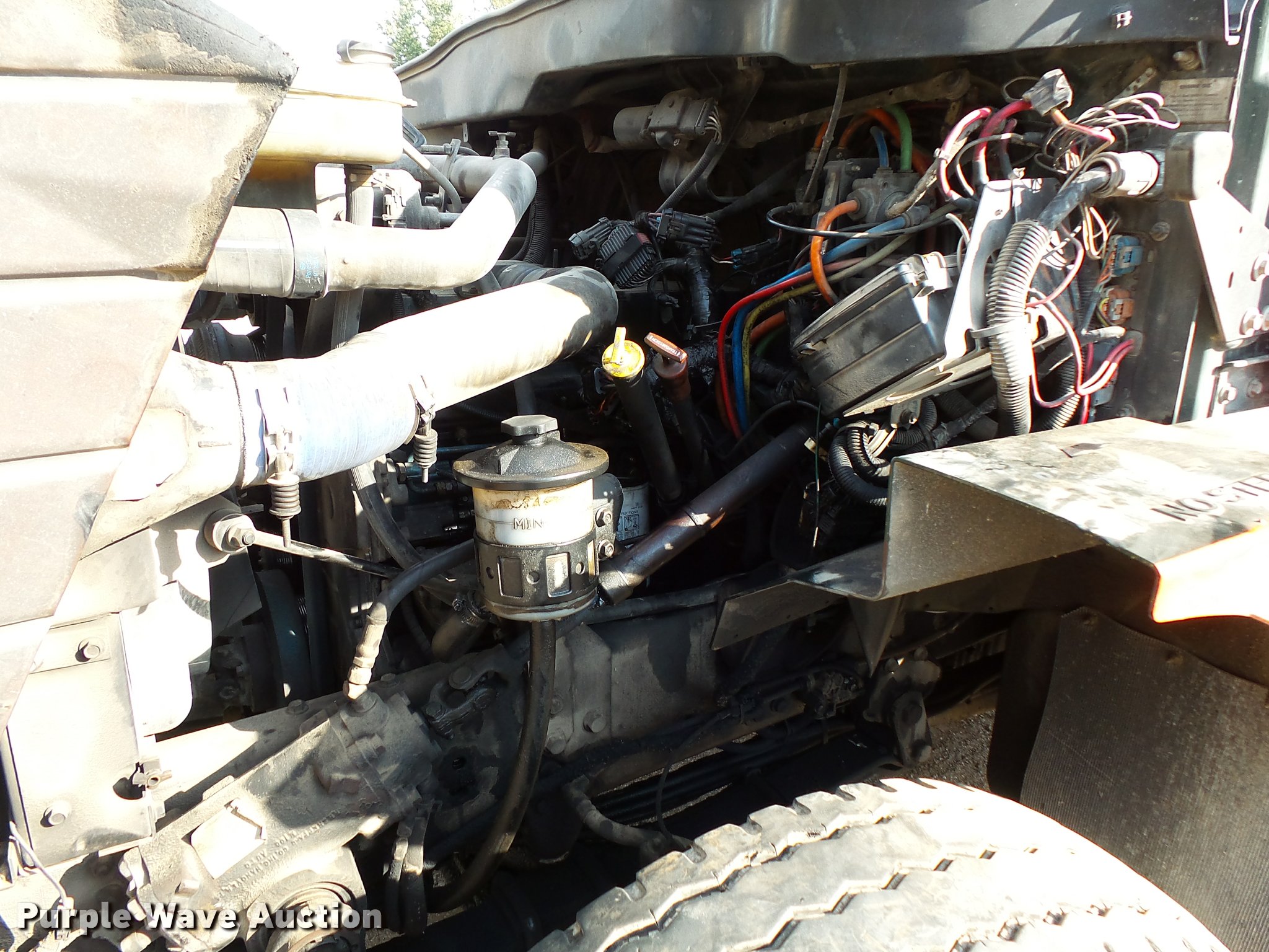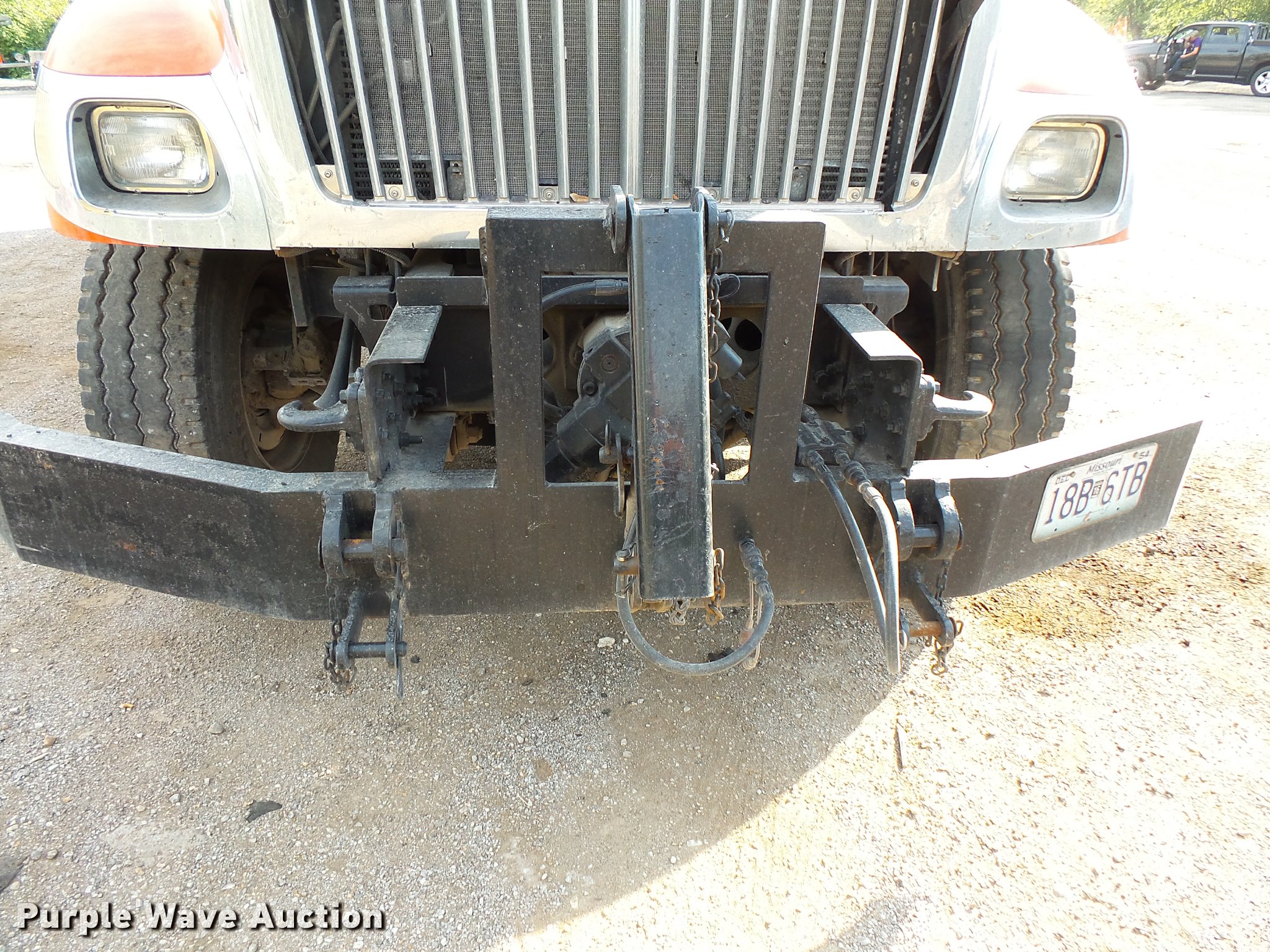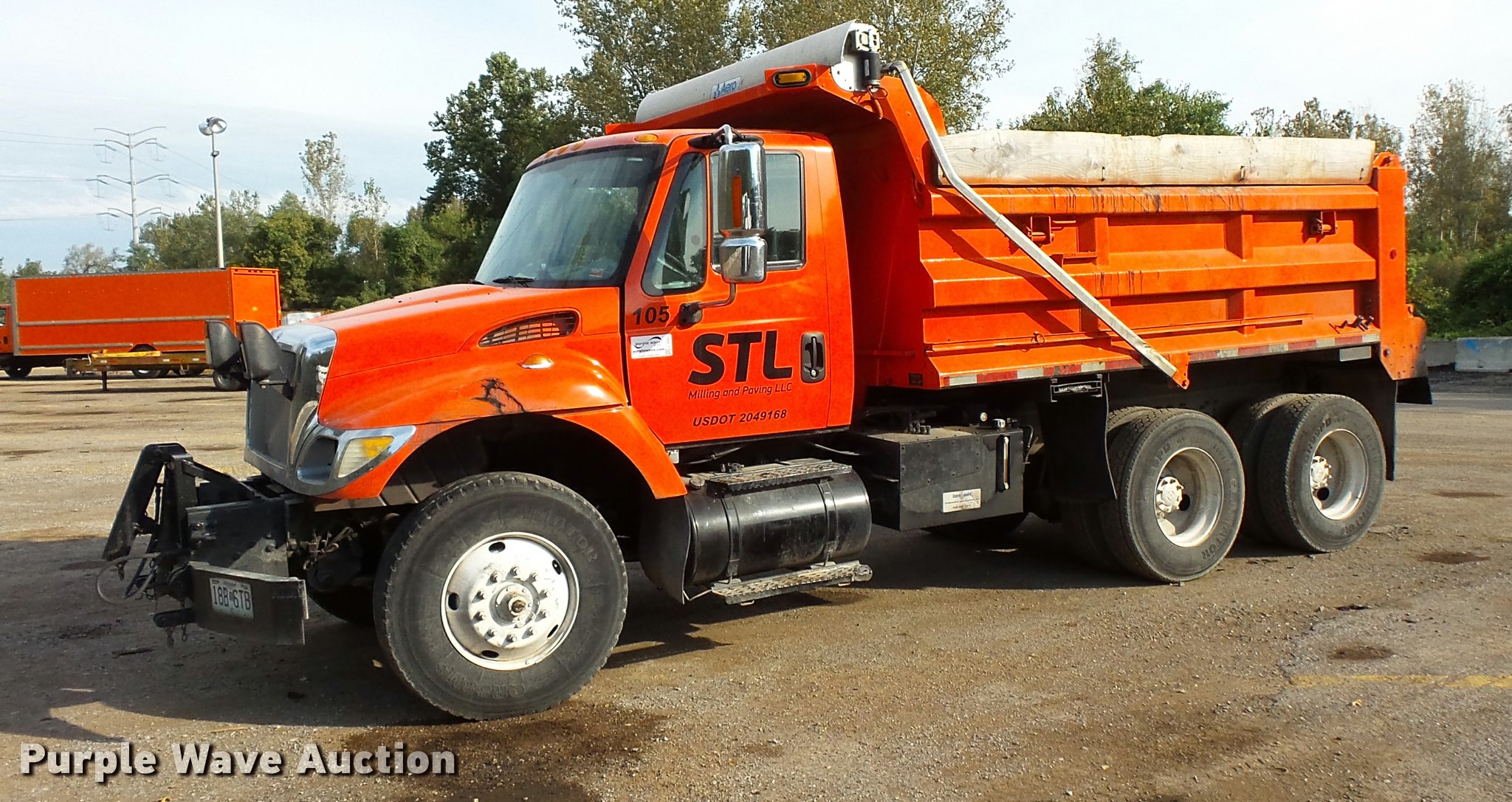 Purple Wave is selling a used Construction Dump Truck in Missouri. This item is a 2003 International 7400 dump truck with the following: 184,808 miles on odometer, International DT530 8.7L L6 turbo diesel engine, Allison automatic transmission, Tandem axle, AC and heat, AM/FM, Air suspension seat, PTO, 14'L steel dump bed, Single ram hoist, Air end gate, Plow mount, No plow, Controls, Pintle hitch, Rubber pad over walking-beam suspension, 315/80R22.5 front tires, 11R22.5 rear tires, Unit# 105