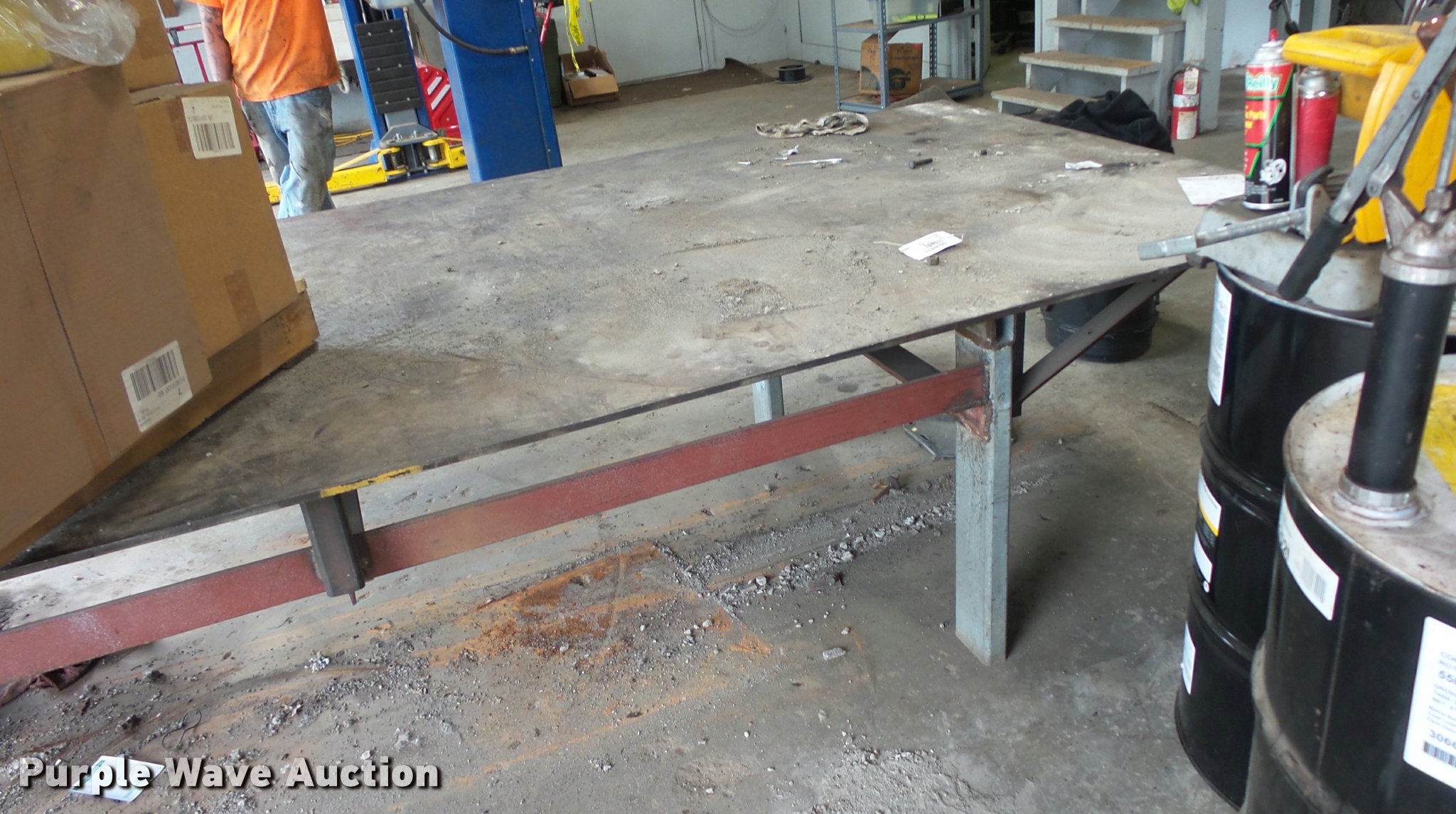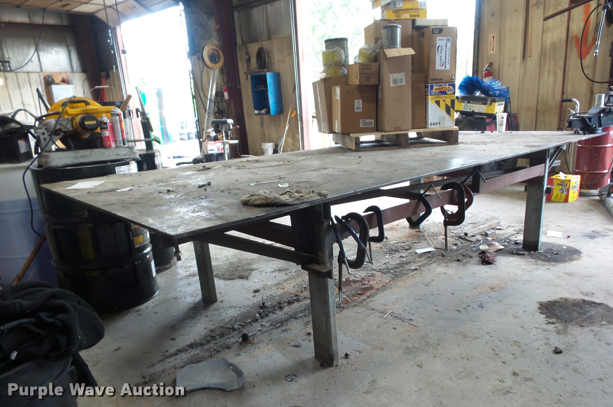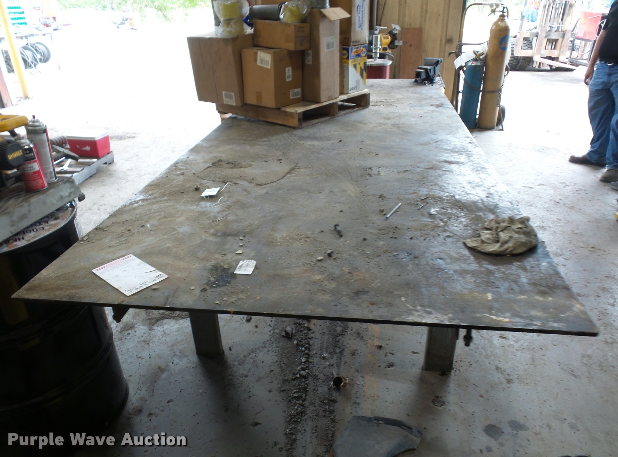 Purple Wave is selling a used Tools in Missouri. This item is a Shop table with the following: 12'L x 5'W x 32"H, Vice
