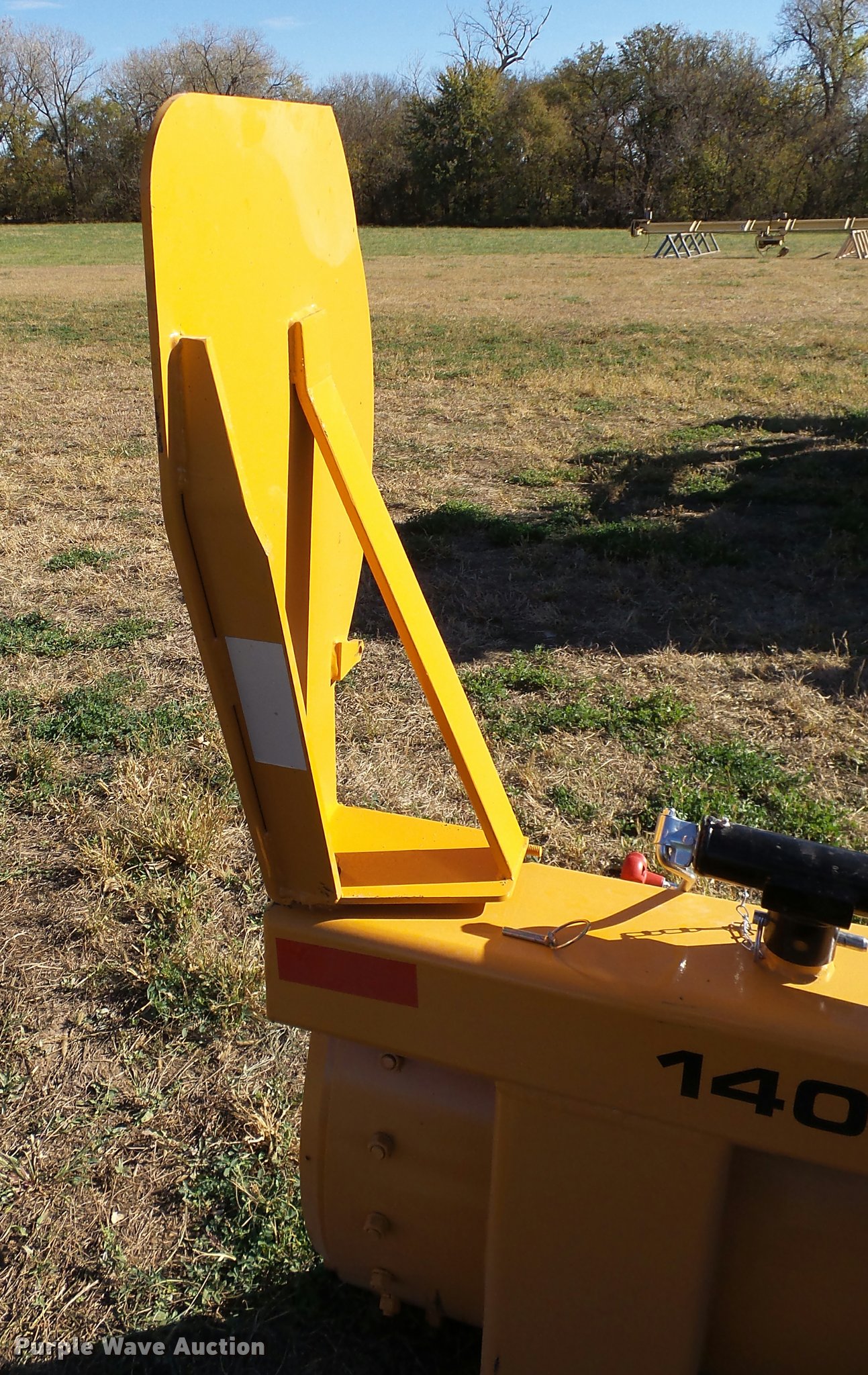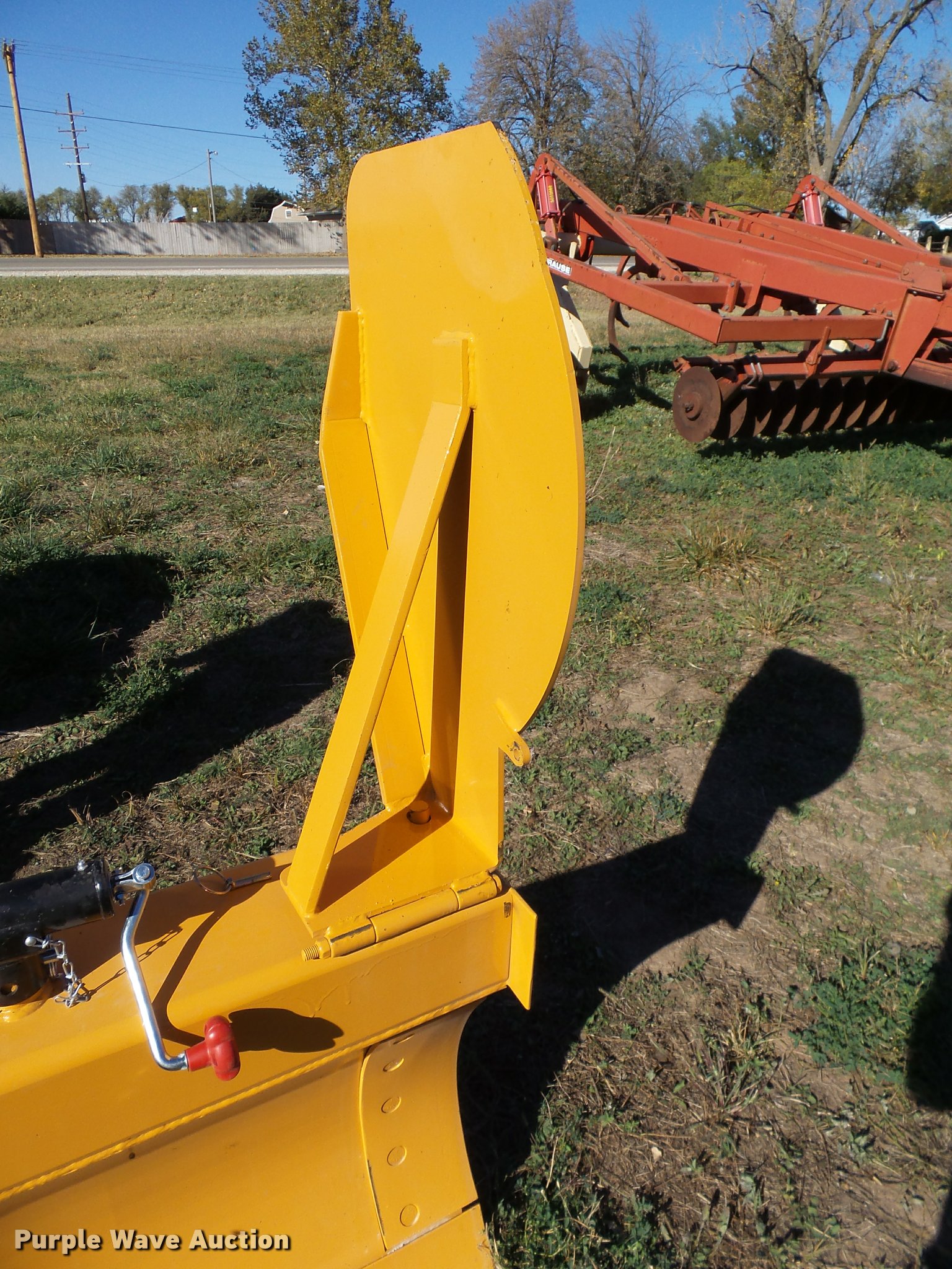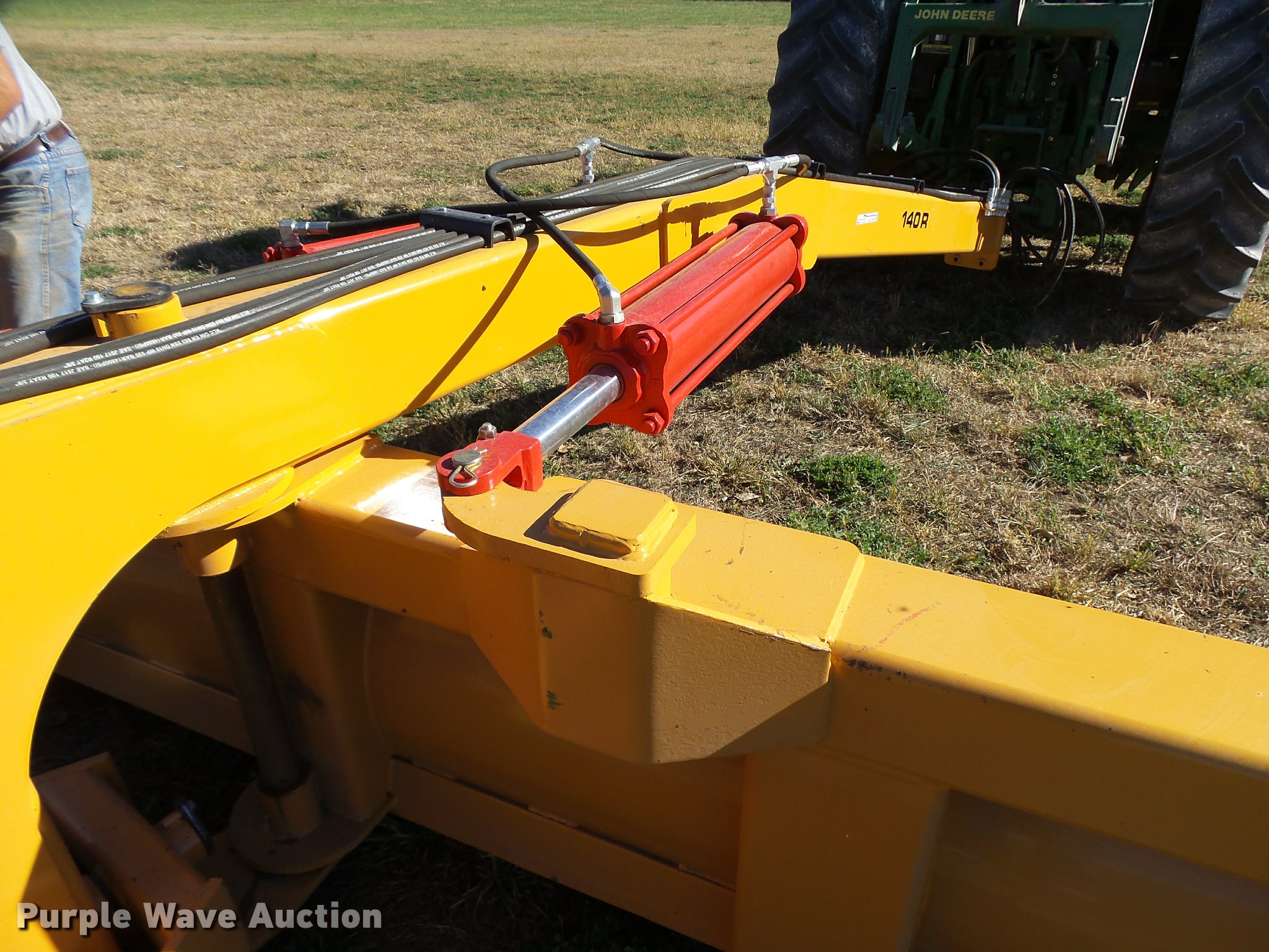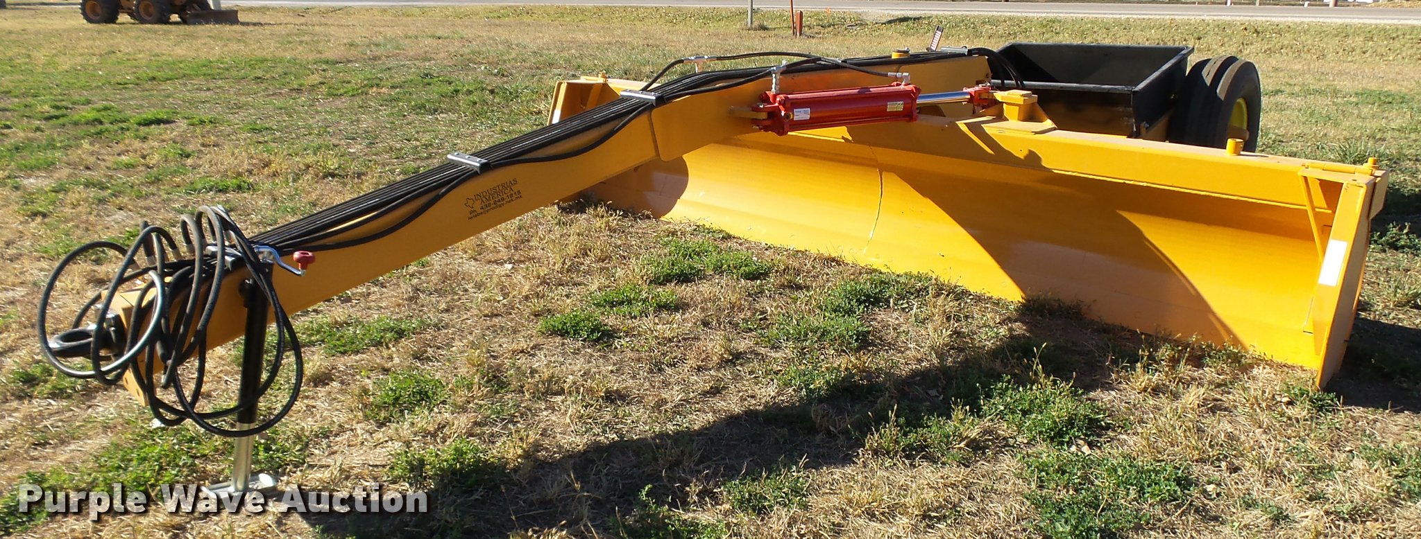 Purple Wave is selling a used Pull Type Scraper in Kansas. This item is a Indsutrias America 140R scraper with the following: 14'W, 24" blade with convertible open or closed drop ends, Eight-way angle, (4) sets hydraulics, Pintle hitch, 11.00-16 tires, Unused