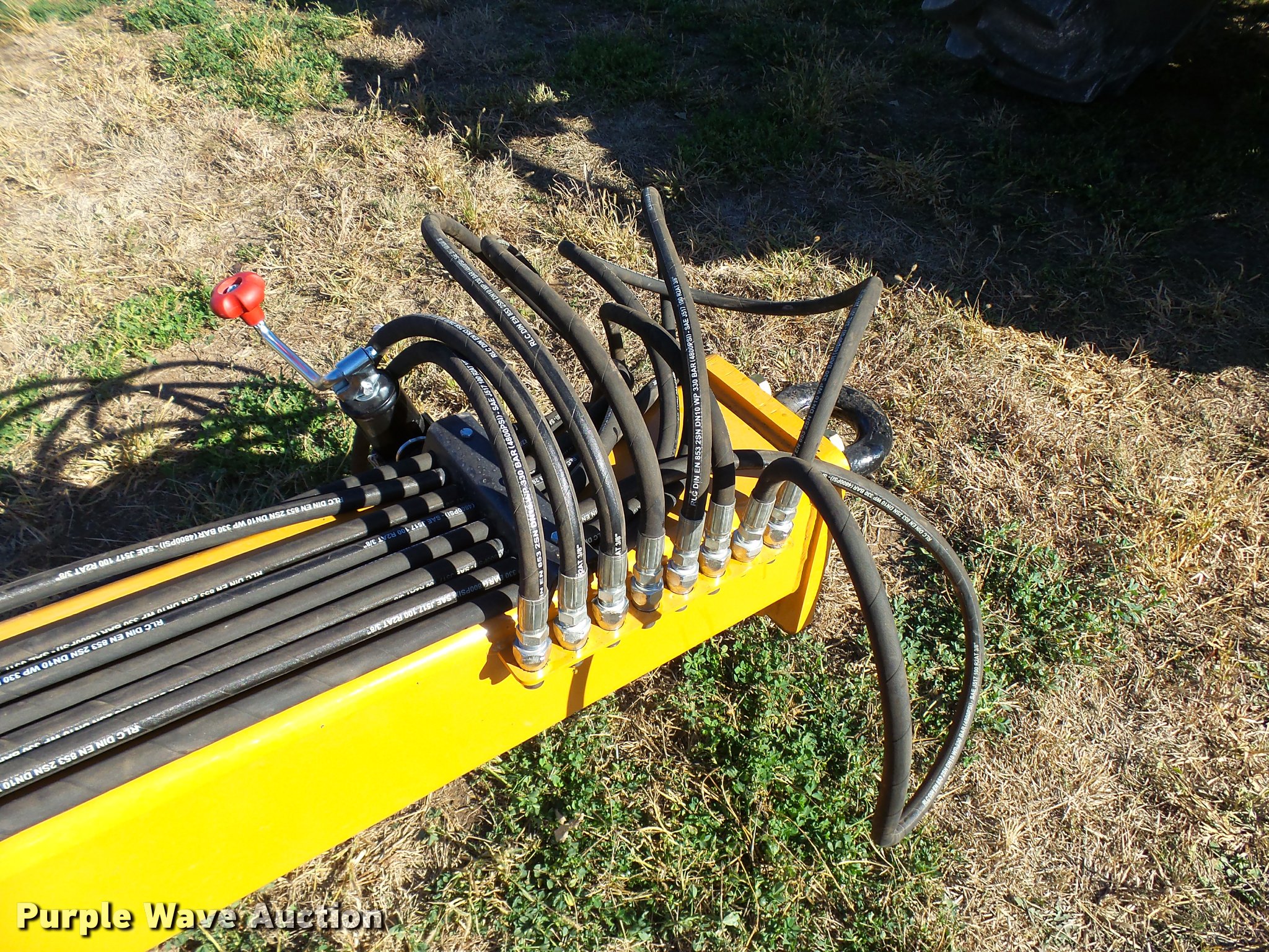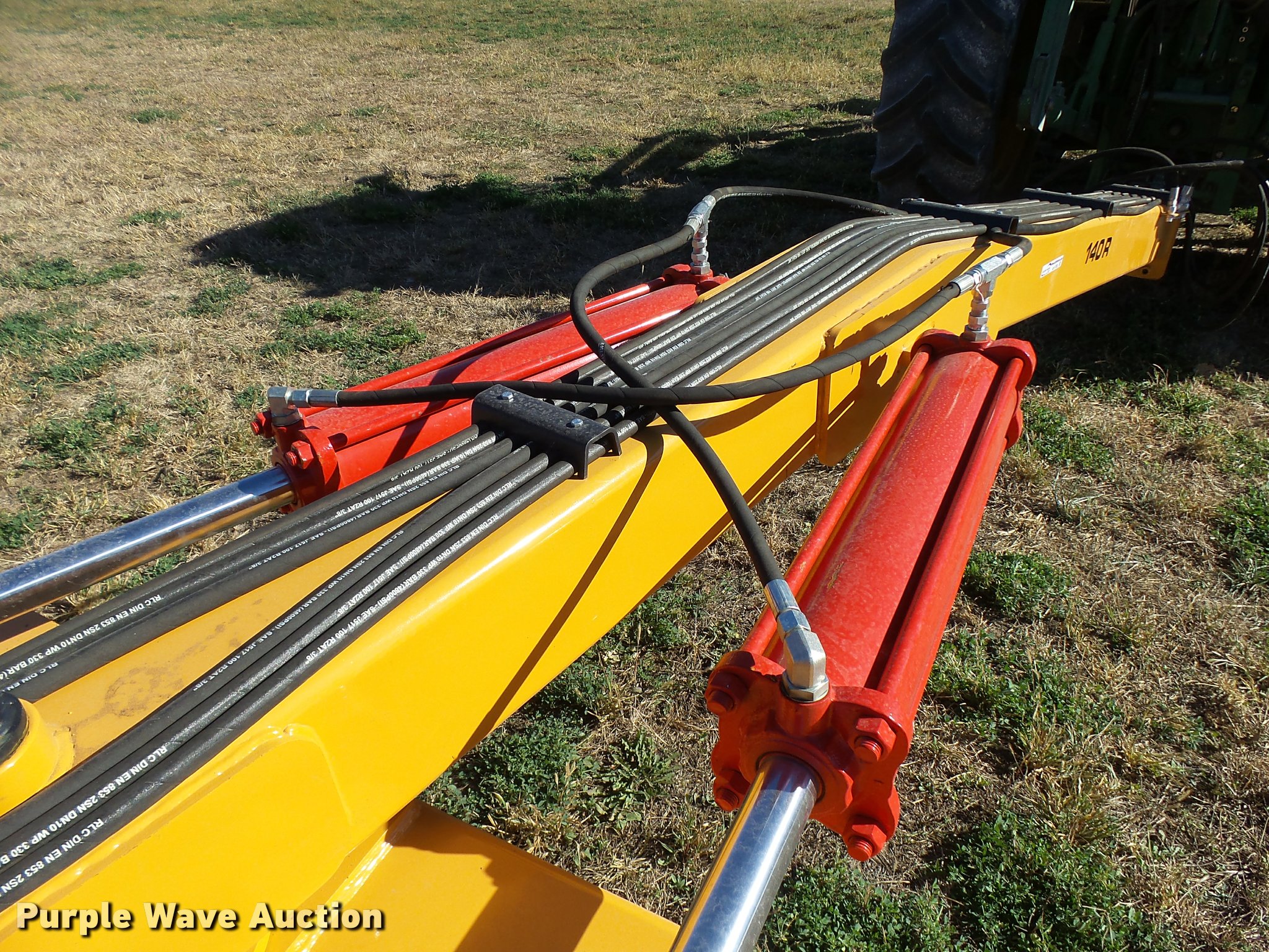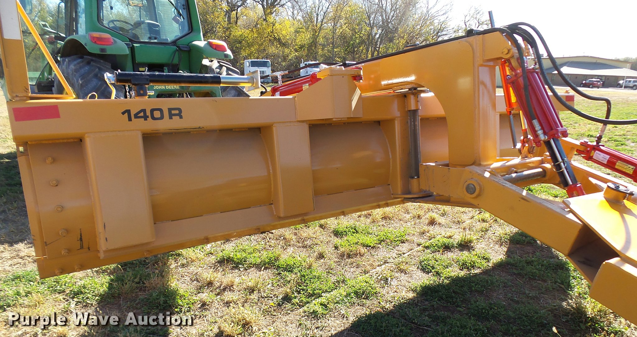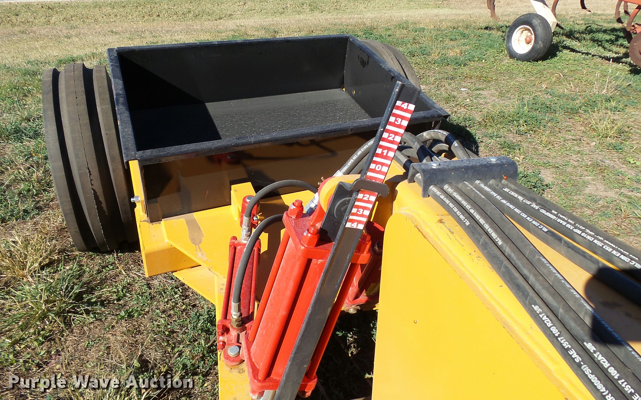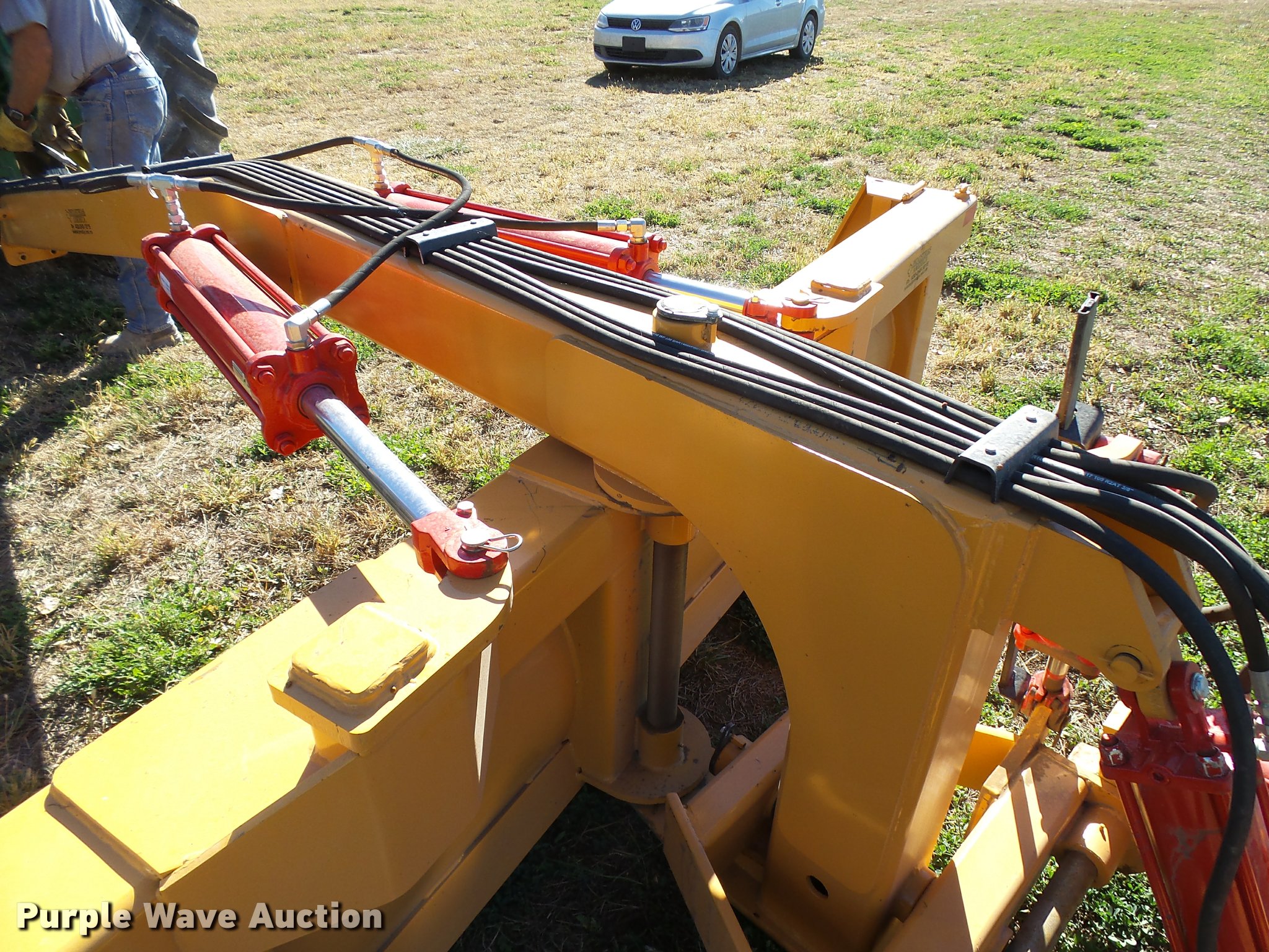 Purple Wave is selling a used Pull Type Scraper in Kansas. This item is a Indsutrias America 140R scraper with the following: 14'W, 24" blade with convertible open or closed drop ends, Eight-way angle, (4) sets hydraulics, Pintle hitch, 11.00-16 tires, Unused