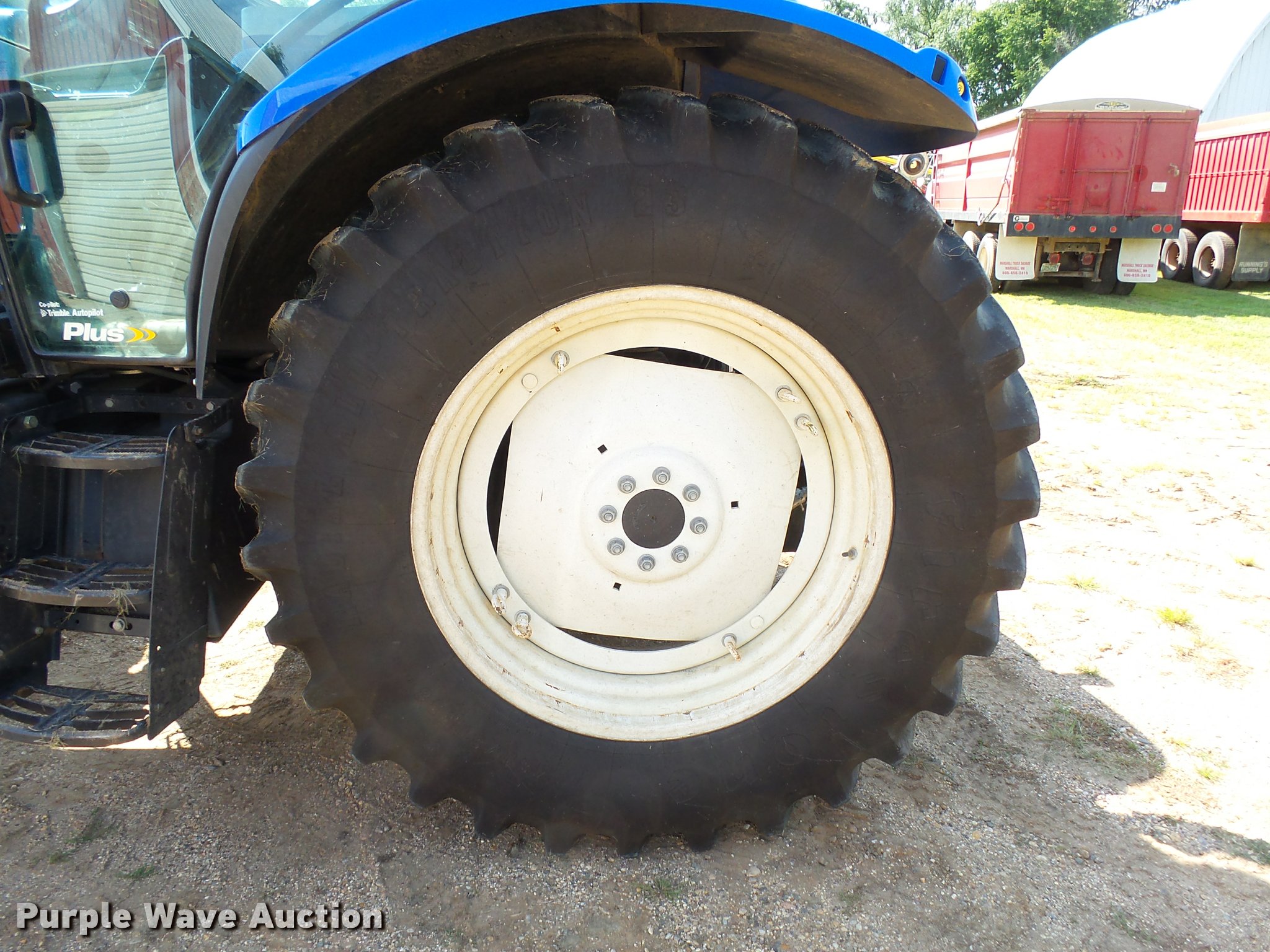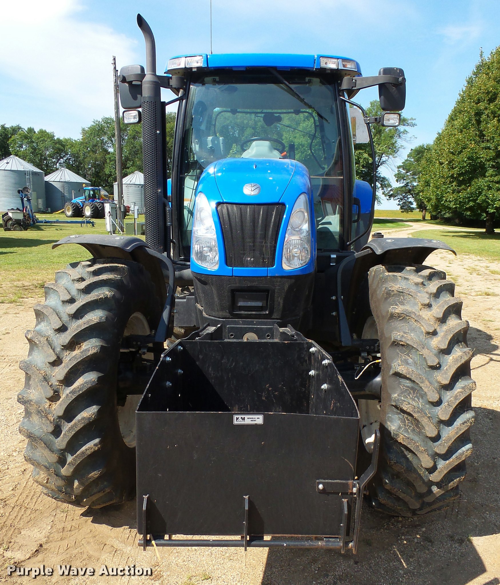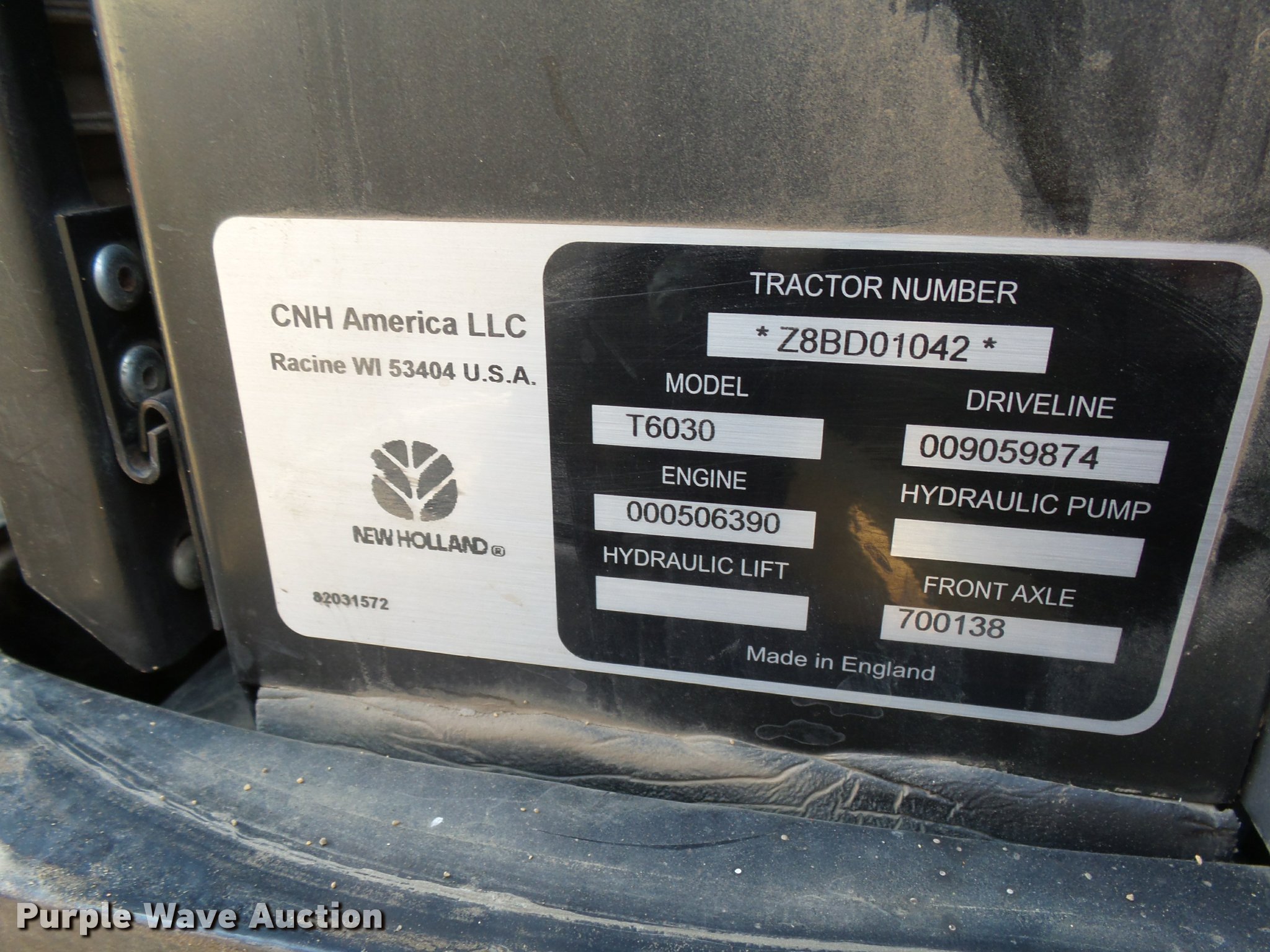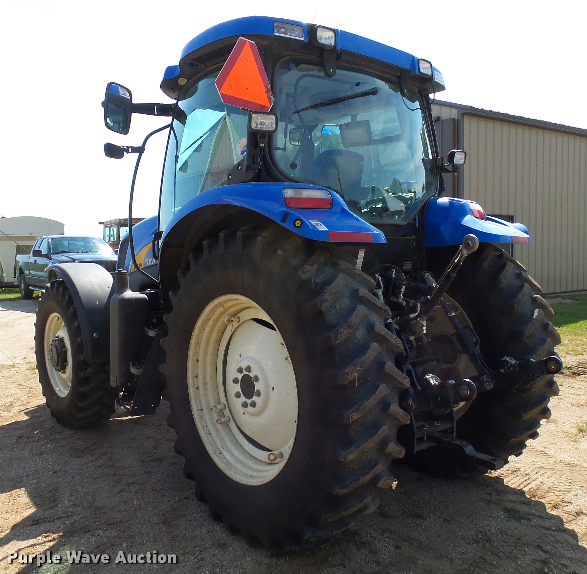 Purple Wave is selling a used Tractor in Minnesota. This item is a 2008 New Holland T6030 tractor with the following: 1,098 hours on meter, 6.7L six cylinder turbo diesel engine, 115 HP, Serial 000506390, Partial powershift electro shift transmission, 16F-16R gears, Trimble Autopilot Plus, Super steer, Hydrostatic power steering, Front rock rack, Loader mounts ready, 66 gallon fuel tanks, Hydraulic wet disc brakes, 104/7" wheelbase, 380/85R front tires, 480/80R38 rear tires, 11,336 lbs. base operating weight, Additional seat included, Serial Z8BD01042