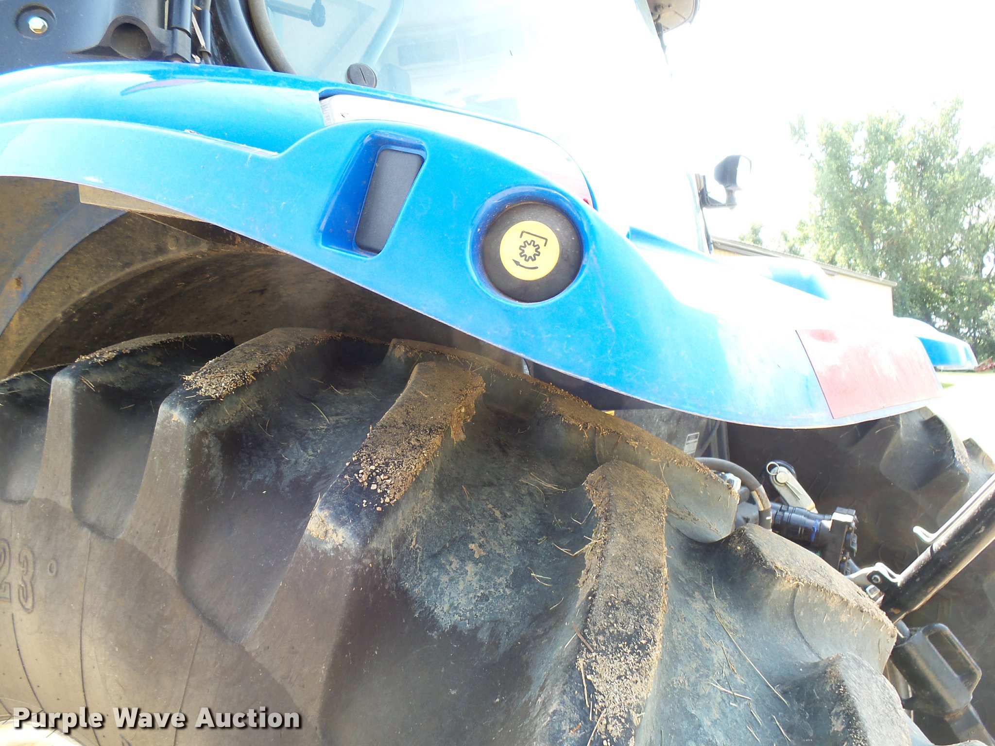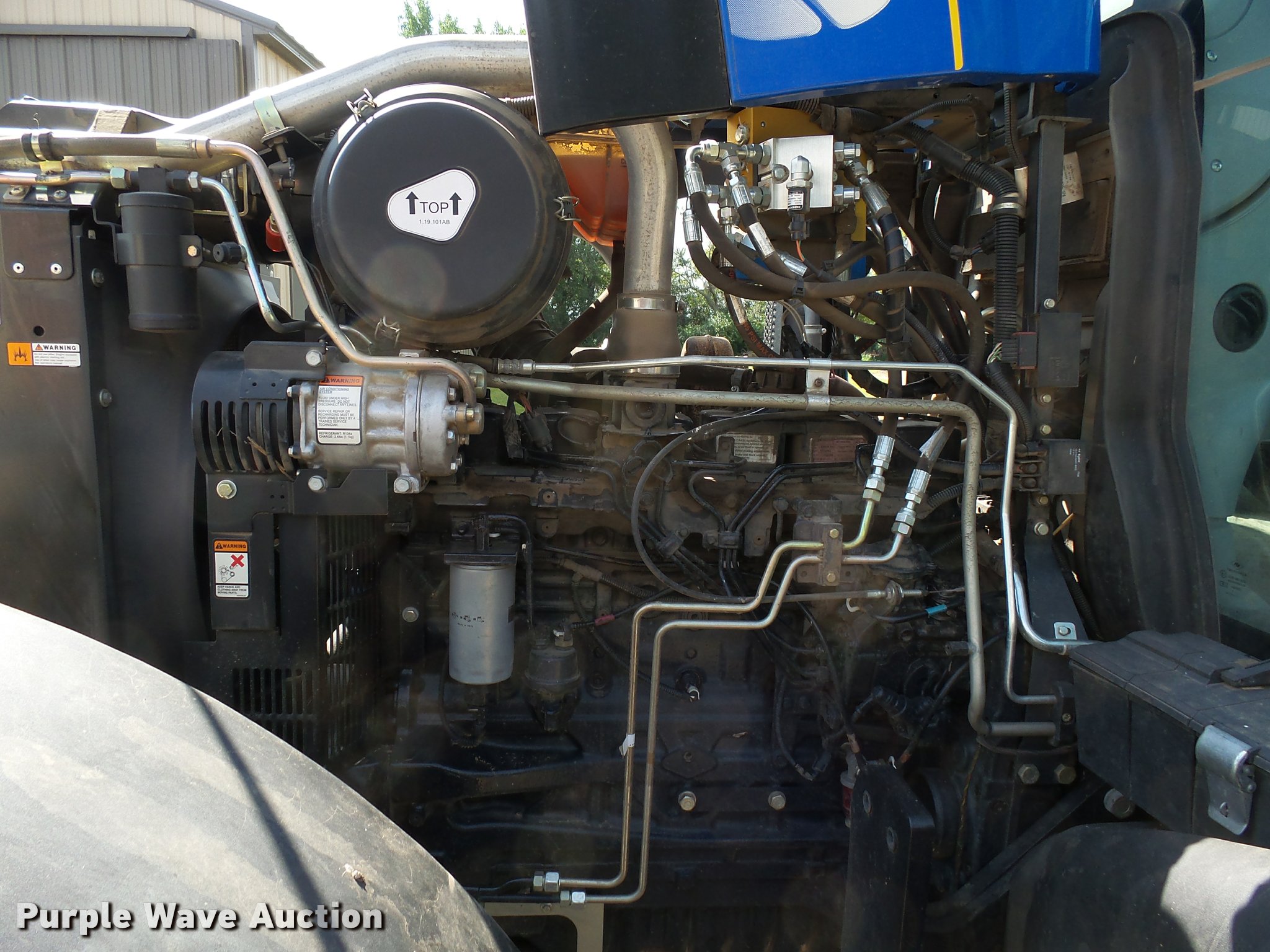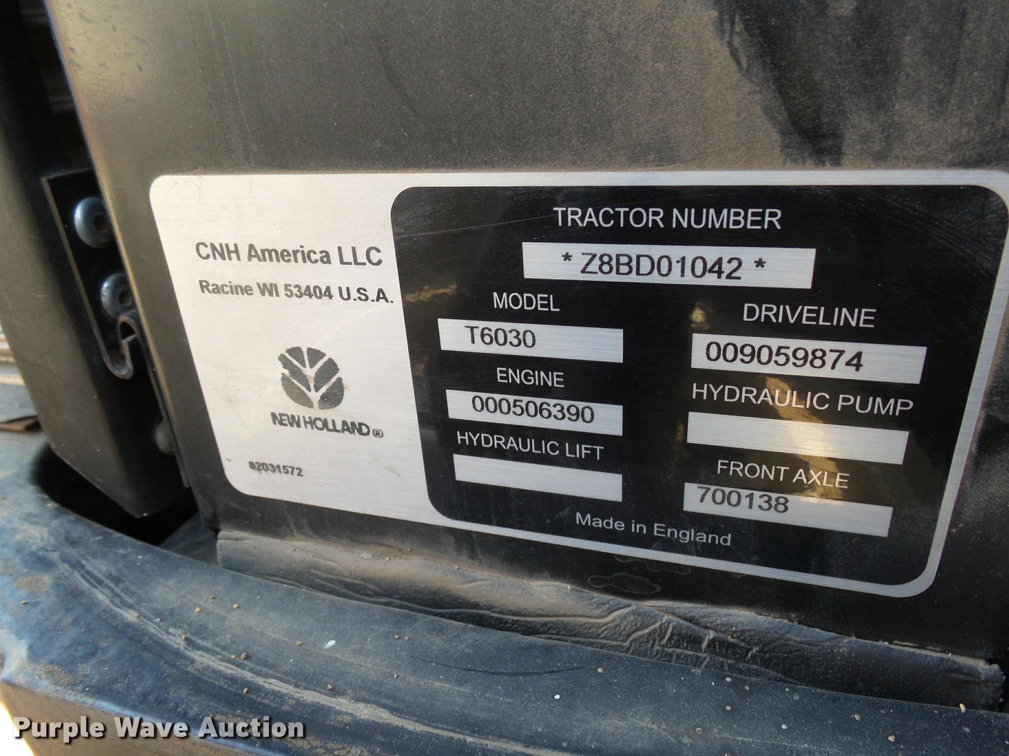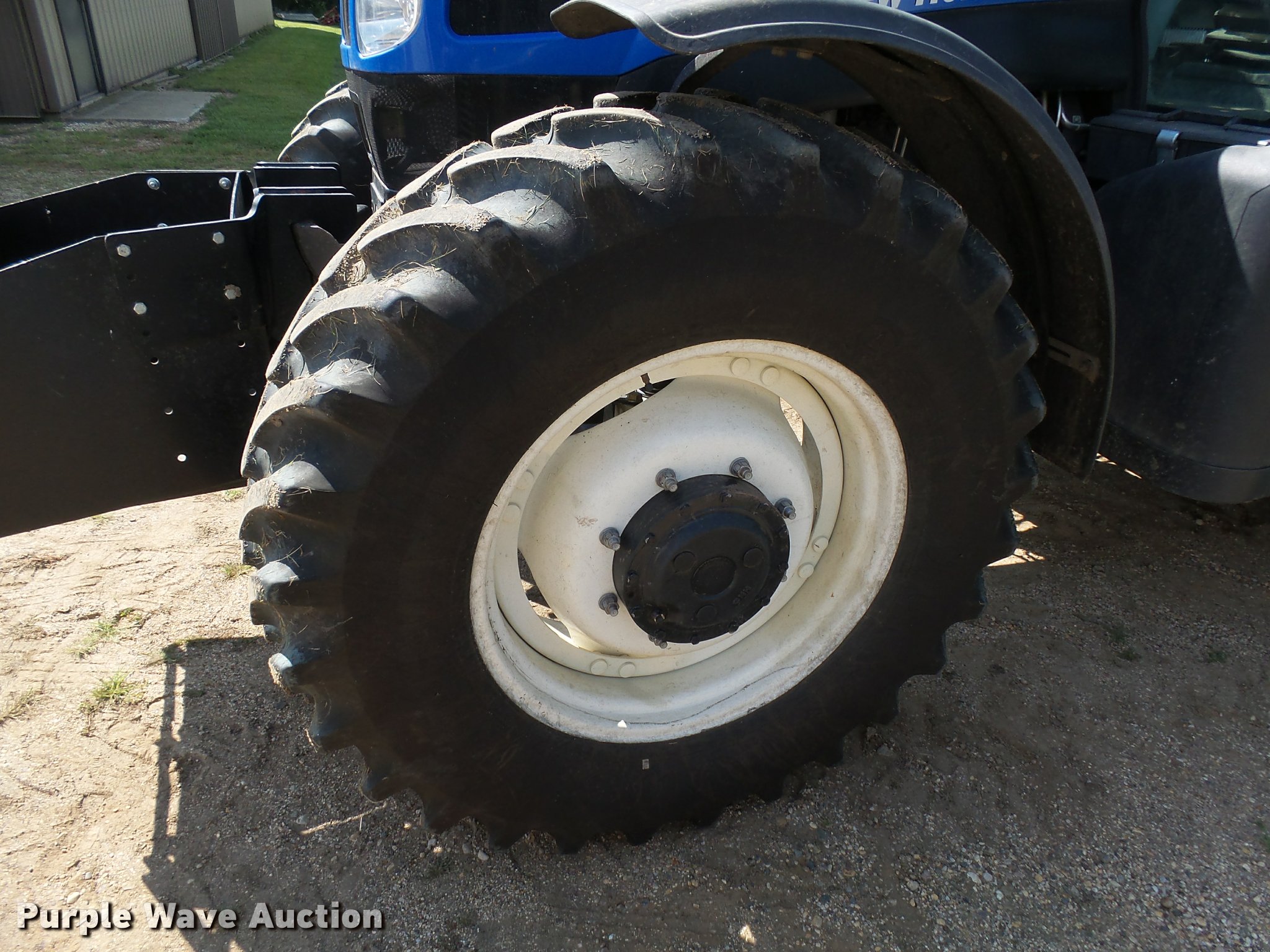 Purple Wave is selling a used Tractor in Minnesota. This item is a 2008 New Holland T6030 tractor with the following: 1,098 hours on meter, 6.7L six cylinder turbo diesel engine, 115 HP, Serial 000506390, Partial powershift electro shift transmission, 16F-16R gears, Trimble Autopilot Plus, Super steer, Hydrostatic power steering, Front rock rack, Loader mounts ready, 66 gallon fuel tanks, Hydraulic wet disc brakes, 104/7" wheelbase, 380/85R front tires, 480/80R38 rear tires, 11,336 lbs. base operating weight, Additional seat included, Serial Z8BD01042