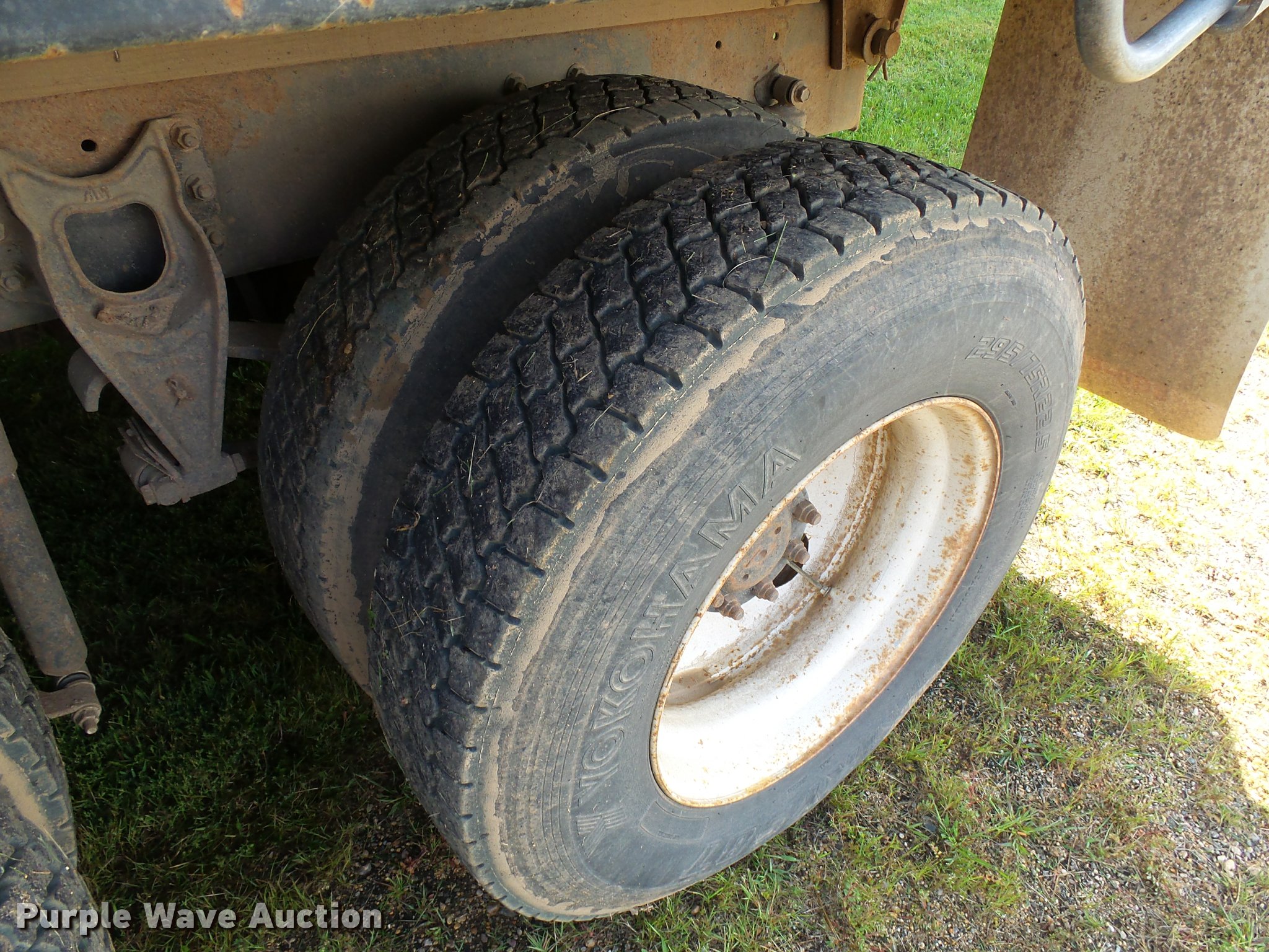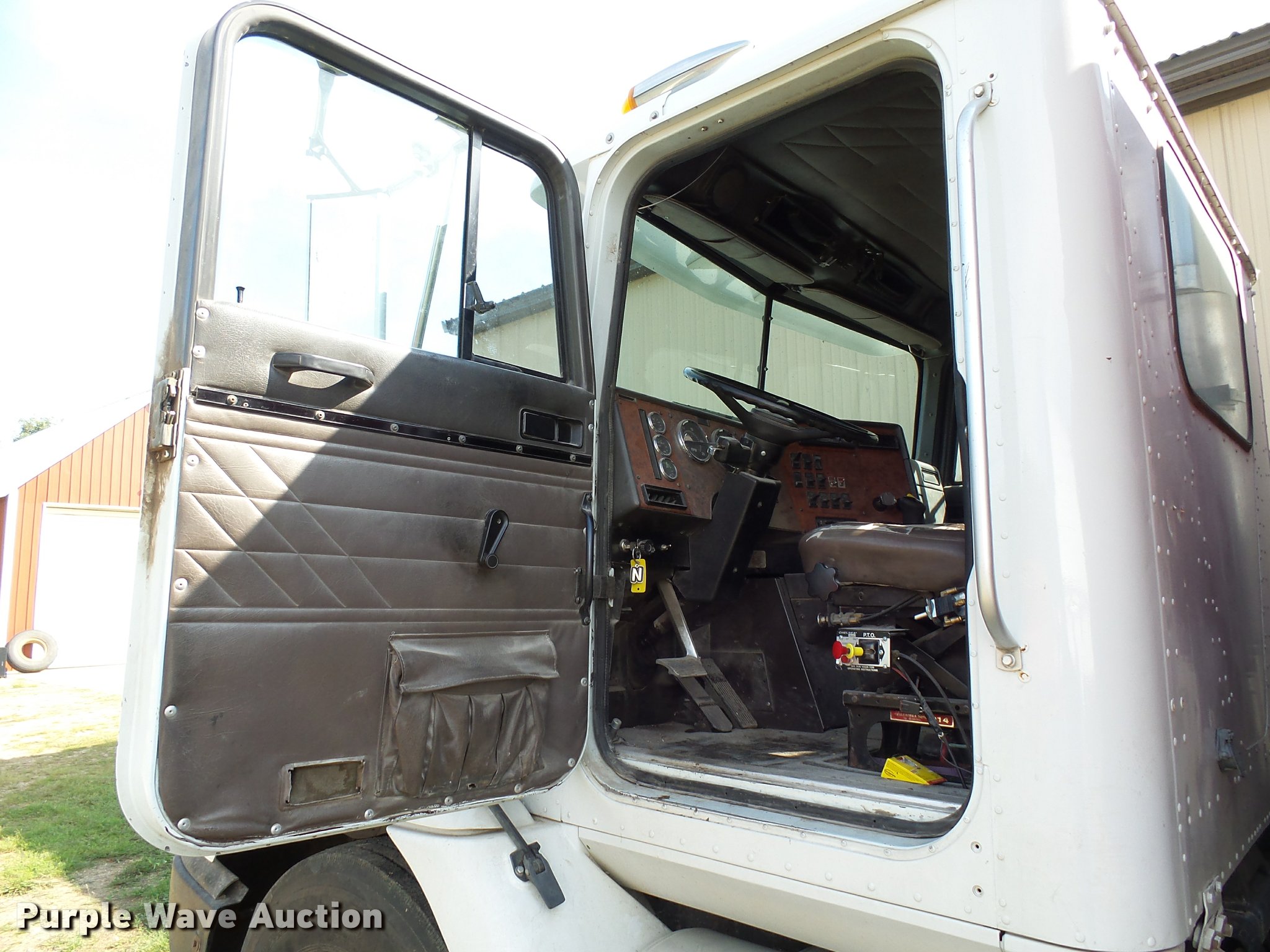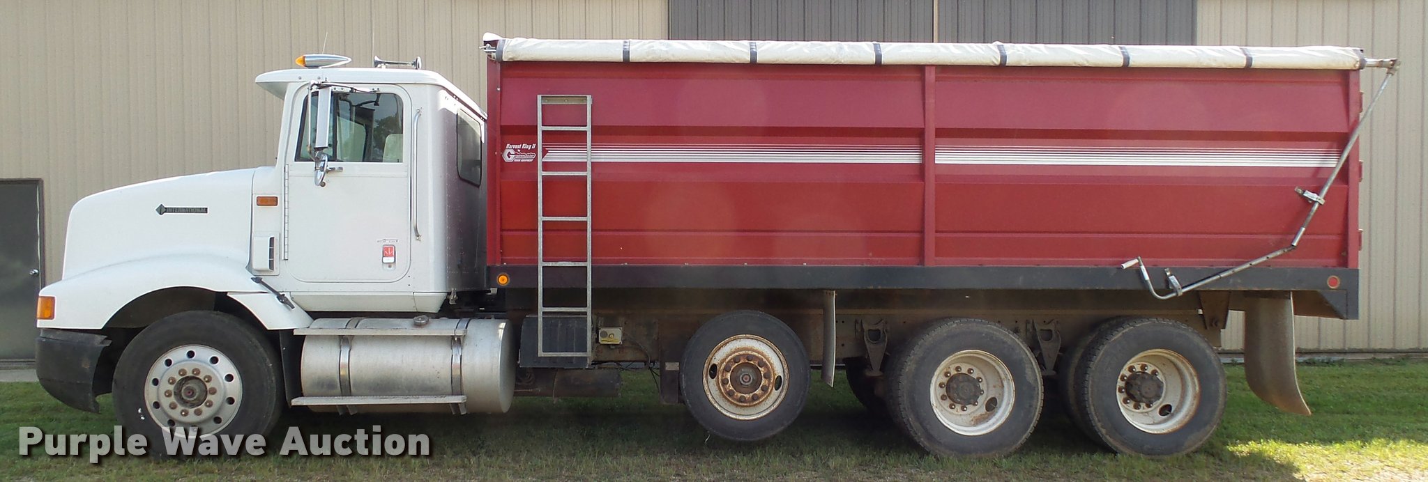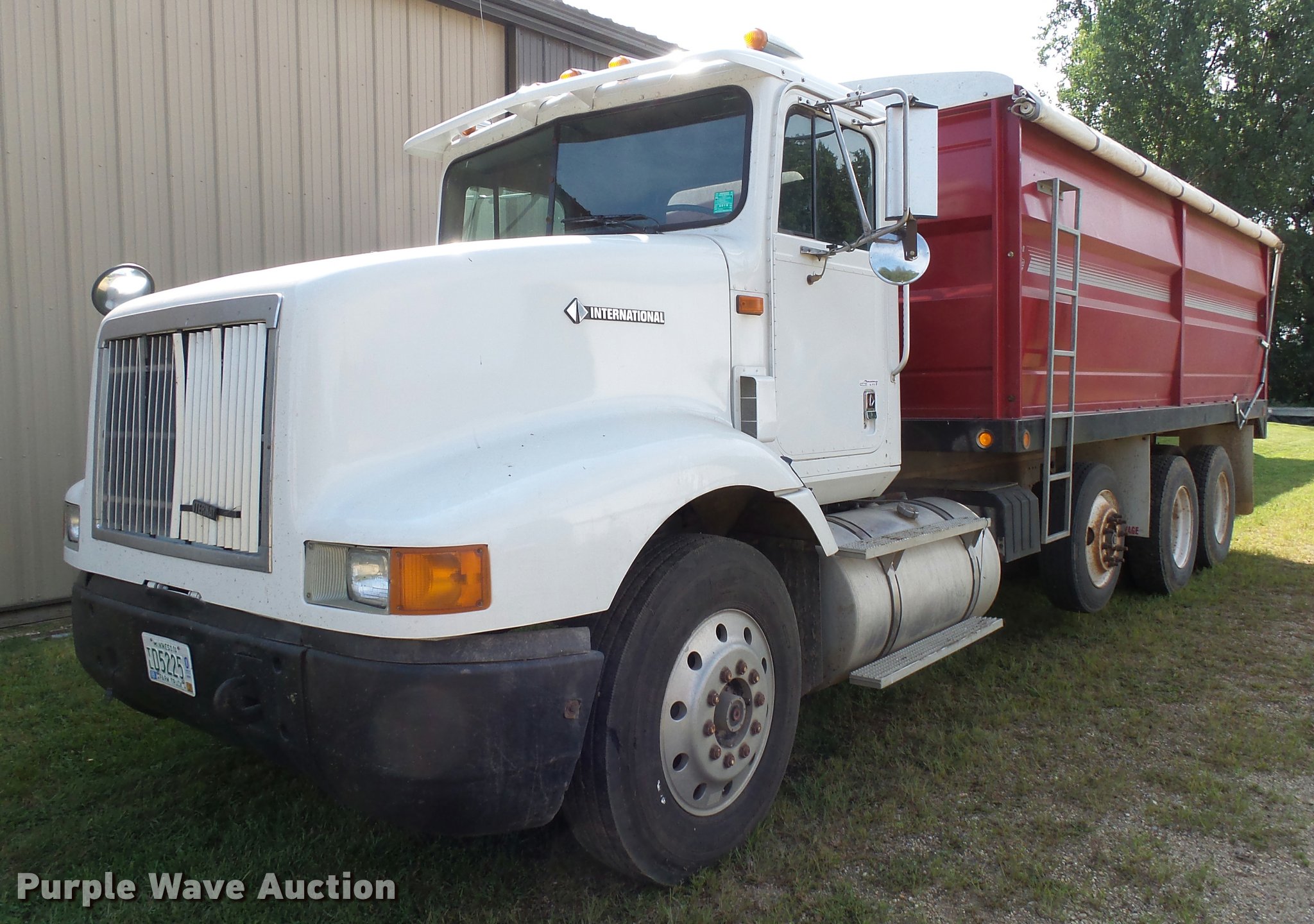 Purple Wave is selling a used Grain Truck in Minnesota. This item is a 1996 International 9200 grain truck with the following: 7,000 miles on odometer, Odometer has rolled over, Detroit Diesel Series 60 11.1L L6 diesel engine, Spicer nine speed manual transmission, Tandem axle, Tag lift axle, AC and heat, Cruise, AM/FM, Air suspension seat, Chelsea PTO, 95"W steel grain bed, 5'H sides, Rollover tarp, 11R24.5 front tires, 255/70R22.5 rear tires