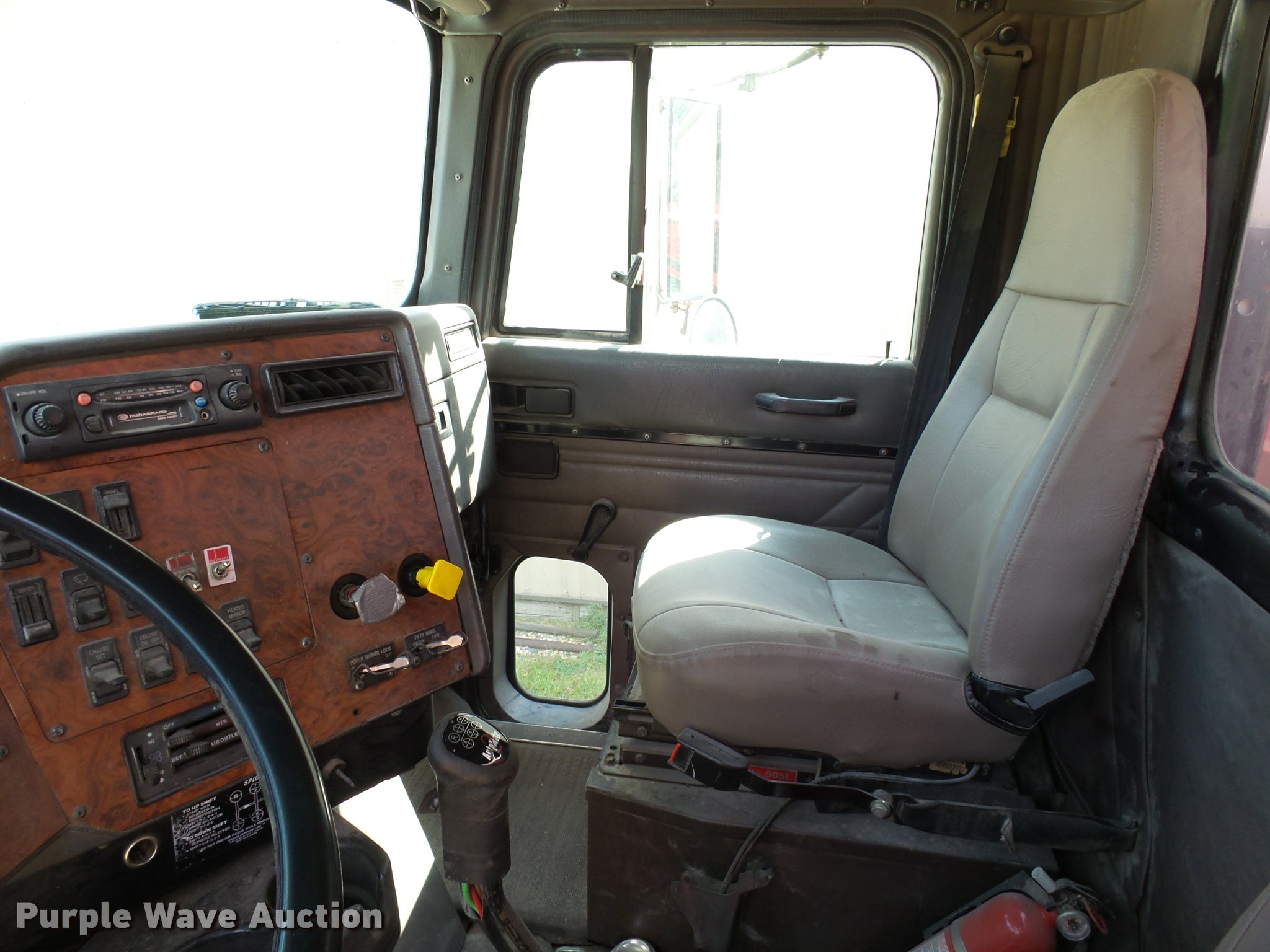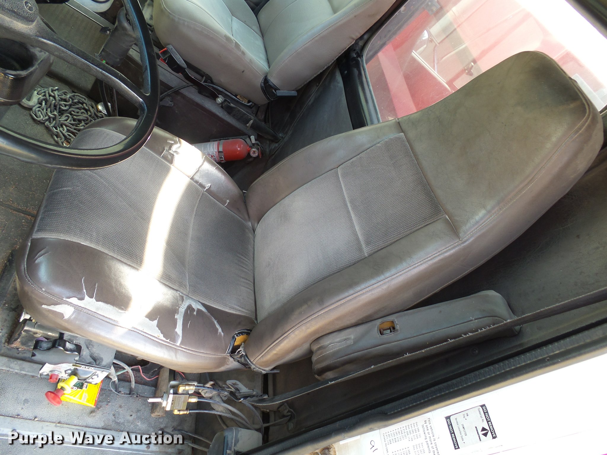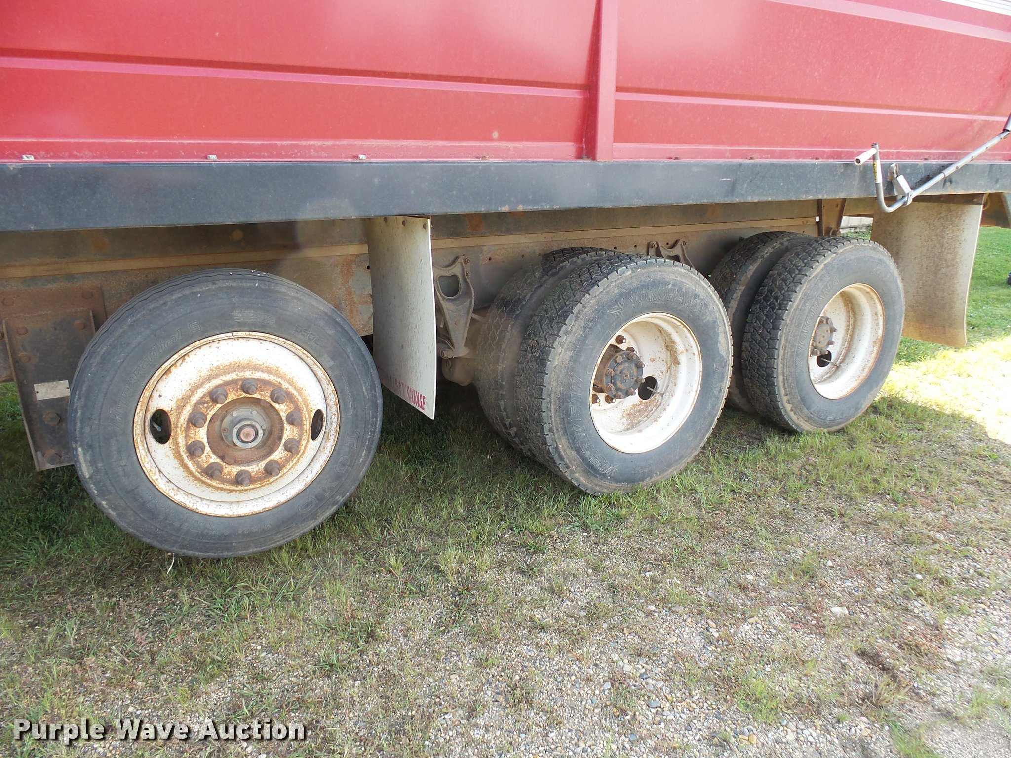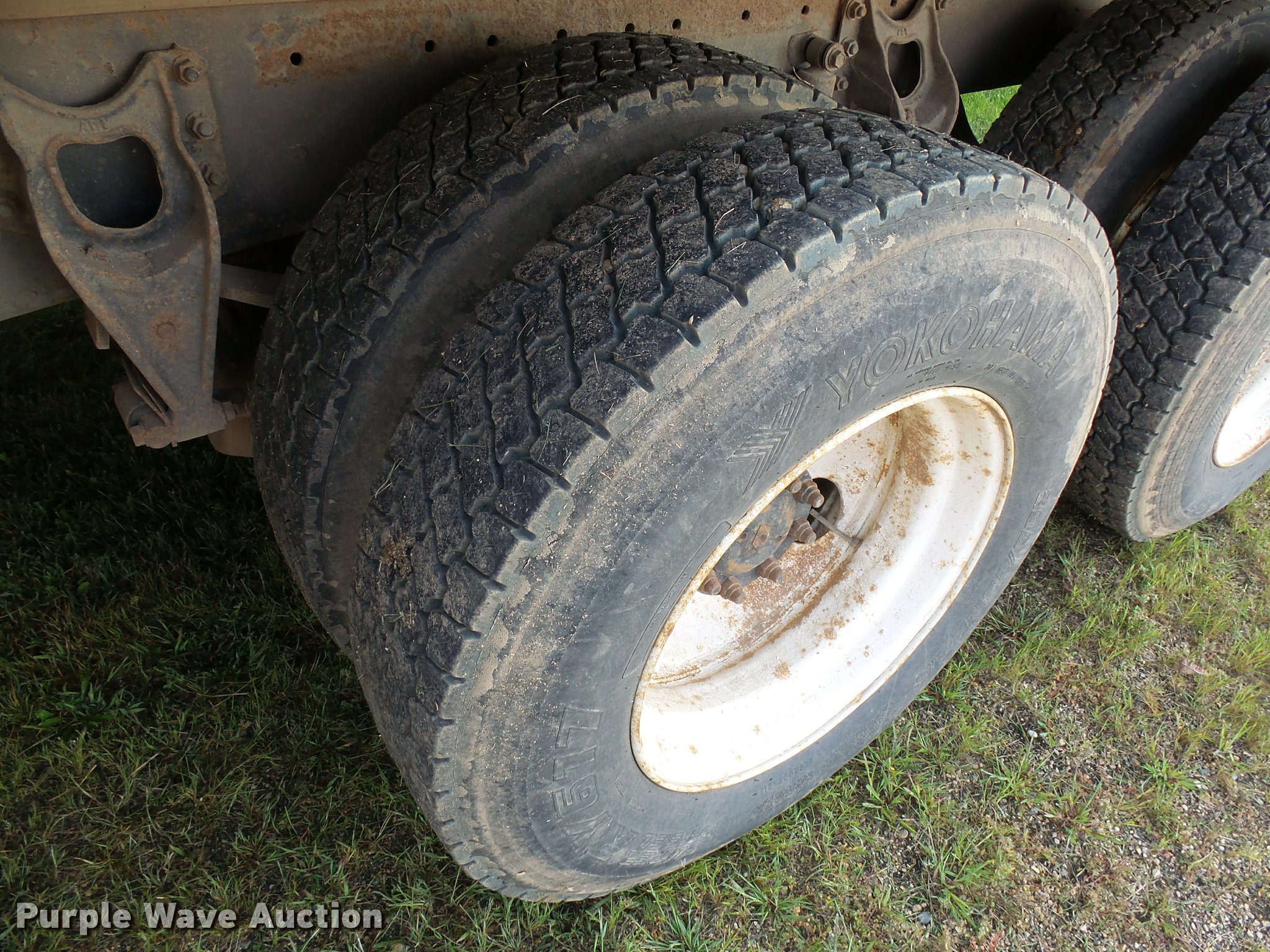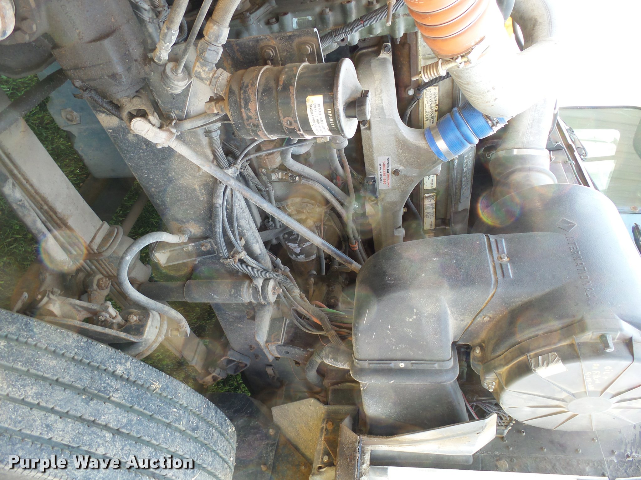 Purple Wave is selling a used Grain Truck in Minnesota. This item is a 1996 International 9200 grain truck with the following: 7,000 miles on odometer, Odometer has rolled over, Detroit Diesel Series 60 11.1L L6 diesel engine, Spicer nine speed manual transmission, Tandem axle, Tag lift axle, AC and heat, Cruise, AM/FM, Air suspension seat, Chelsea PTO, 95"W steel grain bed, 5'H sides, Rollover tarp, 11R24.5 front tires, 255/70R22.5 rear tires