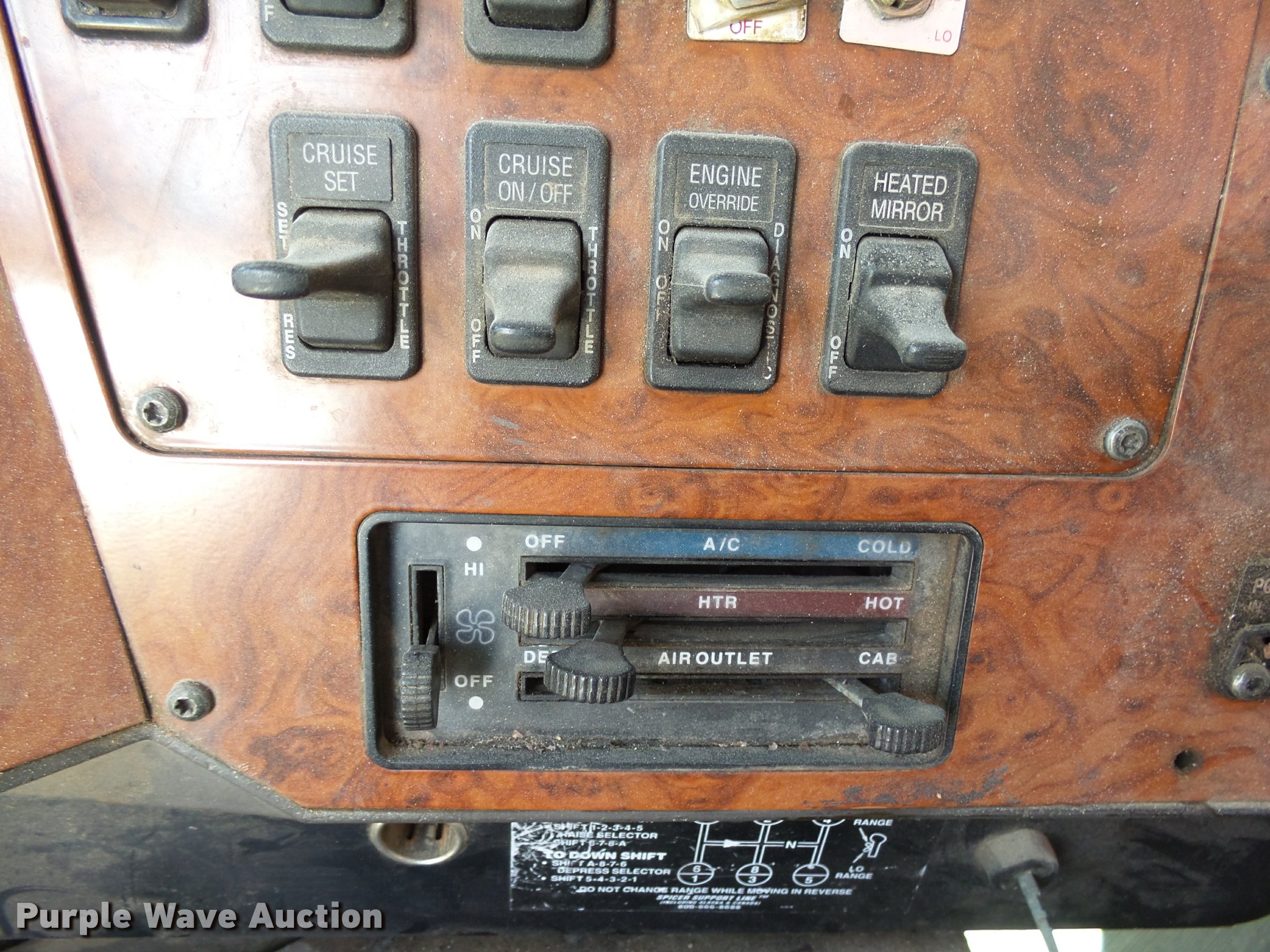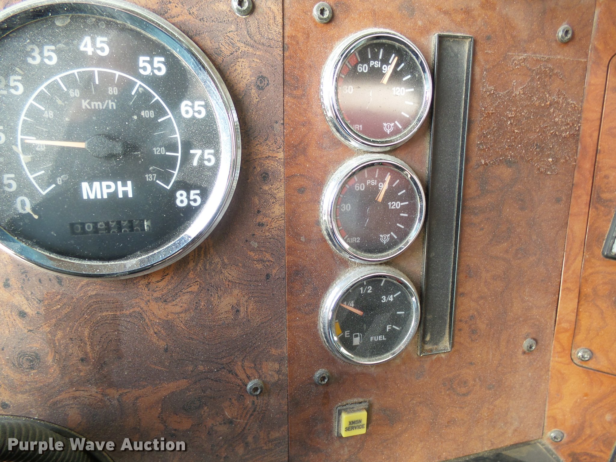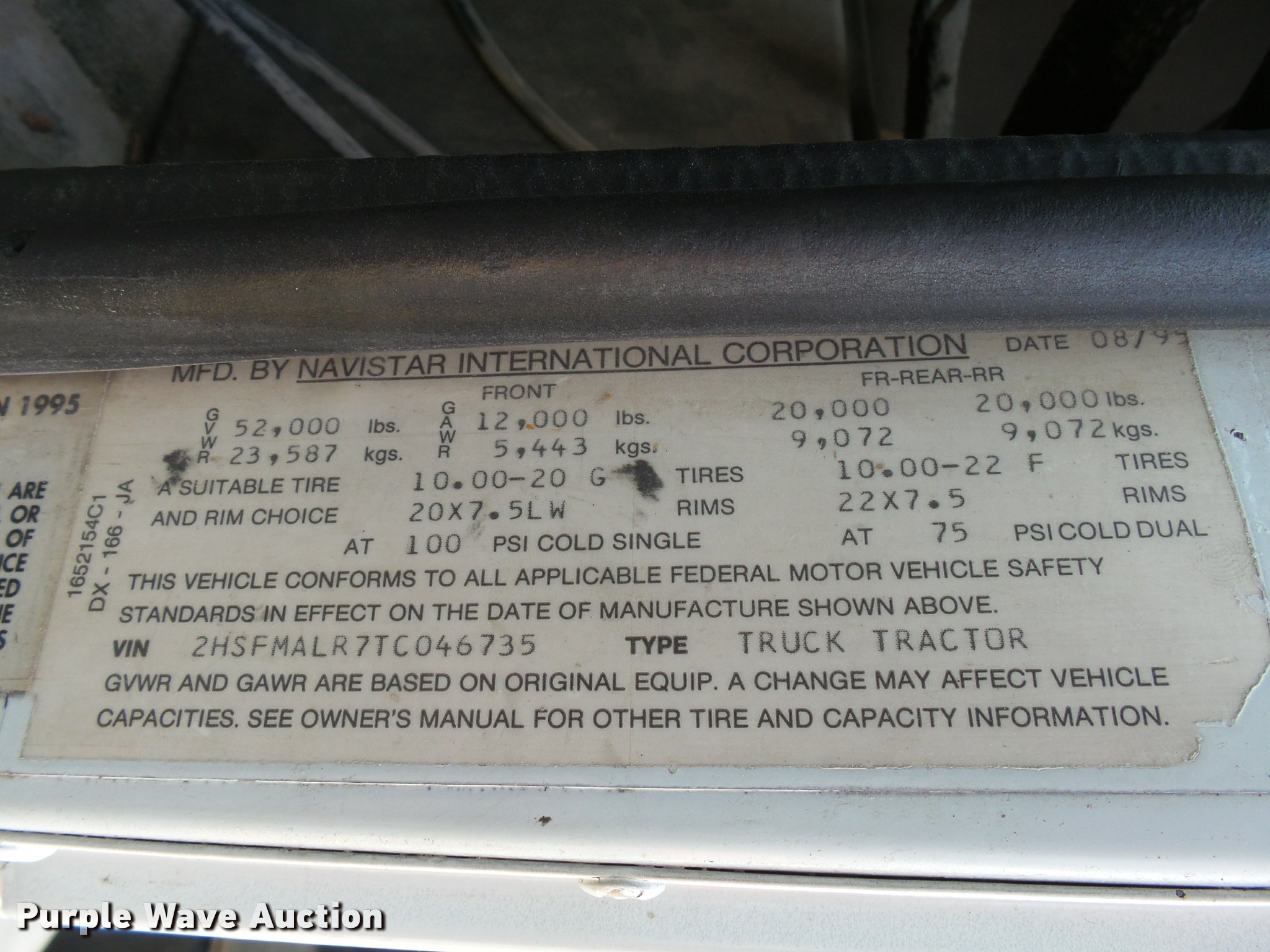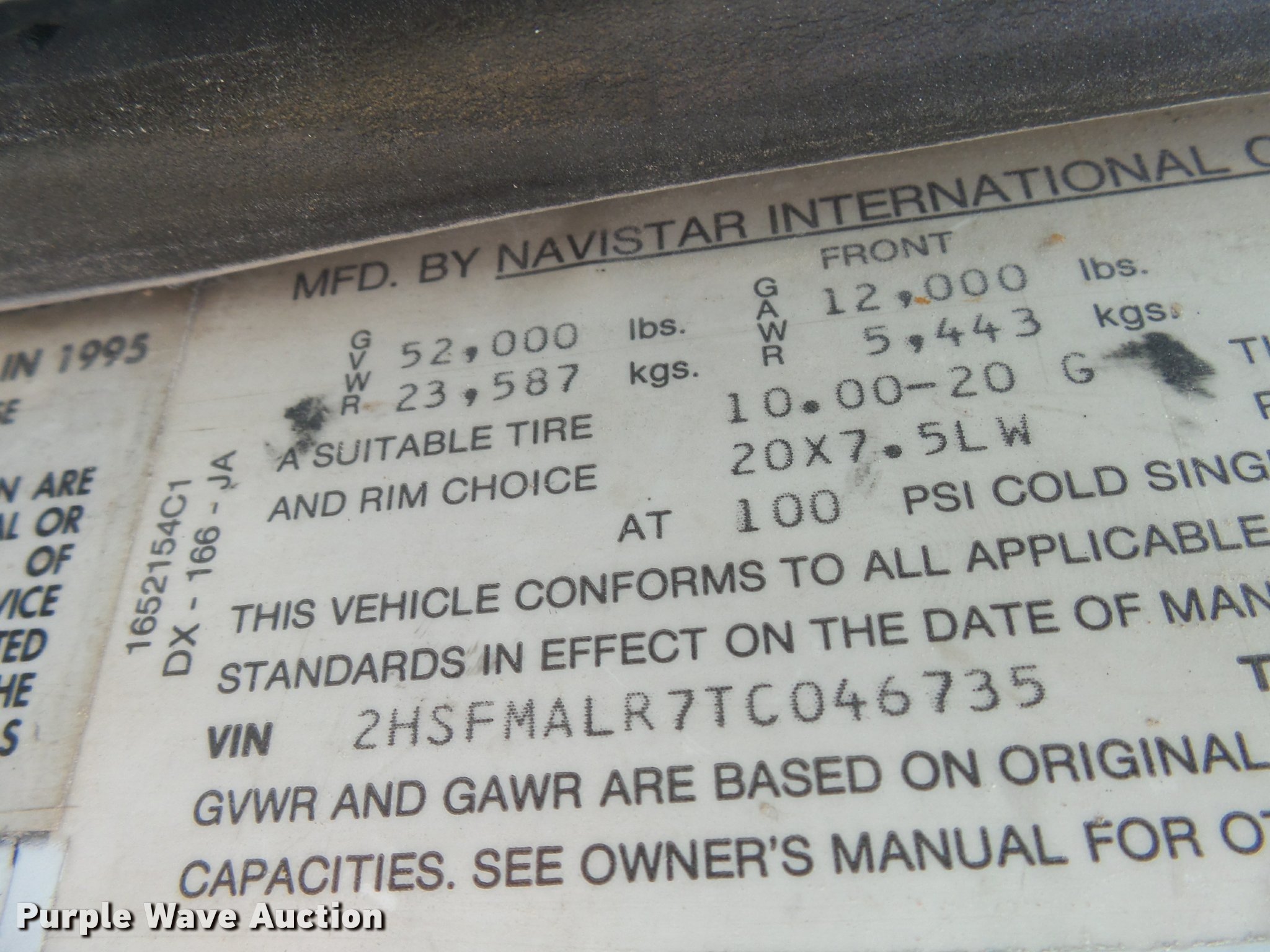 Purple Wave is selling a used Grain Truck in Minnesota. This item is a 1996 International 9200 grain truck with the following: 7,000 miles on odometer, Odometer has rolled over, Detroit Diesel Series 60 11.1L L6 diesel engine, Spicer nine speed manual transmission, Tandem axle, Tag lift axle, AC and heat, Cruise, AM/FM, Air suspension seat, Chelsea PTO, 95"W steel grain bed, 5'H sides, Rollover tarp, 11R24.5 front tires, 255/70R22.5 rear tires