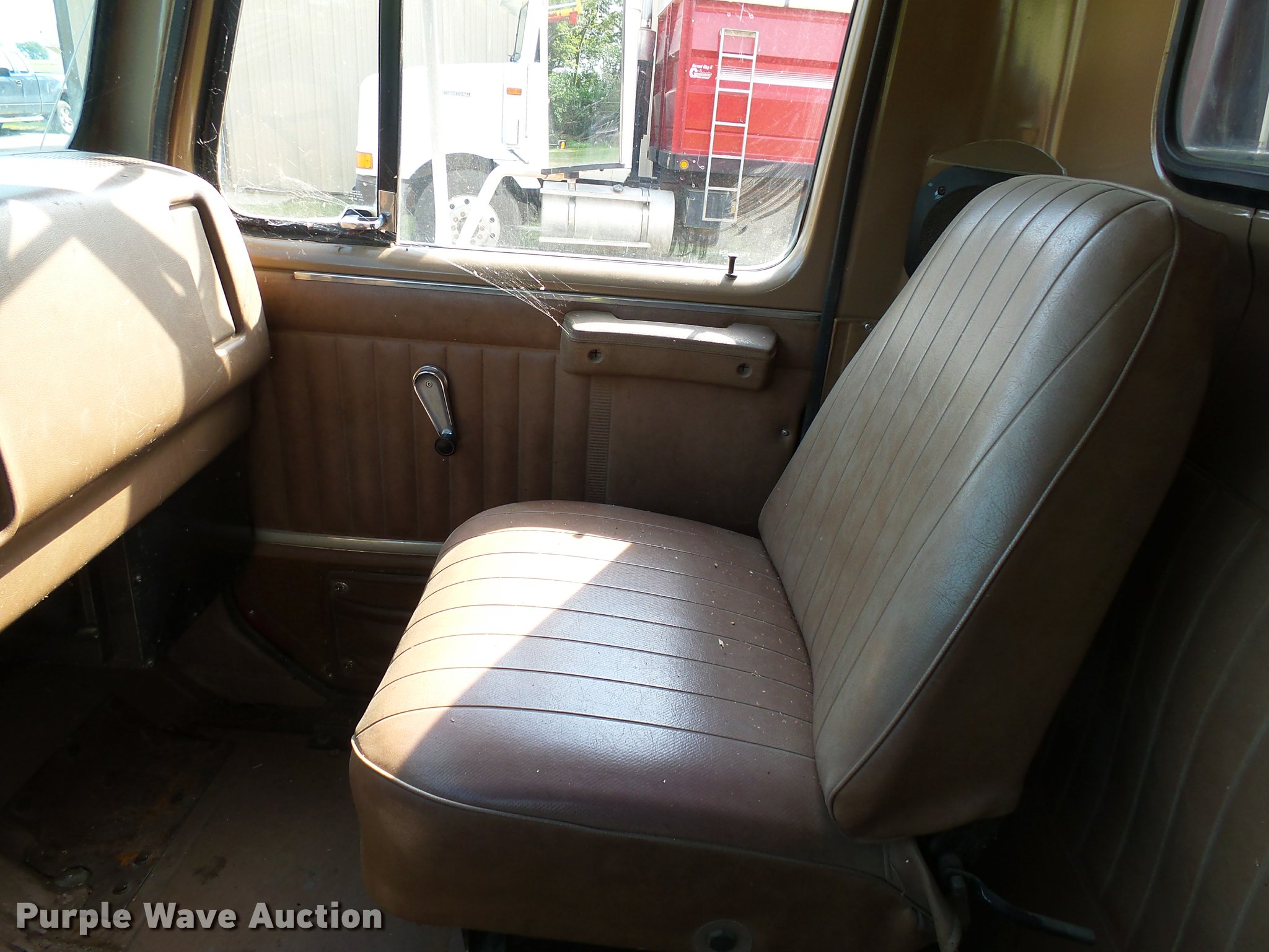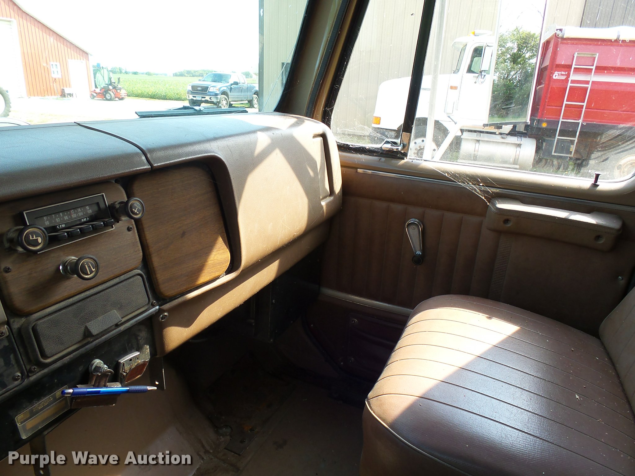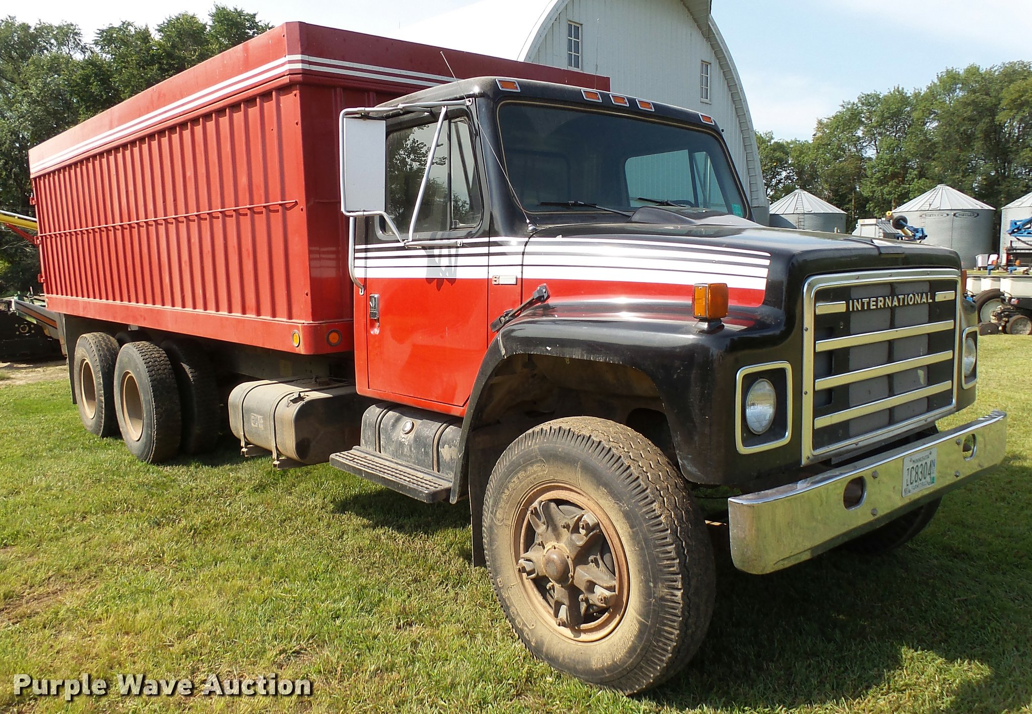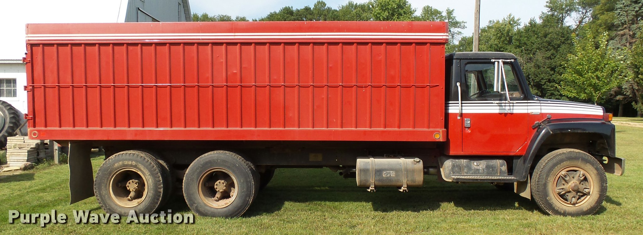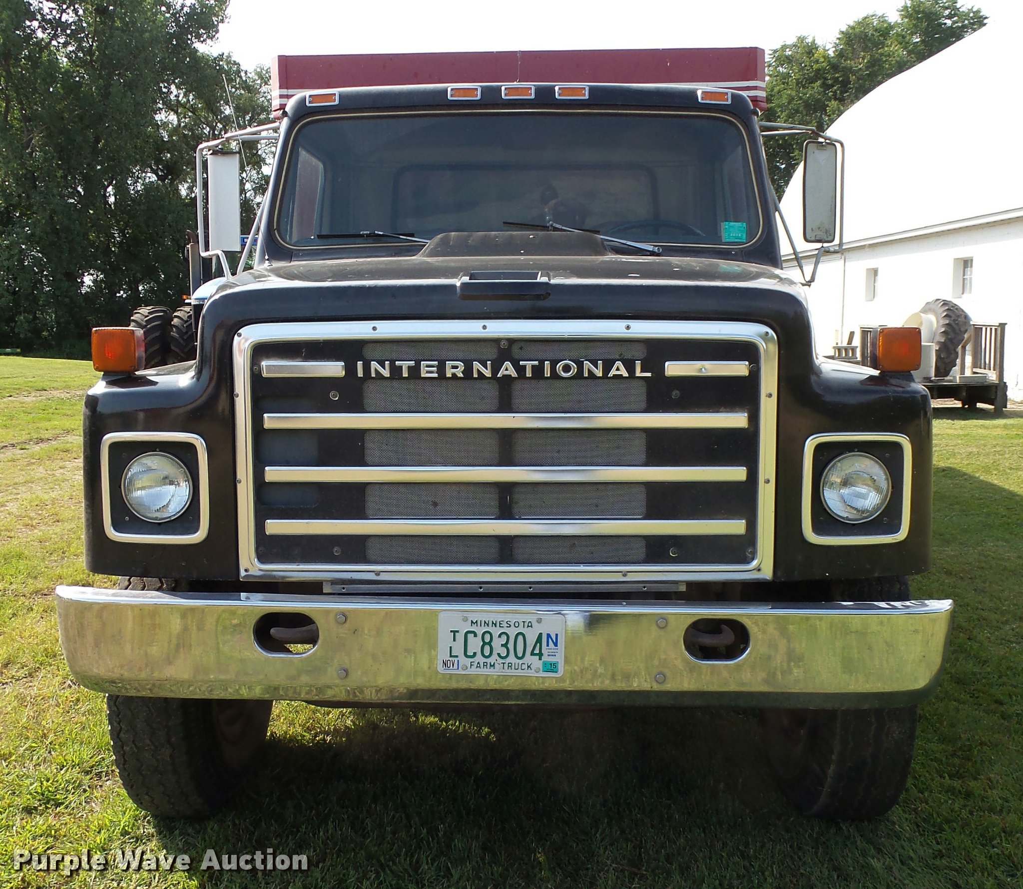 Purple Wave is selling a used Grain Truck in Minnesota. This item is a 1978 International F1924 grain truck with the following: 68,545 miles on odometer, Gas engine, Five speed manual transmission, Heat, AM/FM, 19'L x 93"W steel grain bed, 5'H sides, Dual ram hoist, Manual end gate, Spring suspension, 10.00R20 tires