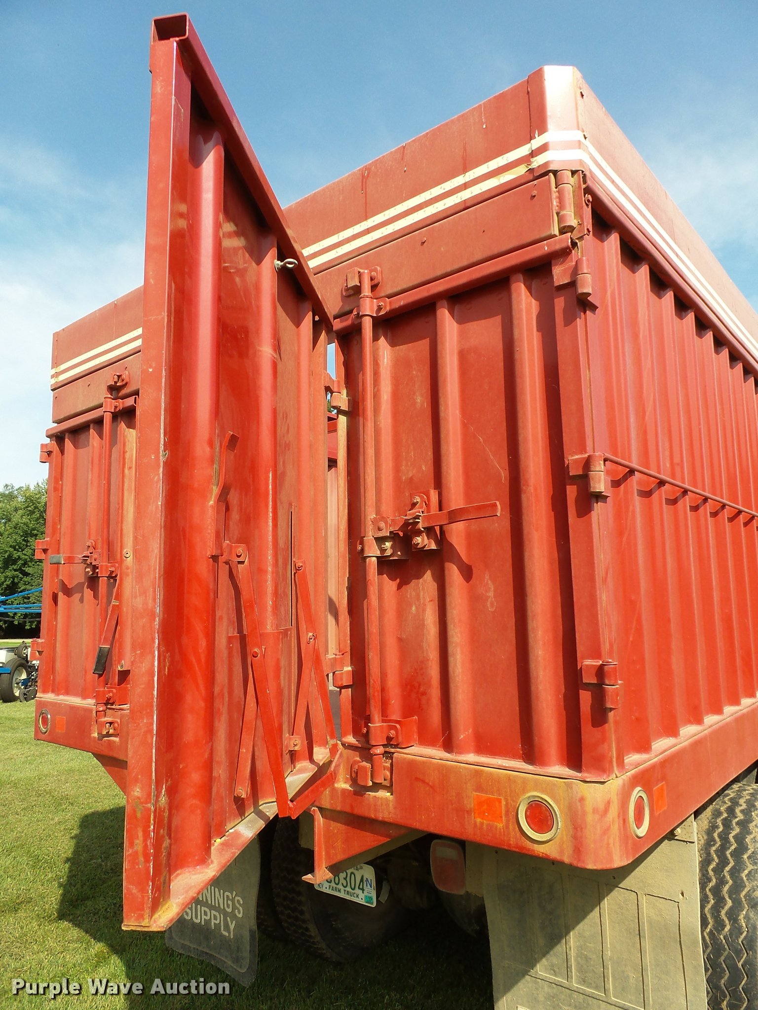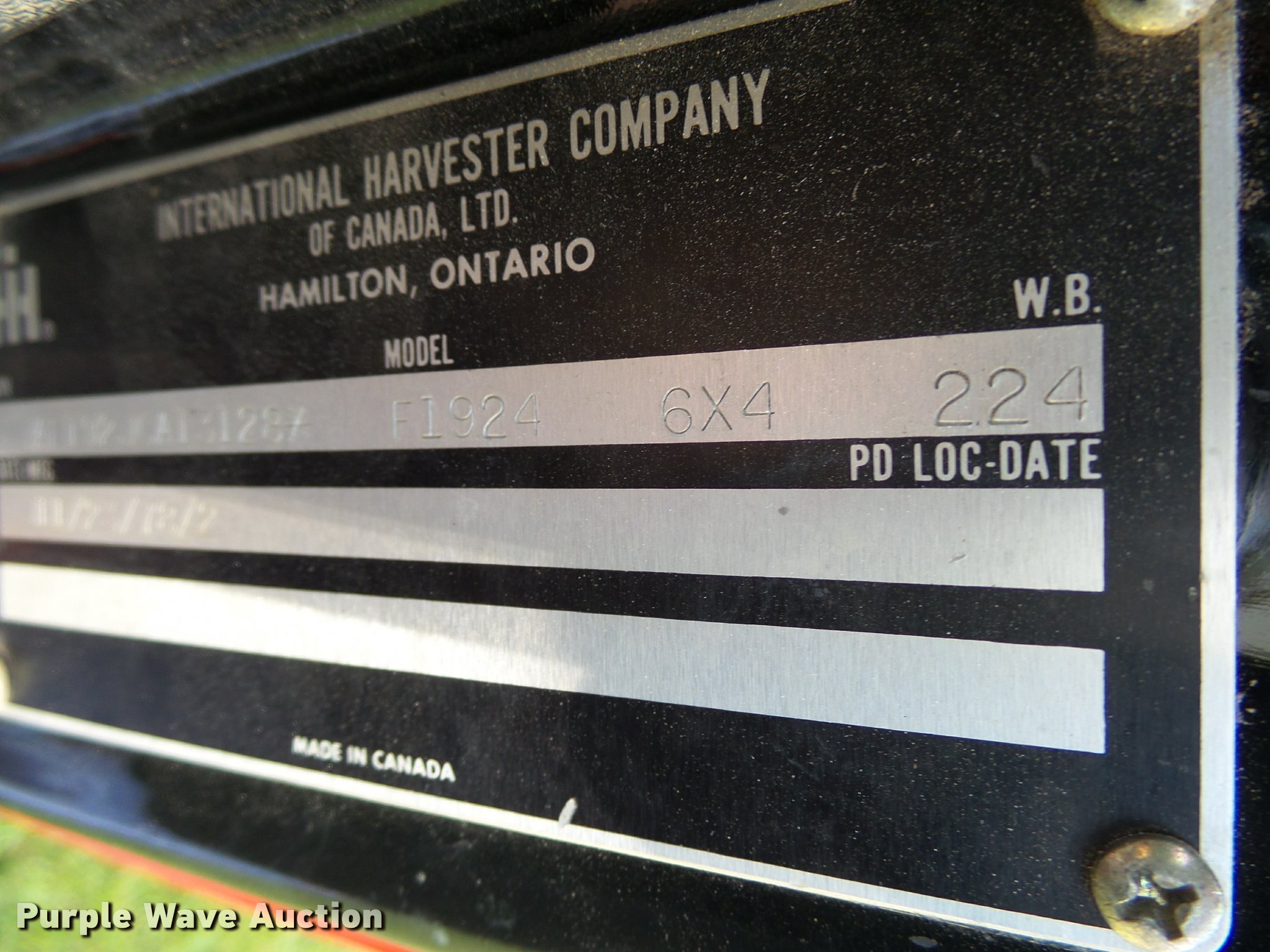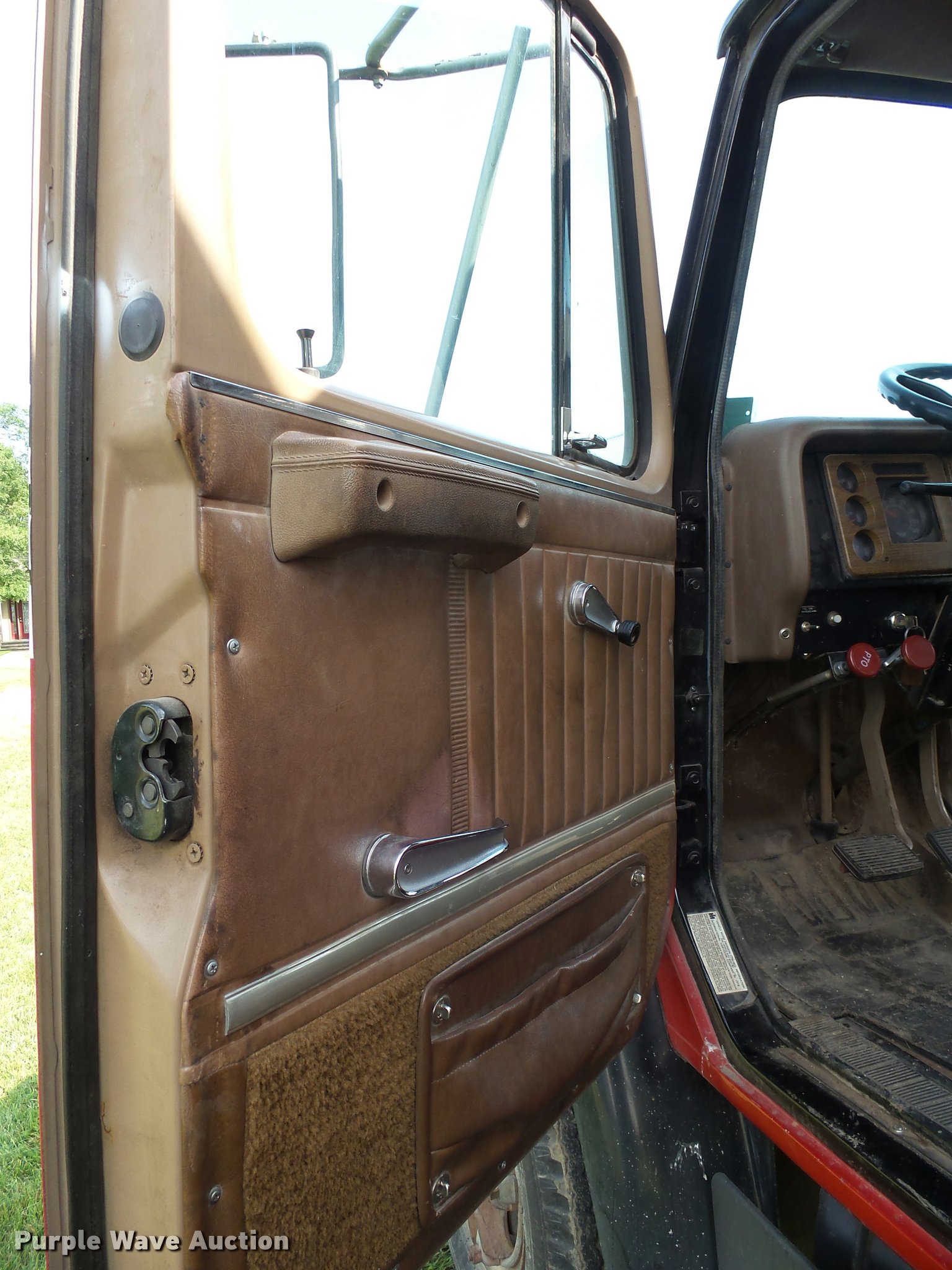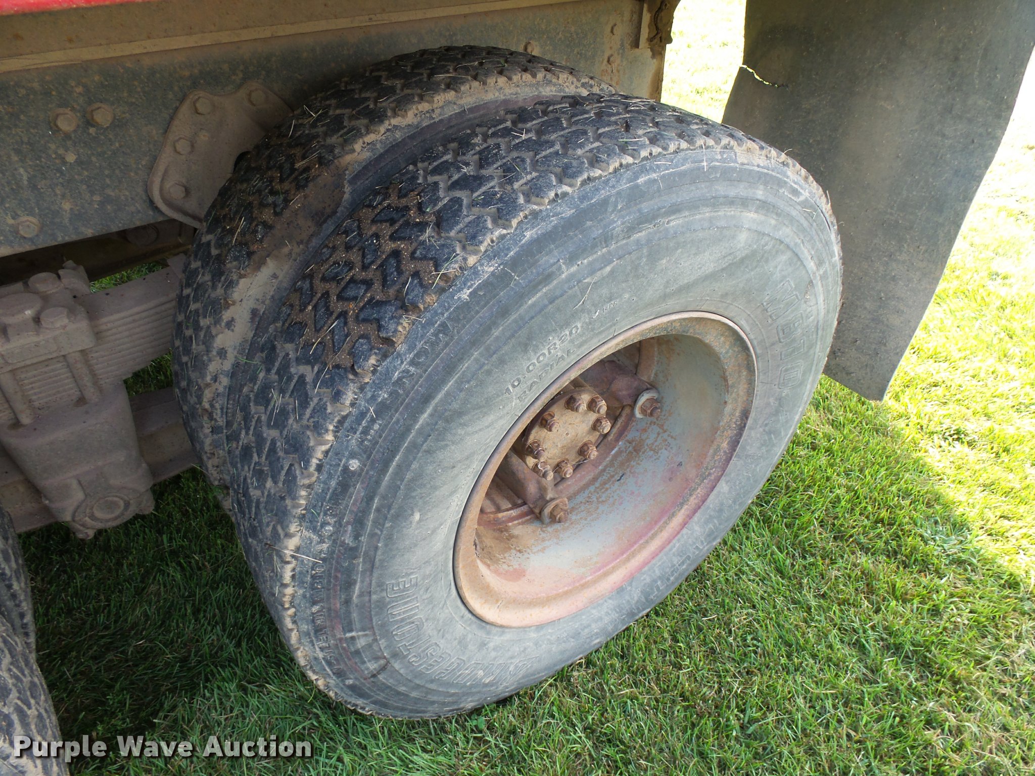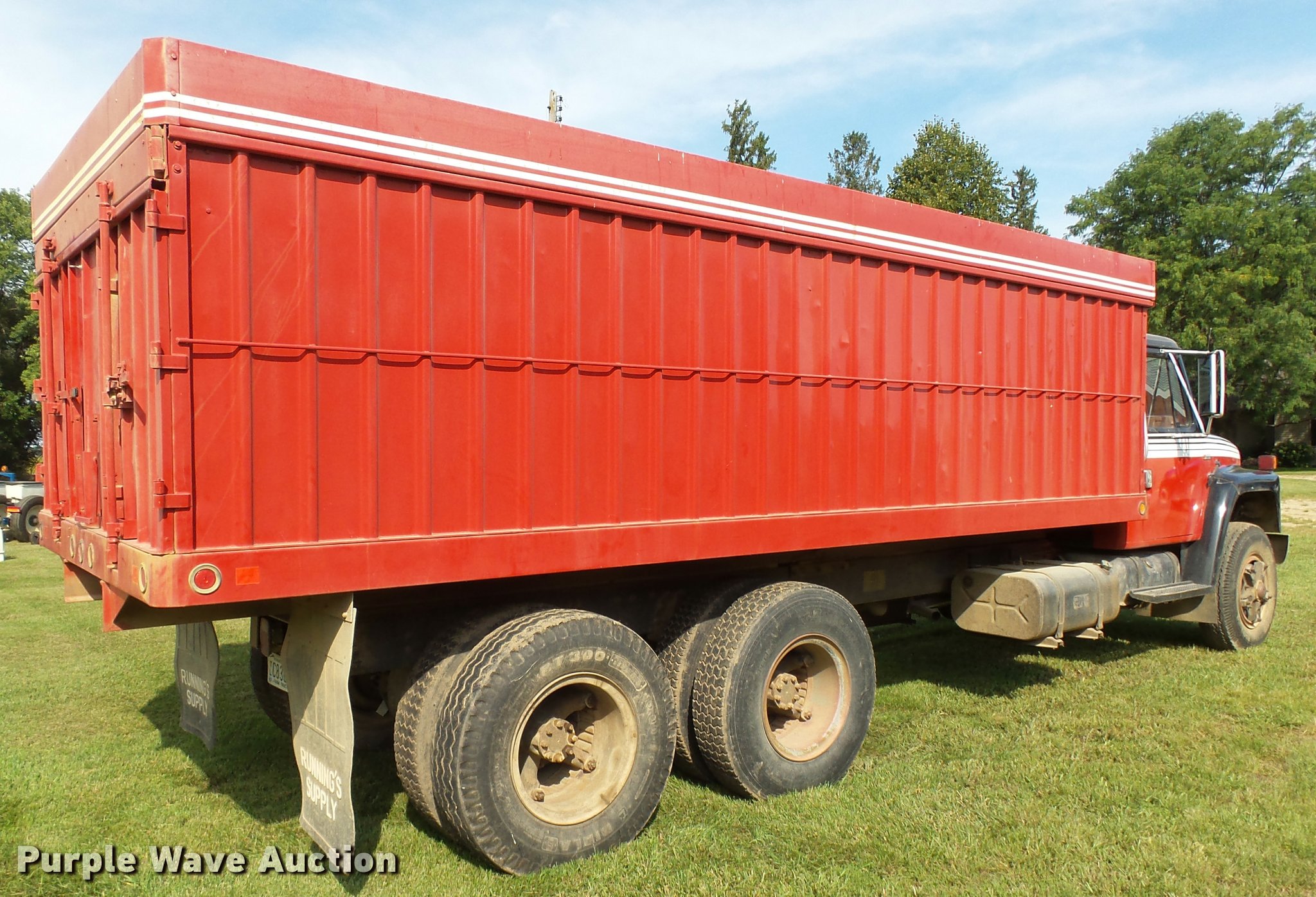 Purple Wave is selling a used Grain Truck in Minnesota. This item is a 1978 International F1924 grain truck with the following: 68,545 miles on odometer, Gas engine, Five speed manual transmission, Heat, AM/FM, 19'L x 93"W steel grain bed, 5'H sides, Dual ram hoist, Manual end gate, Spring suspension, 10.00R20 tires