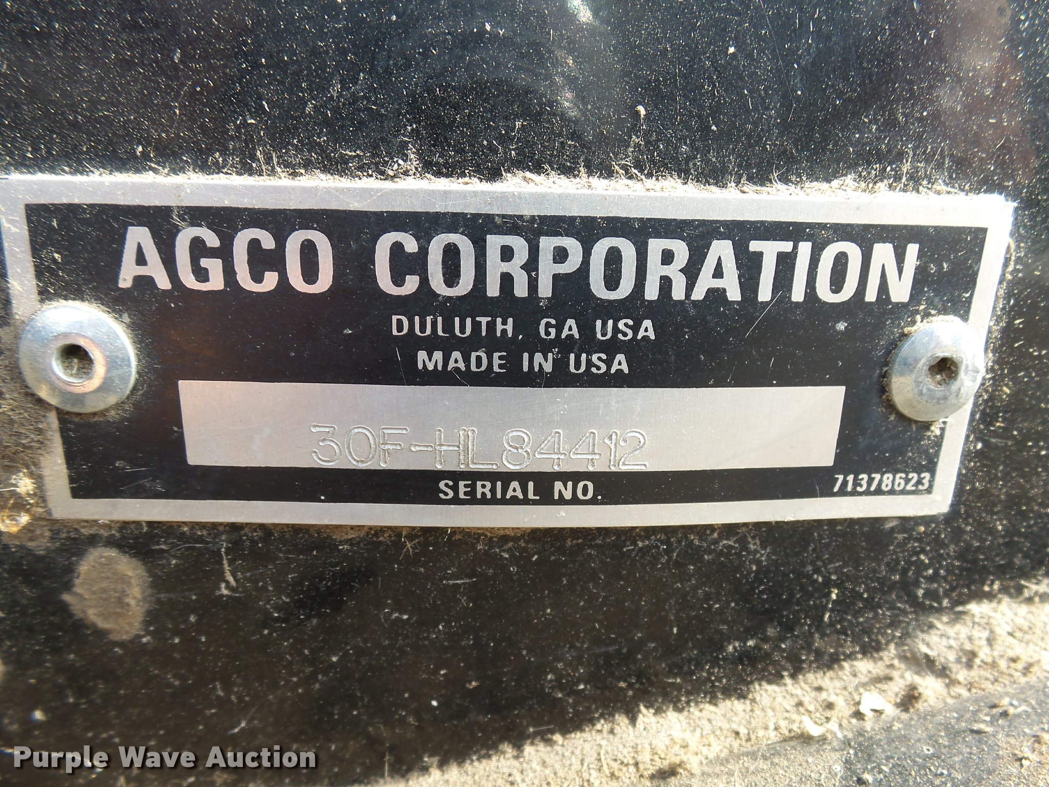 AGCO grain head. 30'W, Air reel, Dual drivelines, Trailer not included, Serial 30F-HL84412. Westbrook, MN 56183