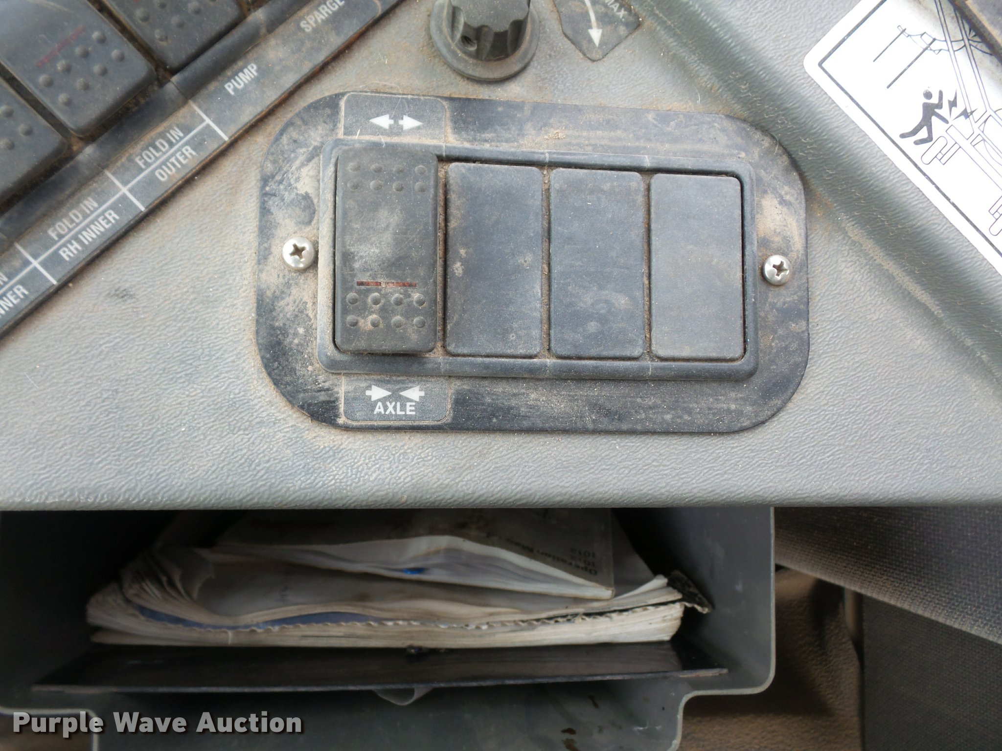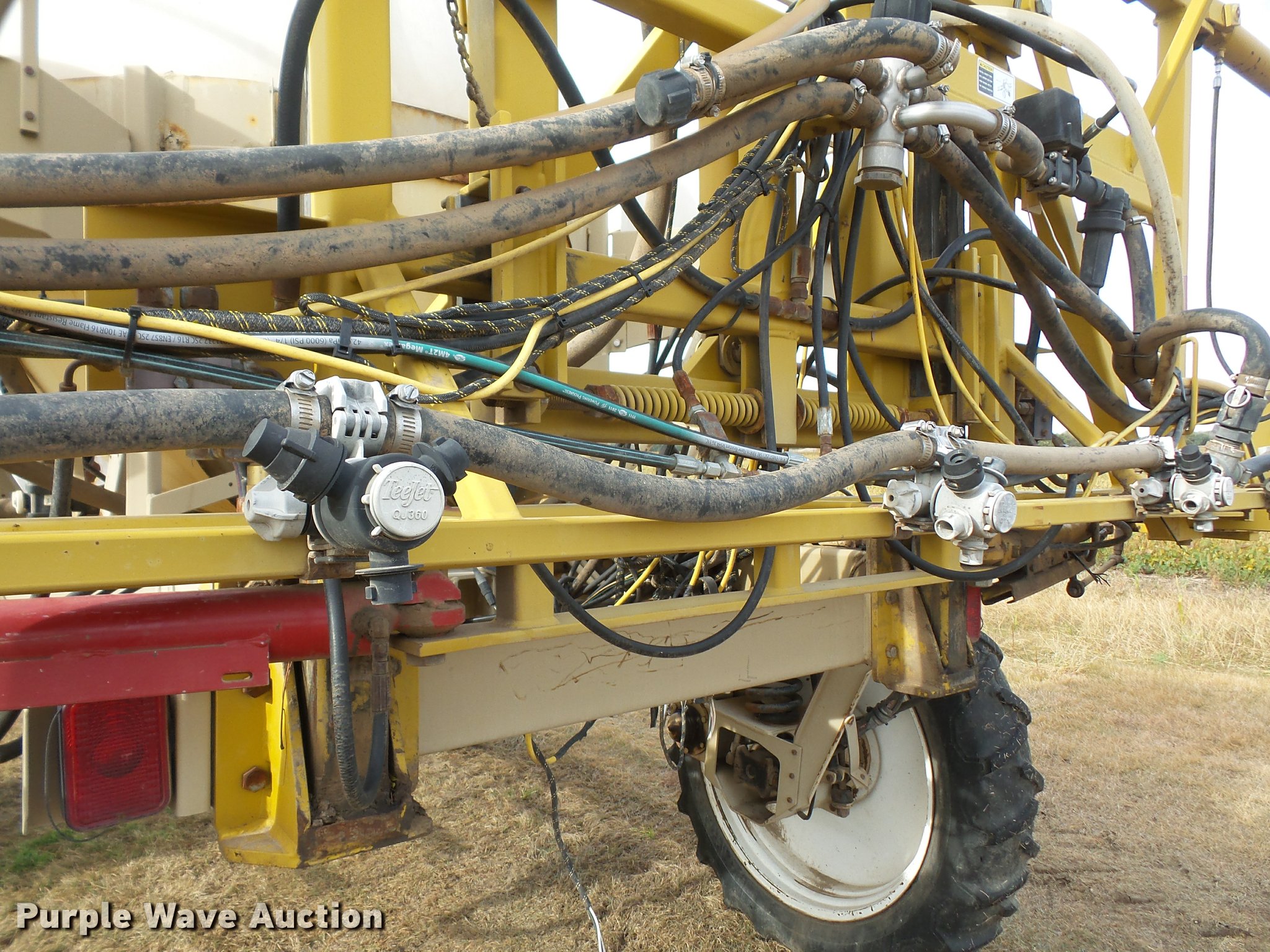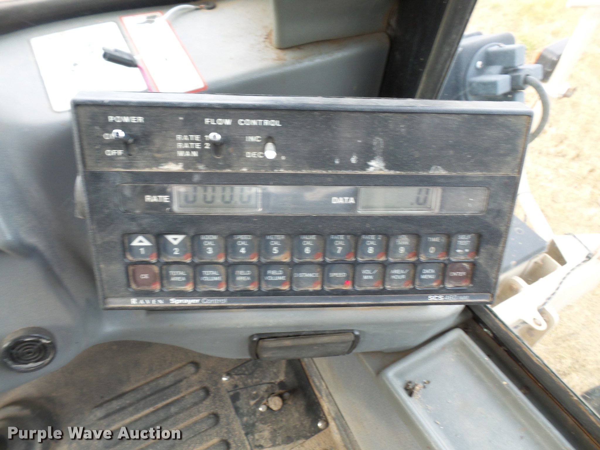 Purple Wave is selling a used Applicator Self Propelled in Kansas. This item is a 1998 Tyler Patriot 150 self-propelled sprayer with the following: 3,330 engine hours on meter, Deutz BF4M1013C 4.764L four cylinder turbo diesel engine, 139 HP, Hydrostatic transmission, Four wheel drive, Hydraulic axle width adjustment, 750 gallon poly solution tank, (3) stainless steel chemical eductor, 35 gallon rinse tank, Foam marker, 35 gallon clean water tank, 90'W boom, (5) boom sections, Breakaway boom, Hydraulic boom fold, 20" nozzle spacing, Three-way and five- way nozzle bodies, AC and heat, AM/FM, Suspension seat, Work lights, Raven SCS460 ground radar, 12.4-38 tires, Non-operational hour meter, Non-operational brakes, Serial 7752668D03