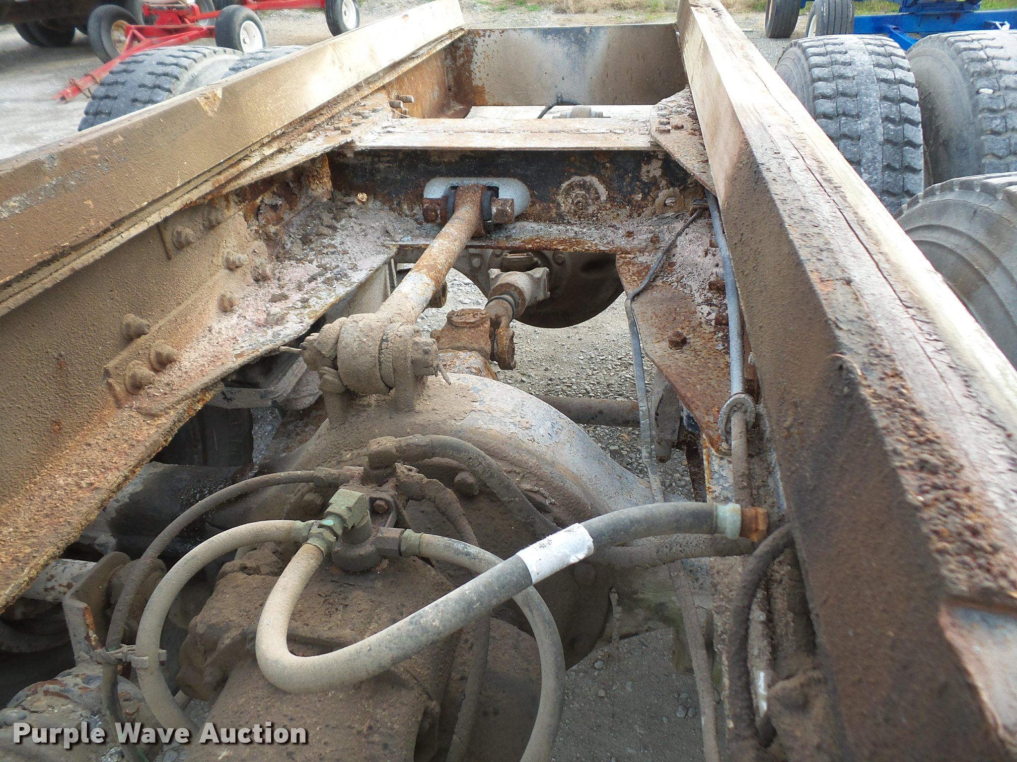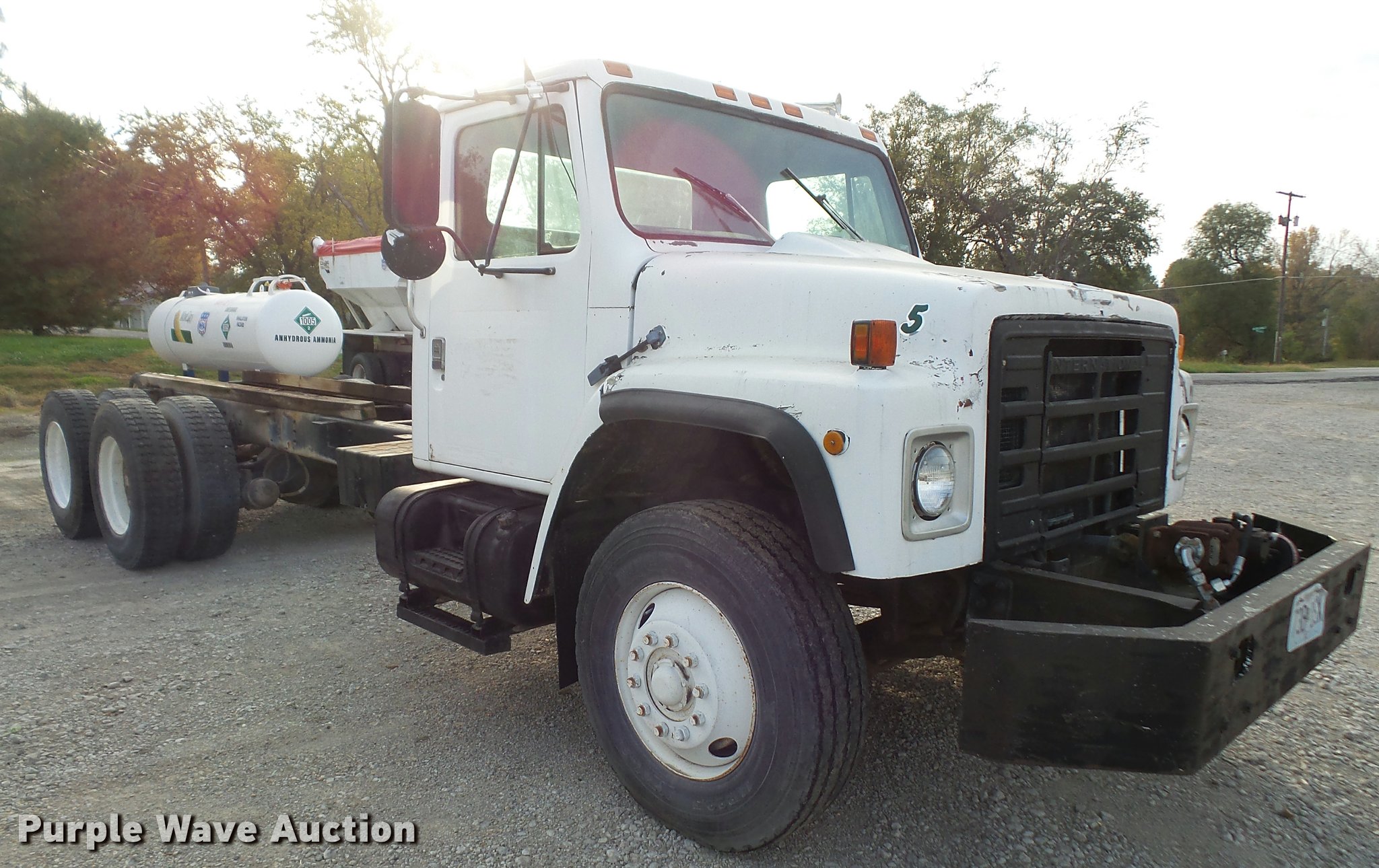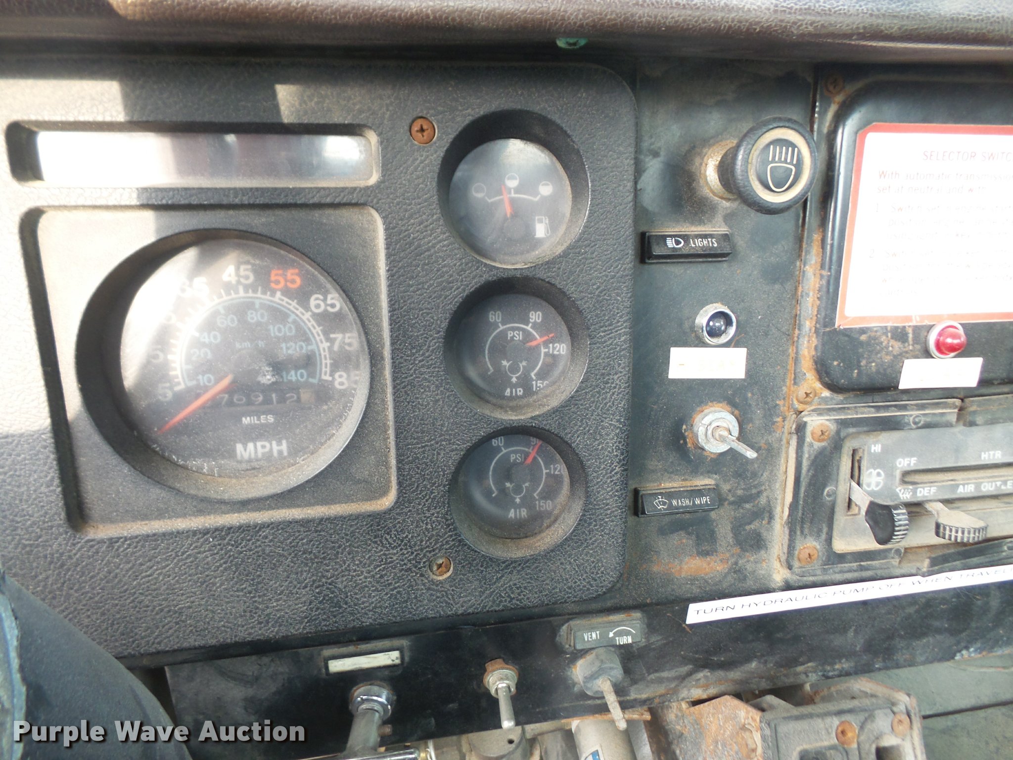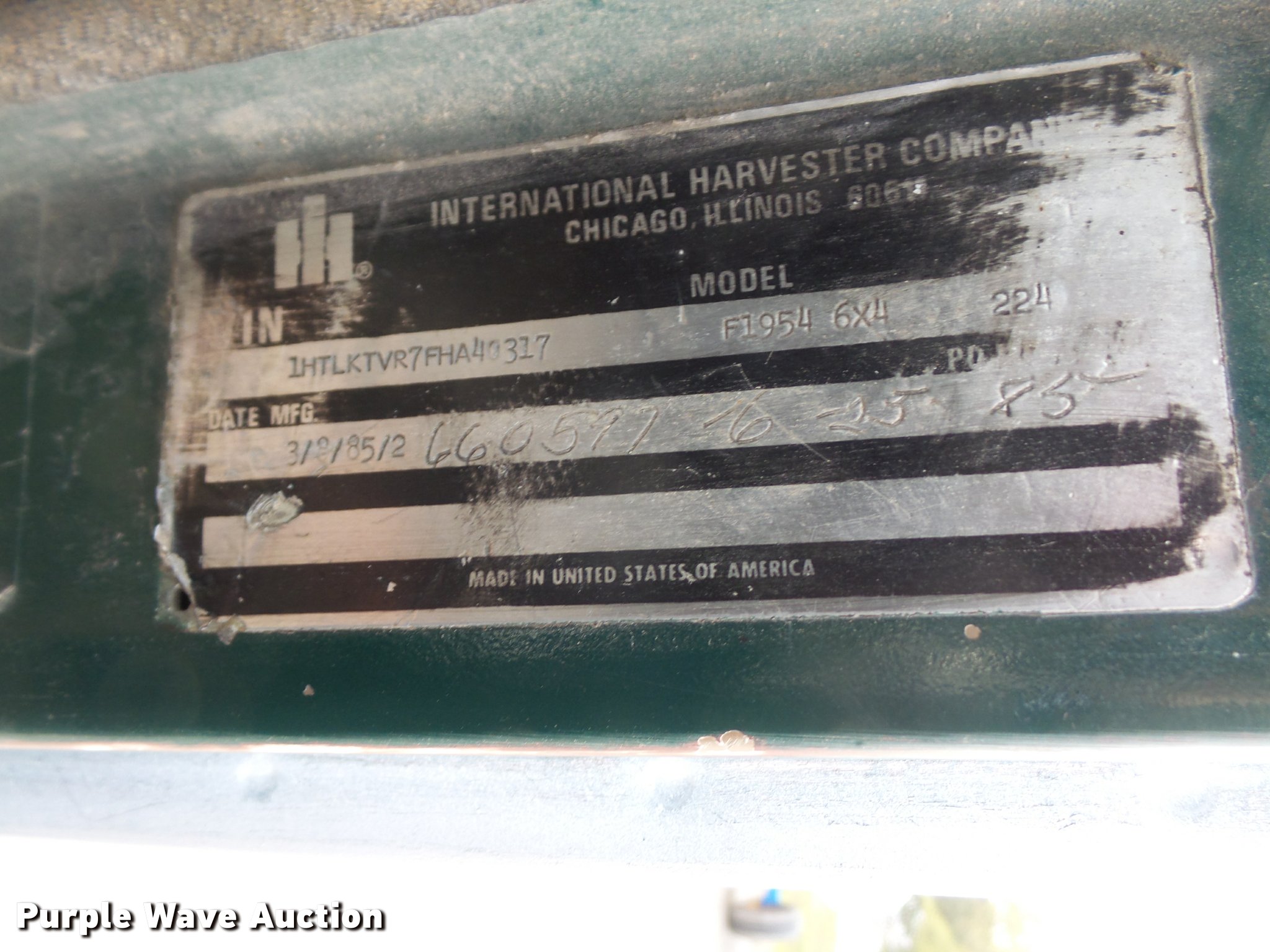 Purple Wave is selling a used Truck Chassis in Missouri. This item is a 1985 International F1954 truck cab and chassis with the following: 76,912 miles on odometer, International six cylinder diesel engine, Automatic transmission, Tandem axle, Inter-axle differential lock, Heat, Air suspension seat, Front mounted PTO, Dual fuel tanks, Walking beam suspension, Air brakes, Double frame, 202" frame to cab, 11R22.5 front tires, 11R24.5 rear tires