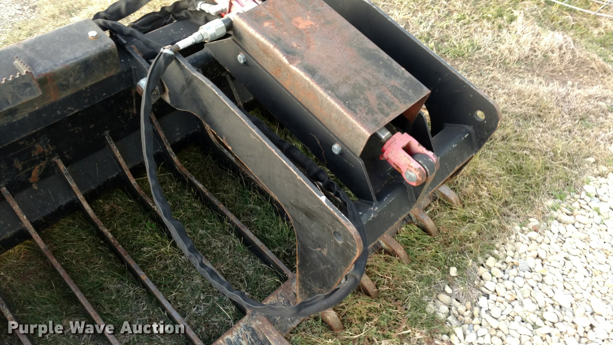 Purple Wave is selling a used Skid Steer Attach. in Kansas. This item is a Skid steer grapple bucket with the following: 6'W, Root bottom, Dual cylinders
