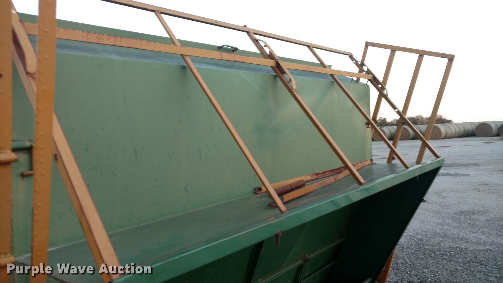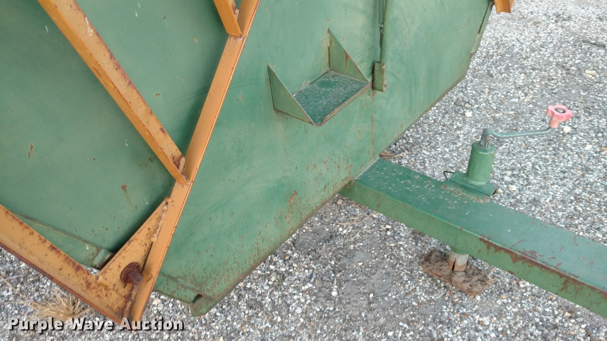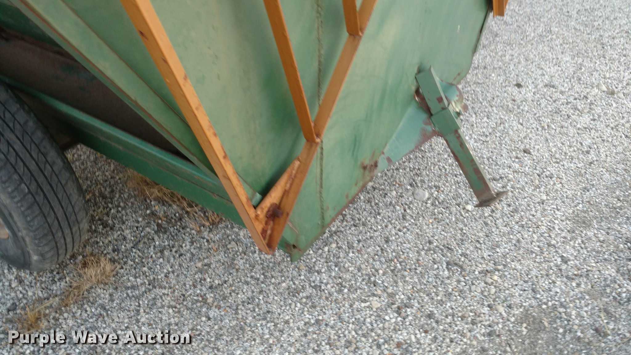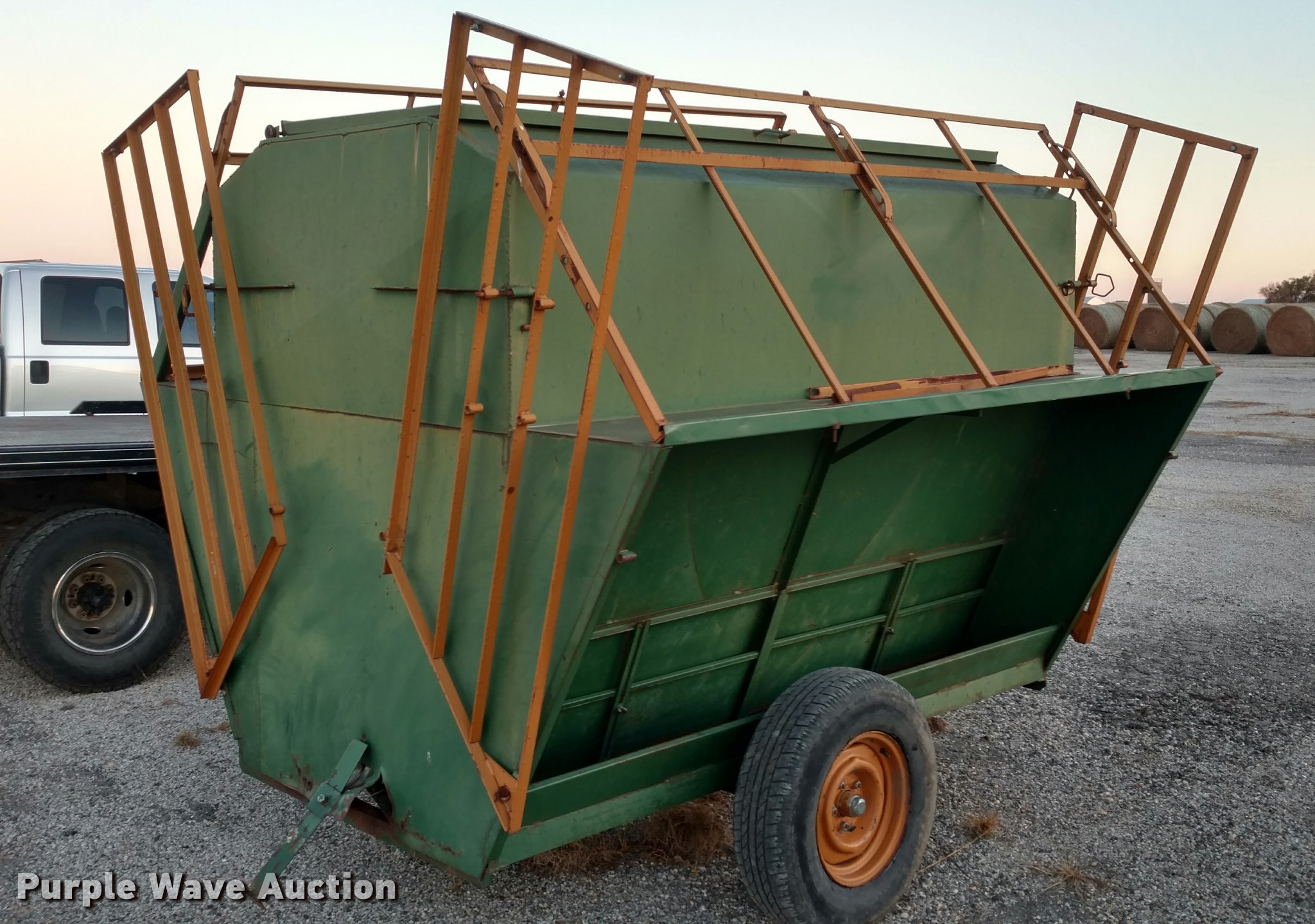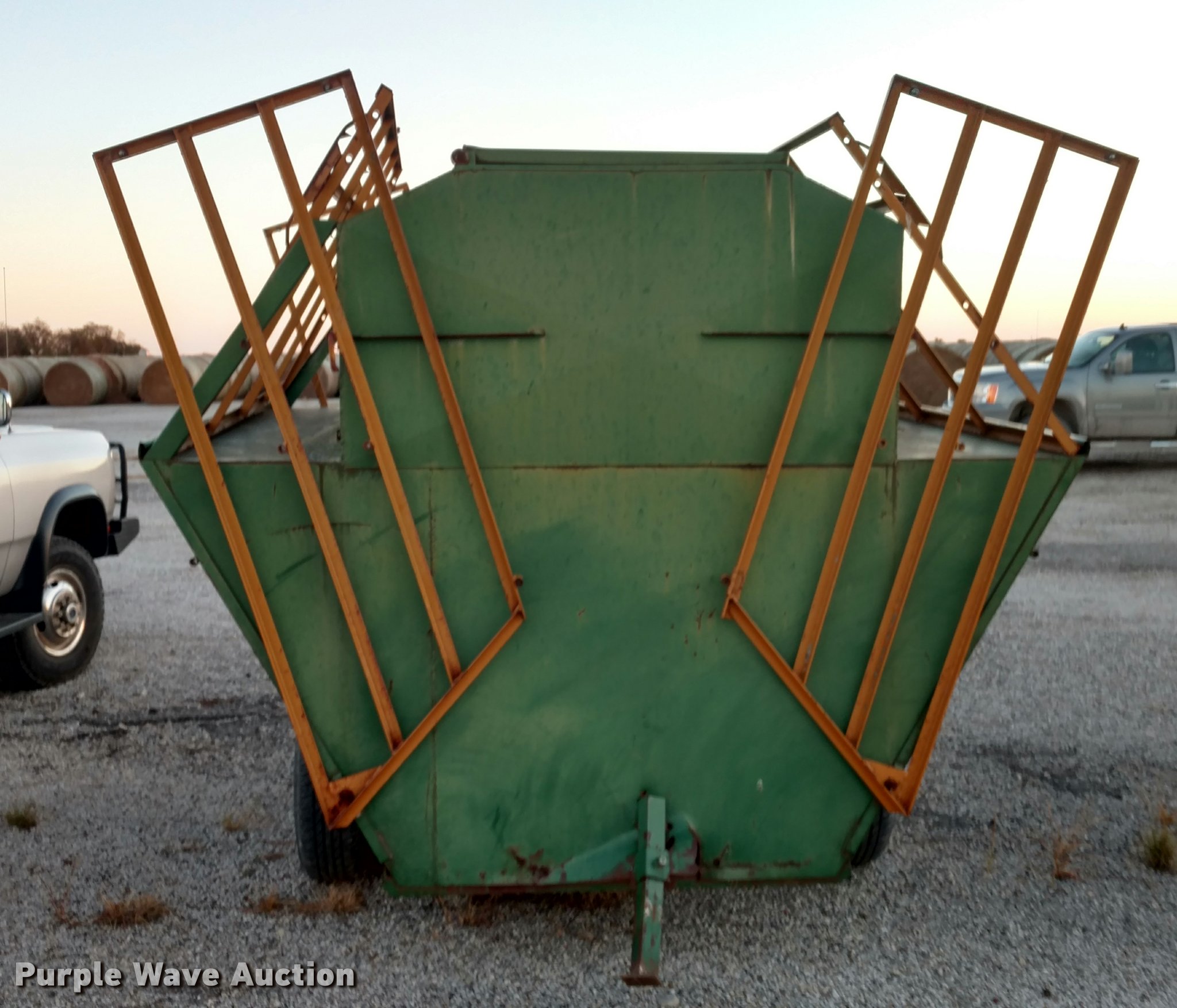 Purple Wave is selling a used Livestock Equip. in Kansas. This item is a Steel creep feeder with the following: 8'L, 4,000 lbs capacity, Pin hitch, Rust