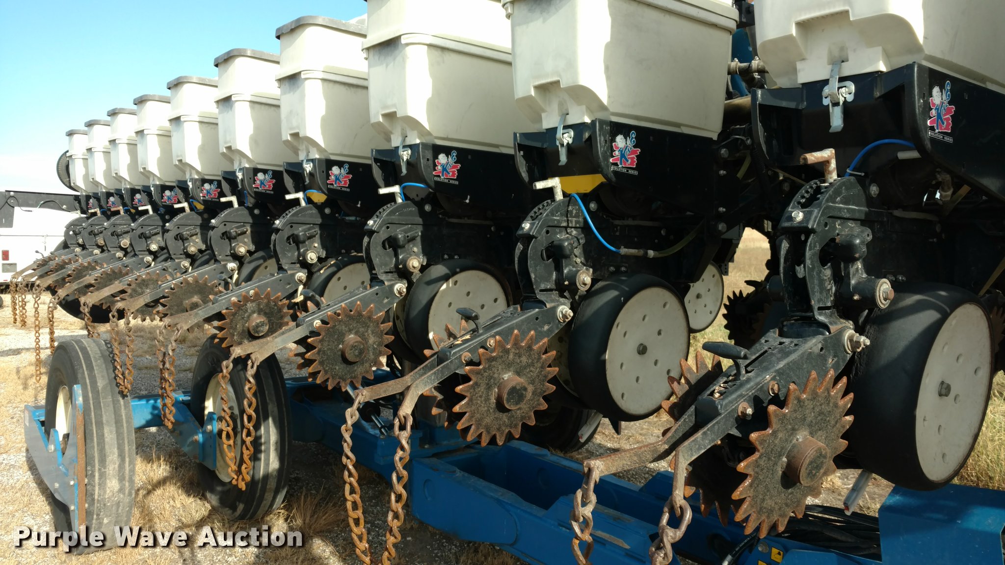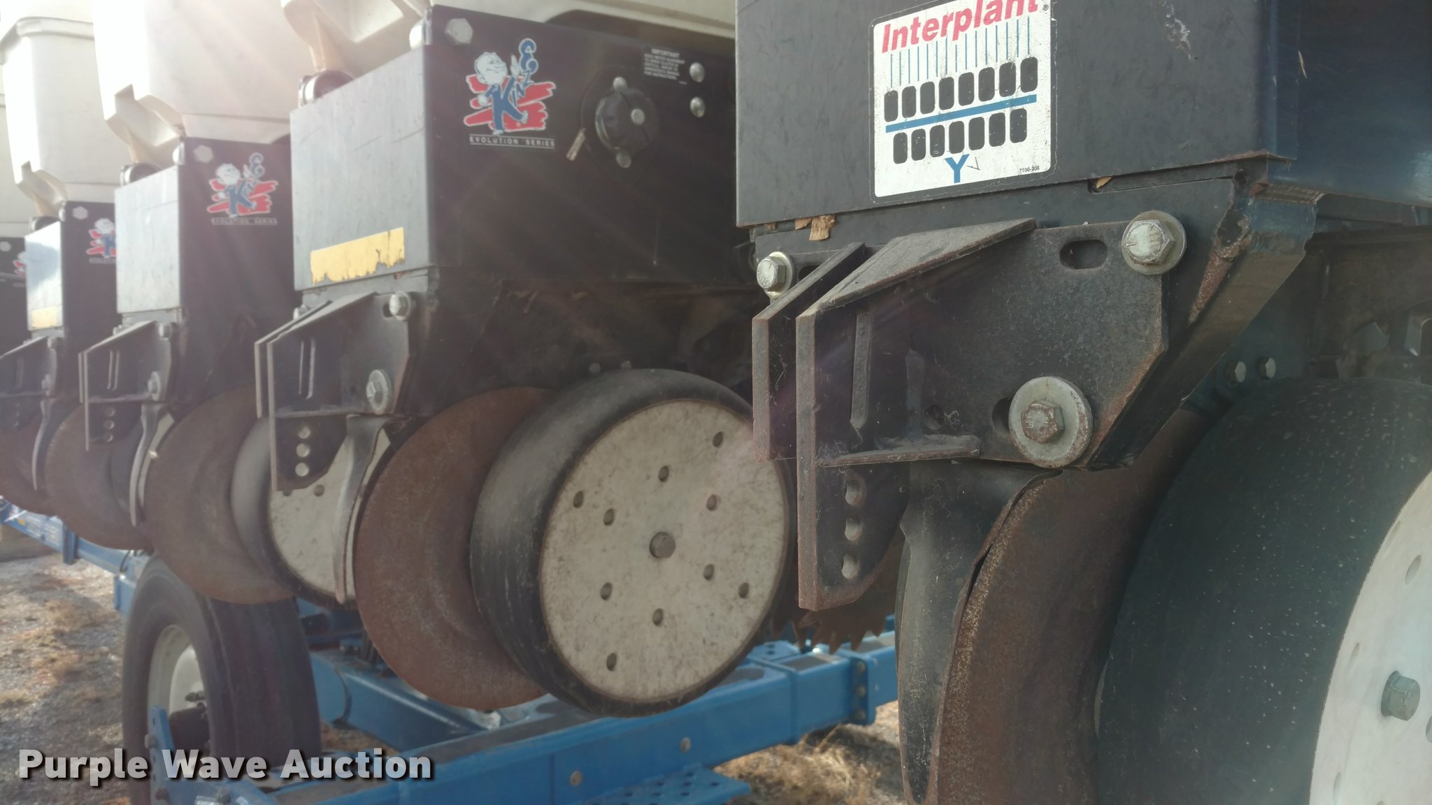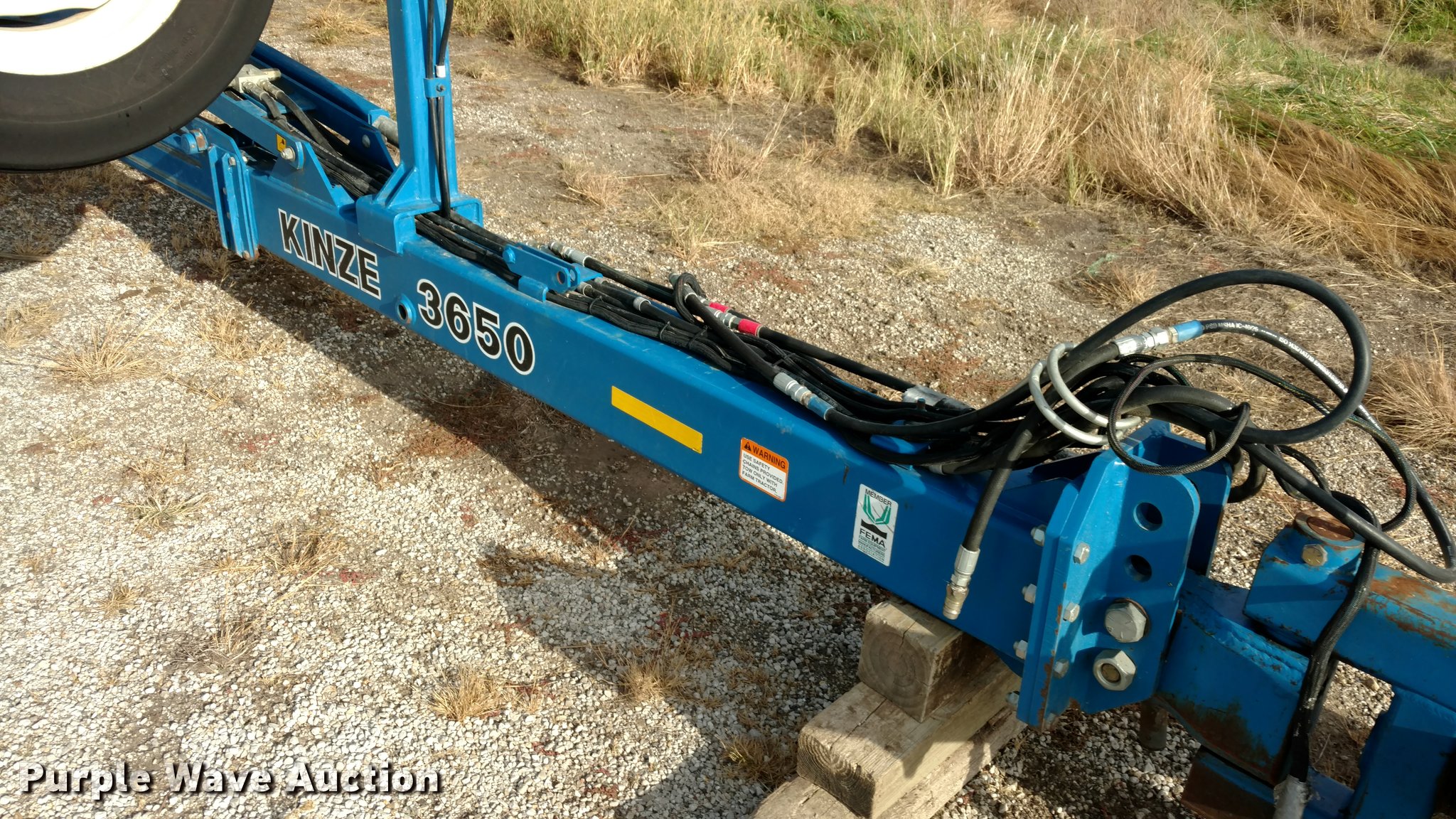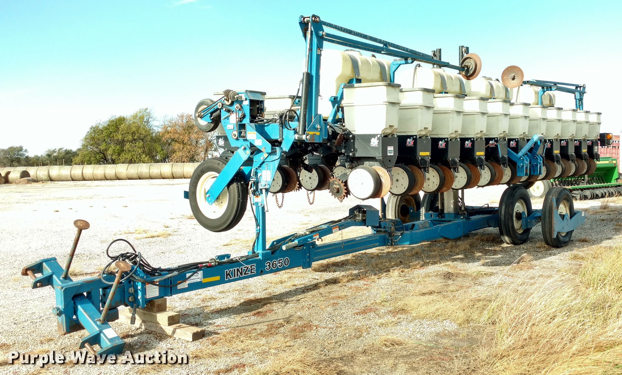 Purple Wave is selling a used Planter in Kansas. This item is a Kinze 3650 12/23 Interplant split row planter with the following: 12 row units, 30" row spacing, 23 row units, 15" row spacing, Evolution series three bushel individual hoppers, Mechanical delivery, Mechanical meters, Ground meter drive system, No-till coulters, Seed firmers, Rubber closing wheels, Liquid fertilizer system, 650 gallon total capacity, (4) tank system, Hydraulic lift and pivot planter, In-cab controls, 7.50-20SL planter tires, 11R22.5 transport tires, Serial 655353