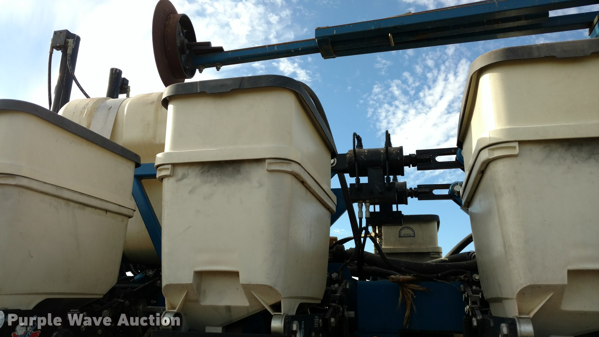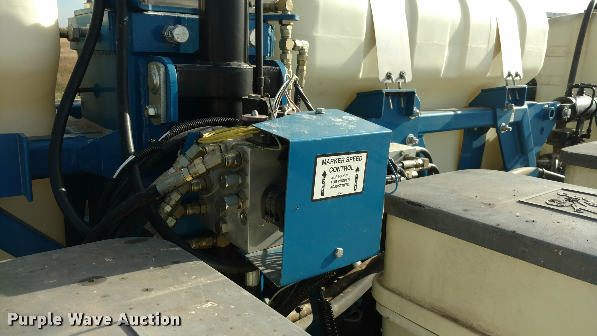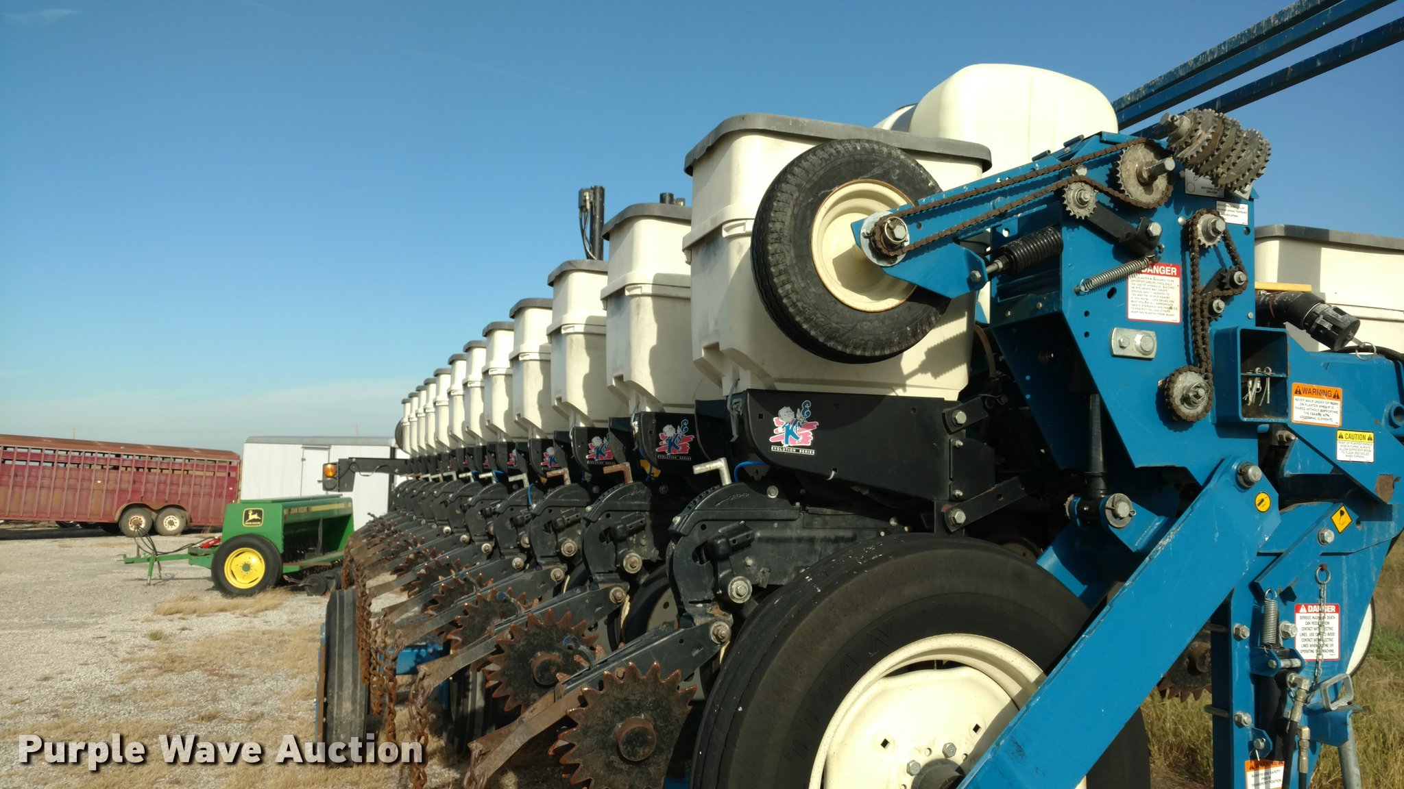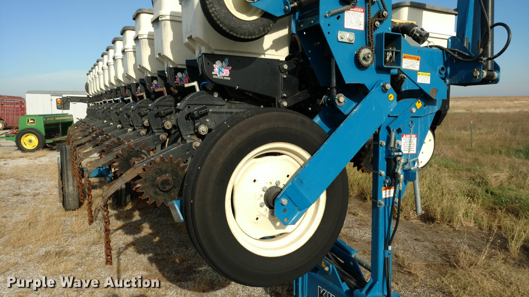 Purple Wave is selling a used Planter in Kansas. This item is a Kinze 3650 12/23 Interplant split row planter with the following: 12 row units, 30" row spacing, 23 row units, 15" row spacing, Evolution series three bushel individual hoppers, Mechanical delivery, Mechanical meters, Ground meter drive system, No-till coulters, Seed firmers, Rubber closing wheels, Liquid fertilizer system, 650 gallon total capacity, (4) tank system, Hydraulic lift and pivot planter, In-cab controls, 7.50-20SL planter tires, 11R22.5 transport tires, Serial 655353
