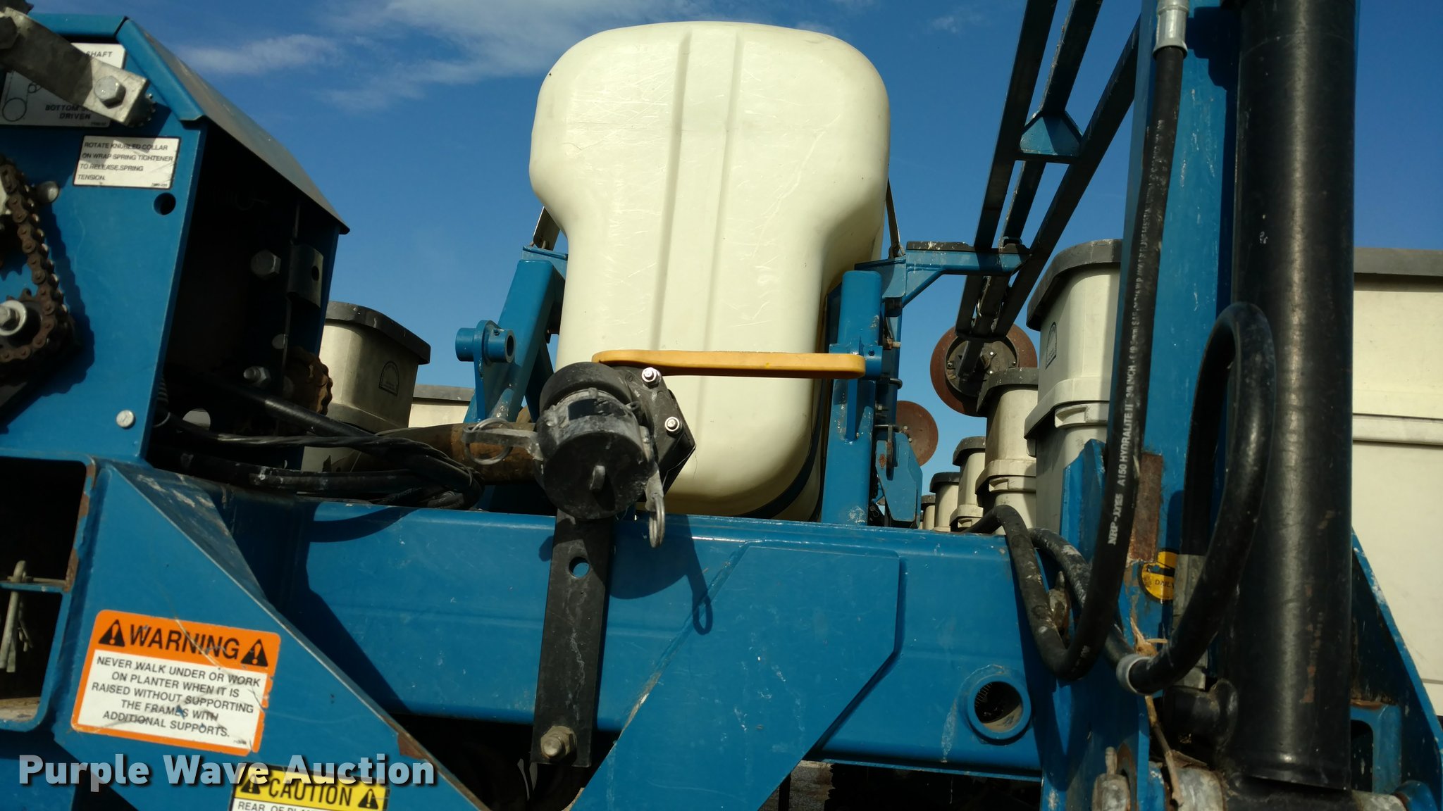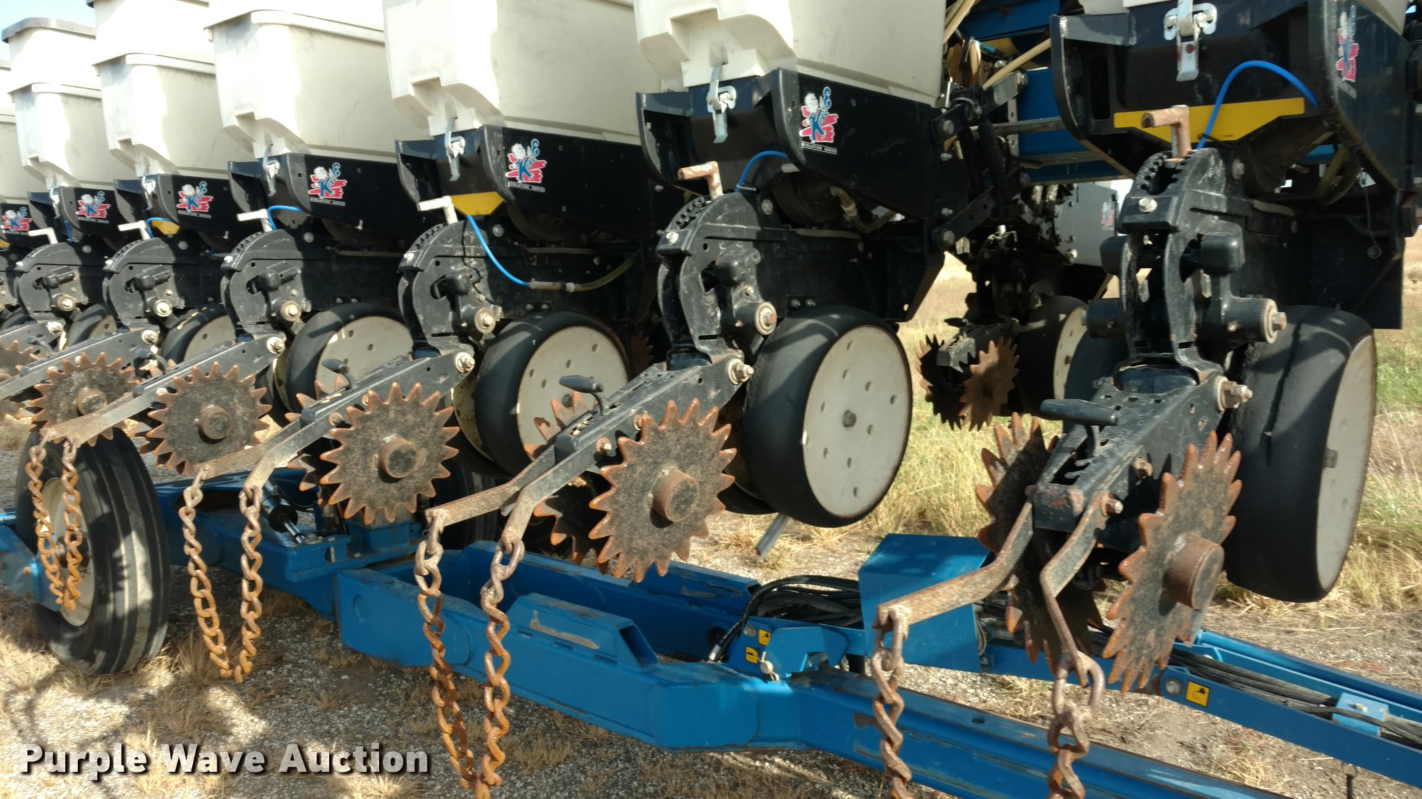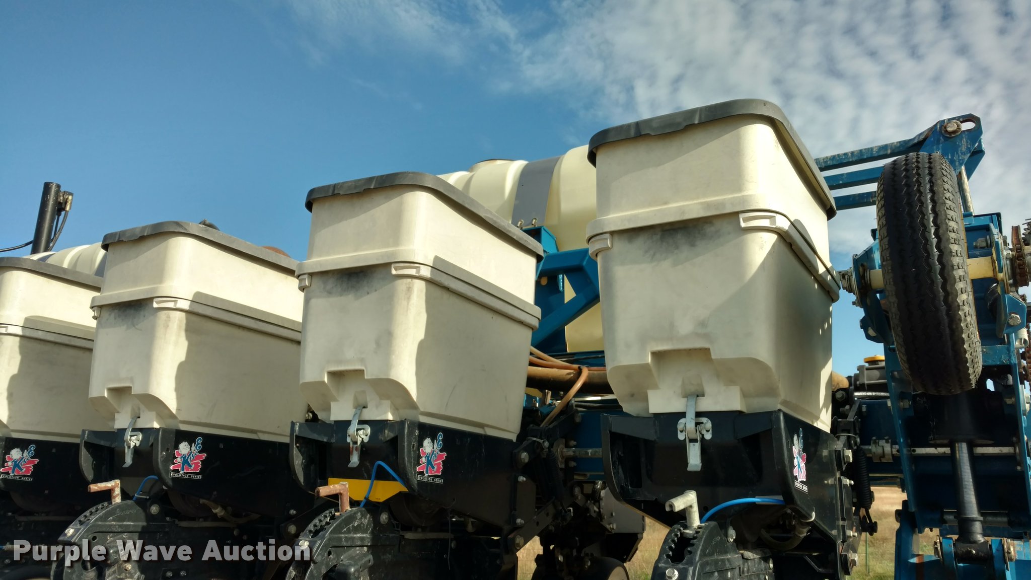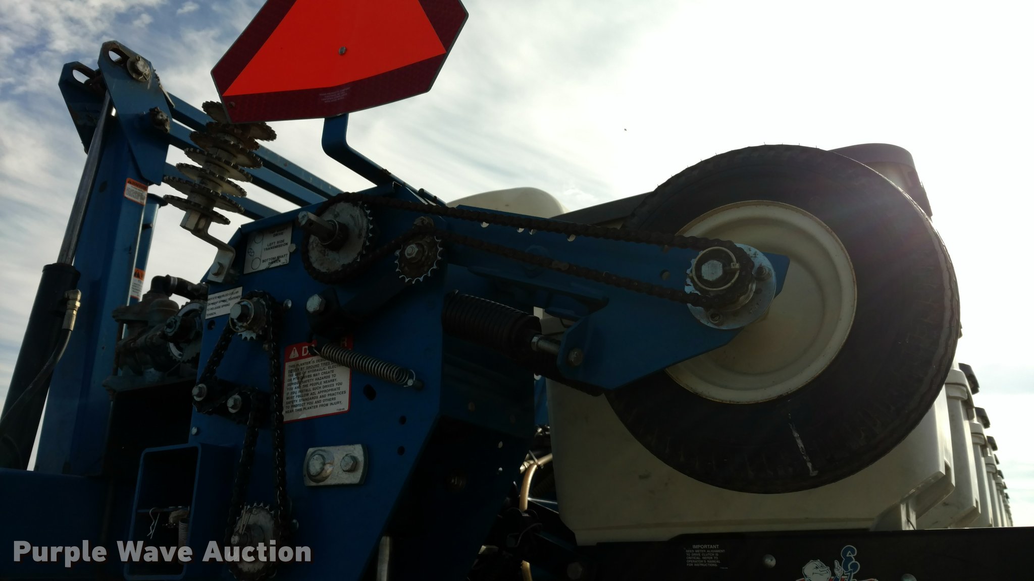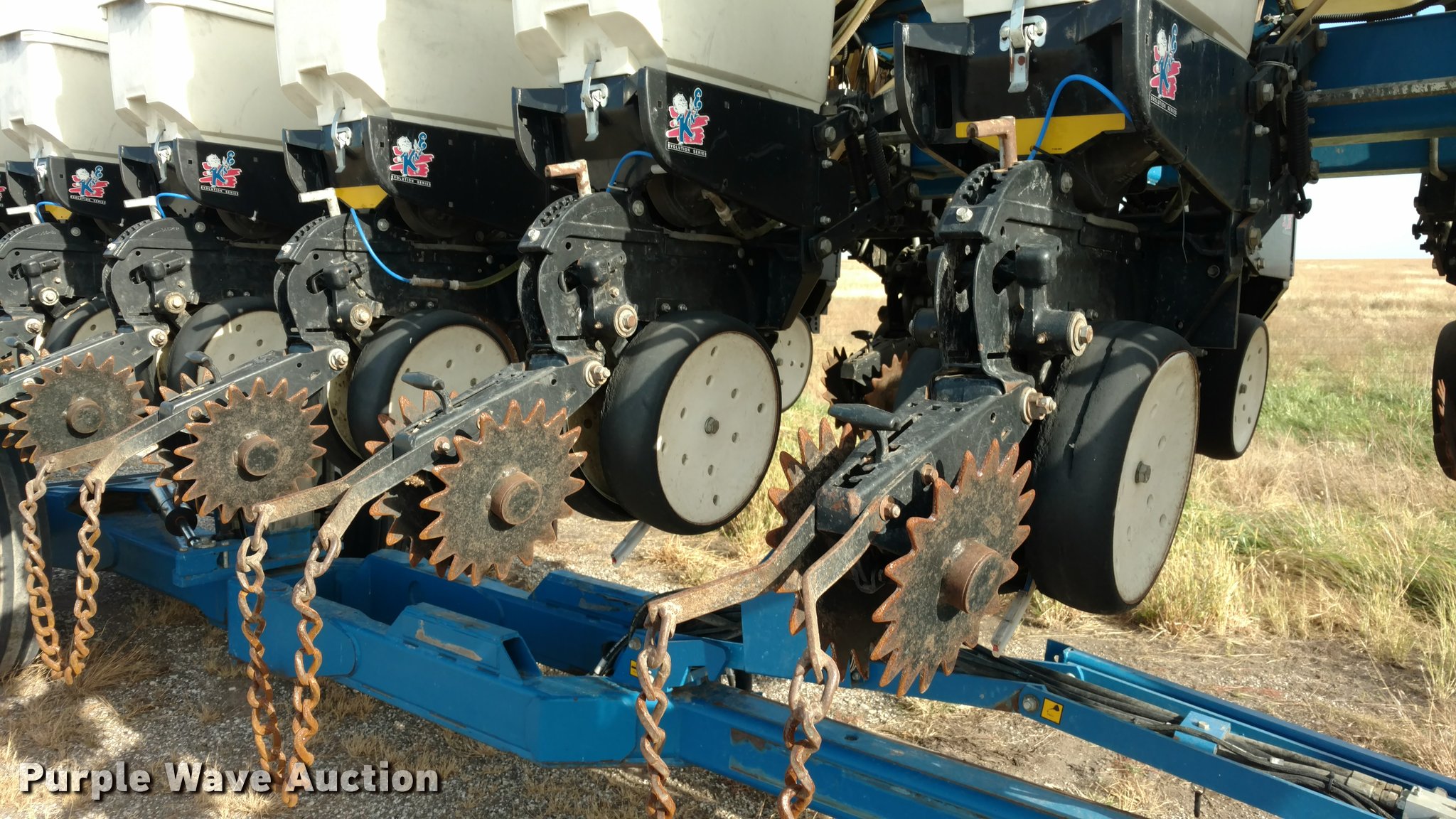 Purple Wave is selling a used Planter in Kansas. This item is a Kinze 3650 12/23 Interplant split row planter with the following: 12 row units, 30" row spacing, 23 row units, 15" row spacing, Evolution series three bushel individual hoppers, Mechanical delivery, Mechanical meters, Ground meter drive system, No-till coulters, Seed firmers, Rubber closing wheels, Liquid fertilizer system, 650 gallon total capacity, (4) tank system, Hydraulic lift and pivot planter, In-cab controls, 7.50-20SL planter tires, 11R22.5 transport tires, Serial 655353