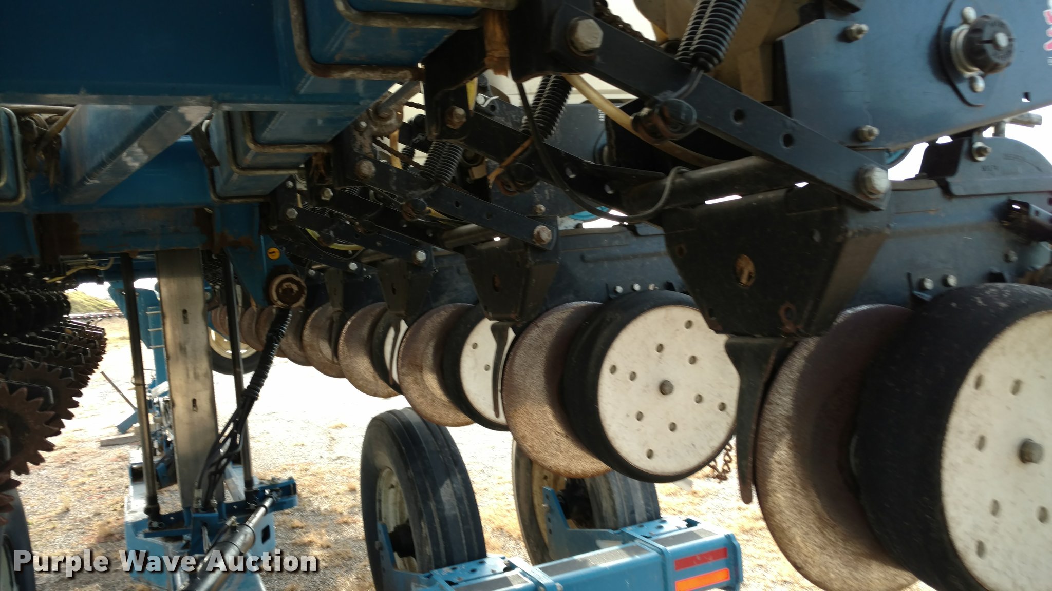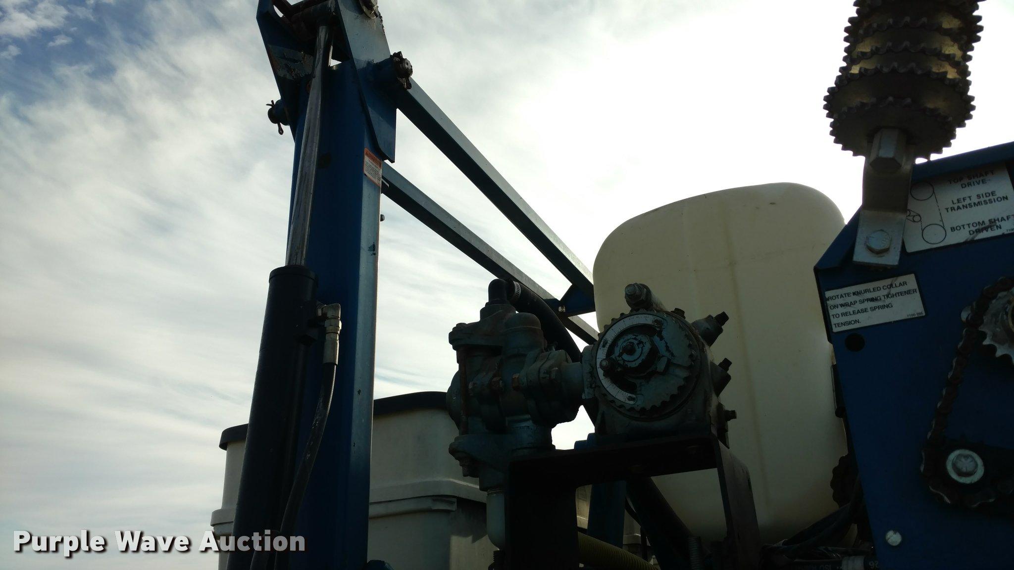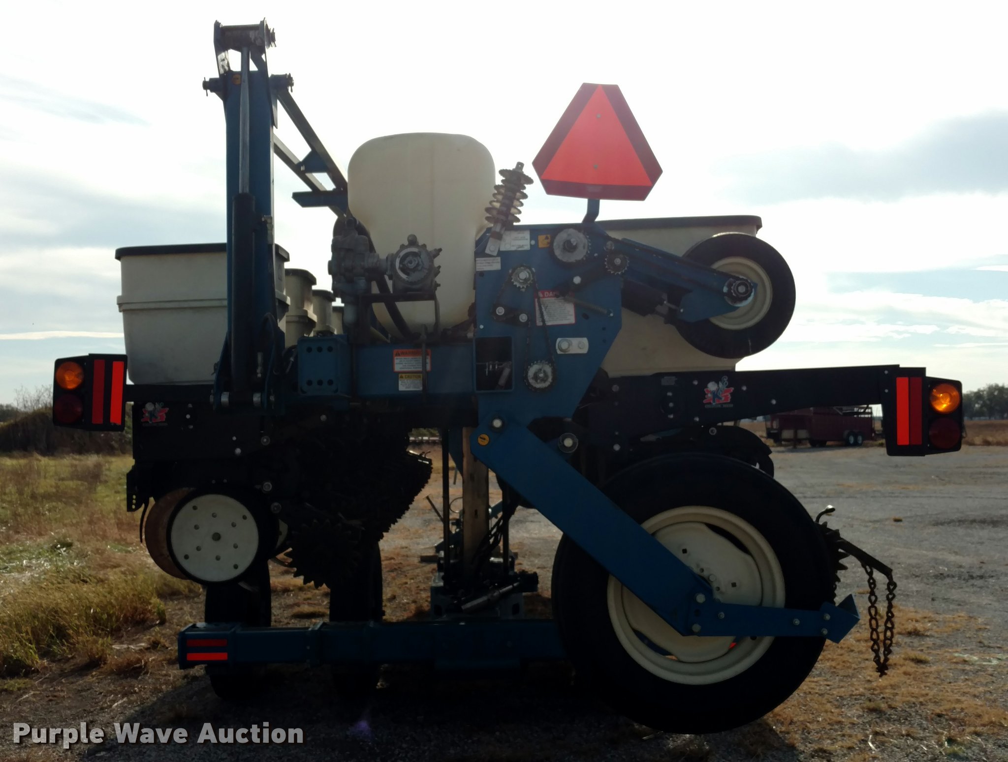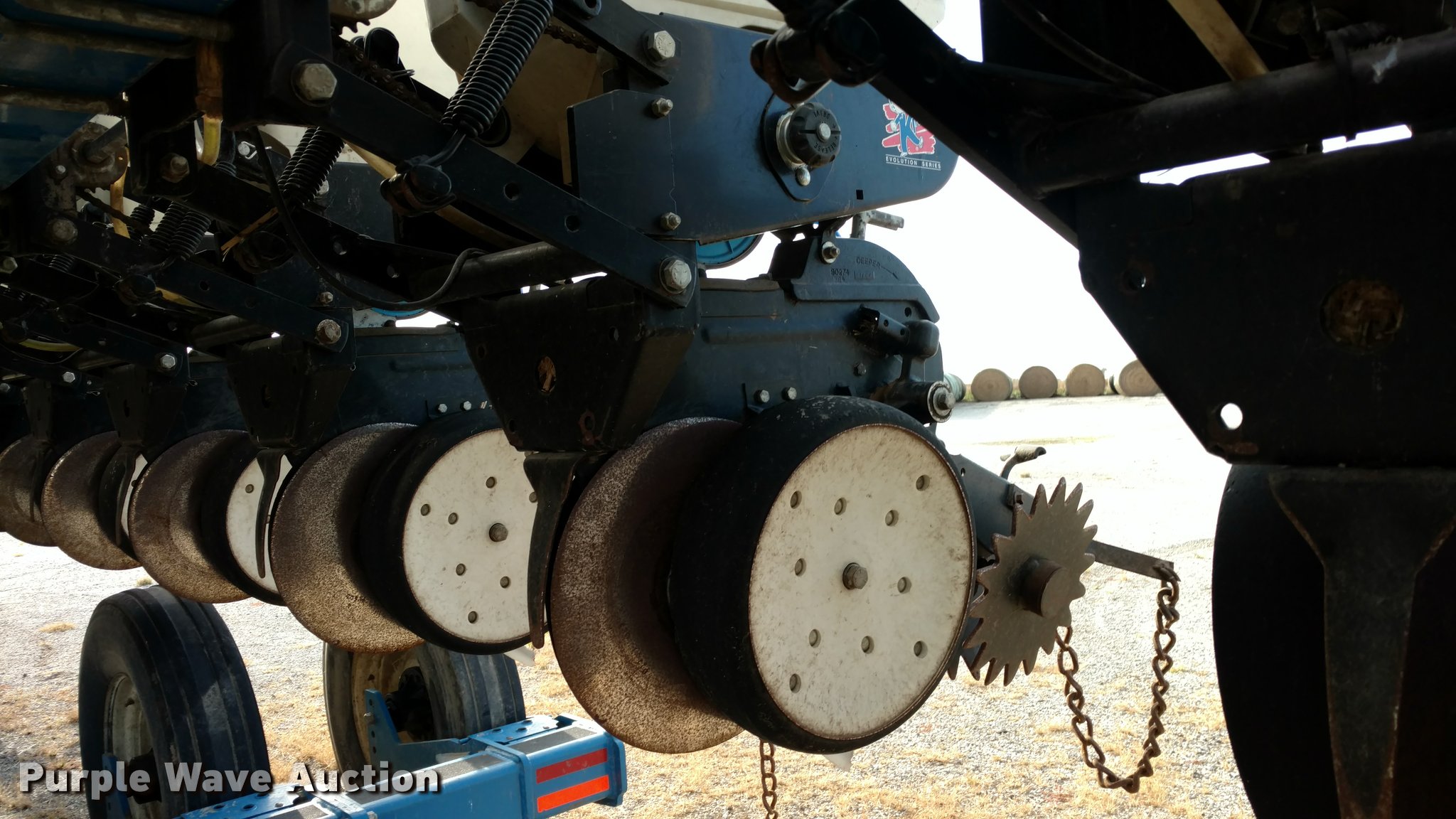Purple Wave is selling a used Planter in Kansas. This item is a Kinze 3650 12/23 Interplant split row planter with the following: 12 row units, 30" row spacing, 23 row units, 15" row spacing, Evolution series three bushel individual hoppers, Mechanical delivery, Mechanical meters, Ground meter drive system, No-till coulters, Seed firmers, Rubber closing wheels, Liquid fertilizer system, 650 gallon total capacity, (4) tank system, Hydraulic lift and pivot planter, In-cab controls, 7.50-20SL planter tires, 11R22.5 transport tires, Serial 655353