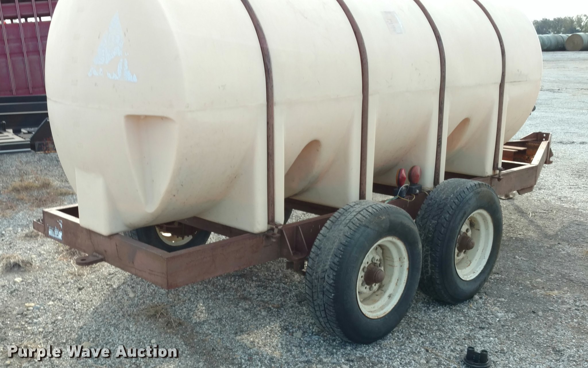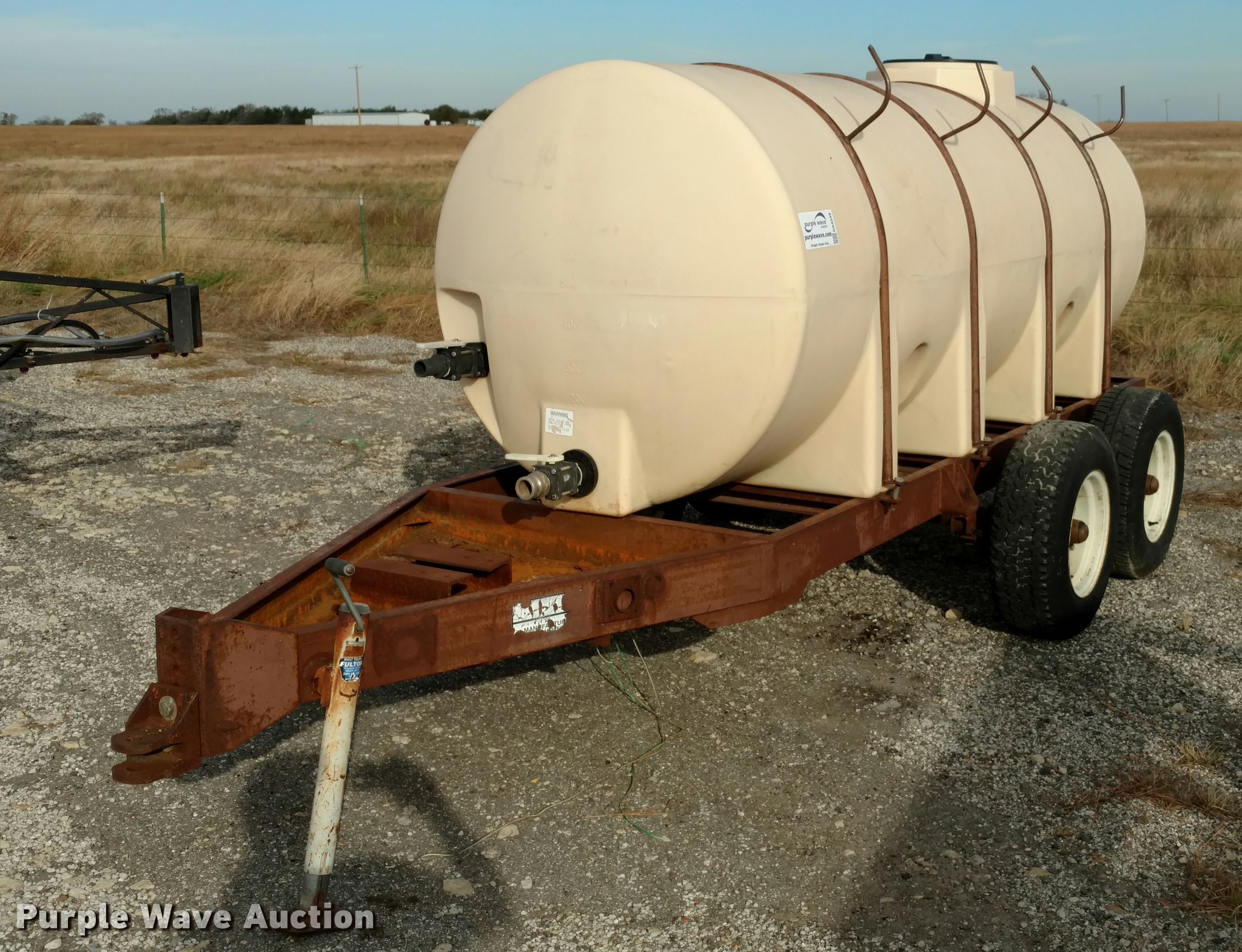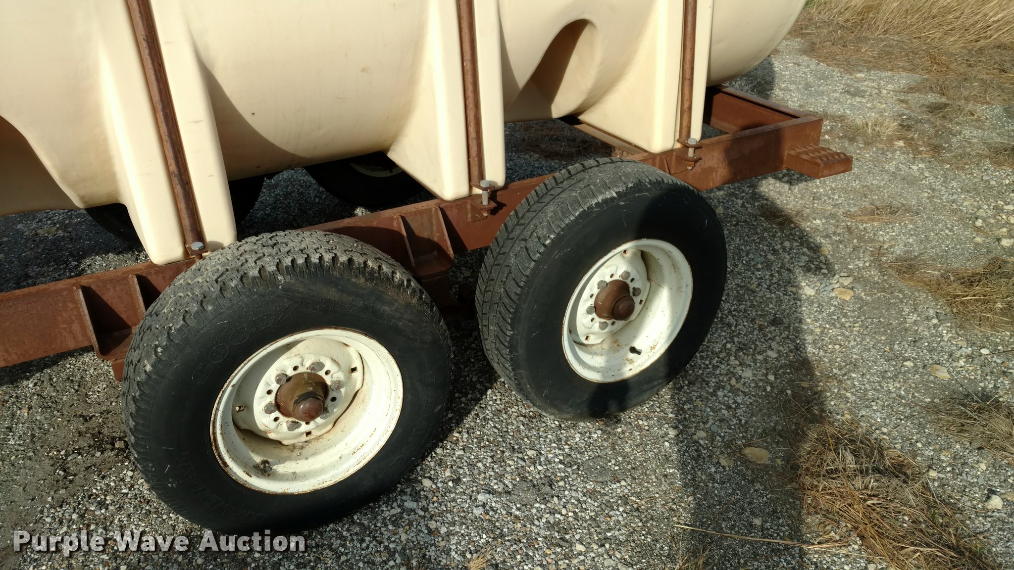 Purple Wave is selling a used Tank Trailer in Kansas. This item is a Nurse tank trailer with the following: 1,000 gallon capacity, Pin hitch, Tandem axle, 15" tires