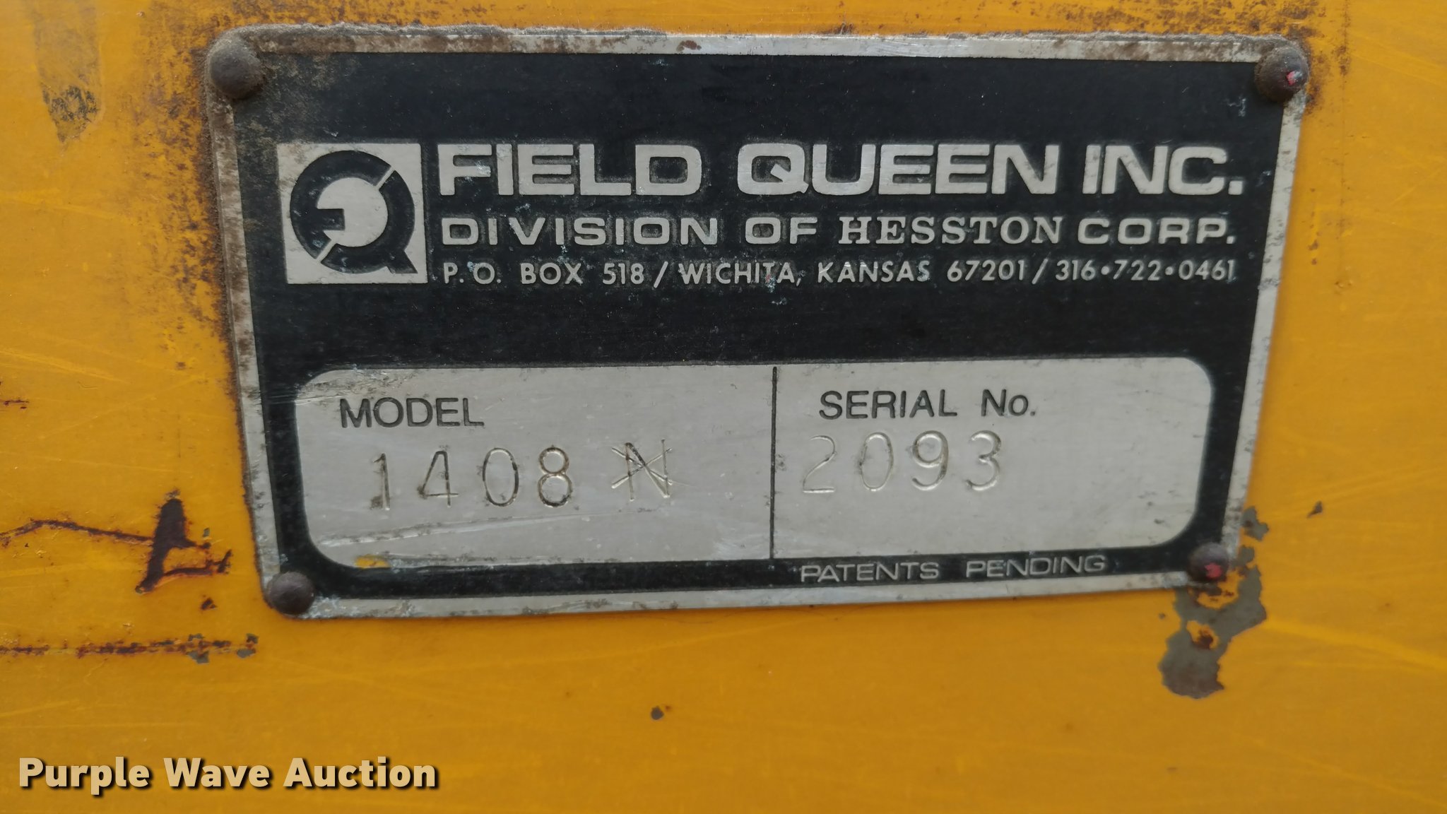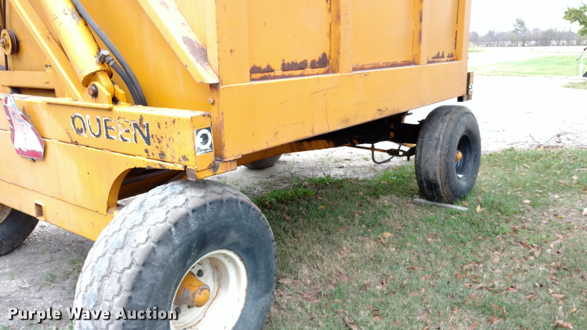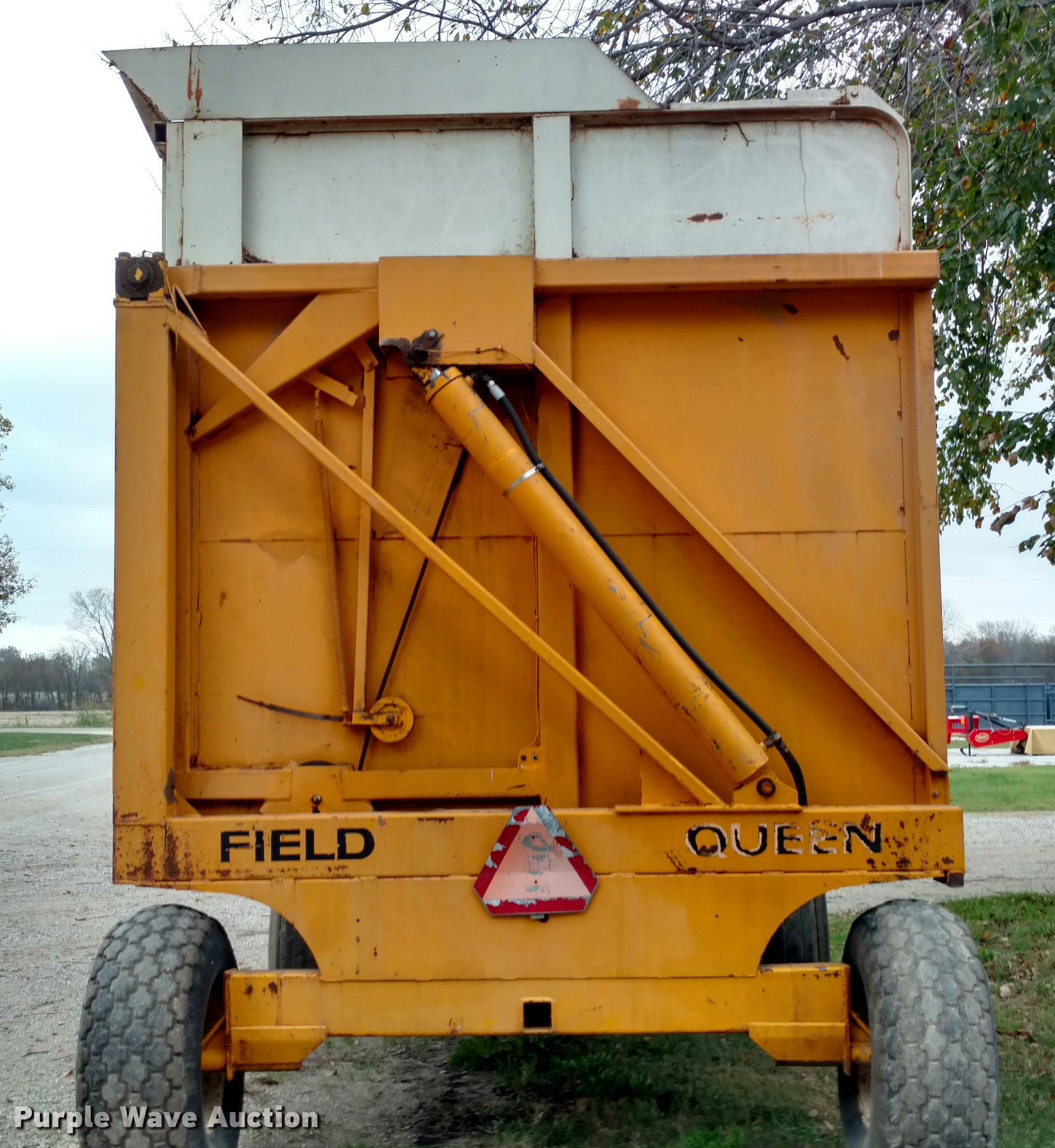 Purple Wave is selling a used Forage Head or Silage Handling in Kansas. This item is a Field Queen 1408 silage dump wagon with the following: Side dump, Pin hitch, 13.50-16.1 tires, (3) spare tires, Serial 2093
