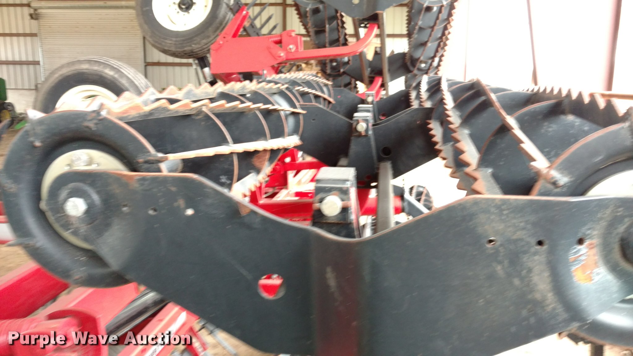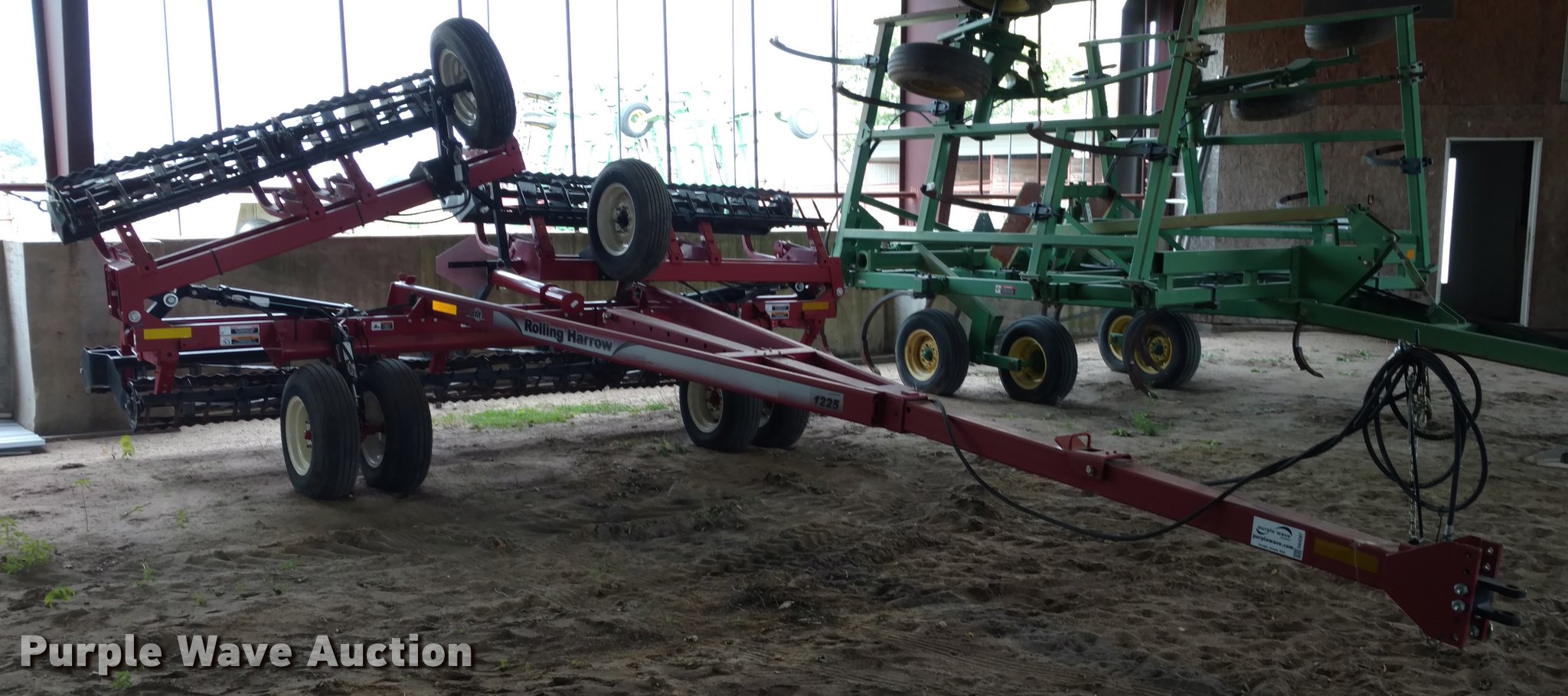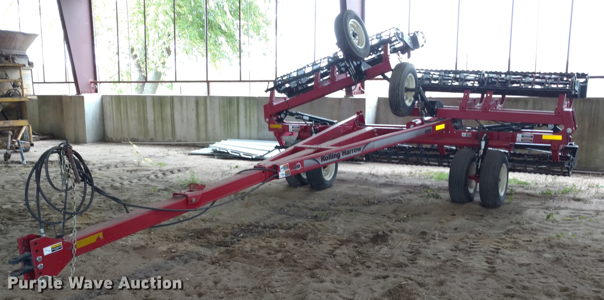 Purple Wave is selling a used Tillage Other in Kansas. This item is a Unverferth 1225 rolling harrow with the following: Approx. 32'W, Spike harrows, Hydraulic fold, Pin hitch, 7.80-15 tires, Serial A53-580-200