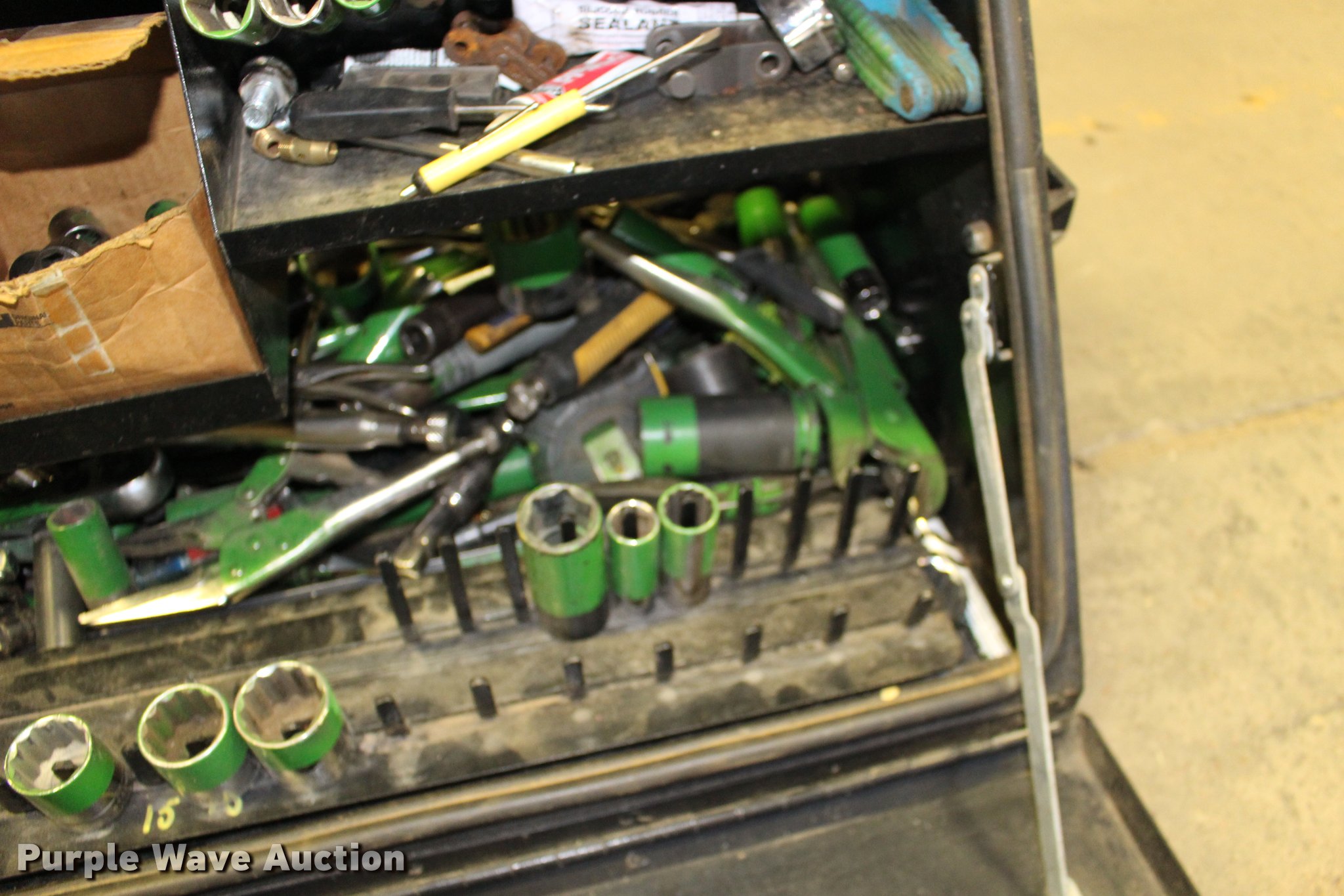 Purple Wave is selling a used Tools in Kansas. This item is a Smart tool management box with the following: 31" x 15" x 18", Sockets, Ratchets, Pliers, Screw drivers, Wrenches and more